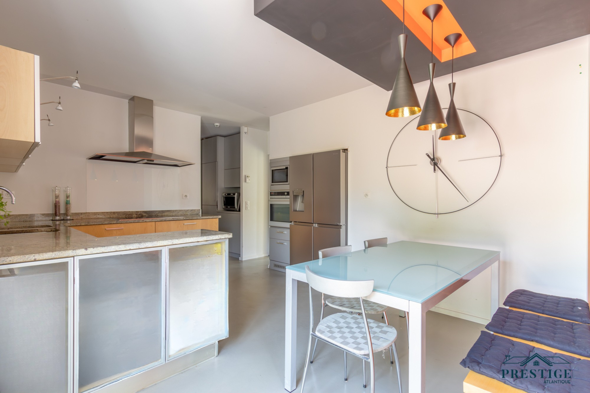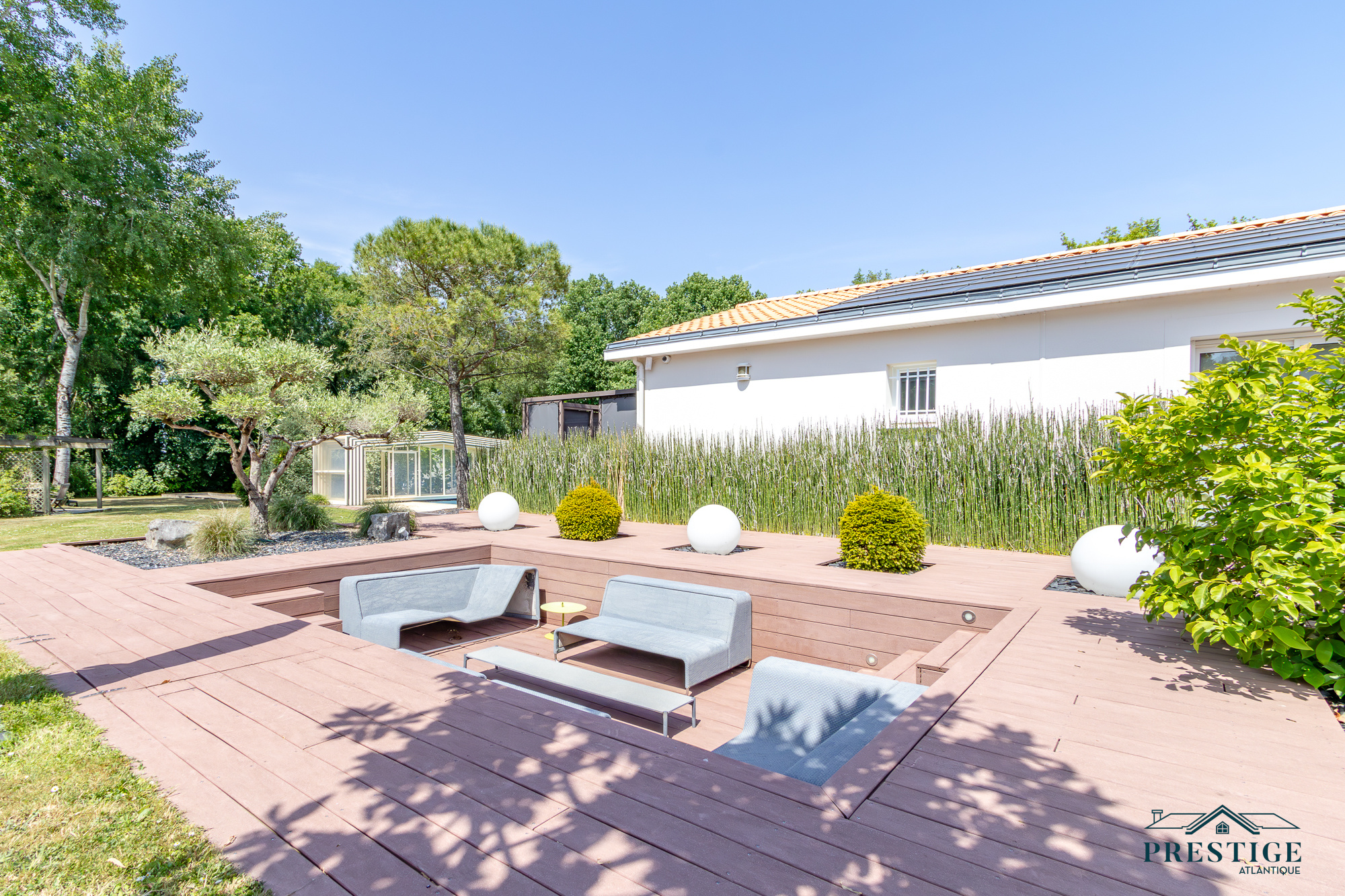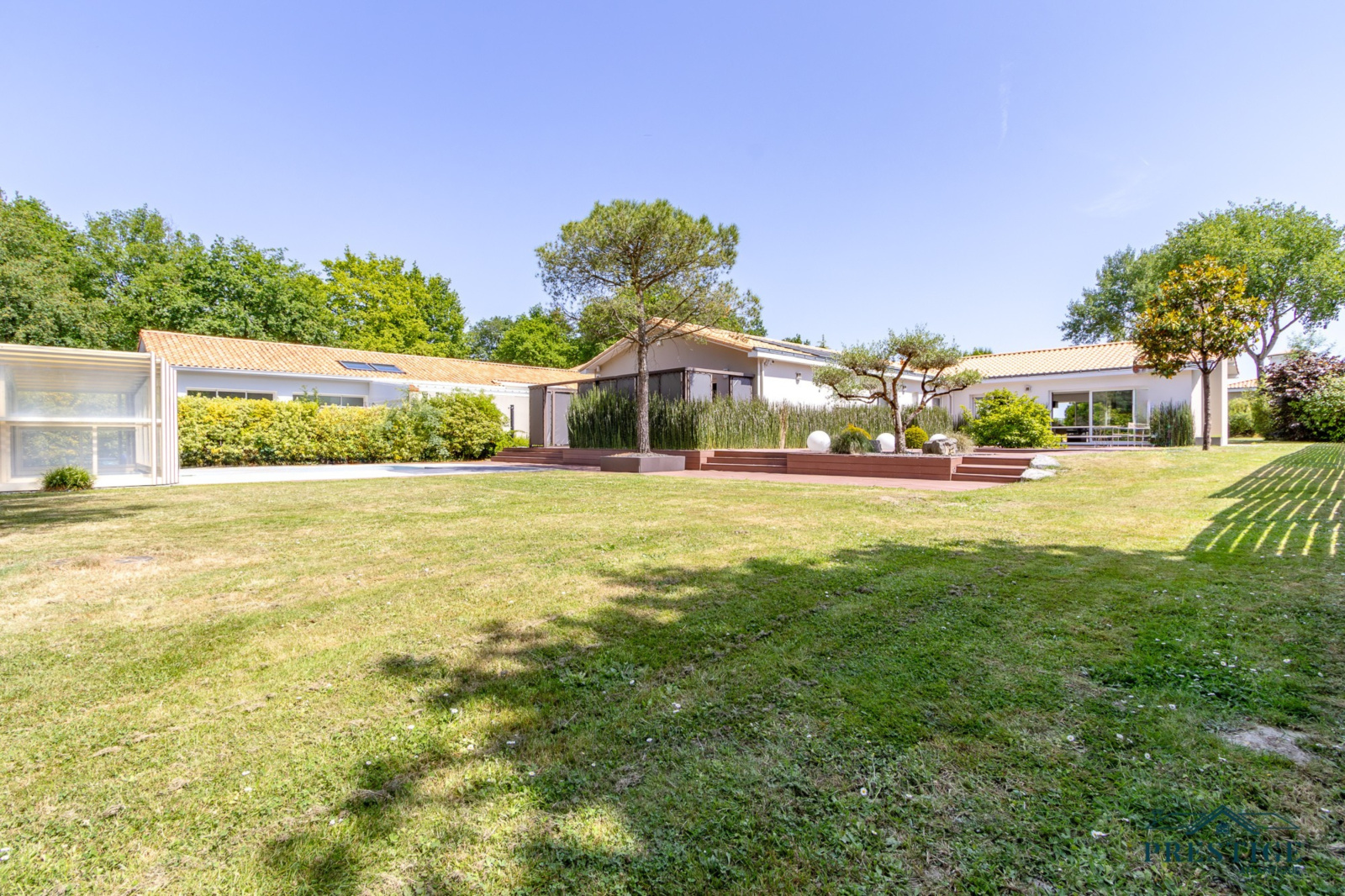 EXCLUSIVITE - PRESTIGE ATLANTIQUE. Nichée au cœur d’un environnement résidentiel verdoyant, à deux pas des commerces, cette villa d'exception de 293 m² habitables entièrement repensée par un architecte allie élégance contemporaire et raffinement absolu. L’entrée s’ouvre sur une somptueuse pièce de vie aux volumes généreux baignée de lumière naturelle dotée d’un mobilier sur mesure et d’une cheminée contemporaine, de vastes baies vitrées effacent la frontière intérieur/extérieur ouvrant sur une terrasse et sur un joli jardin paysager sublimé de sa piscine. Une cuisine haut de gamme avec espace repas et de nombreux rangements intégrés et une arrière-cuisine discrète vient parfaire ce lieu de vie. Côté nuit, cinq chambres confortables avec placards sur mesure, dont une suite parentale aux prestations premium : dressing et salle de bains attenante. Pensée dans les moindres détails, la villa intègre un bureau, une lingerie et une salle de fitness. Véritable atout supplémentaire, la maison d’invités indépendante parfaitement équipée et idéalement située près de l’entrée principale. Édifiée sur une parcelle de 2 702 m², un double garage donne une touche finale à ce bien unique. “Les informations sur les risques auxquels ce bien est exposé sont disponibles sur le site Géorisques http://www.georisques.gouv.fr”. Pour plus de renseignements ou pour organiser une visite privée, contactez-nous sans plus attendre, PRESTIGE ATLANTIQUE 02.40.21.91.13. Prix de vente 854 000€ les honoraires sont à la charge du vendeur (RCS. Saint- Nazaire 897 587 946).