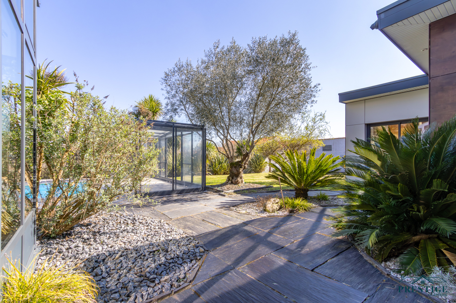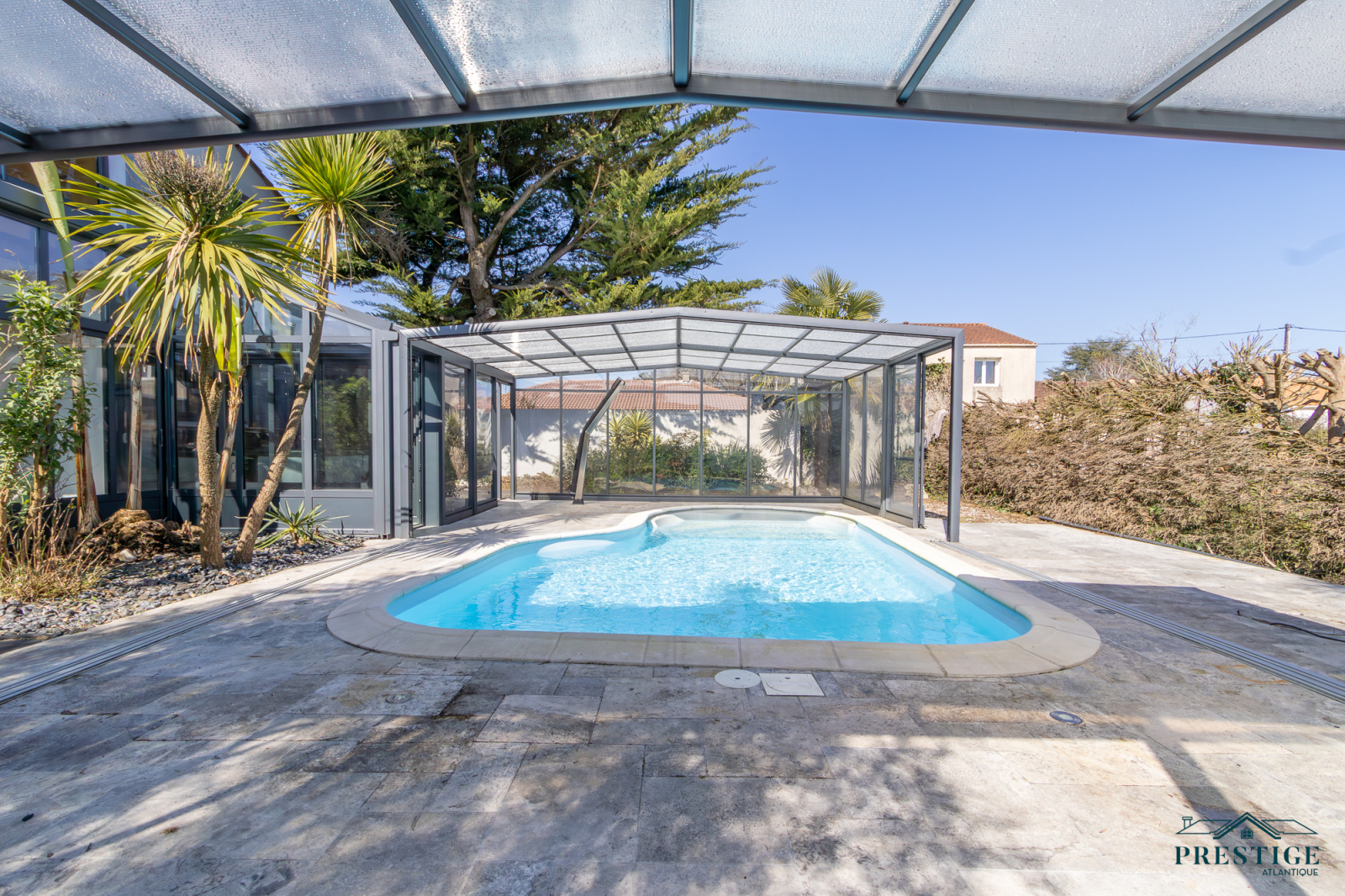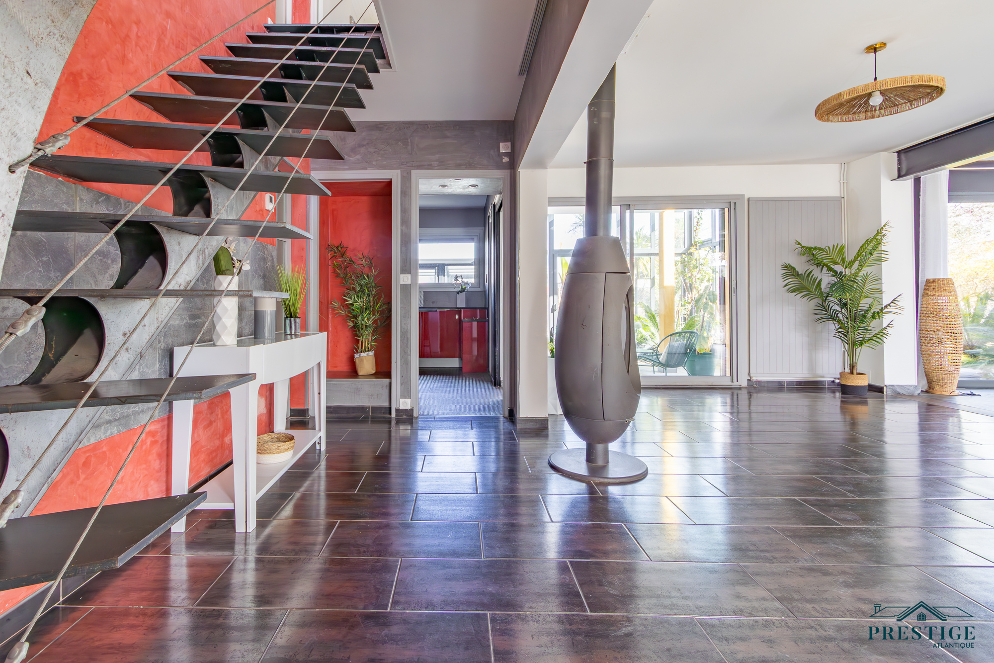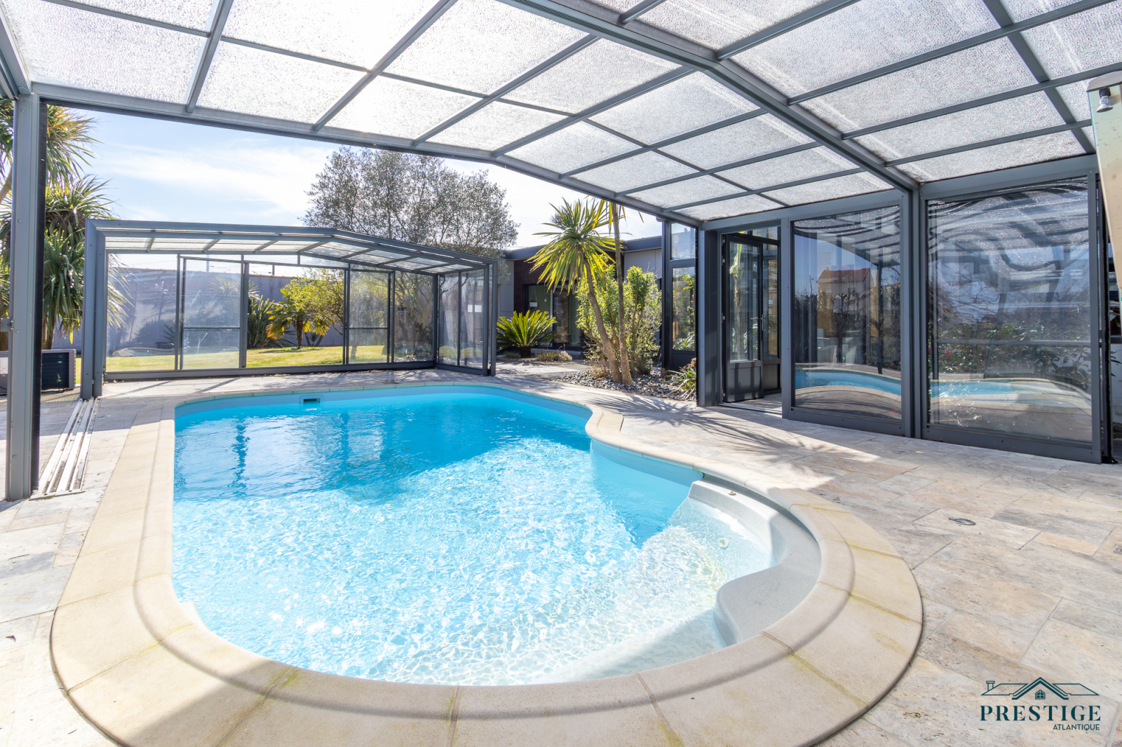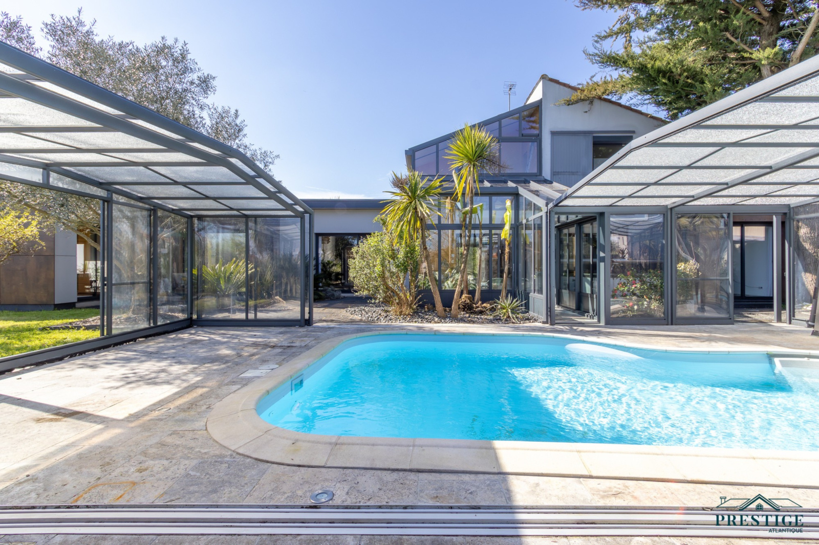 VENDU PAR PRESTIGE ATLANTIQUE. A l’abri des regards, cette villa d’exception repensée dans un esprit loft contemporain dispose d’une surface habitable de 250 m². En parfaite harmonie avec son environnement paysager, elle offre une intimité totale. Dès l’entrée, les volumes généreux et la luminosité omniprésente séduisent, un vaste salon-séjour agrémenté de sa cuisine aménagée équipée sublimé par de larges baies vitrées se prolonge par une élégante véranda ouvrant sur la piscine couverte à la vue imprenable du jardin. Les prestations haut de gamme (climatisation, pompe à chaleur, chauffage au sol, volets motorisés, poêle à bois, toit plat) garantissent un confort absolu en toute saison. Deux chambres, dont une somptueuse suite avec accès direct à un espace détente et son SPA confirme la vie de plain pied. Un bureau complète ce niveau. À l’étage, l’espace nuit se compose de trois chambres avec rangements intégrés, d’un dressing et d’une salle de bains élégante. Edifiée sur une parcelle joliment paysager et arborée de 1594 m², un double garage et des dépendances aménageables pour une profession libérale complètent ce bien unique. Villa d’exception à l’architecture contemporaine, subtile alliance de volumes lumineux, de prestations haut de gamme et d’un écrin paysager intime offrant un art de vivre rare aux portes de Nantes."Les informations sur les risques auxquels ce bien est exposé sont disponibles sur le site Géorisques http://www.georisques.gouv.fr”. Pour plus de renseignements ou pour organiser une visite privée, contactez-nous sans plus attendre, PRESTIGE ATLANTIQUE 02.40.21.91.13. Prix de vente 599 000€. Les honoraires sont à la charge du vendeur (RCS. Saint- Nazaire 897 587 946).