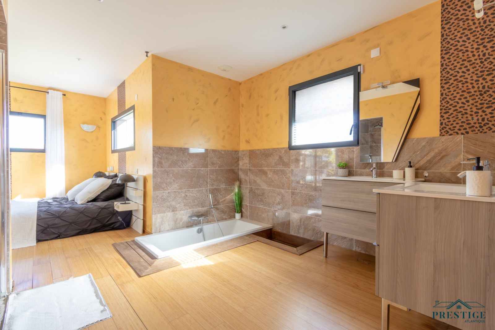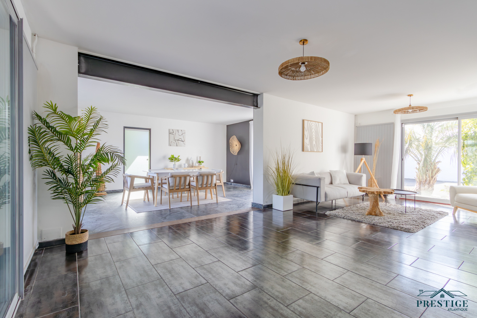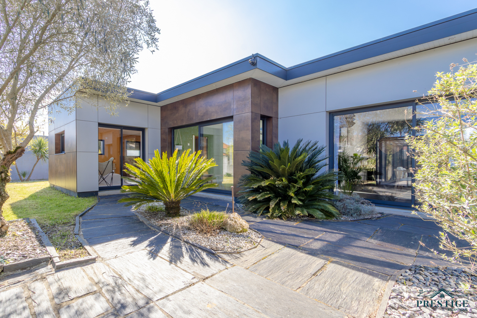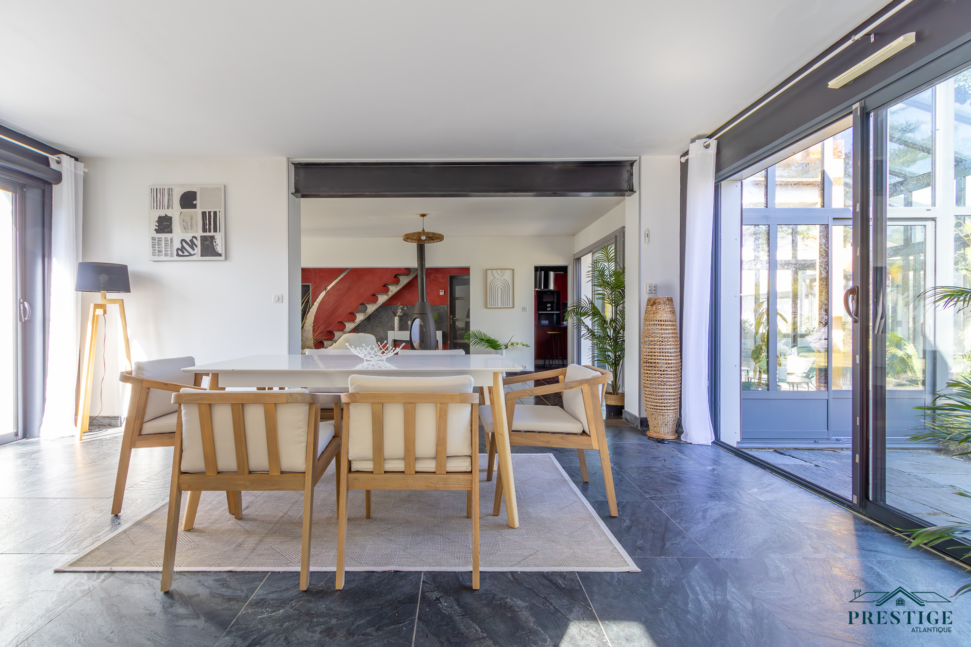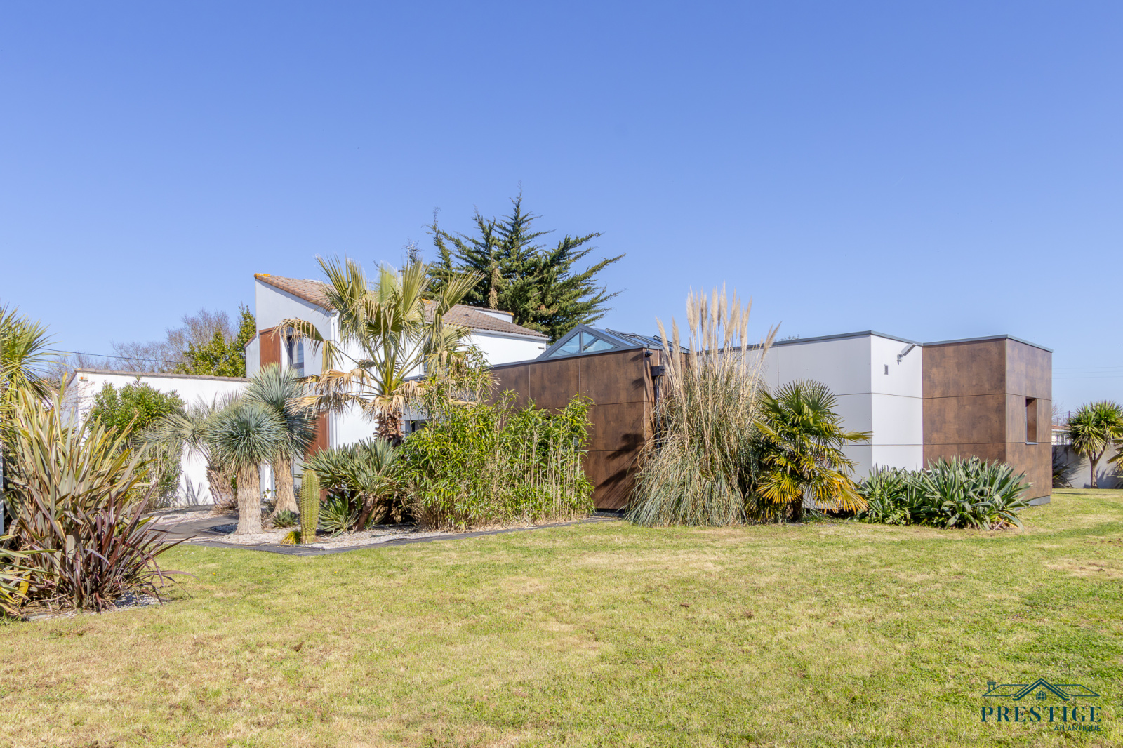 VENDU PAR PRESTIGE ATLANTIQUE. A l’abri des regards, cette villa d’exception repensée dans un esprit loft contemporain dispose d’une surface habitable de 250 m². En parfaite harmonie avec son environnement paysager, elle offre une intimité totale. Dès l’entrée, les volumes généreux et la luminosité omniprésente séduisent, un vaste salon-séjour agrémenté de sa cuisine aménagée équipée sublimé par de larges baies vitrées se prolonge par une élégante véranda ouvrant sur la piscine couverte à la vue imprenable du jardin. Les prestations haut de gamme (climatisation, pompe à chaleur, chauffage au sol, volets motorisés, poêle à bois, toit plat) garantissent un confort absolu en toute saison. Deux chambres, dont une somptueuse suite avec accès direct à un espace détente et son SPA confirme la vie de plain pied. Un bureau complète ce niveau. À l’étage, l’espace nuit se compose de trois chambres avec rangements intégrés, d’un dressing et d’une salle de bains élégante. Edifiée sur une parcelle joliment paysager et arborée de 1594 m², un double garage et des dépendances aménageables pour une profession libérale complètent ce bien unique. Villa d’exception à l’architecture contemporaine, subtile alliance de volumes lumineux, de prestations haut de gamme et d’un écrin paysager intime offrant un art de vivre rare aux portes de Nantes."Les informations sur les risques auxquels ce bien est exposé sont disponibles sur le site Géorisques http://www.georisques.gouv.fr”. Pour plus de renseignements ou pour organiser une visite privée, contactez-nous sans plus attendre, PRESTIGE ATLANTIQUE 02.40.21.91.13. Prix de vente 599 000€. Les honoraires sont à la charge du vendeur (RCS. Saint- Nazaire 897 587 946).