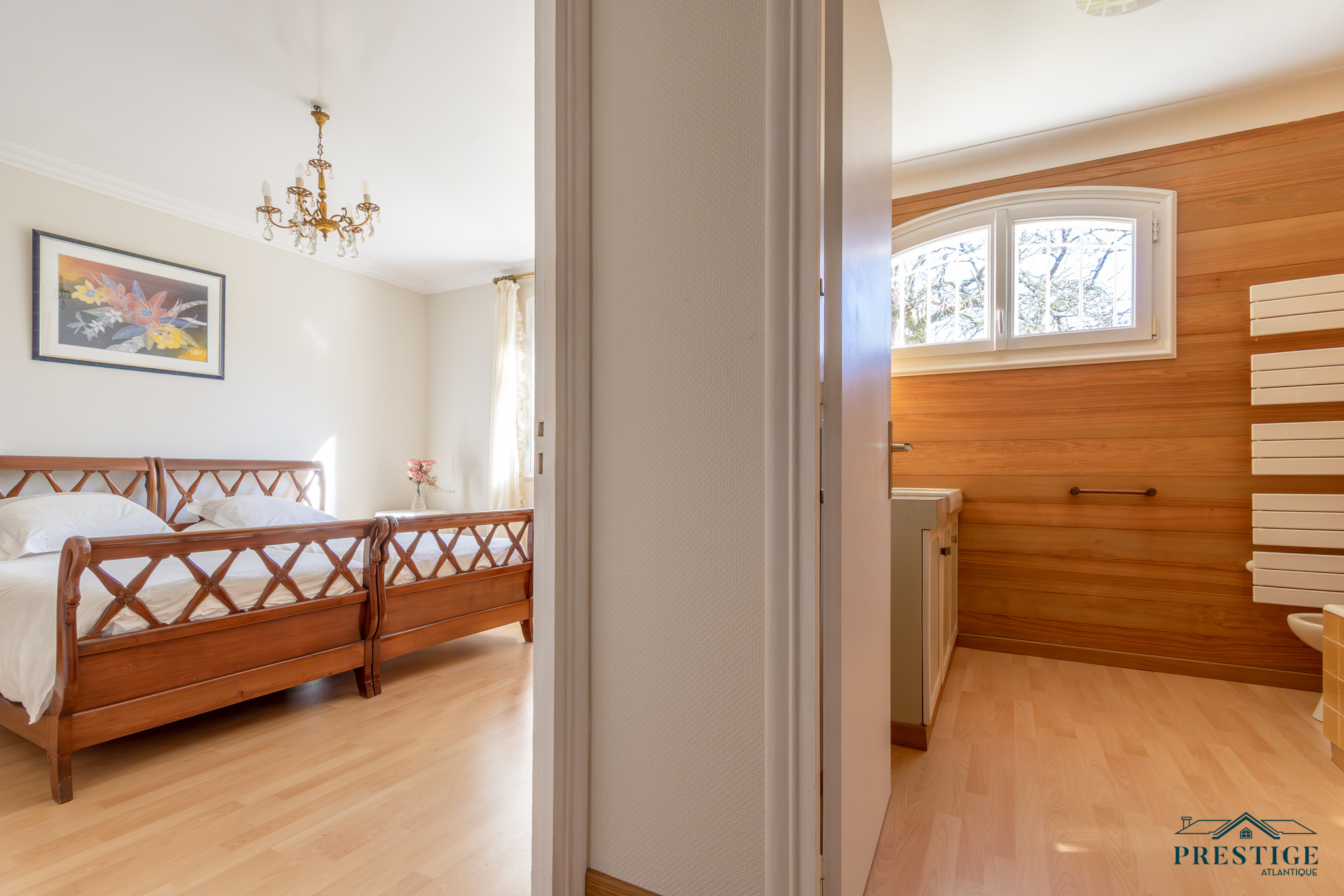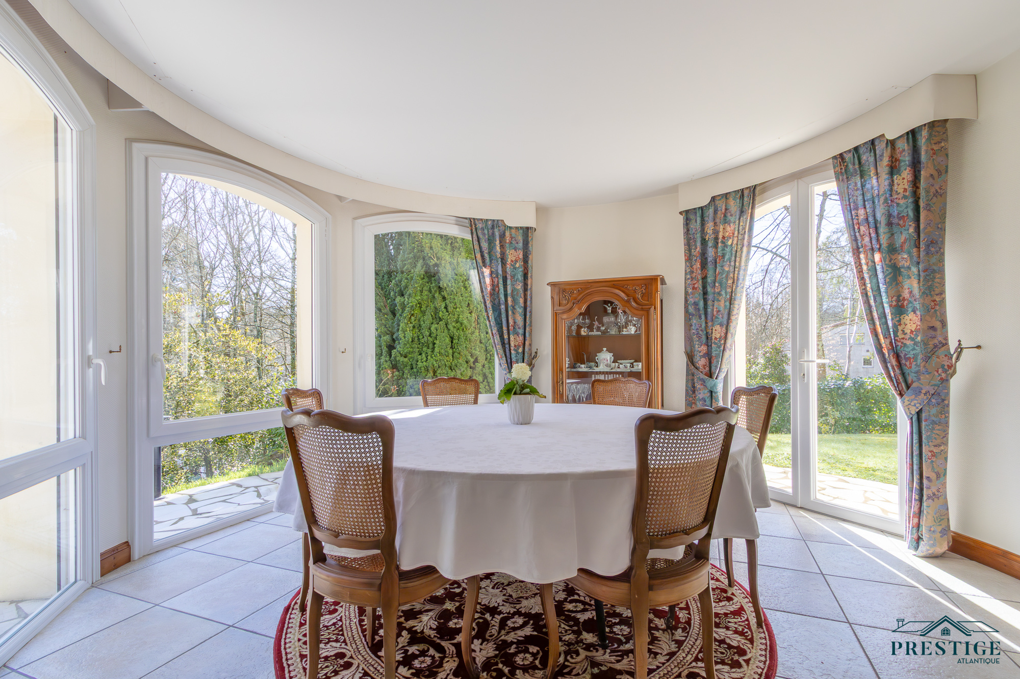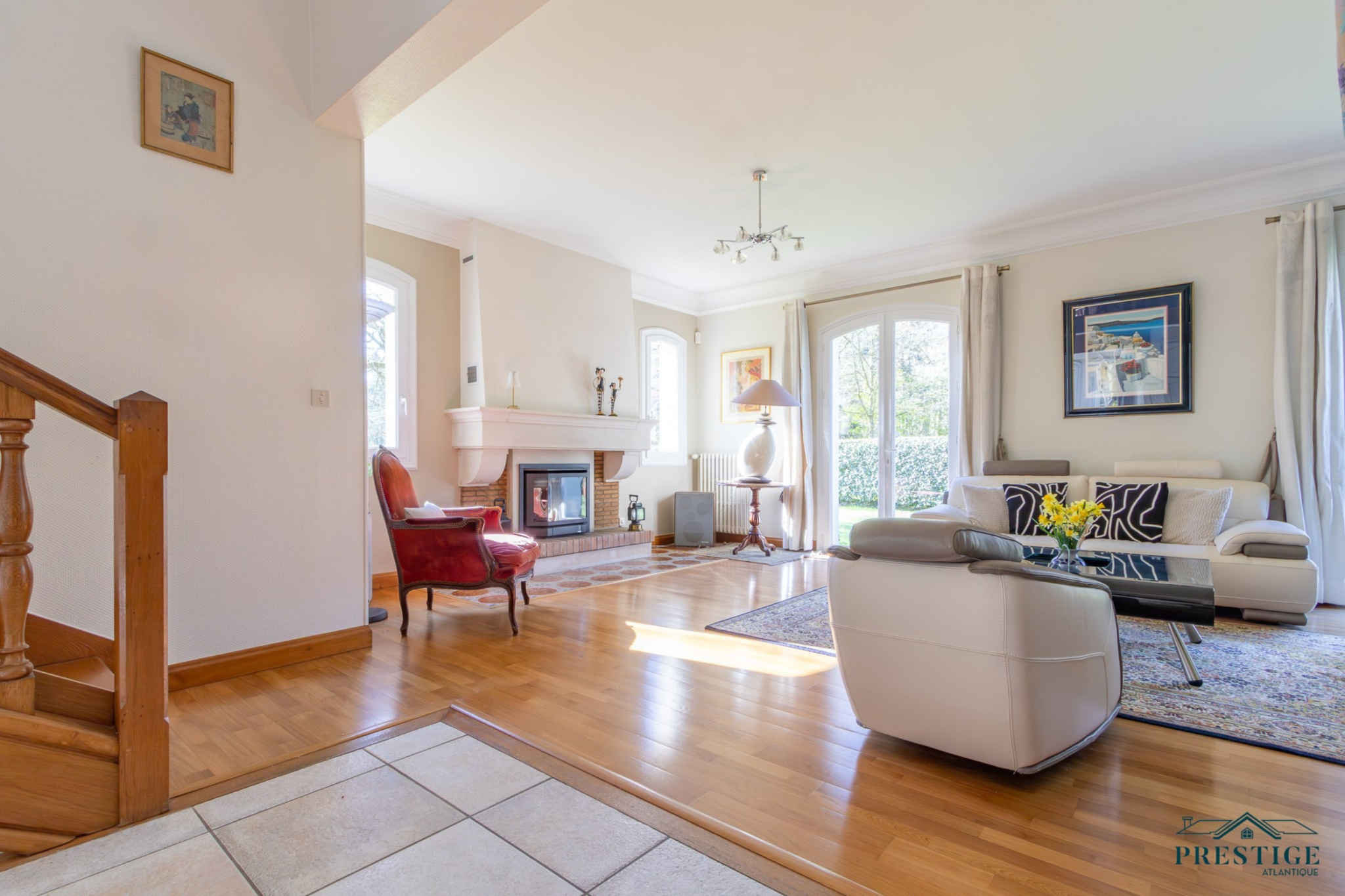 EXCLUSIVITÉ - PRESTIGE ATLANTIQUE. PROPRIÉTÉ D’EXCEPTION. Nichée au coeur d’un écrin de verdure, dans le quartier recherché résidentiel de la Grézillière, cette élégante propriété familiale de 216 m² habitables se déploie au sein d’un magnifique parc arboré de 3566m2. L’entrée s’ouvre sur une vaste pièce de vie en double réception à l’architecture remarquable, agrémentée d’une cheminée et en accès direct sur l’extérieur par ses nombreuses ouvertures. Une cuisine indépendante, aménagée et équipée, donnant sur la terrasse, ainsi qu’une buanderie complètent harmonieusement ce lieu de vie convivial et fonctionnel. L’espace nuit propose quatre chambres, dont trois bénéficient de placards intégrés, se partageant deux salles de bains et offrant un véritable confort. Un bureau complète le Rez de chaussée. L’étage dispose d'un second salon intimiste. Au niveau inférieur, un grand garage de 55 m², une salle de jeux, une cave ainsi qu’un atelier donnent une touche finale à ce bien. Cette demeure de caractère offre un cadre de vie rare et préservé, conjuguant nature, tranquillité et proximité immédiate des commodités. Une opportunité exclusive signée PRESTIGE ATLANTIQUE pour les amateurs de biens uniques. Maison en copropriété aucune procédure en cours. Montant des charges annuelles : 596 €. Les informations sur les risques auxquels ce bien est exposé sont disponibles sur le site Géorisques http://www.georisques.gouv.fr. Prix de vente 756 000€ HAI dont 5 % d'honoraires agence à la charge de l'acquéreur soit un prix net vendeur de 720 000€. Prestige-Atlantique. (RCS. Saint-Nazaire 897 587 945 - CPI 44022021000000013) contactez l'agence au 02.40.21.91.13
