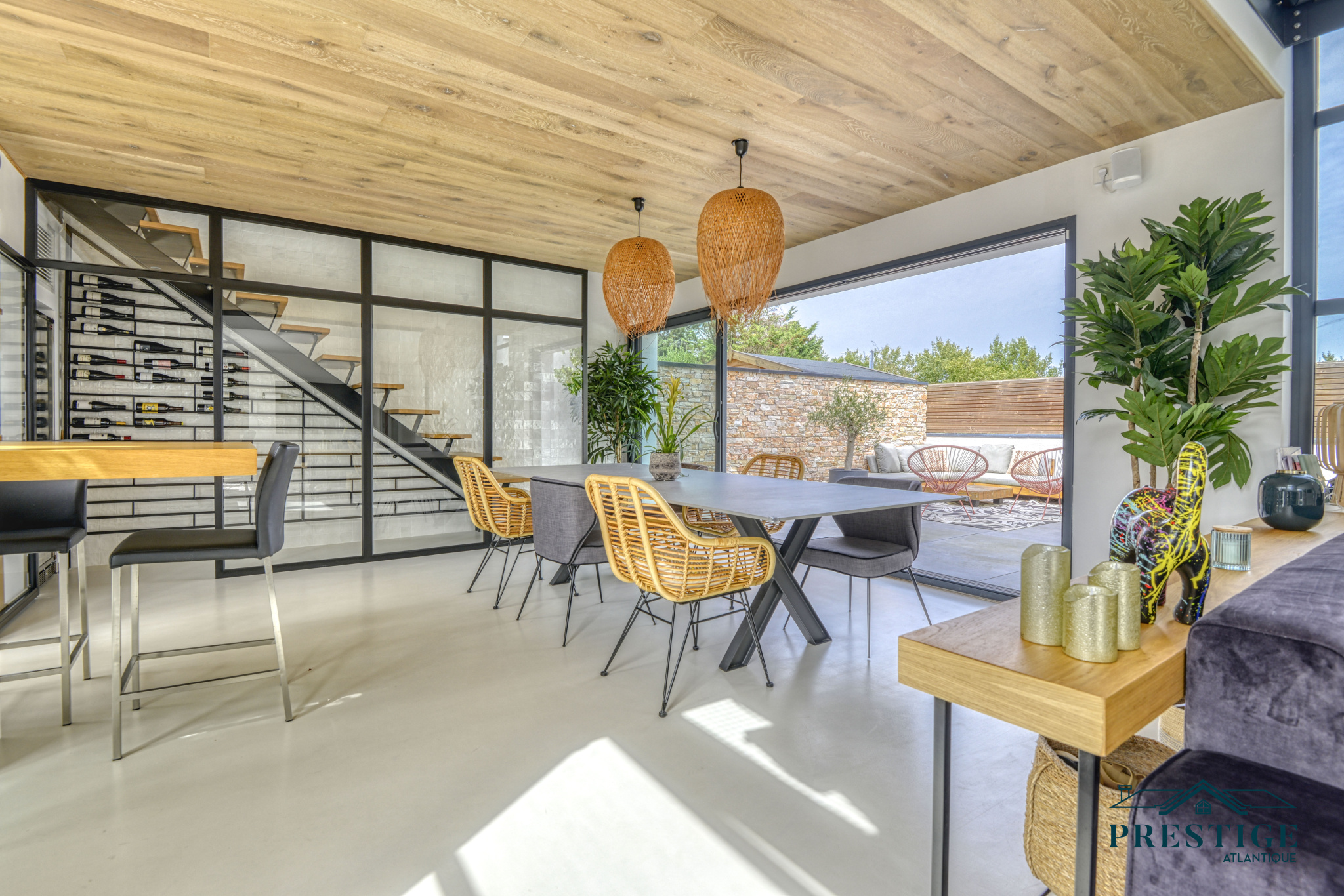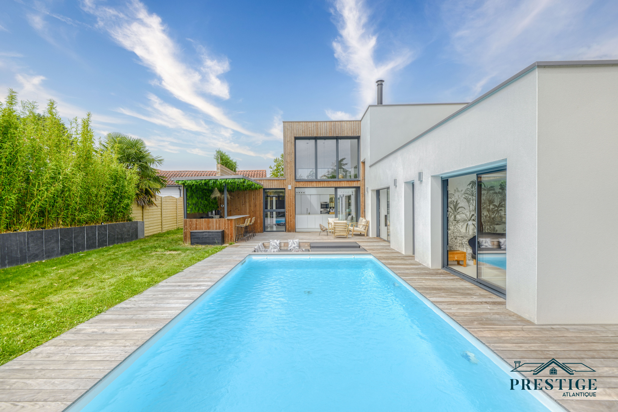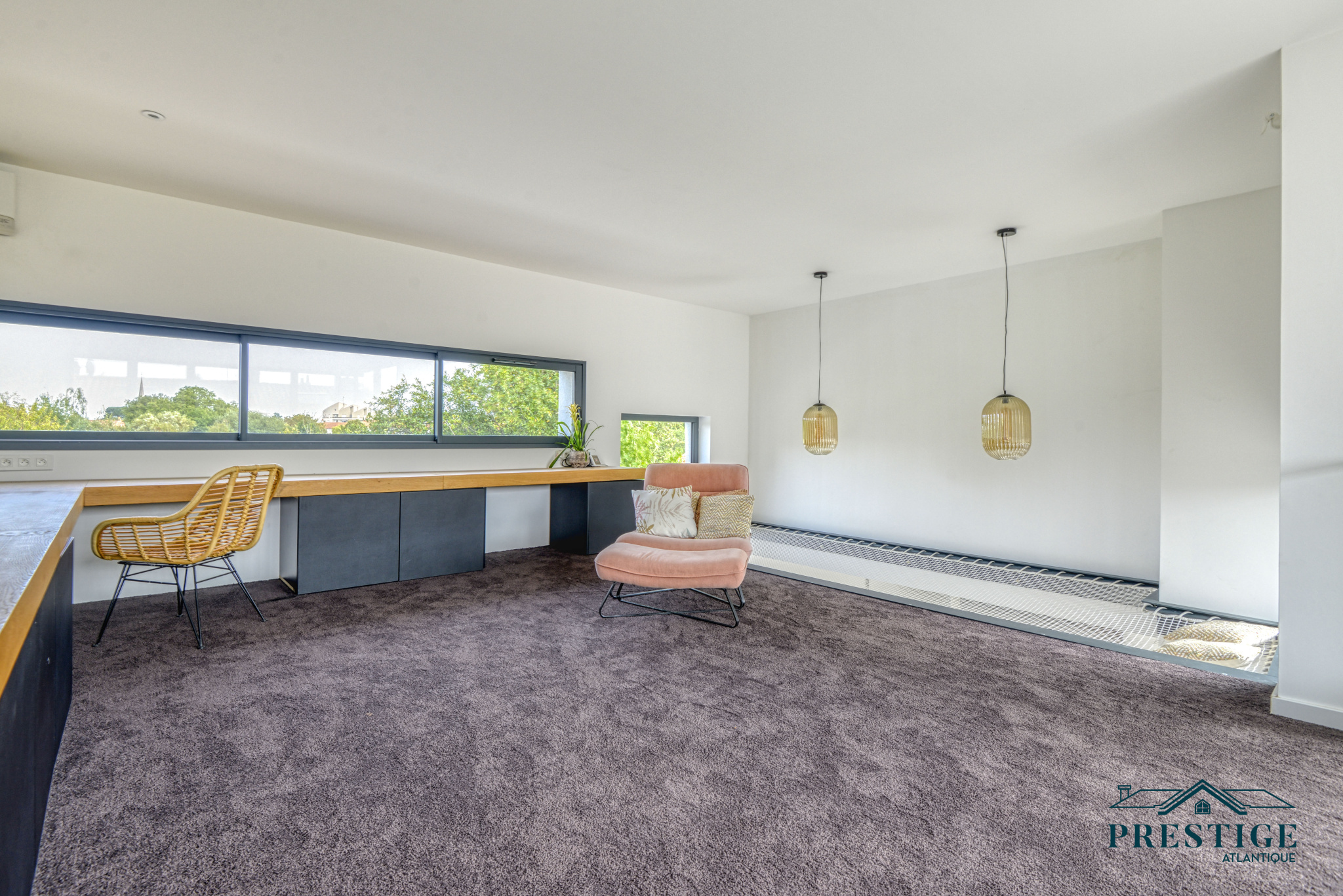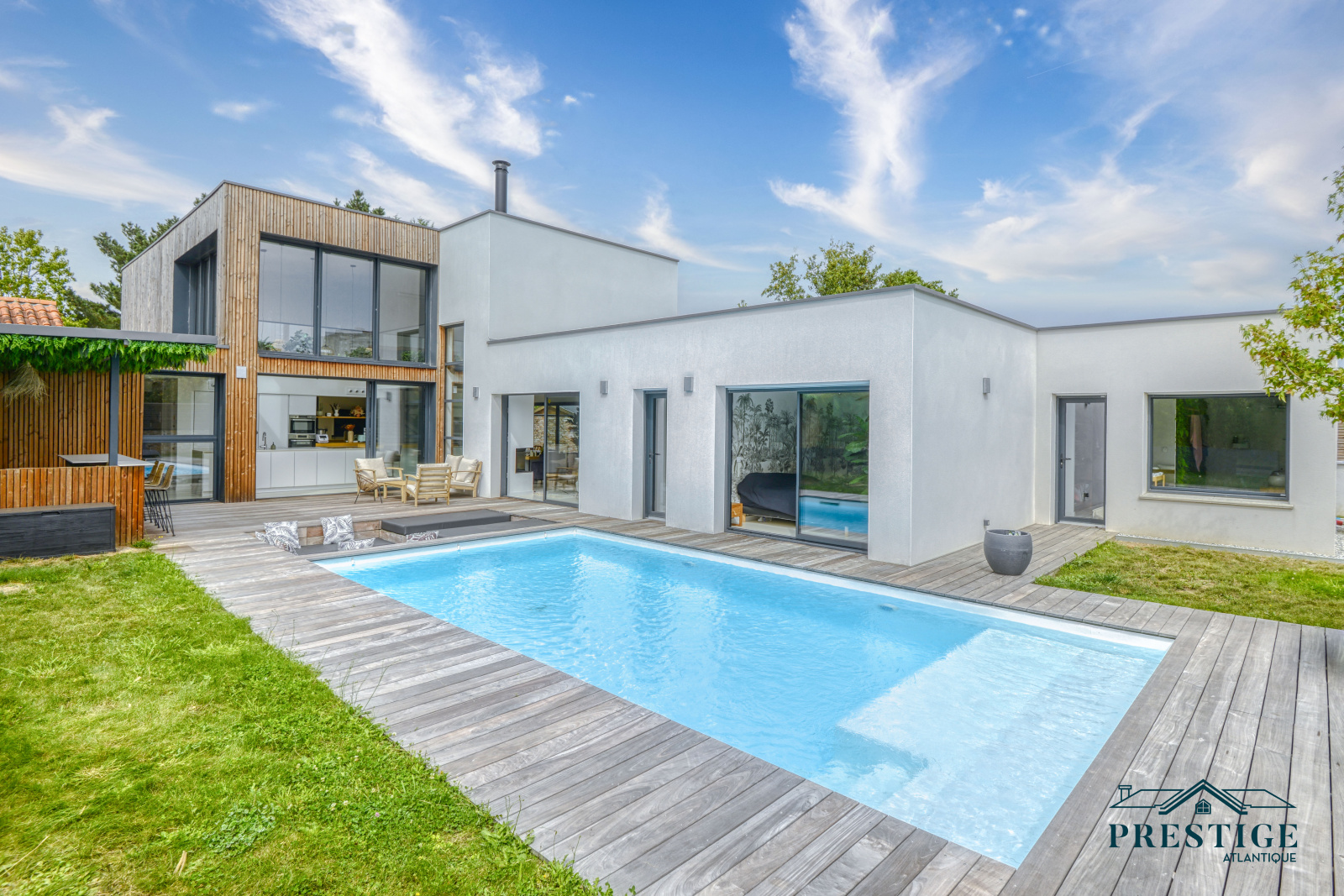 VENDU PAR PRESTIGE ATLANTIQUE. Au Sud de Nantes dans un quartier calme, cette splendide maison d’architecte en second rideau agencée avec goût sur deux niveaux dispose d'une superficie habitable de 176 m2. Un hall d'entrée avec placards dessert une cuisine Premium ouverte aménagée et équipée, prolongée d’une spacieuse pièce de vie agrémentée de sa cheminée et de sa cave à vin design. L’ensemble est doté d’une belle hauteur sous plafond et de deux terrasses à la vue imprenable sur sa piscine de par ses larges baies vitrées effaçant ainsi les frontières entre l'intérieur et l'extérieur venant offrir une qualité de vie des plus idéale. L’espace nuit bénéficie d’une Master Bedroom avec dressing et salle de bain privatifs en accès direct à la terrasse, de deux chambres et d’une salle d’eau. Une buanderie complète cette vie de plain-pied. Au niveau supérieur, une vaste mezzanine ainsi q’un filet marin suspendu surplombant l’espace de vie viennent parfaire les prestations haut-de-gamme de ce joli bien baignant de lumière. Edifiée sur une parcelle close et intimiste de 682 m2, un garage double et un local technique attenants ainsi qu’une piscine et son Pool House mettent un point final à cette maison contemporaine. Le moderne et le haut de gamme reflètent ce bien unique aux nombreux atouts. “Les informations sur les risques auxquels ce bien est exposé sont disponibles sur le site Géorisques http://www.georisques.gouv.fr”. Pour plus de renseignements ou pour organiser une visite privée, contactez-nous sans plus attendre, PRESTIGE ATLANTIQUE 02.40.21.91.13. Prix de vente 756 000€ FAI dont 5% d'honoraires agence à la charge de l'acquéreur soit un prix net vendeur de 720 000€ (RCS. Saint- Nazaire 897 587 946).