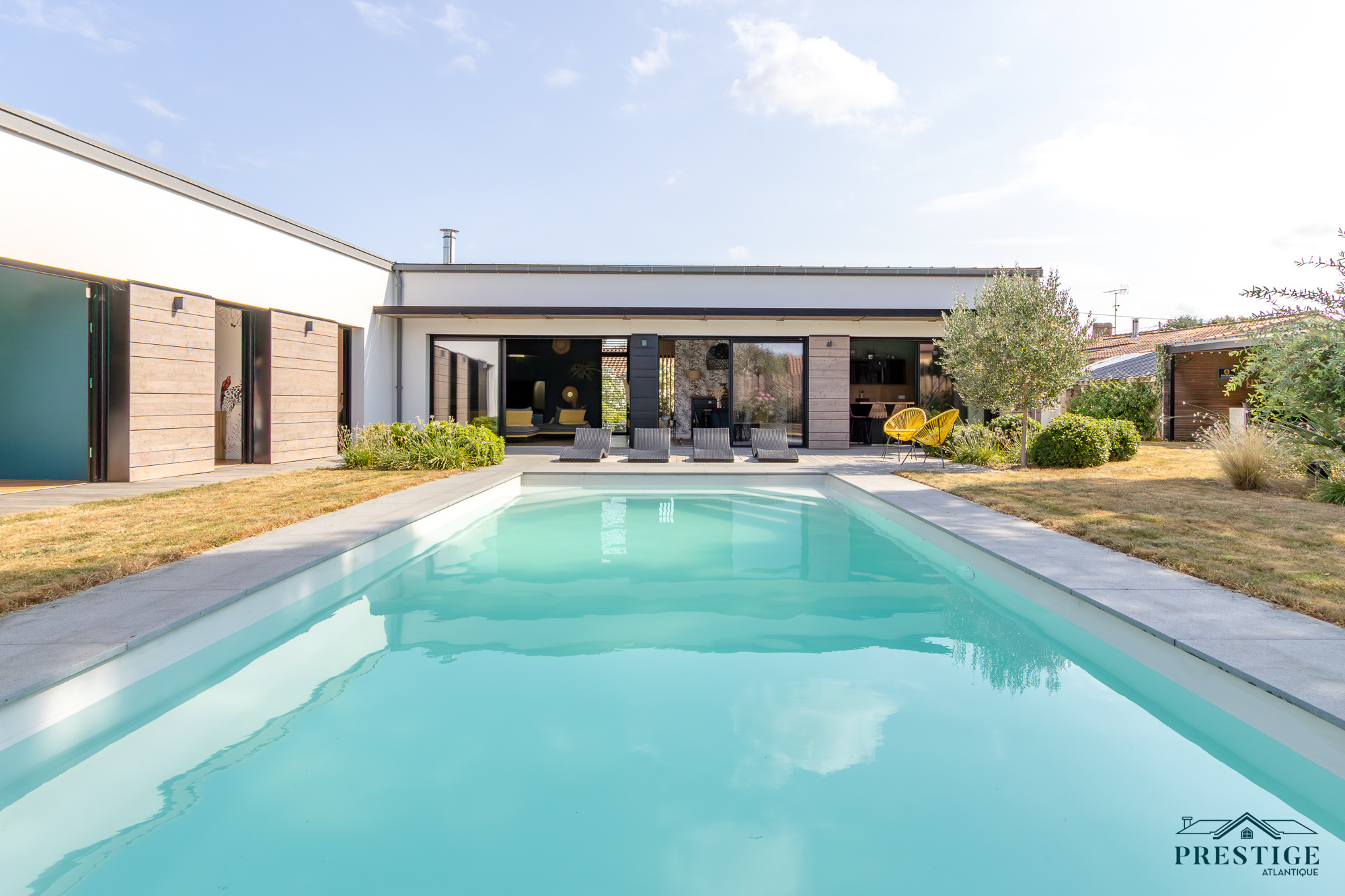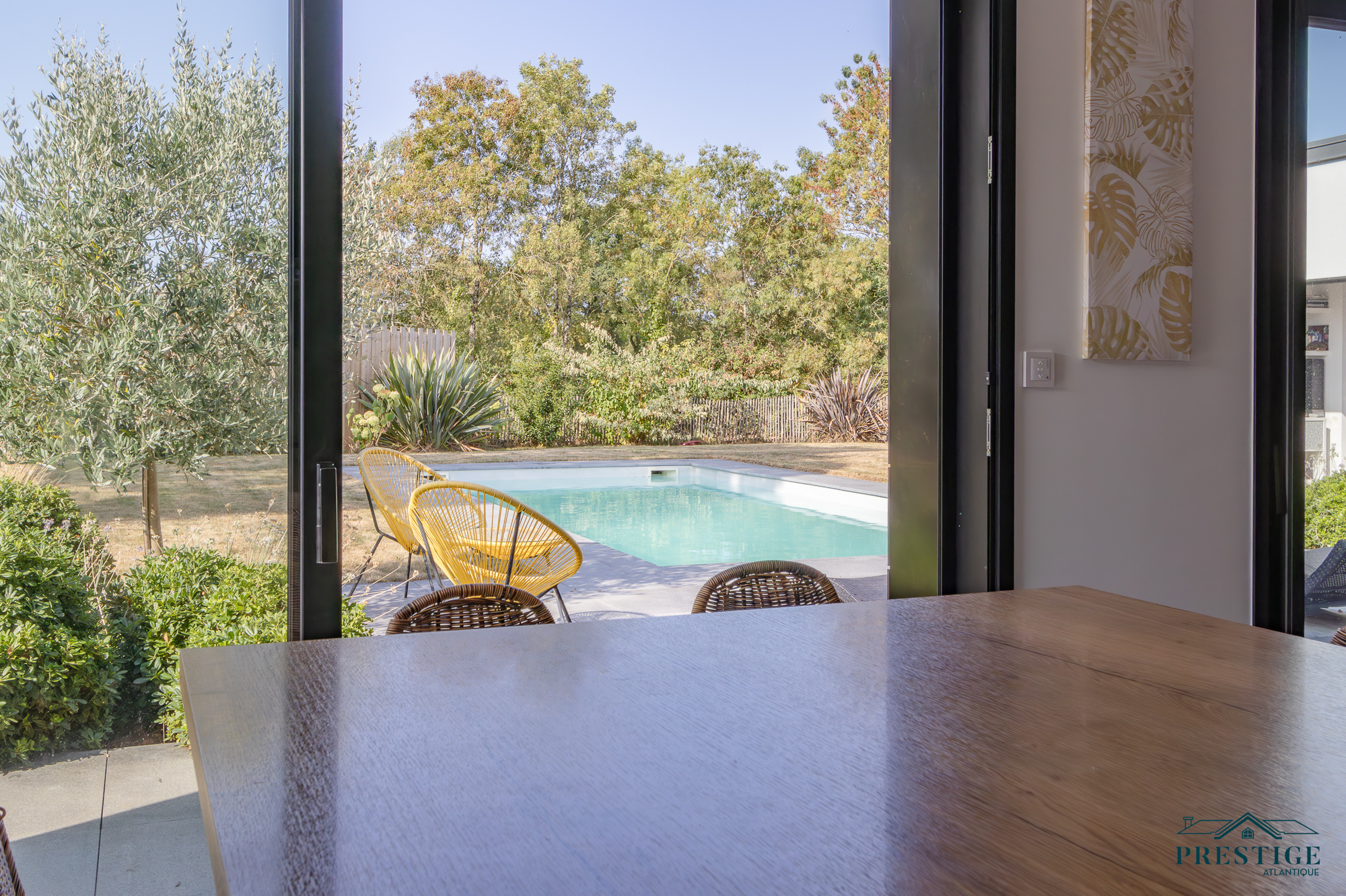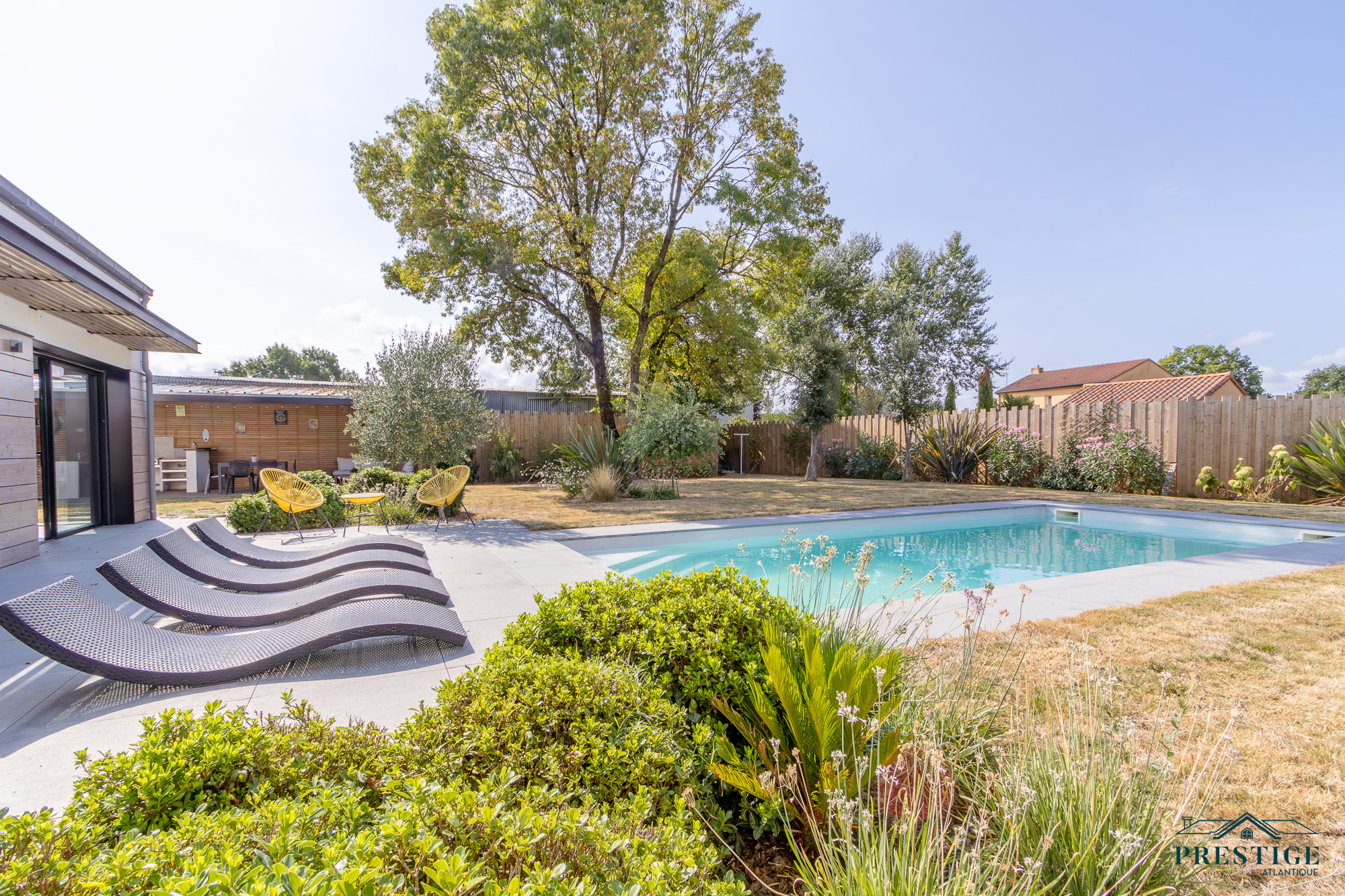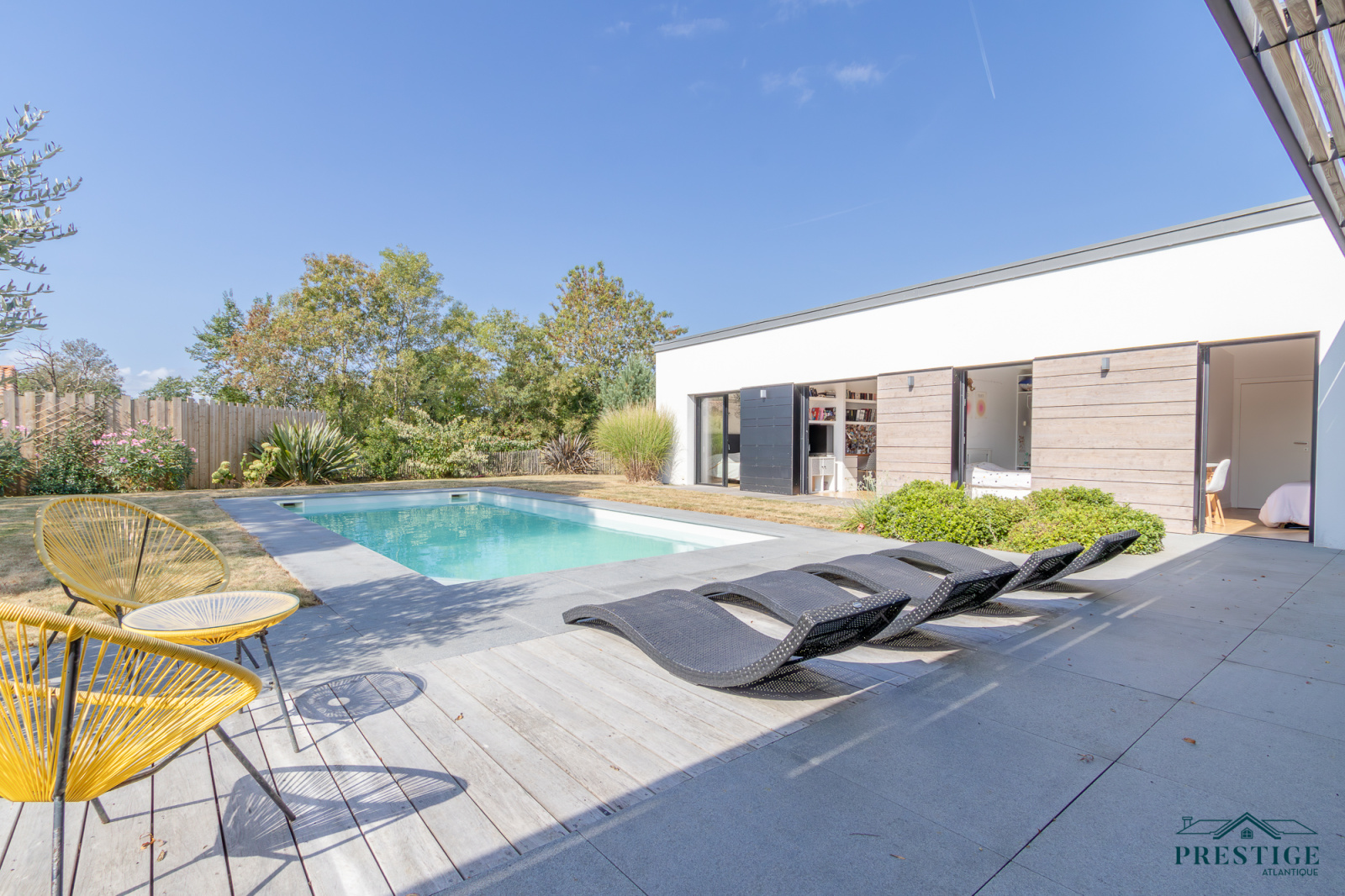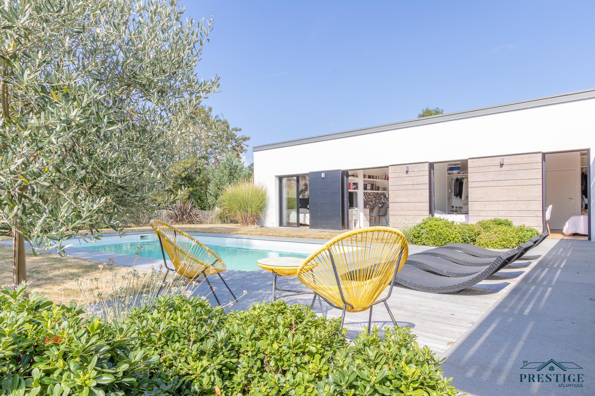 VENDU PAR PRESTIGE ATLANTIQUE. Nichée dans un écrin de verdure, cette somptueuse villa de plain-pied agencée avec goût et aux prestations abouties vous offre un confort des plus luxueux et dispose d’une superficie habitable de 180m2. Un hall d’entrée vient desservir un bel espace de vie agrémenté d’une cuisine aménagée équipée Premium et d’une salle à manger ouverte sur le salon, le tout à la vue imprenable de par ses larges baies vitrées et en accès direct à une vaste terrasse sublimée de sa piscine et de son pool house avec cuisine d'été. Les frontières entre l’intérieur et l’extérieur s’effacent pour offrir une qualité de vie des plus idéales. Une arrière cuisine/buanderie complète la distribution. L’espace nuit dévoile une magnifique suite parentale, trois chambres dont deux avec dressings intégrés, une salle d’eau ainsi qu’un bureau. Edifiée sur un terrain clos et arboré de 1300m2, une dépendance et un double garage donnent une touche finale à cette villa d’exception. Un bien rare aux nombreux atouts à l'abri des regards et au calme absolu. “Les informations sur les risques auxquels ce bien est exposé sont disponibles sur le site Géorisques http://www.georisques.gouv.fr”. Pour plus de renseignements ou pour organiser une visite privée, contactez-nous sans plus attendre, PRESTIGE ATLANTIQUE 02.40.21.91.13. Prix de vente 656 250€ FAI dont 5 % d'honoraires agence à la charge de l'acquéreur soit un prix net vendeur de 625 000€ (RCS. Saint- Nazaire 897 587 946).
