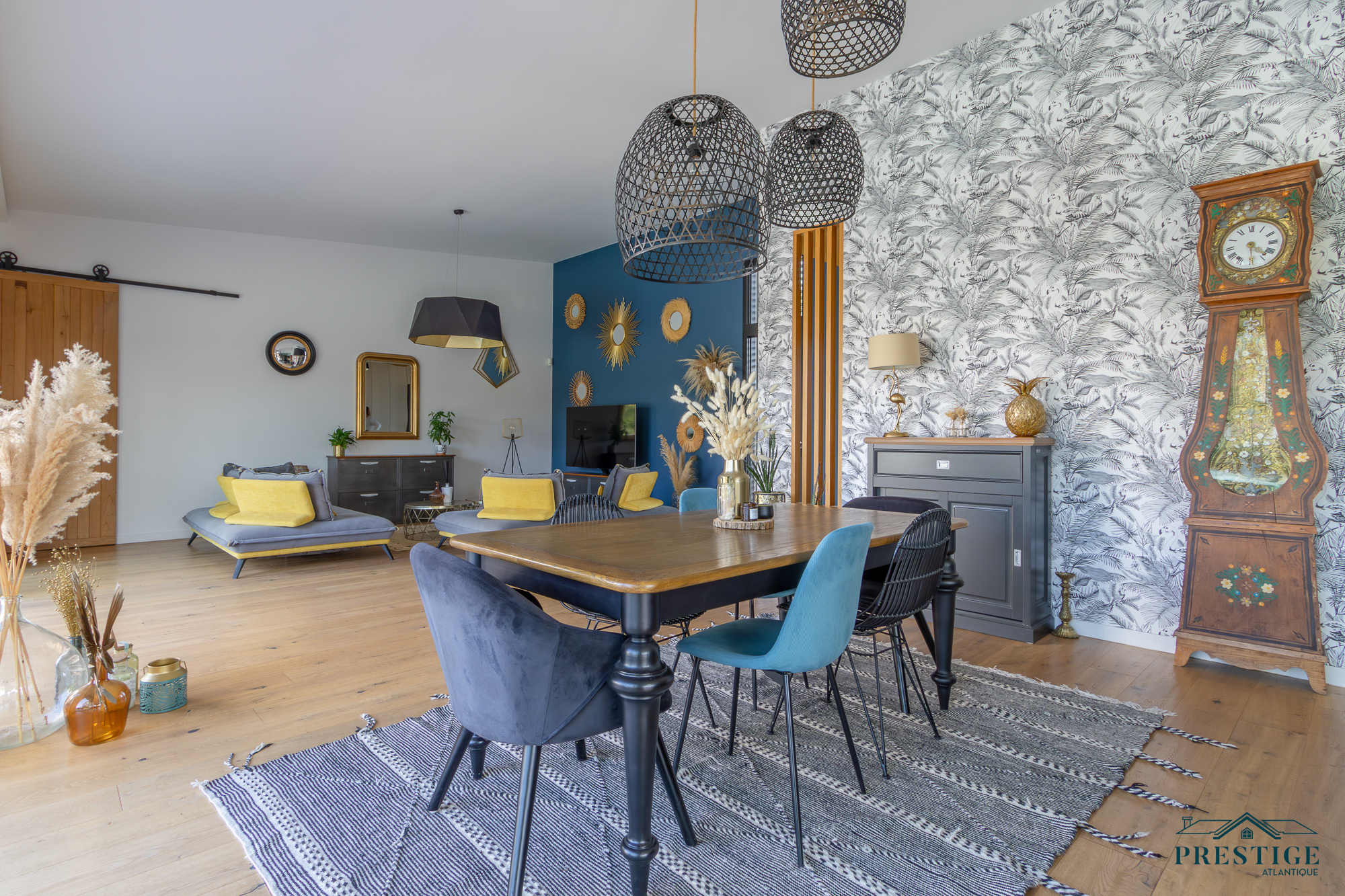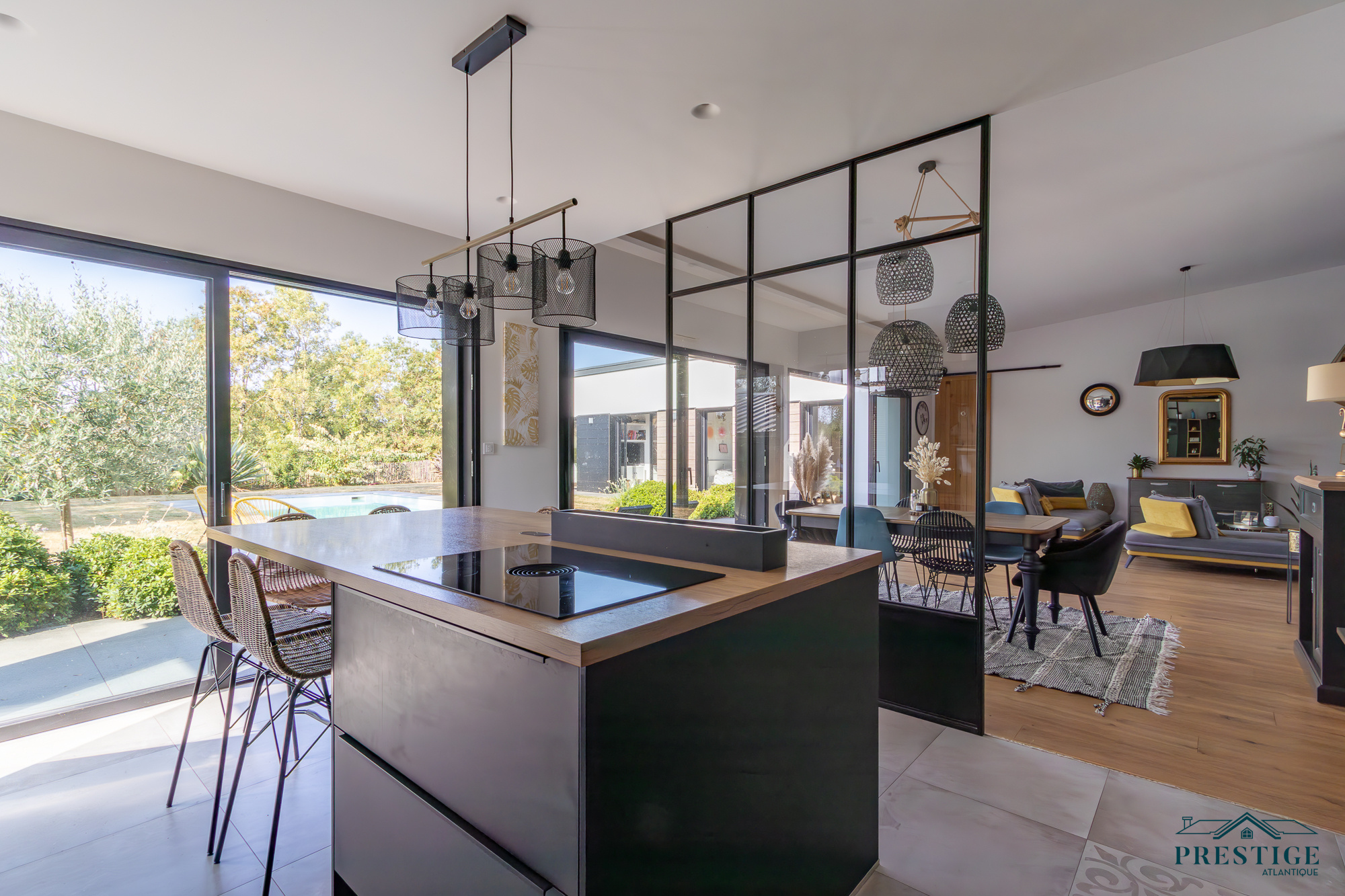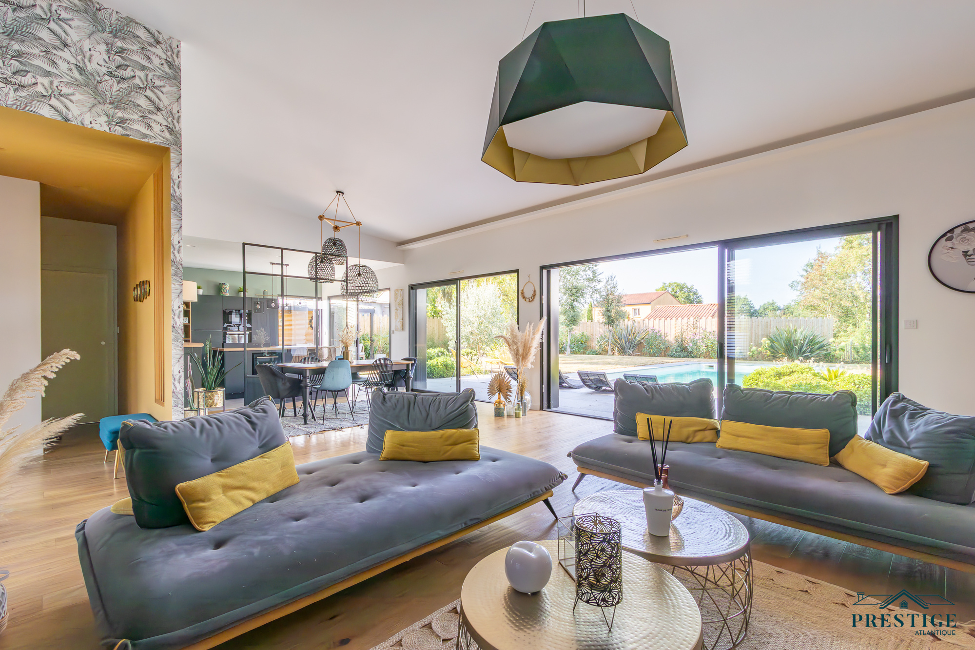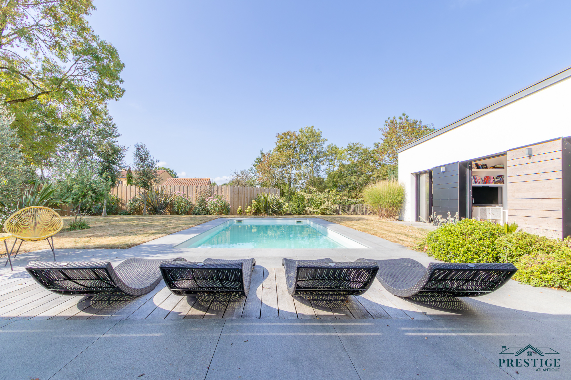 VENDU PAR PRESTIGE ATLANTIQUE. Nichée dans un écrin de verdure, cette somptueuse villa de plain-pied agencée avec goût et aux prestations abouties vous offre un confort des plus luxueux et dispose d’une superficie habitable de 180m2. Un hall d’entrée vient desservir un bel espace de vie agrémenté d’une cuisine aménagée équipée Premium et d’une salle à manger ouverte sur le salon, le tout à la vue imprenable de par ses larges baies vitrées et en accès direct à une vaste terrasse sublimée de sa piscine et de son pool house avec cuisine d'été. Les frontières entre l’intérieur et l’extérieur s’effacent pour offrir une qualité de vie des plus idéales. Une arrière cuisine/buanderie complète la distribution. L’espace nuit dévoile une magnifique suite parentale, trois chambres dont deux avec dressings intégrés, une salle d’eau ainsi qu’un bureau. Edifiée sur un terrain clos et arboré de 1300m2, une dépendance et un double garage donnent une touche finale à cette villa d’exception. Un bien rare aux nombreux atouts à l'abri des regards et au calme absolu. “Les informations sur les risques auxquels ce bien est exposé sont disponibles sur le site Géorisques http://www.georisques.gouv.fr”. Pour plus de renseignements ou pour organiser une visite privée, contactez-nous sans plus attendre, PRESTIGE ATLANTIQUE 02.40.21.91.13. Prix de vente 656 250€ FAI dont 5 % d'honoraires agence à la charge de l'acquéreur soit un prix net vendeur de 625 000€ (RCS. Saint- Nazaire 897 587 946).