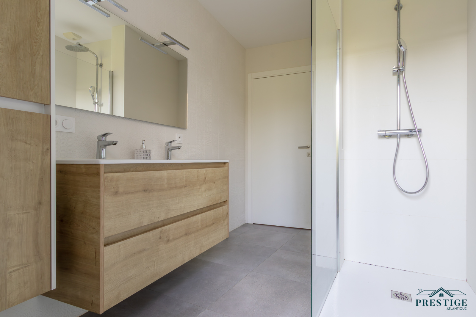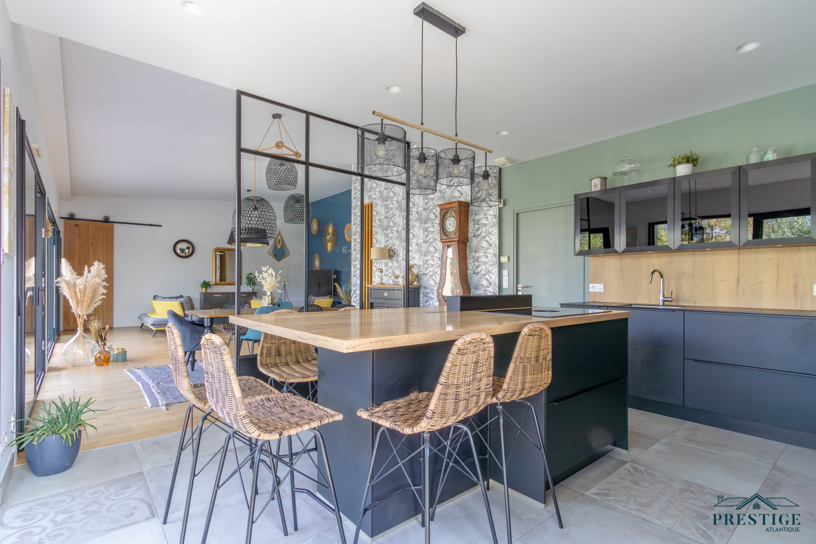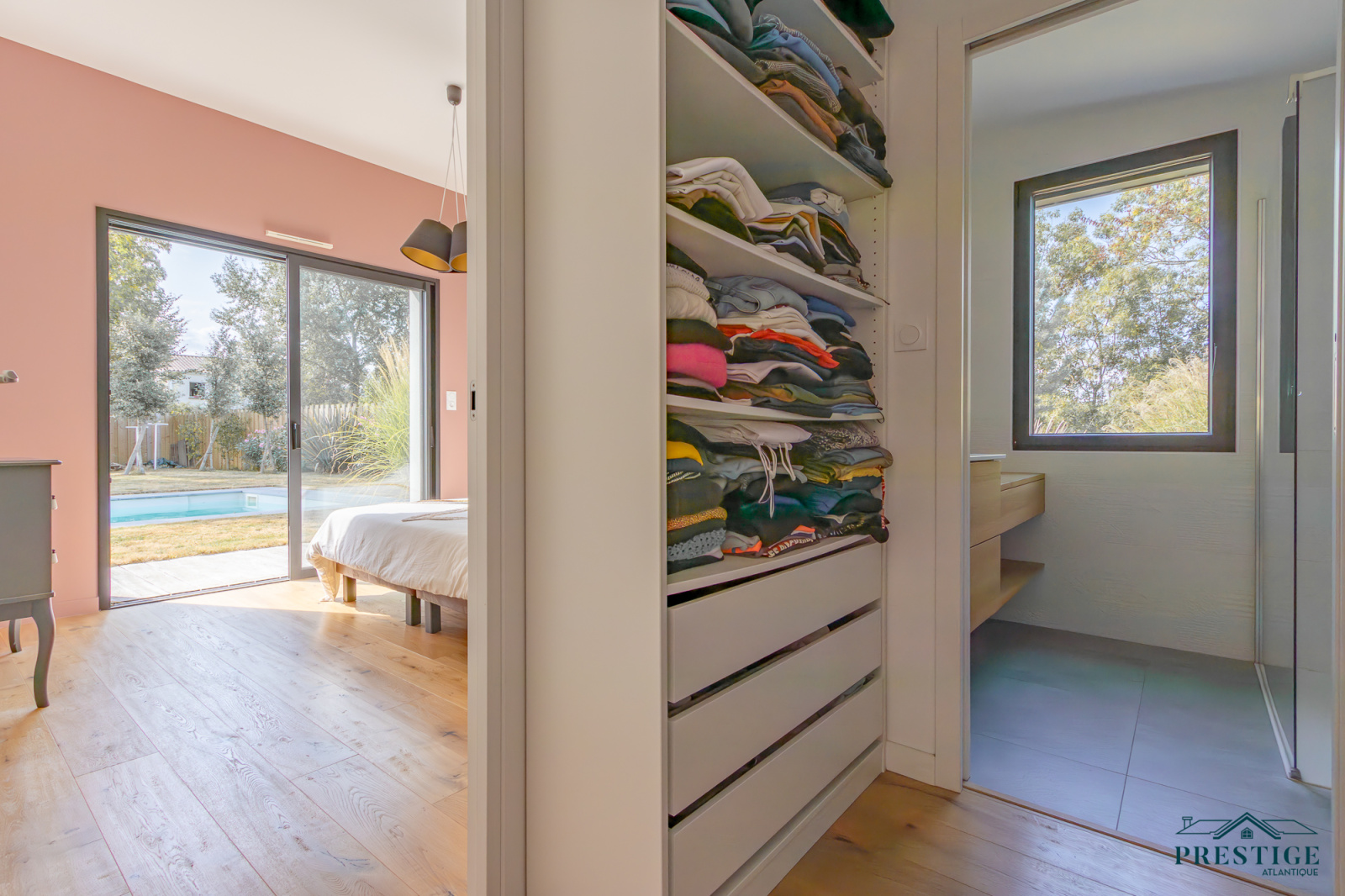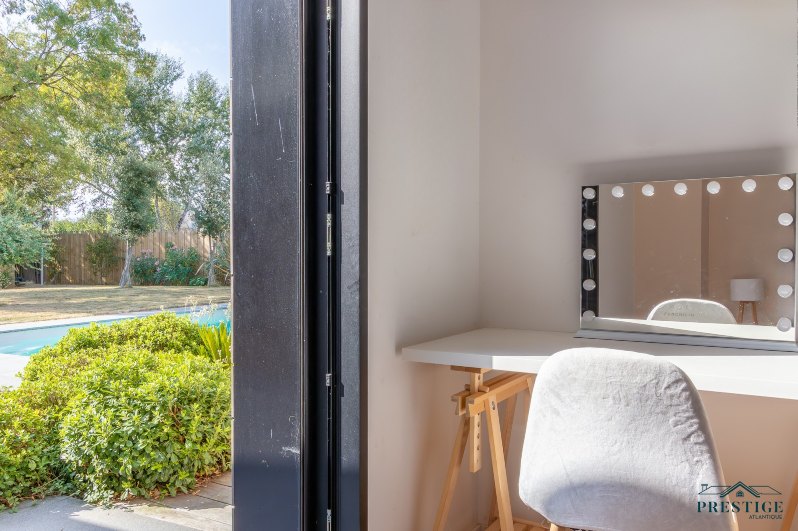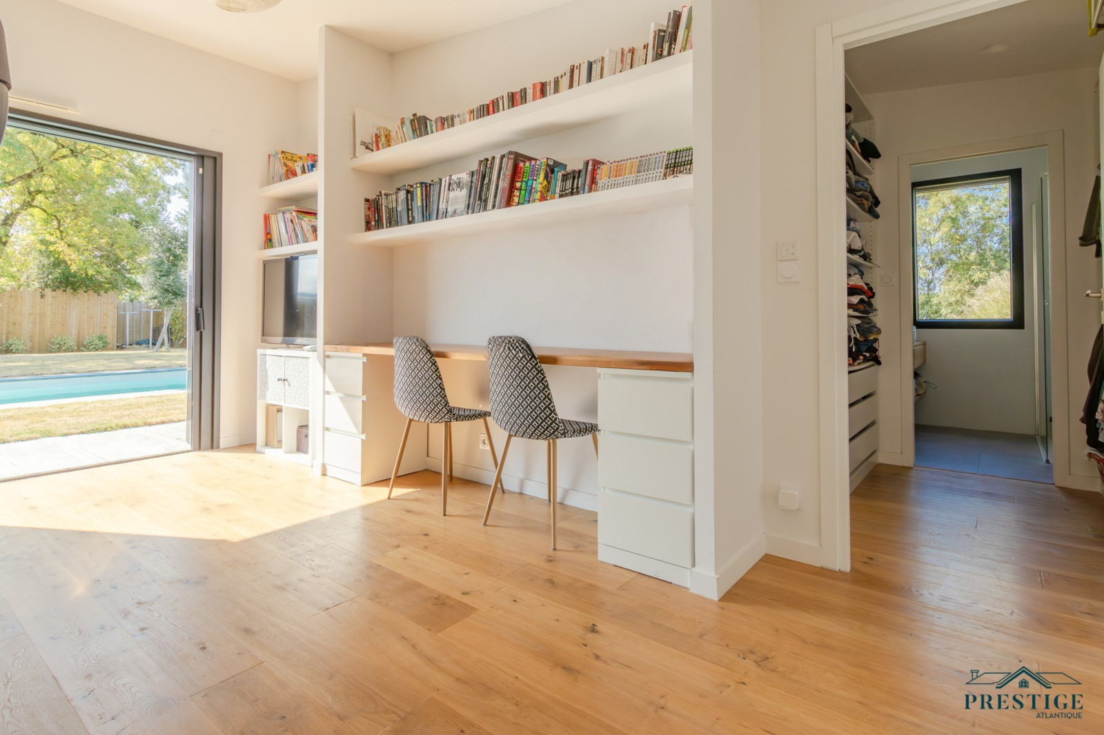 VENDU PAR PRESTIGE ATLANTIQUE. Nichée dans un écrin de verdure, cette somptueuse villa de plain-pied agencée avec goût et aux prestations abouties vous offre un confort des plus luxueux et dispose d’une superficie habitable de 180m2. Un hall d’entrée vient desservir un bel espace de vie agrémenté d’une cuisine aménagée équipée Premium et d’une salle à manger ouverte sur le salon, le tout à la vue imprenable de par ses larges baies vitrées et en accès direct à une vaste terrasse sublimée de sa piscine et de son pool house avec cuisine d'été. Les frontières entre l’intérieur et l’extérieur s’effacent pour offrir une qualité de vie des plus idéales. Une arrière cuisine/buanderie complète la distribution. L’espace nuit dévoile une magnifique suite parentale, trois chambres dont deux avec dressings intégrés, une salle d’eau ainsi qu’un bureau. Edifiée sur un terrain clos et arboré de 1300m2, une dépendance et un double garage donnent une touche finale à cette villa d’exception. Un bien rare aux nombreux atouts à l'abri des regards et au calme absolu. “Les informations sur les risques auxquels ce bien est exposé sont disponibles sur le site Géorisques http://www.georisques.gouv.fr”. Pour plus de renseignements ou pour organiser une visite privée, contactez-nous sans plus attendre, PRESTIGE ATLANTIQUE 02.40.21.91.13. Prix de vente 656 250€ FAI dont 5 % d'honoraires agence à la charge de l'acquéreur soit un prix net vendeur de 625 000€ (RCS. Saint- Nazaire 897 587 946).