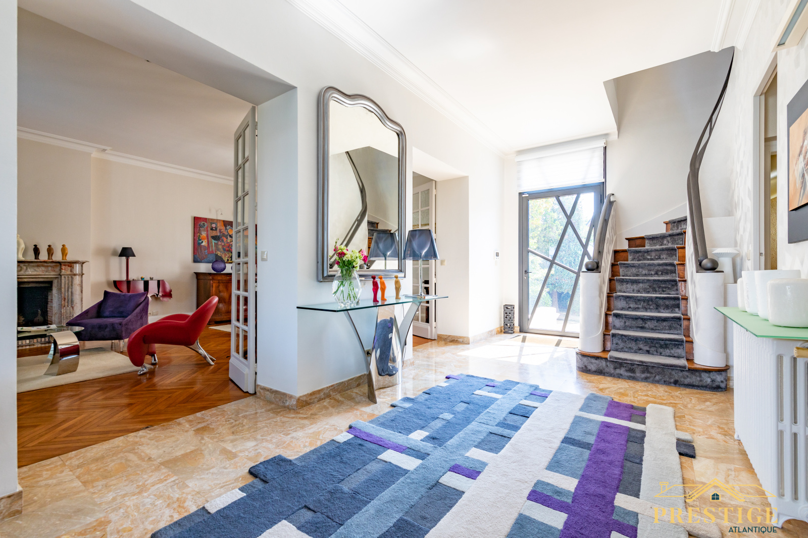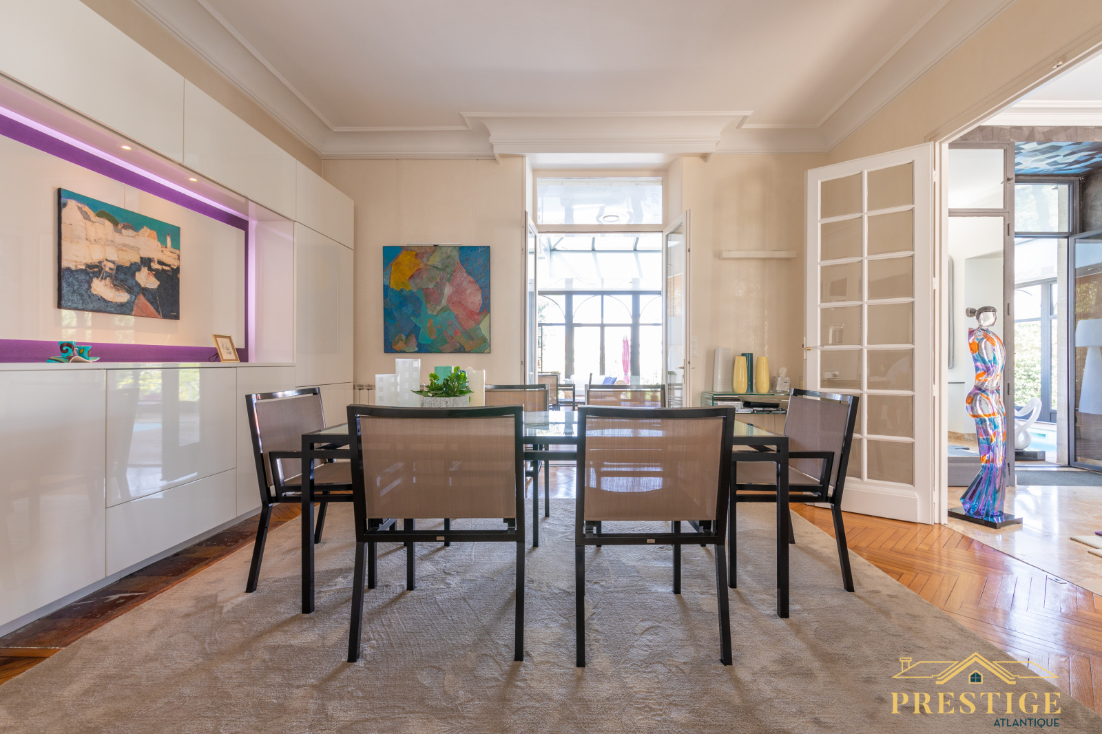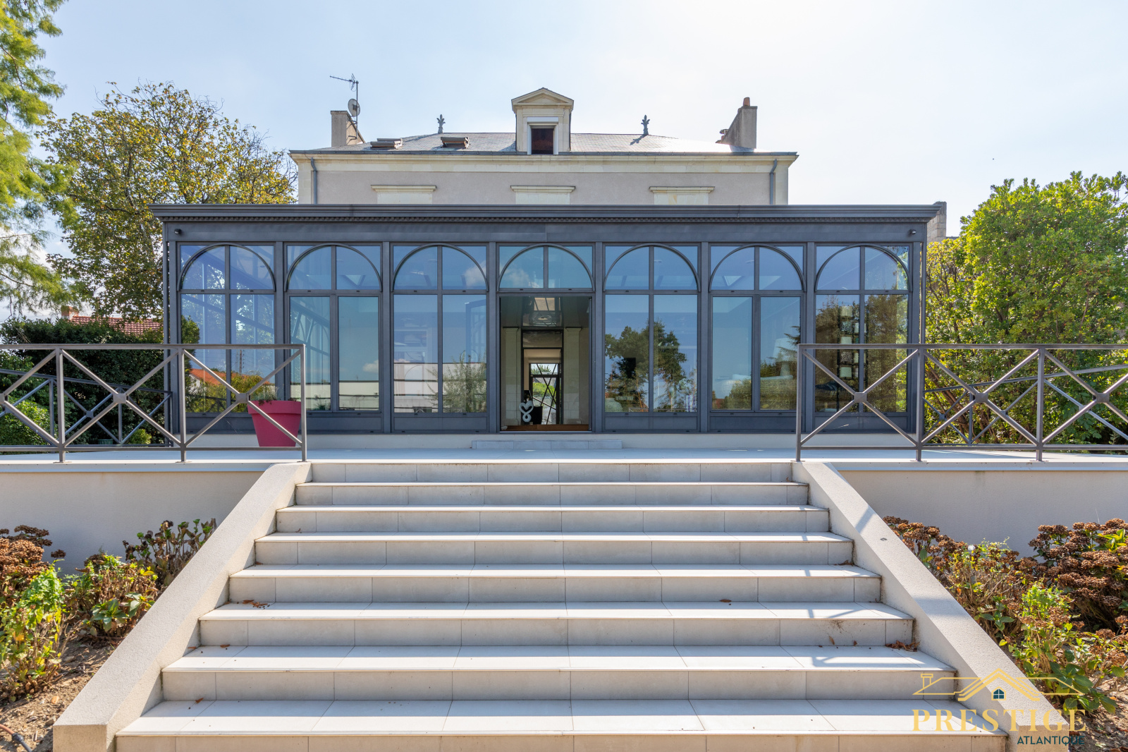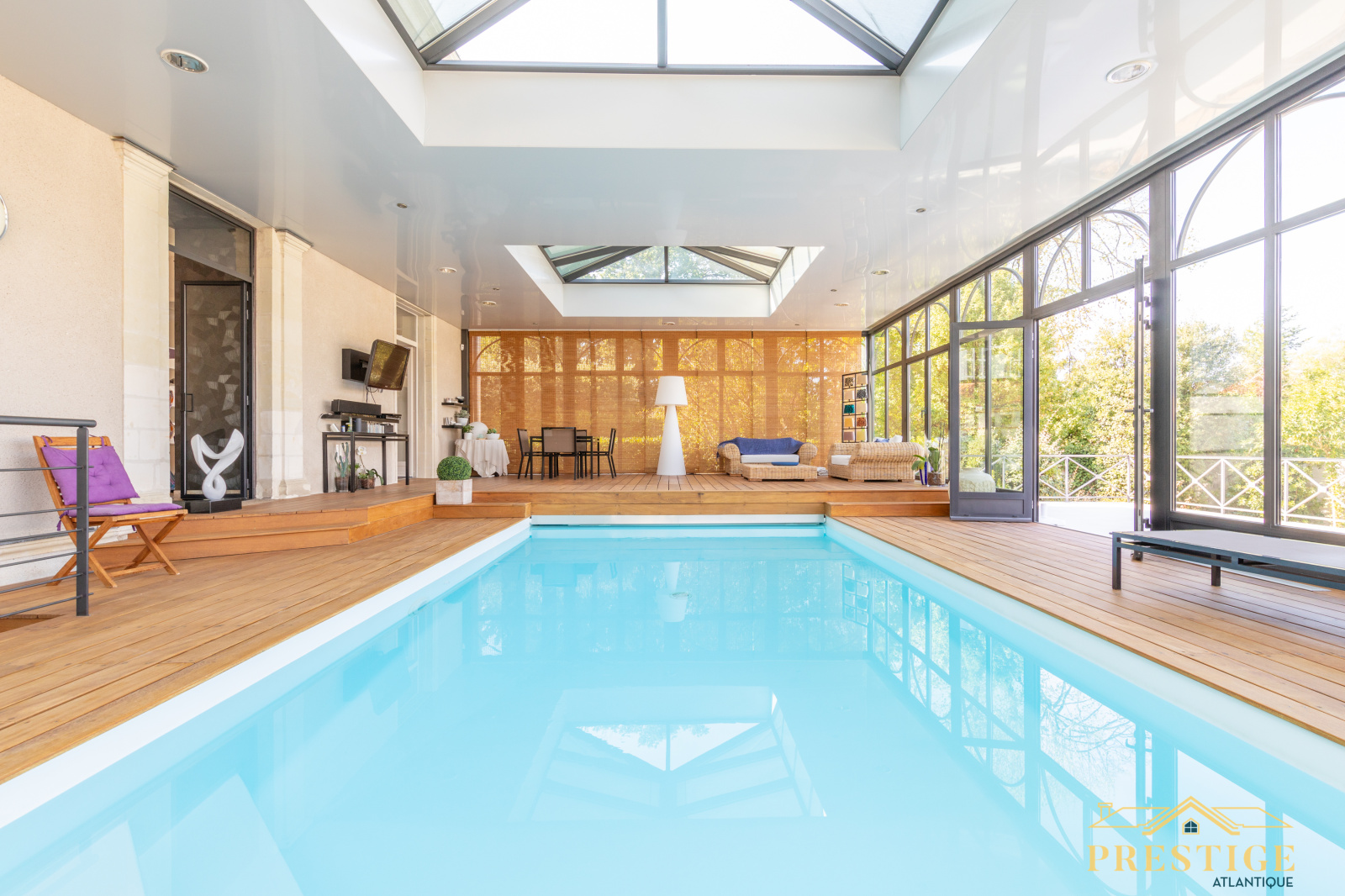 VENDU PAR PRESTIGE ATLANTIQUE. À 10 minutes de l’hyper-centre de Nantes, nichée dans un écrin de verdure et à l’abri des regards, cette maison bourgeoise aux prestations abouties et luxueuses dispose d’une superficie habitable de 383m2. Le hall d’entrée s’ouvre sur une double réception bénéficiant d’une belle hauteur sous plafond composée d’un vaste salon/séjour sur parquet en chêne massif agrémenté d’une cheminée en marbre et d’une cuisine aménagée équipée en open space sur une salle à manger donnant à une magnifique verrière sublimée d’un espace piscine, le tout à l’exposition solaire idéale prolongé d’une terrasse surplombant le jardin. Un havre de paix alliant modernité et authenticité à proximité immédiate de l’intra-muros Nantais. L’émerveillement continue aux étages, le premier offre une majestueuse suite parentale avec salle de bains privative et dressing sur mesure, deux belles chambres avec rangements et une salle d’eau ainsi qu’un bureau viennent compléter ce niveau. Le dernier étage est composé d’un grand salon détente, deux chambres, une salle d’eau et le tout paré de poutres apparentes. Le niveau inférieur profitant d’un accès privatif offre de nombreux espaces : cave, buanderie et une attention toute particulière avec un vestiaire et une douche dédiés aux nageurs. Édifiée sur une parcelle de 1610m2 clos de murs en pierres sans vis-à-vis, un triple garage confirme la qualité de ce bien offrant un cadre de vie idyllique à l’immédiateté de Nantes (gare-sud et aéroport à dix minutes) des écoles et des transports. “Les informations sur les risques auxquels ce bien est exposé sont disponibles sur le site Géorisques http://www.georisques.gouv.fr”. Pour plus de renseignements ou pour organiser une visite privée, contactez-nous sans plus attendre, PRESTIGE ATLANTIQUE 02.40.21.91.13. Les honoraires d'agence sont à la charge vendeur (RCS. Saint- Nazaire 897 587 946).
