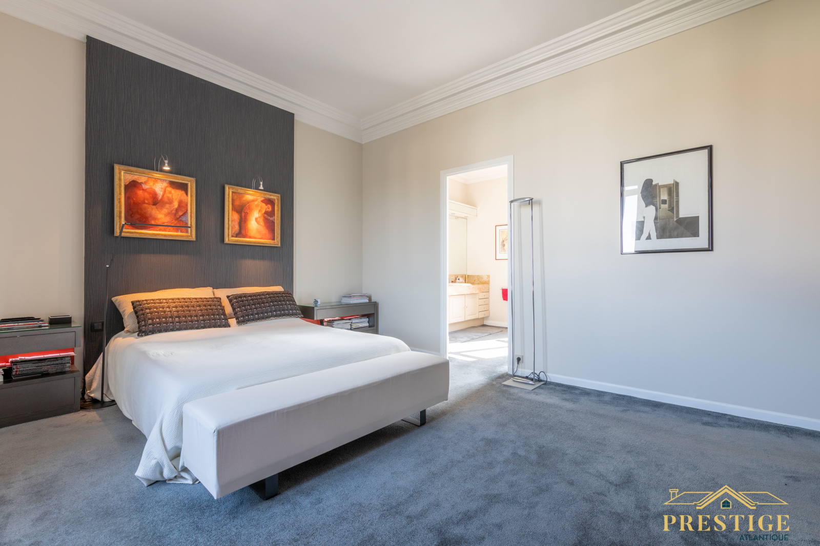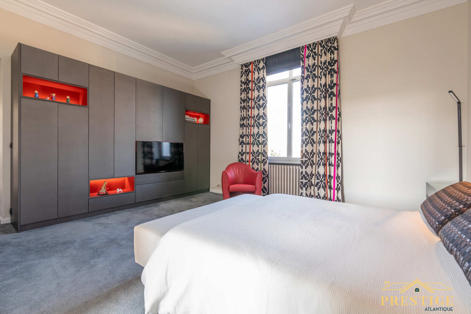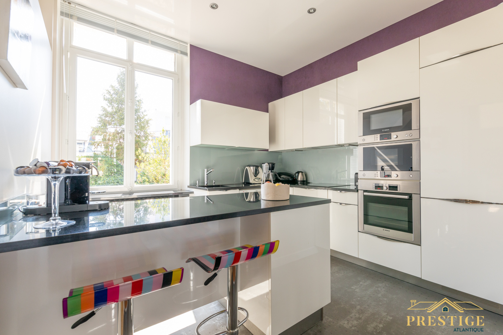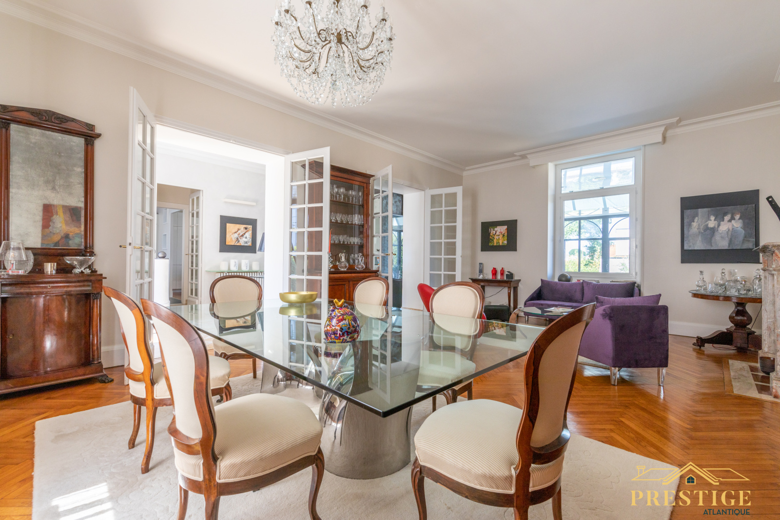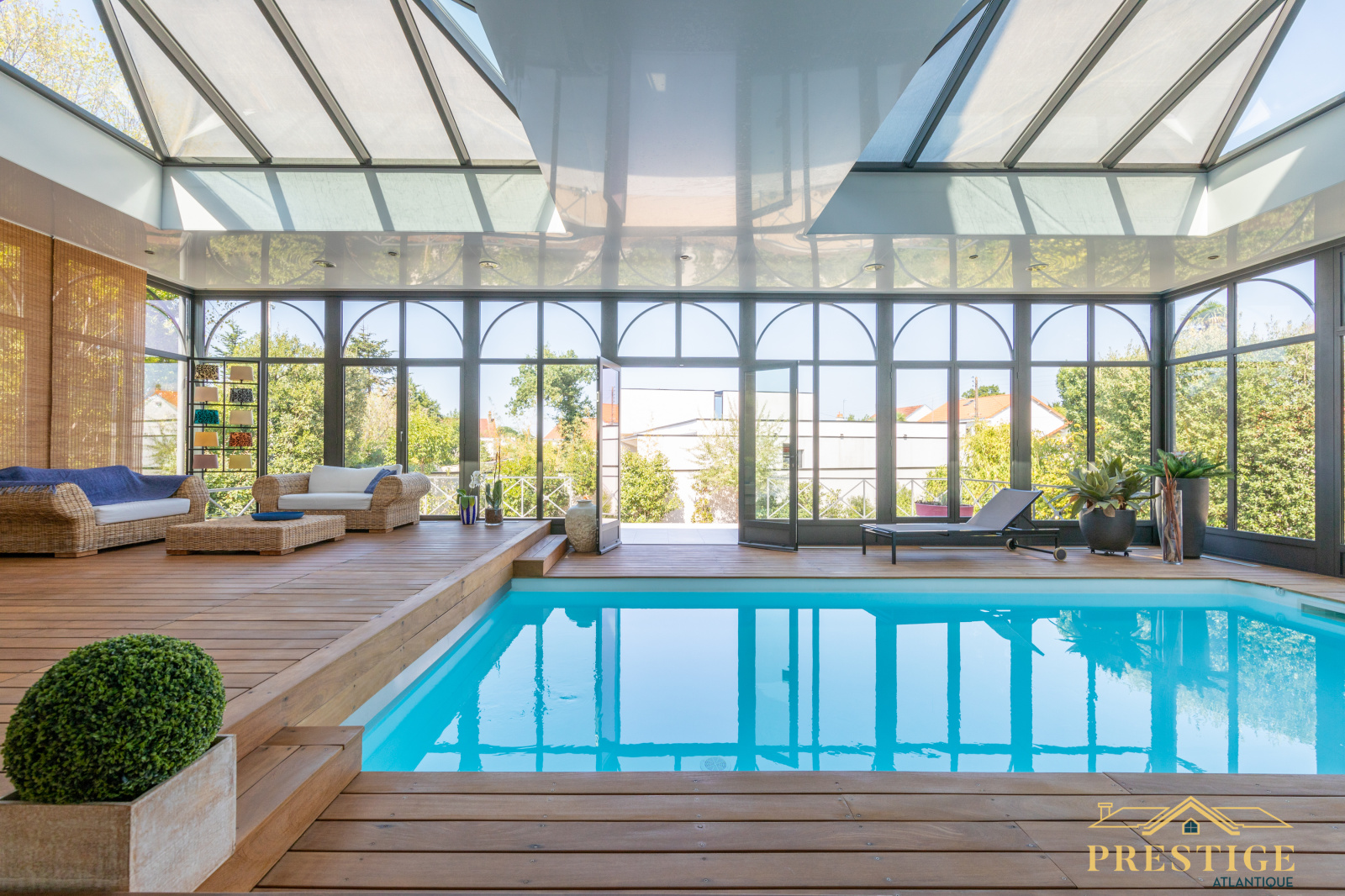 VENDU PAR PRESTIGE ATLANTIQUE. À 10 minutes de l’hyper-centre de Nantes, nichée dans un écrin de verdure et à l’abri des regards, cette maison bourgeoise aux prestations abouties et luxueuses dispose d’une superficie habitable de 383m2. Le hall d’entrée s’ouvre sur une double réception bénéficiant d’une belle hauteur sous plafond composée d’un vaste salon/séjour sur parquet en chêne massif agrémenté d’une cheminée en marbre et d’une cuisine aménagée équipée en open space sur une salle à manger donnant à une magnifique verrière sublimée d’un espace piscine, le tout à l’exposition solaire idéale prolongé d’une terrasse surplombant le jardin. Un havre de paix alliant modernité et authenticité à proximité immédiate de l’intra-muros Nantais. L’émerveillement continue aux étages, le premier offre une majestueuse suite parentale avec salle de bains privative et dressing sur mesure, deux belles chambres avec rangements et une salle d’eau ainsi qu’un bureau viennent compléter ce niveau. Le dernier étage est composé d’un grand salon détente, deux chambres, une salle d’eau et le tout paré de poutres apparentes. Le niveau inférieur profitant d’un accès privatif offre de nombreux espaces : cave, buanderie et une attention toute particulière avec un vestiaire et une douche dédiés aux nageurs. Édifiée sur une parcelle de 1610m2 clos de murs en pierres sans vis-à-vis, un triple garage confirme la qualité de ce bien offrant un cadre de vie idyllique à l’immédiateté de Nantes (gare-sud et aéroport à dix minutes) des écoles et des transports. “Les informations sur les risques auxquels ce bien est exposé sont disponibles sur le site Géorisques http://www.georisques.gouv.fr”. Pour plus de renseignements ou pour organiser une visite privée, contactez-nous sans plus attendre, PRESTIGE ATLANTIQUE 02.40.21.91.13. Les honoraires d'agence sont à la charge vendeur (RCS. Saint- Nazaire 897 587 946).