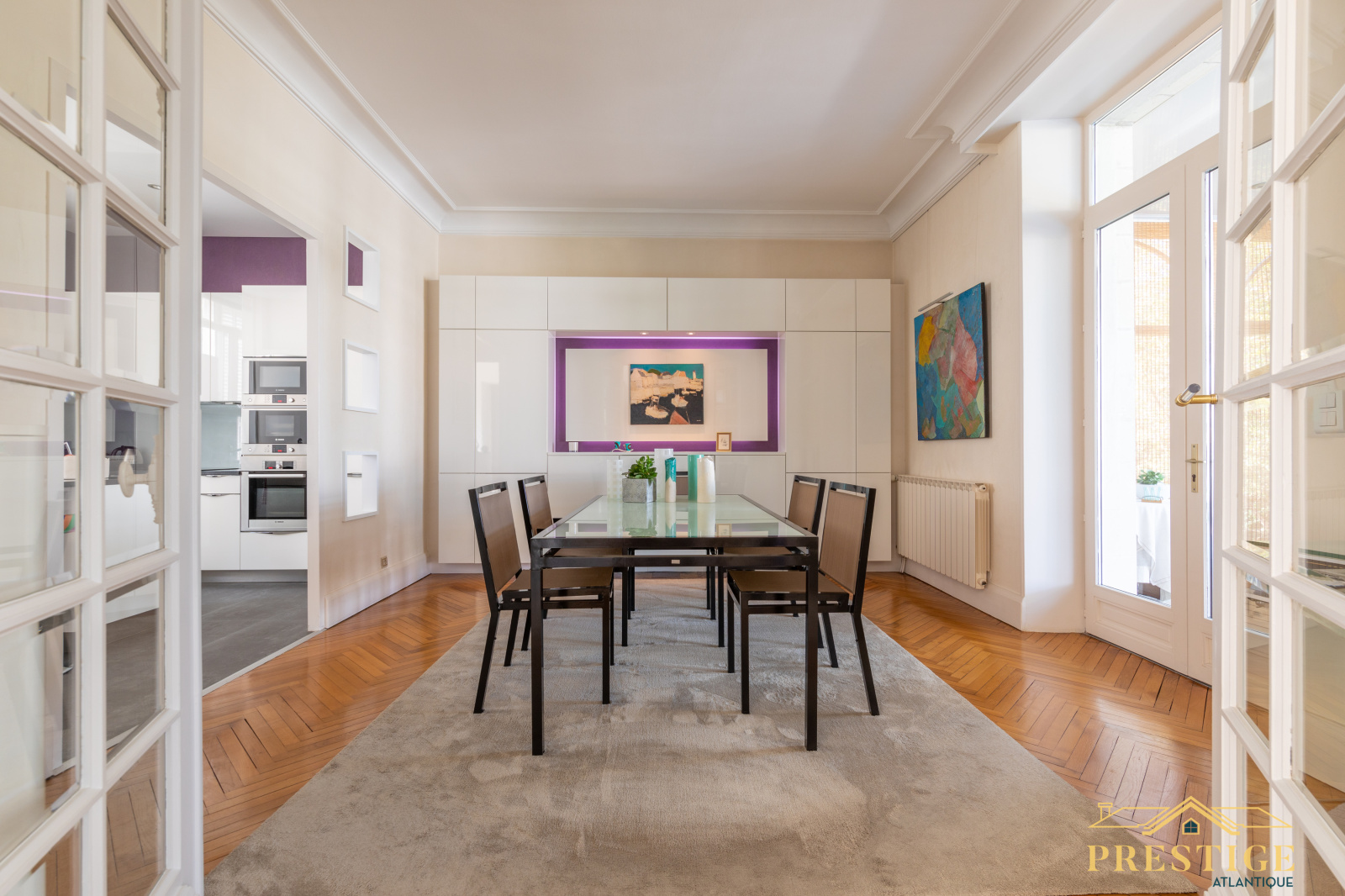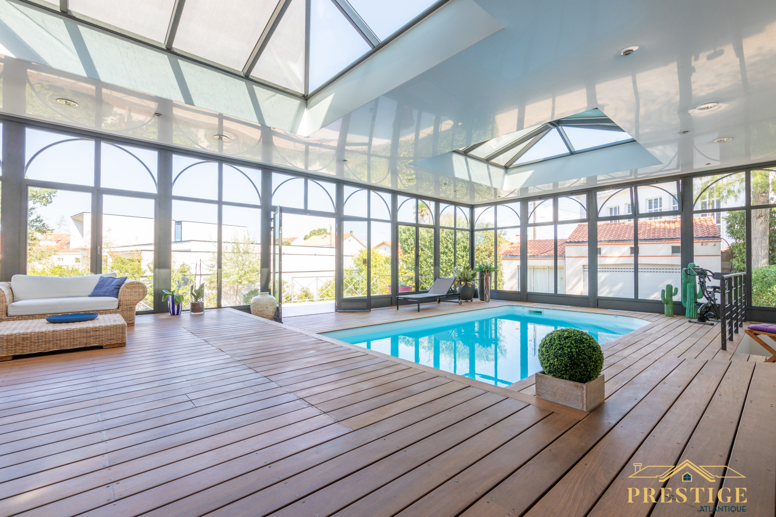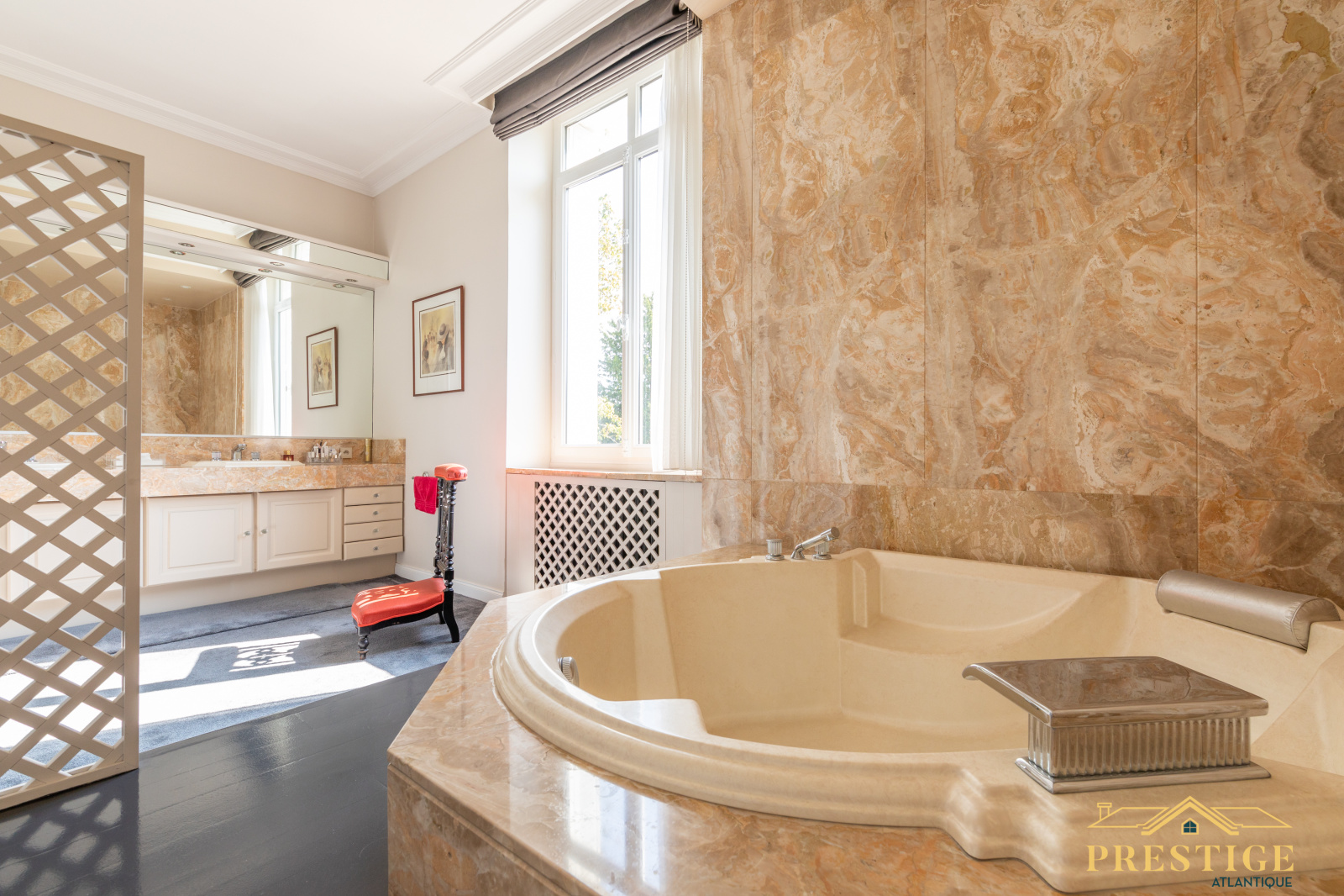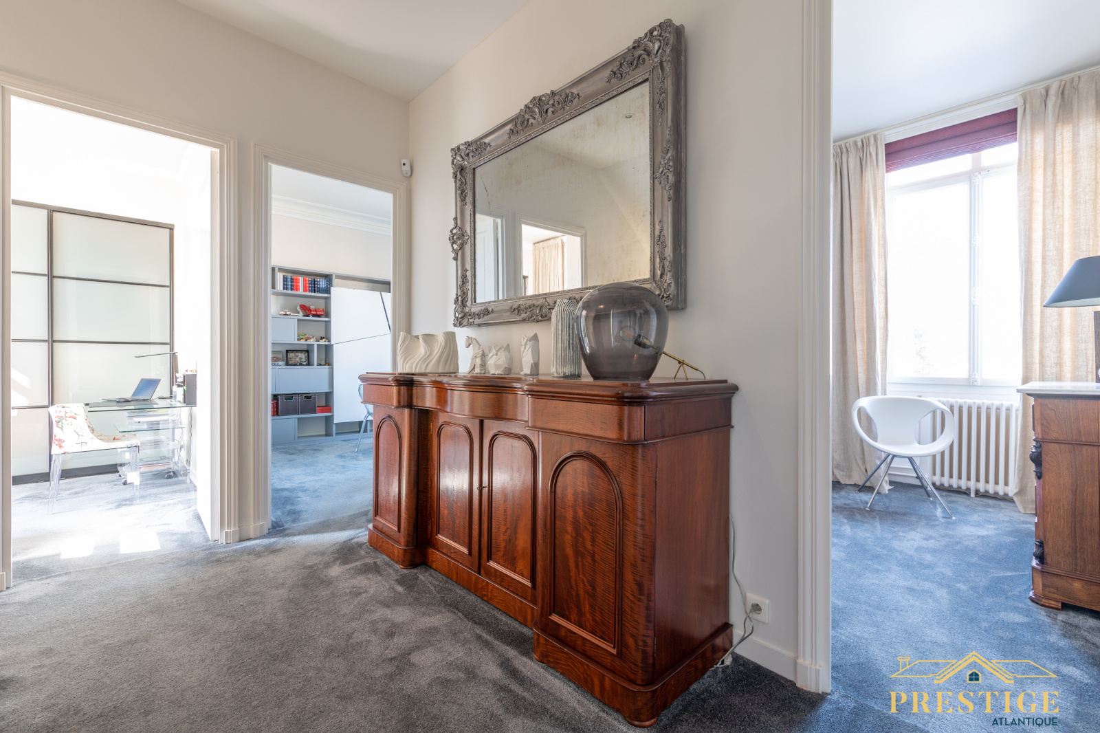 VENDU PAR PRESTIGE ATLANTIQUE. À 10 minutes de l’hyper-centre de Nantes, nichée dans un écrin de verdure et à l’abri des regards, cette maison bourgeoise aux prestations abouties et luxueuses dispose d’une superficie habitable de 383m2. Le hall d’entrée s’ouvre sur une double réception bénéficiant d’une belle hauteur sous plafond composée d’un vaste salon/séjour sur parquet en chêne massif agrémenté d’une cheminée en marbre et d’une cuisine aménagée équipée en open space sur une salle à manger donnant à une magnifique verrière sublimée d’un espace piscine, le tout à l’exposition solaire idéale prolongé d’une terrasse surplombant le jardin. Un havre de paix alliant modernité et authenticité à proximité immédiate de l’intra-muros Nantais. L’émerveillement continue aux étages, le premier offre une majestueuse suite parentale avec salle de bains privative et dressing sur mesure, deux belles chambres avec rangements et une salle d’eau ainsi qu’un bureau viennent compléter ce niveau. Le dernier étage est composé d’un grand salon détente, deux chambres, une salle d’eau et le tout paré de poutres apparentes. Le niveau inférieur profitant d’un accès privatif offre de nombreux espaces : cave, buanderie et une attention toute particulière avec un vestiaire et une douche dédiés aux nageurs. Édifiée sur une parcelle de 1610m2 clos de murs en pierres sans vis-à-vis, un triple garage confirme la qualité de ce bien offrant un cadre de vie idyllique à l’immédiateté de Nantes (gare-sud et aéroport à dix minutes) des écoles et des transports. “Les informations sur les risques auxquels ce bien est exposé sont disponibles sur le site Géorisques http://www.georisques.gouv.fr”. Pour plus de renseignements ou pour organiser une visite privée, contactez-nous sans plus attendre, PRESTIGE ATLANTIQUE 02.40.21.91.13. Les honoraires d'agence sont à la charge vendeur (RCS. Saint- Nazaire 897 587 946).
