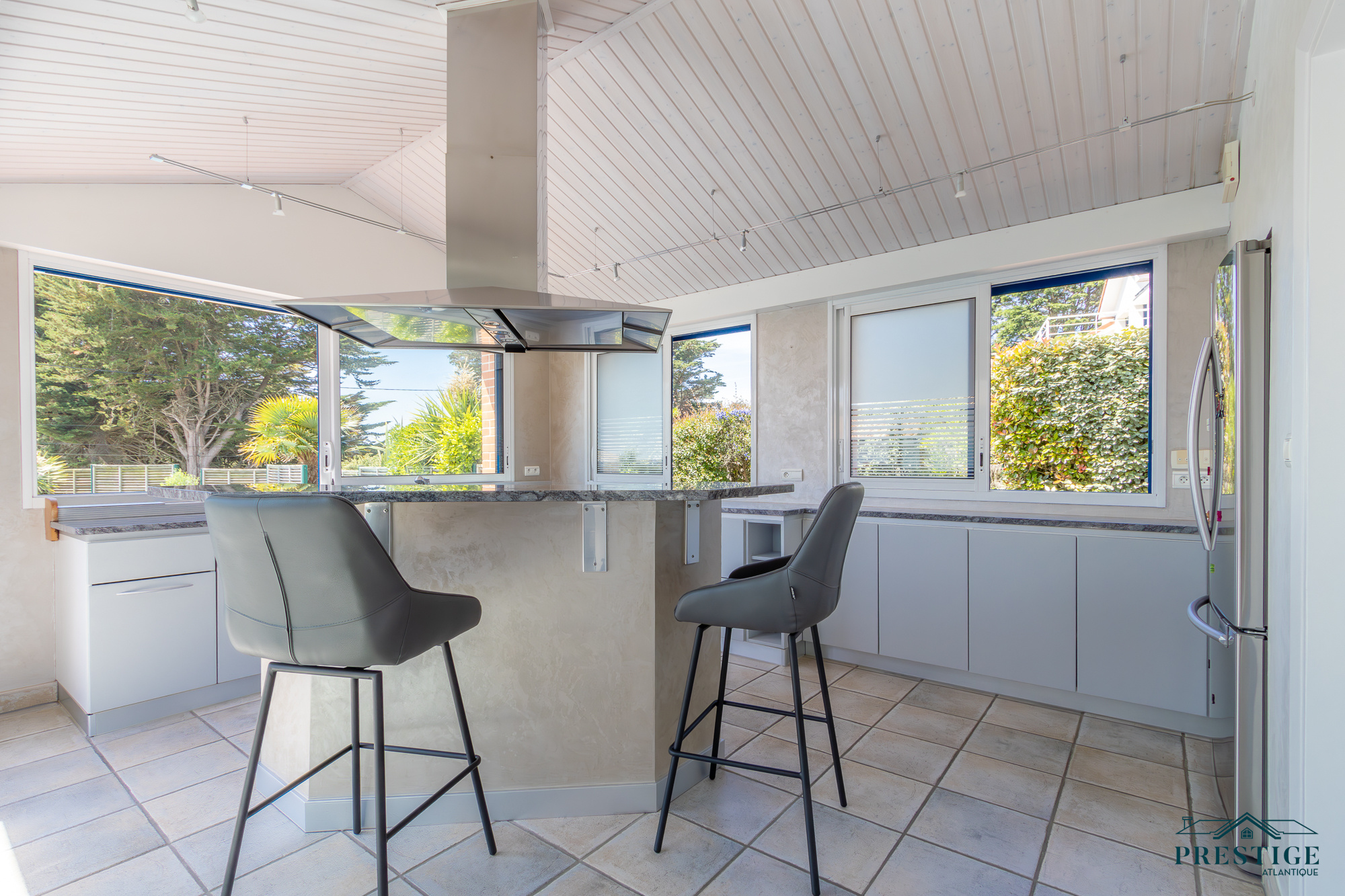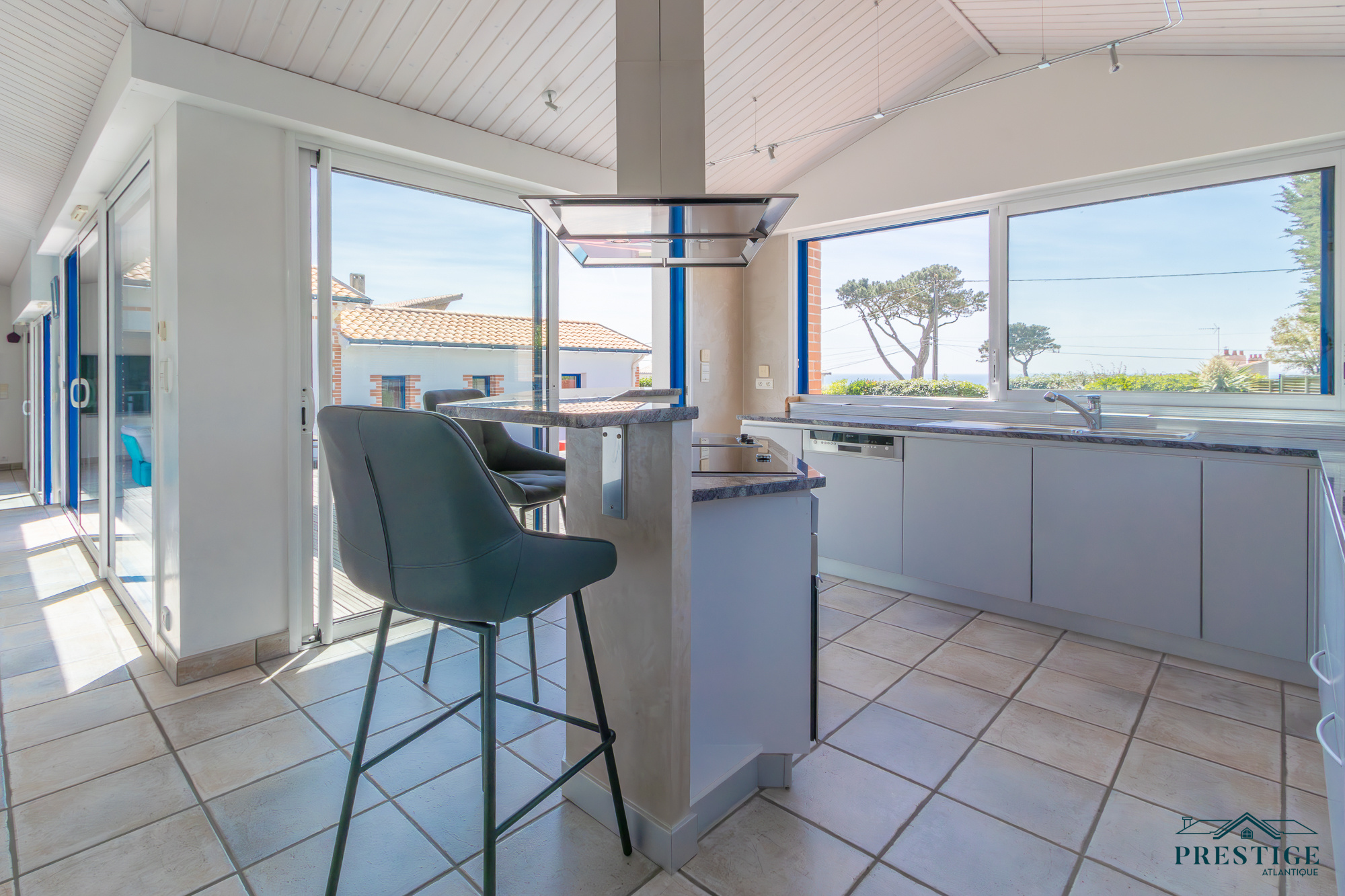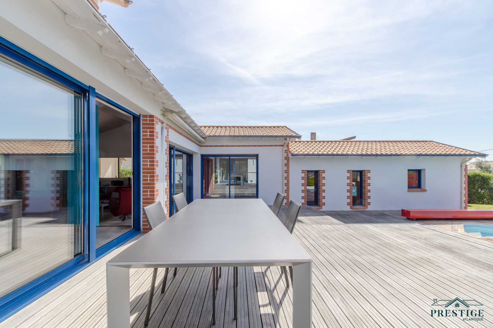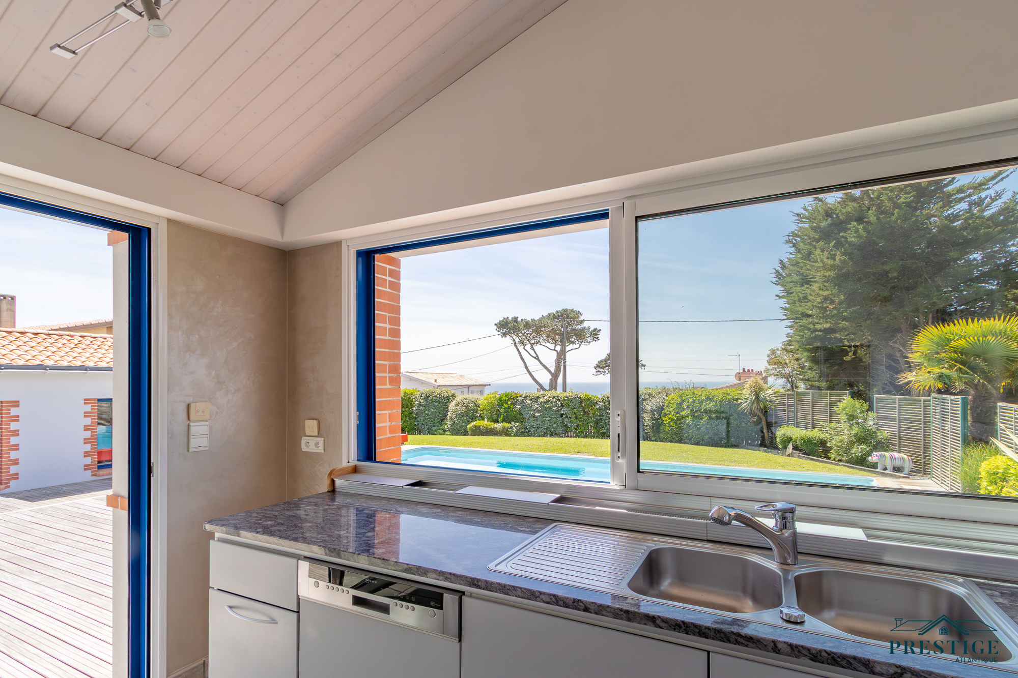 VENDU PAR PRESTIGE ATLANTIQUE. RARE SUR LE MARCHÉ. Vue imprenable sur l’océan, cette villa de style contemporain, signée par l'architecte Guillaumet dispose d’une superficie habitable de 220 m². Une majestueuse porte d'entrée sur pivot ouvre sur un double espace de vie aux volumes généreux doté de grandes baies vitrées offrant une vue imprenable sur la piscine et la mer. La cuisine indépendante mais ouverte, avec son arrière cuisine conjugue fonctionnalité et convivialité, le tout en accès direct au séjour et à la terrasse. L’espace nuit de plain-pied offre une suite parentale comprenant salle de bains, dressing et bureau, ainsi qu'une seconde suite et une troisième chambre, toutes deux ouvertes sur un patio vitré baigné de lumière. À l’étage, un palier dessert deux belles chambres profitant d’une vue imprenable sur la mer, accompagnées d’une salle d’eau. Édifiée sur un terrain clos, arboré et paysager de 1316 m², un patio intimiste, un garage double, une cave et une dépendance complètent ce bien rare. Cette villa d’exception séduit par son style typique de la Côte de Jade, un parfait équilibre entre maison familiale et résidence de vacances en bord de mer. Des prestations soignées et de beaux volumes au sein d’un environnement calme et privilégié. “Les informations sur les risques auxquels ce bien est exposé sont disponibles sur le site Géorisques http://www.georisques.gouv.fr”. Pour plus de renseignements ou pour organiser une visite privée, contactez-nous sans plus attendre, PRESTIGE ATLANTIQUE 02.40.21.91.13. Prix de vente 1 596 000€ FAI dont 5 % d'honoraires agence à la charge de l'acquéreur soit un prix net vendeur de 1 520 000€ (RCS. Saint- Nazaire 897 587 946).