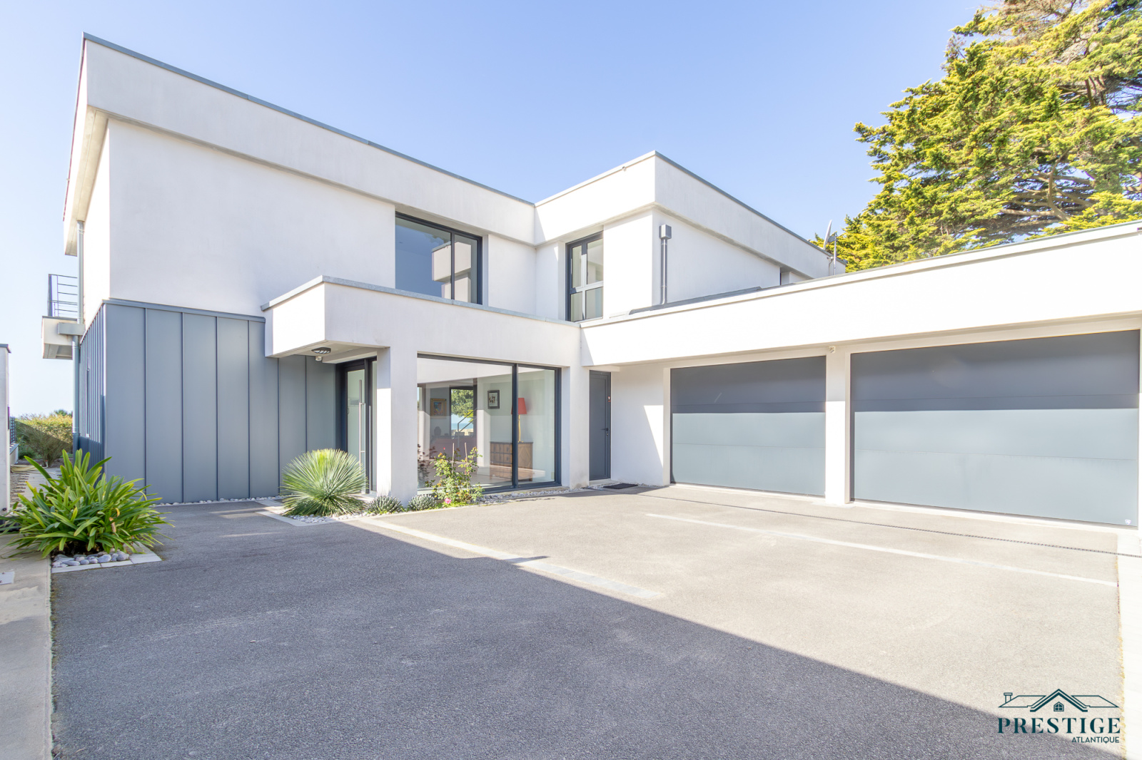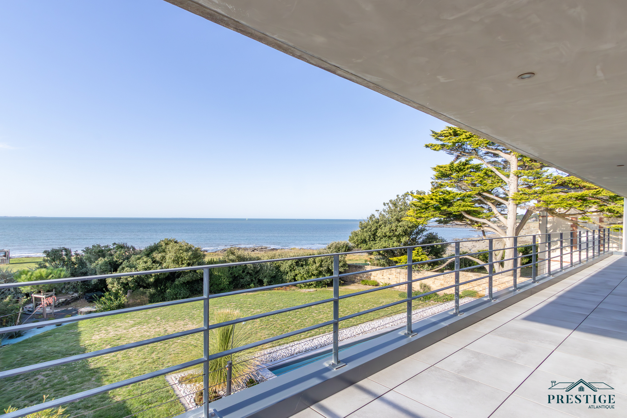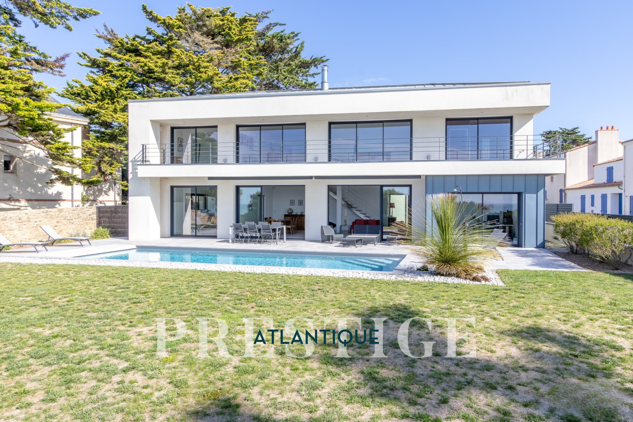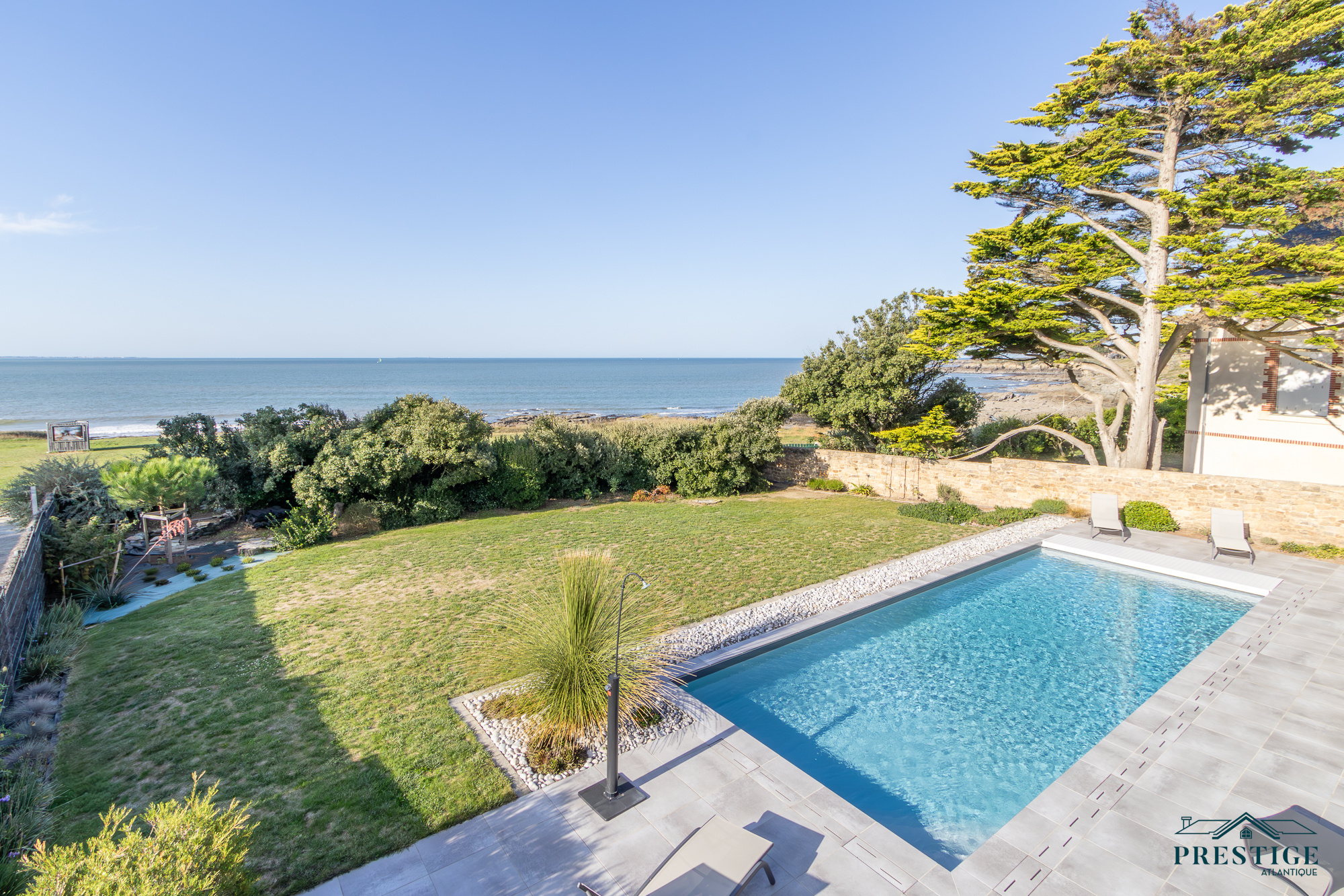 EXCLUSIVITÉ - PRESTIGE ATLANTIQUE. Située au bout d’une impasse dans un cadre paisible et préservé, cette villa contemporaine d’exception déploie 256 m² habitables et bénéficie d’une vue panoramique imprenable sur la mer. Dès l’entrée, la lumière et l’océan s’imposent dans un vaste espace de vie composé d’un salon à cheminée suspendue, d’un séjour et d’une cuisine haut de gamme, le tout en accès direct à son jardin sublimé de sa piscine. Une arrière-cuisine et une buanderie agrémentent la distribution. Une suite parentale vient parfaire la vie de plain-pied. A l’étage, deux chambres se partagent une salle de bains centrale, tandis qu’une suite dispose de sa propre salle d’eau. Une attention toute particulière pour la master room comprenant un dressing, une salle d’eau privative et une terrasse bénéficiant d’un panorama exceptionnel océan. Un salon additionnel vient parfaire ce niveau invitant à contempler le littoral. Édifiée sur une parcelle paysager de 961 m², un vaste garage donne une touche finale à ce bien. Une villa de prestige, à l’architecture contemporaine et aux prestations soignées offrant un spectacle océanique à couper le souffle.“Les informations sur les risques auxquels ce bien est exposé sont disponibles sur le site Géorisques http://www.georisques.gouv.fr”. Pour plus de renseignements ou pour organiser une visite privée, contactez-nous sans plus attendre, PRESTIGE ATLANTIQUE 02.40.21.91.13. Prix de vente 2 467 500€ FAI dont 5 % d'honoraires agence à la charge de l'acquéreur soit un prix net vendeur de 2 350 000 € (RCS. Saint- Nazaire 897 587 946).
