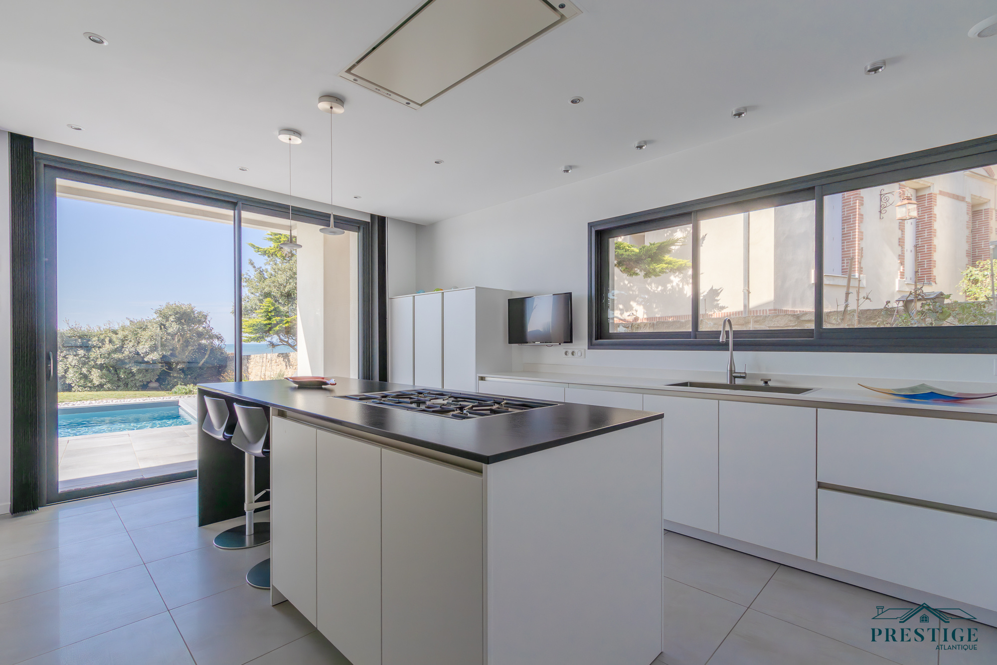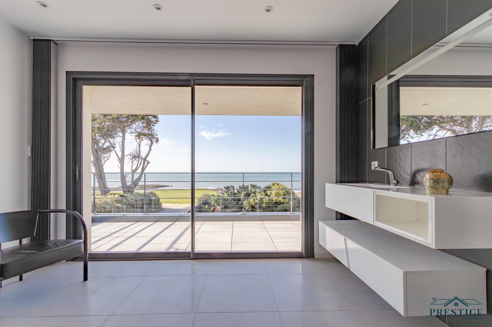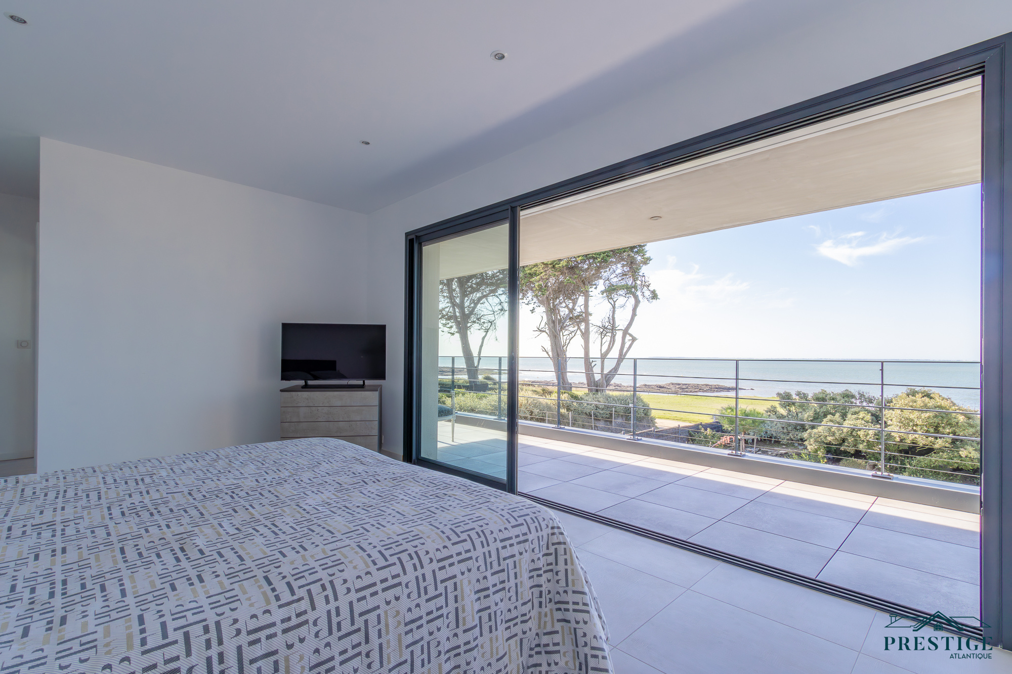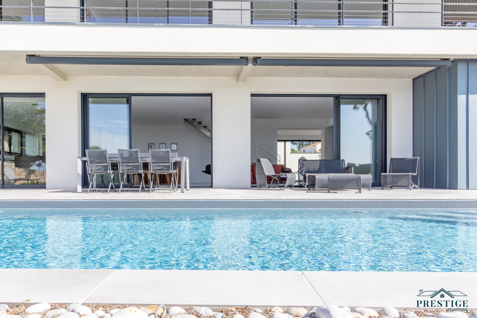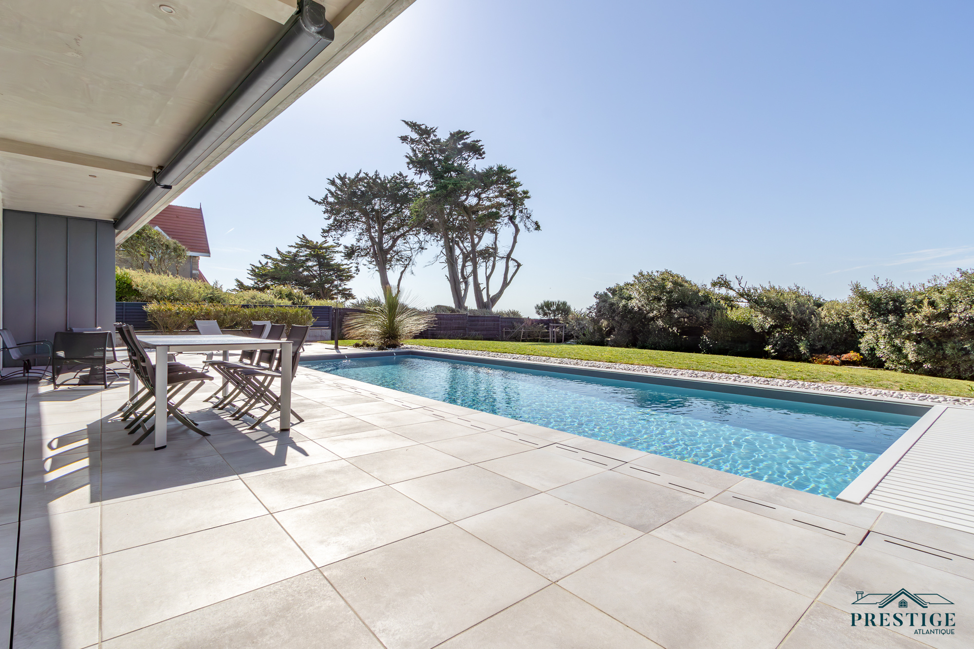 EXCLUSIVITÉ - PRESTIGE ATLANTIQUE. Située au bout d’une impasse dans un cadre paisible et préservé, cette villa contemporaine d’exception déploie 256 m² habitables et bénéficie d’une vue panoramique imprenable sur la mer. Dès l’entrée, la lumière et l’océan s’imposent dans un vaste espace de vie composé d’un salon à cheminée suspendue, d’un séjour et d’une cuisine haut de gamme, le tout en accès direct à son jardin sublimé de sa piscine. Une arrière-cuisine et une buanderie agrémentent la distribution. Une suite parentale vient parfaire la vie de plain-pied. A l’étage, deux chambres se partagent une salle de bains centrale, tandis qu’une suite dispose de sa propre salle d’eau. Une attention toute particulière pour la master room comprenant un dressing, une salle d’eau privative et une terrasse bénéficiant d’un panorama exceptionnel océan. Un salon additionnel vient parfaire ce niveau invitant à contempler le littoral. Édifiée sur une parcelle paysager de 961 m², un vaste garage donne une touche finale à ce bien. Une villa de prestige, à l’architecture contemporaine et aux prestations soignées offrant un spectacle océanique à couper le souffle.“Les informations sur les risques auxquels ce bien est exposé sont disponibles sur le site Géorisques http://www.georisques.gouv.fr”. Pour plus de renseignements ou pour organiser une visite privée, contactez-nous sans plus attendre, PRESTIGE ATLANTIQUE 02.40.21.91.13. Prix de vente 2 467 500€ FAI dont 5 % d'honoraires agence à la charge de l'acquéreur soit un prix net vendeur de 2 350 000 € (RCS. Saint- Nazaire 897 587 946).