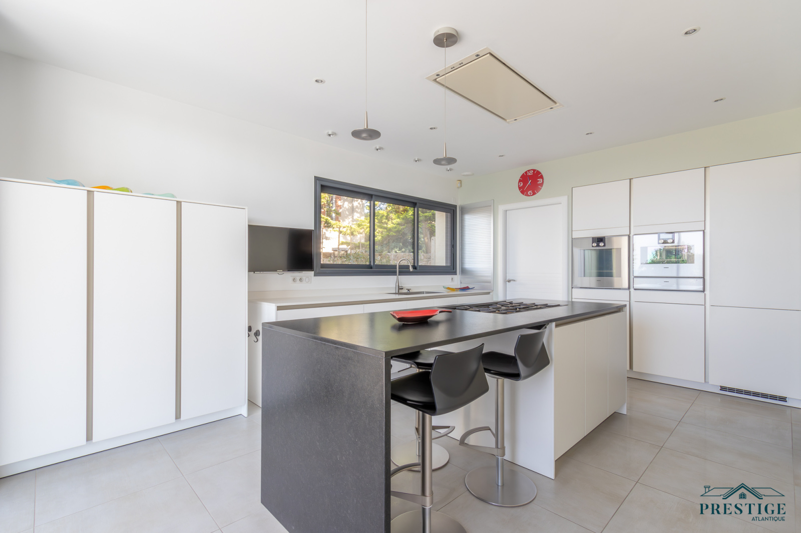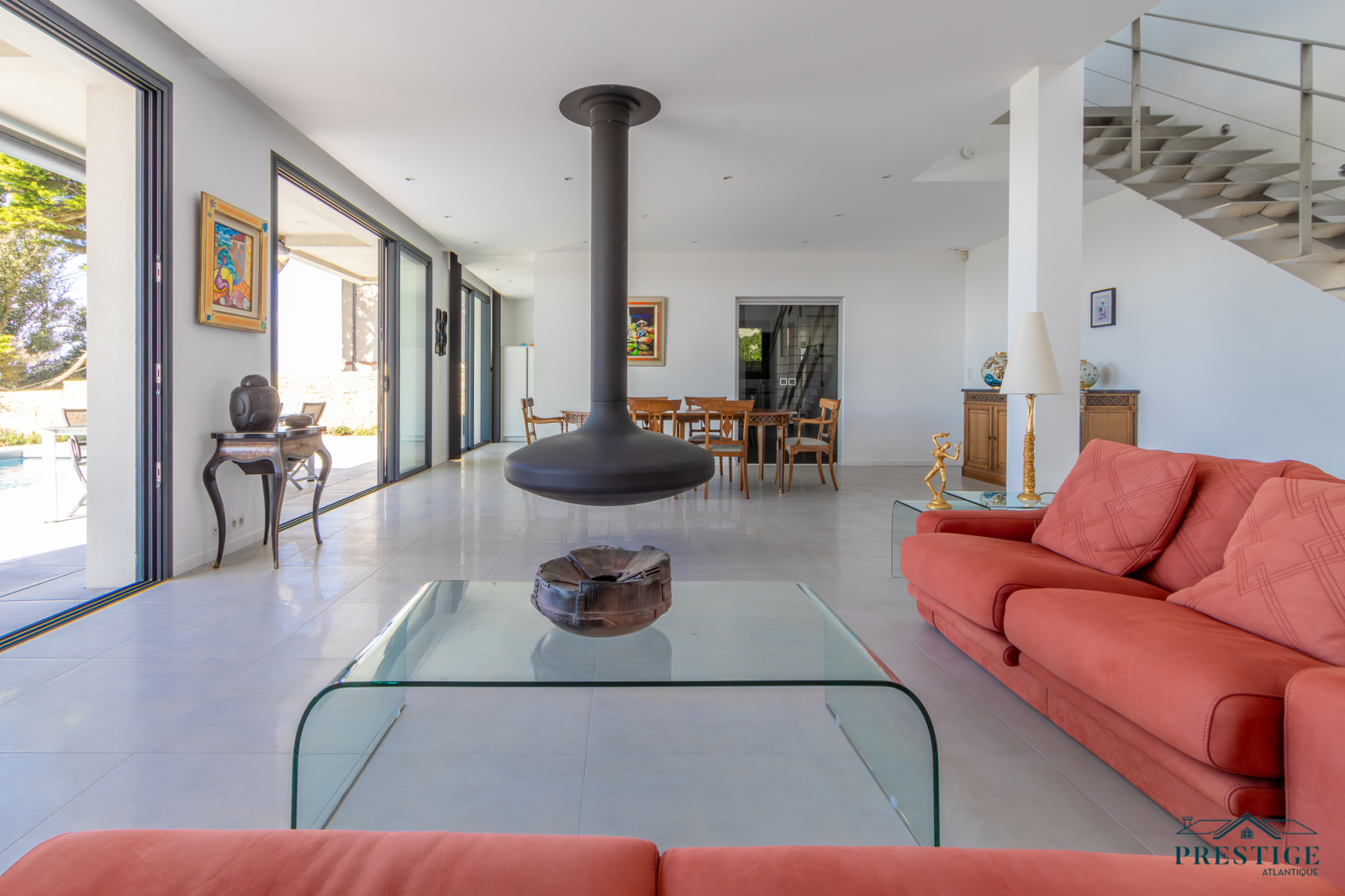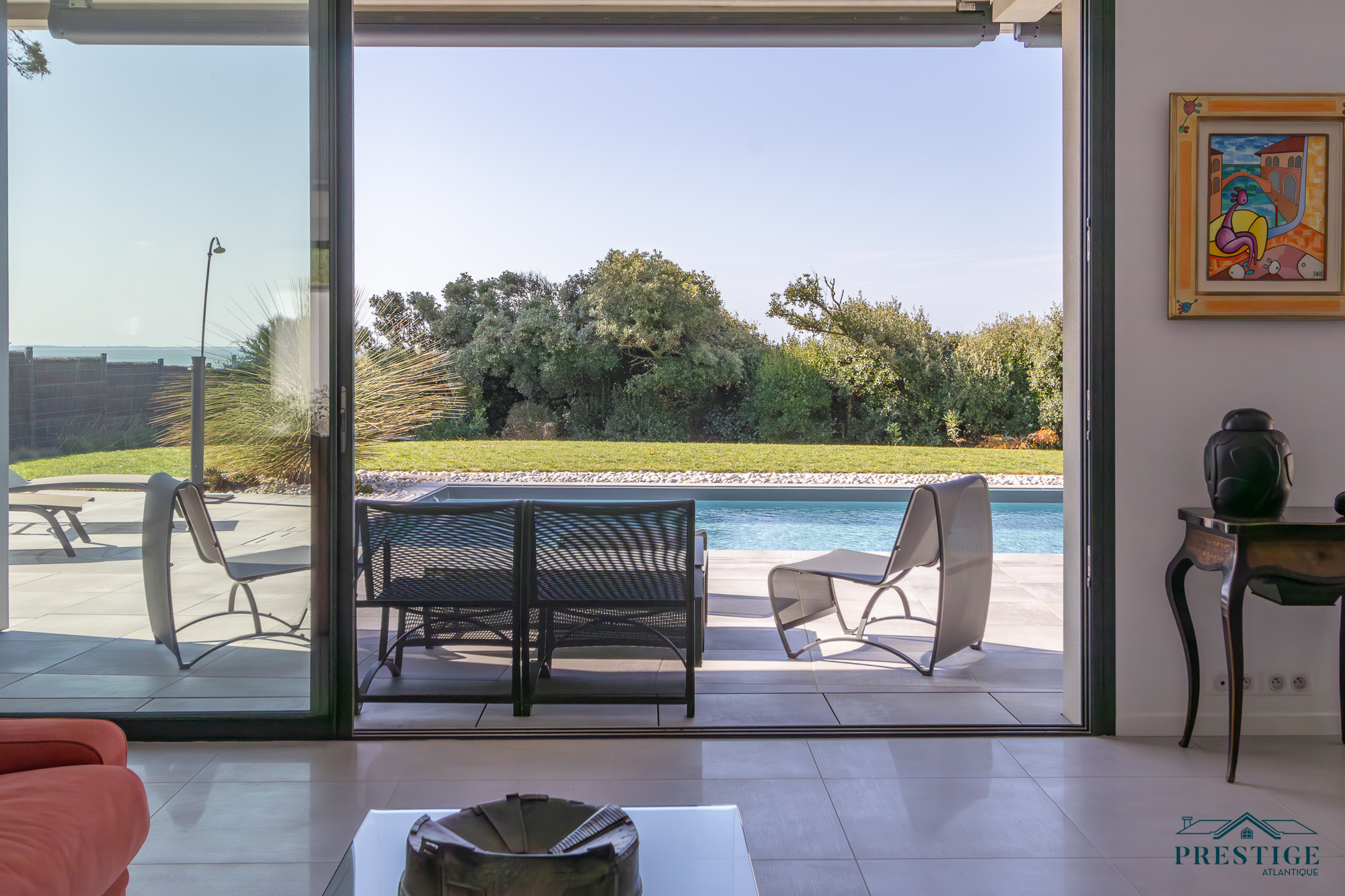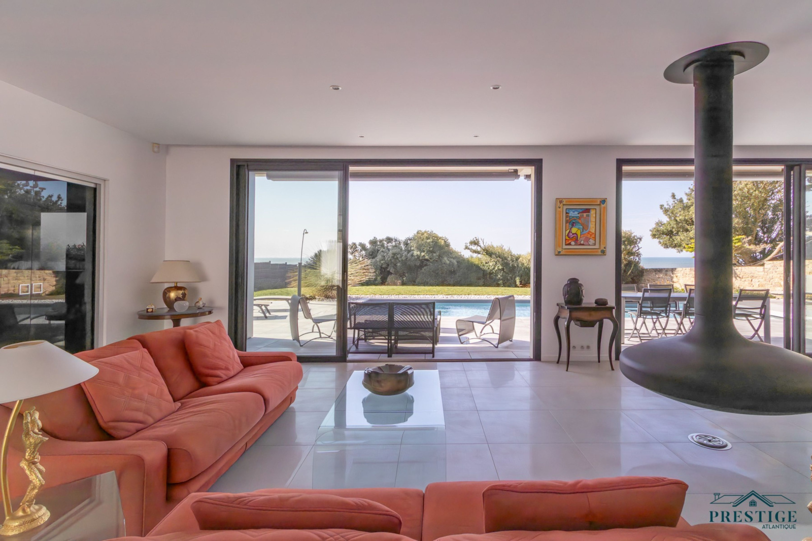EXCLUSIVITÉ - PRESTIGE ATLANTIQUE. Située au bout d’une impasse dans un cadre paisible et préservé, cette villa contemporaine d’exception déploie 256 m² habitables et bénéficie d’une vue panoramique imprenable sur la mer. Dès l’entrée, la lumière et l’océan s’imposent dans un vaste espace de vie composé d’un salon à cheminée suspendue, d’un séjour et d’une cuisine haut de gamme, le tout en accès direct à son jardin sublimé de sa piscine. Une arrière-cuisine et une buanderie agrémentent la distribution. Une suite parentale vient parfaire la vie de plain-pied. A l’étage, deux chambres se partagent une salle de bains centrale, tandis qu’une suite dispose de sa propre salle d’eau. Une attention toute particulière pour la master room comprenant un dressing, une salle d’eau privative et une terrasse bénéficiant d’un panorama exceptionnel océan. Un salon additionnel vient parfaire ce niveau invitant à contempler le littoral. Édifiée sur une parcelle paysager de 961 m², un vaste garage donne une touche finale à ce bien. Une villa de prestige, à l’architecture contemporaine et aux prestations soignées offrant un spectacle océanique à couper le souffle.“Les informations sur les risques auxquels ce bien est exposé sont disponibles sur le site Géorisques http://www.georisques.gouv.fr”. Pour plus de renseignements ou pour organiser une visite privée, contactez-nous sans plus attendre, PRESTIGE ATLANTIQUE 02.40.21.91.13. Prix de vente 2 467 500€ FAI dont 5 % d'honoraires agence à la charge de l'acquéreur soit un prix net vendeur de 2 350 000 € (RCS. Saint- Nazaire 897 587 946).