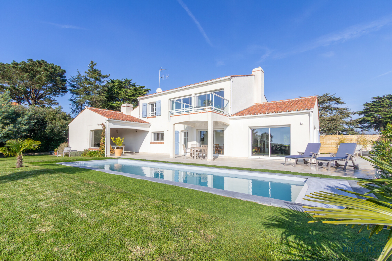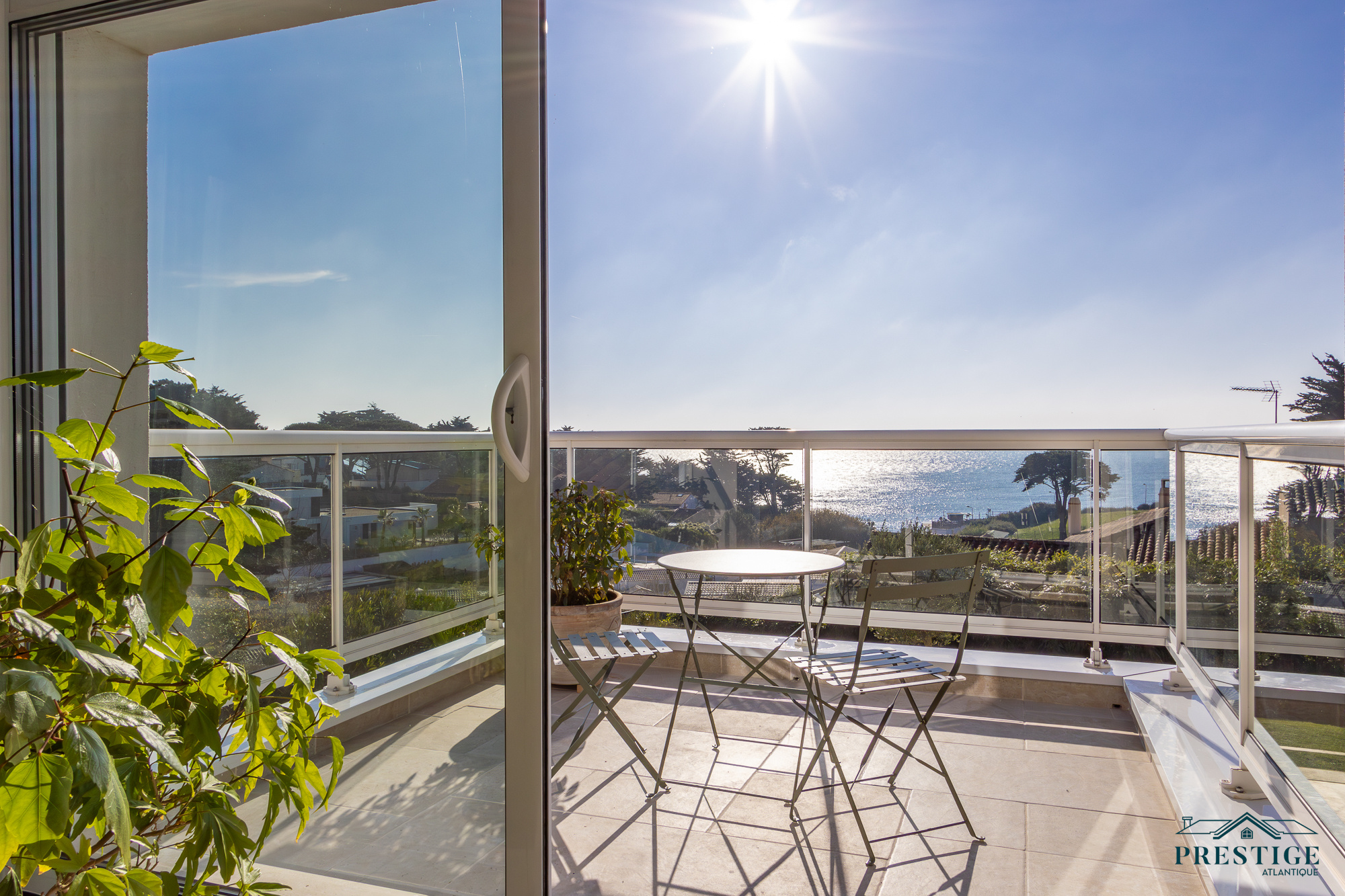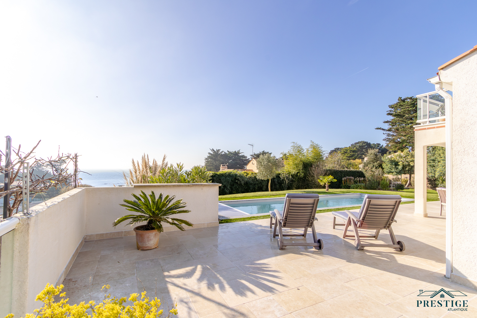 VENDU PAR PRESTIGE ATLANTIQUE. RARE SUR LE MARCHÉ. Vue imprenable sur l’océan, cette villa de style contemporain dispose d’une superficie habitable de 238 m². Le hall d'entrée dessert un espace de vie spacieux avec de nombreuses baies vitrées, offrant une belle hauteur sous plafond et une cuisine Premium, le tout au panorama de sa piscine chauffée sublimée d’une vue spectaculaire sur la mer. Une attention toute particulière pour sa terrasse en enfilade dotée d'une partie couverte, un véritable atout offrant un réel plus à l’extérieur. Le niveau profite d’une distribution de trois chambres avec pour l'une d'entre elles la destination de suite parentale avec salle d’eau privative et placard/dressing, une salle de bains vient parfaire la réception nuit. L'émerveillement continue à l'étage, avec deux chambres magnifiques, une salle de bains moderne et un salon qui donne sur un balcon/terrasse avec une vue à couper le souffle. Édifiée sur une parcelle entièrement close, joliment paysager et arboré de 1643 m², un grand garage, une cave et un atelier complètent ce bien d’exception. Environnement calme et privilégié pour cette villa aux prestations abouties et aux volumes généreux. “Les informations sur les risques auxquels ce bien est exposé sont disponibles sur le site Géorisques http://www.georisques.gouv.fr”. Pour plus de renseignements ou pour organiser une visite privée, contactez-nous sans plus attendre, PRESTIGE ATLANTIQUE 02.40.21.91.13. Prix de vente 1 575 000€ FAI dont 5 % d'honoraires agence à la charge de l'acquéreur soit un prix net vendeur de 1 500 000€ (RCS. Saint- Nazaire 897 587 946).