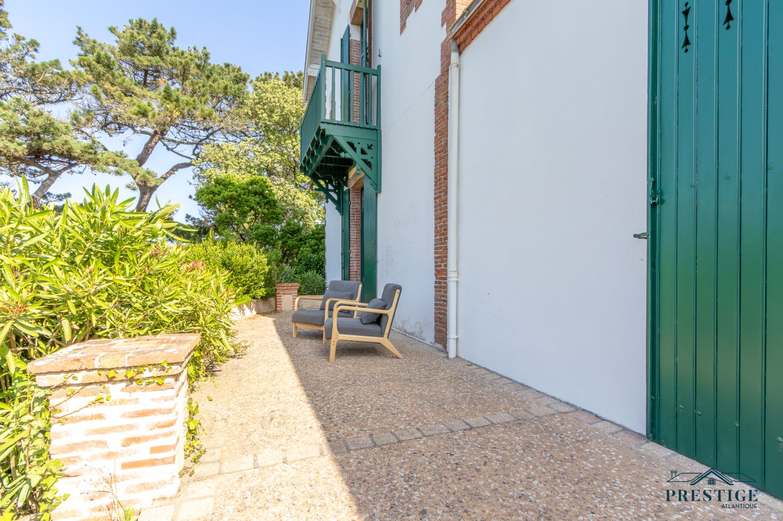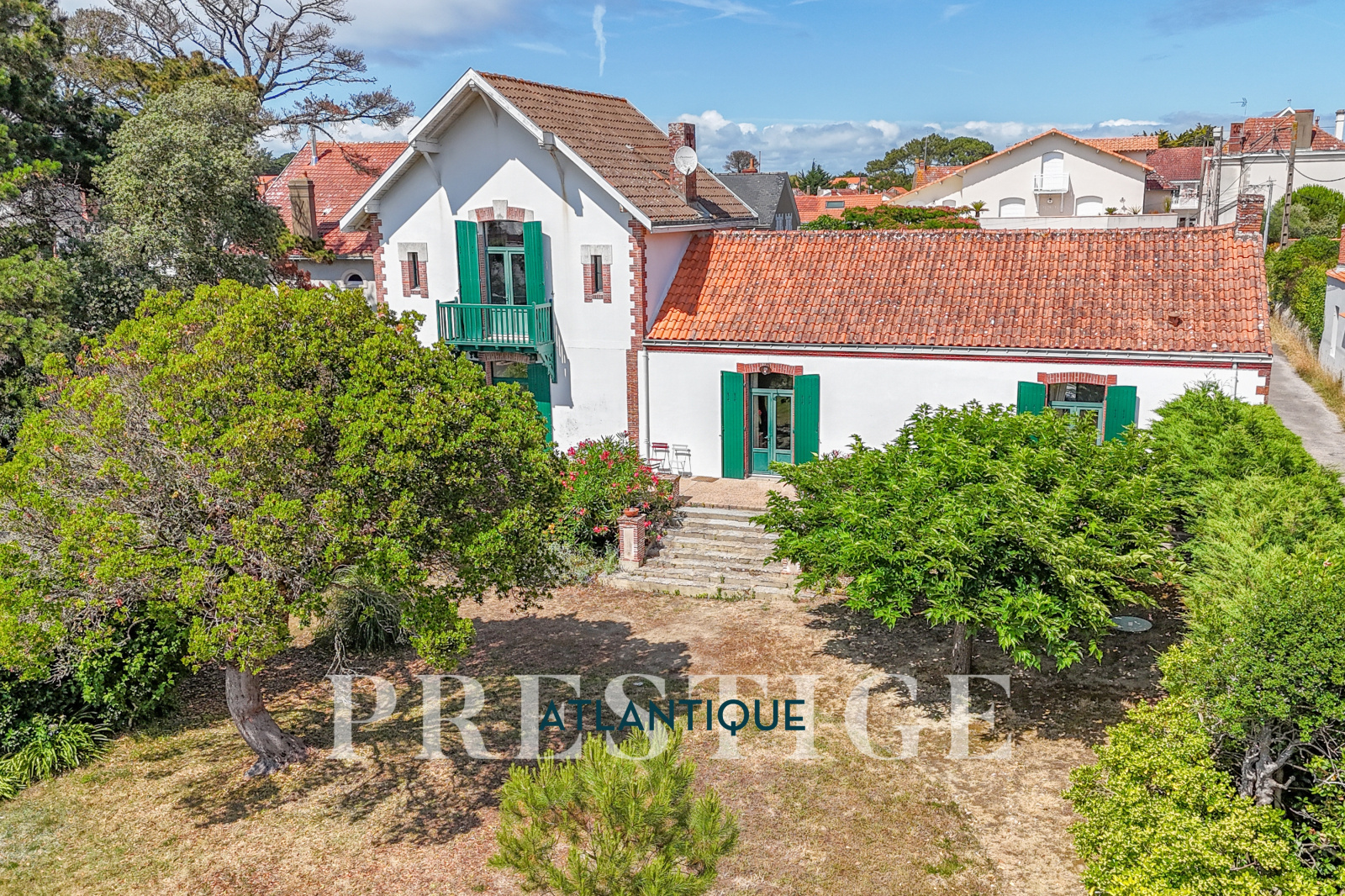 EXCLUSIVITÉ - PRESTIGE ATLANTIQUE. À seulement quelques pas du marché, des plages et des commerces, cette propriété d’exception de 323 m² utiles à l’abri des regards est une véritable perle rare. Elle offre tout le charme d’un domaine privé à l’ambiance balnéaire préservée, réparti sur deux parcelles indépendantes avec entrées séparés et en plein cœur de Préfailles. L’élégance architecturale de la villa principale séduit par ses volumes traversants et son authenticité intacte. Au rez-de-jardin, une somptueuse double réception baignée de lumière naturelle s’ouvre sur une terrasse en pierre à la vue imprenable d’un parc joliment arboré, sublimé d’ un aperçu Océan. Une cuisine aménagée avec arrière-cuisine, une pièce de lecture et deux chambres dont une suite parentale confirment une vie de plain-pied à la fois fonctionnel et raffiné. À l’étage, deux chambres supplémentaires dont l’une avec balcon surplombant la mer ainsi qu'une salle de bains viennent parfaire la distribution nuit de ce niveau. Atout rare et convoité, une seconde maison totalement indépendante accueille deux appartements de charme pensés pour recevoir en toute intimité ou envisager une activité d’accueil. Chacun bénéficie d’une vue dégagée sur le parc clos et paysager, dans un esprit de calme absolu. Edifié sur un terrain double de 1 343 m², agrémenté de nombreux espaces extérieurs : un double carport, deux portails, un garage à vélos, des places de stationnement et une dépendance supplémentaire donnent une touche finale à ce bien de Prestige.“Les informations sur les risques auxquels ce bien est exposé sont disponibles sur le site Géorisques http://www.georisques.gouv.fr”. Pour plus de renseignements ou pour organiser une visite privée, contactez-nous sans plus attendre, PRESTIGE ATLANTIQUE 02.40.21.91.13. Prix de vente 1 495 000€, les honoraires sont à charge vendeur (RCS. Saint- Nazaire 897 587 946).