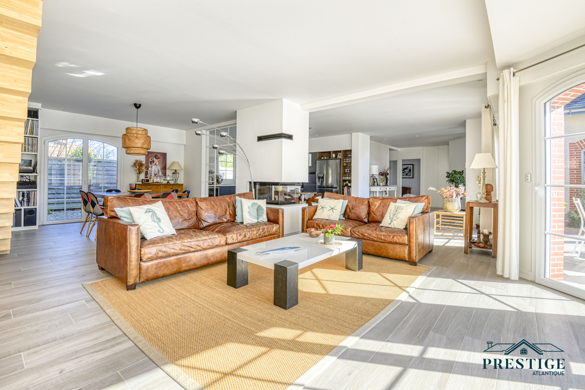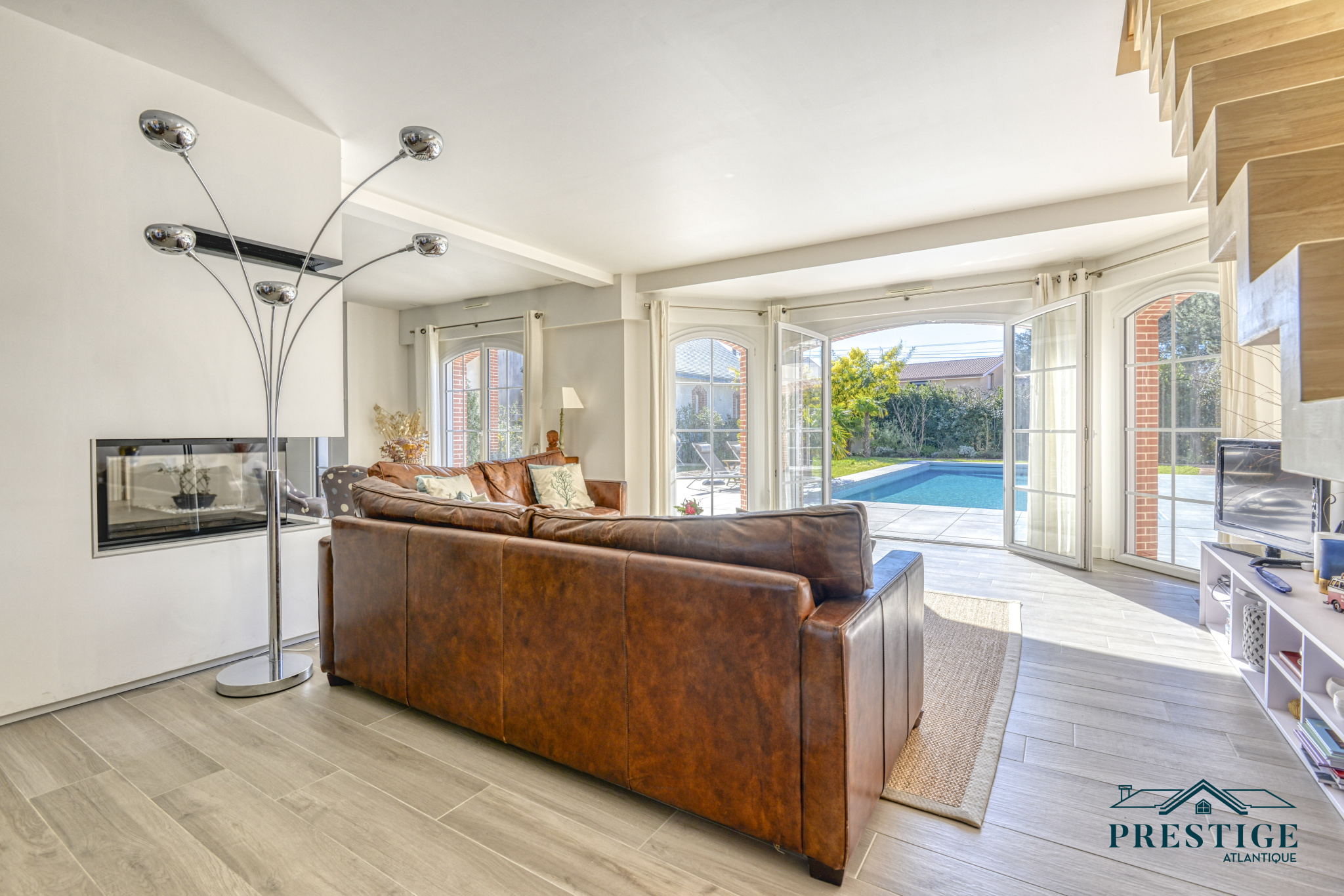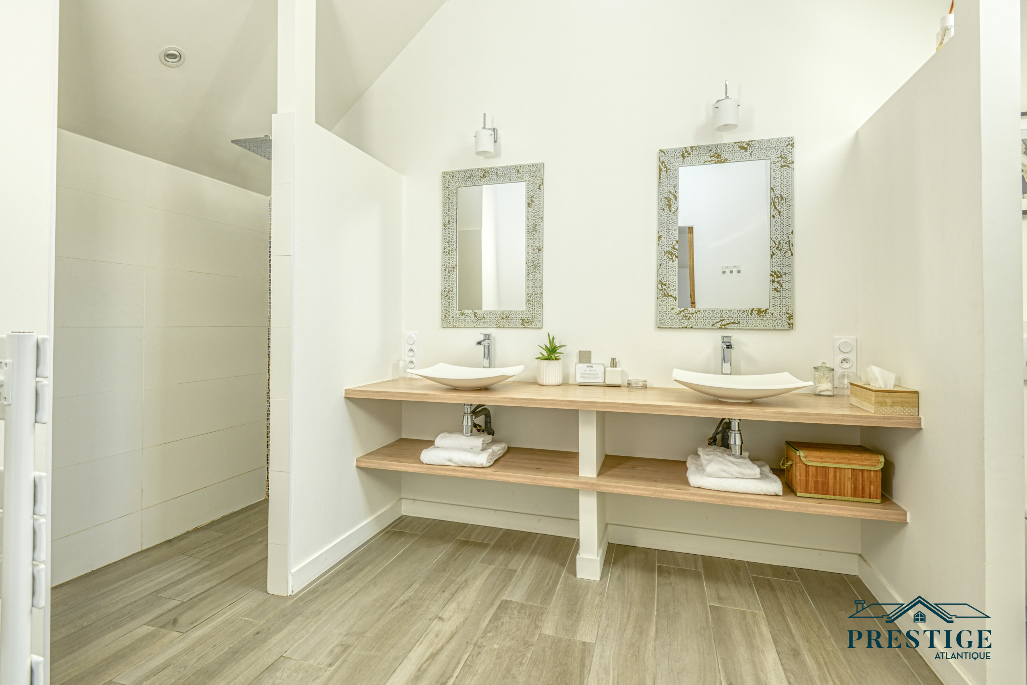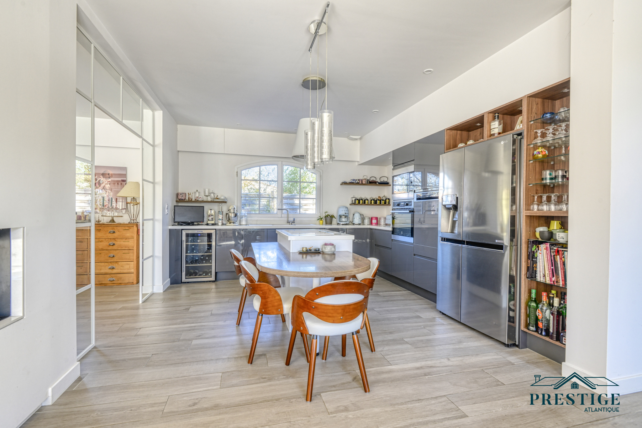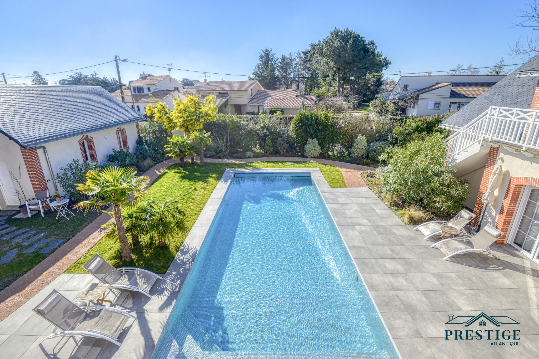 VENDU PAR PRESTIGE ATLANTIQUE. Sur les hauts de la Noëveillard non loin du golf et au calme absolu de son impasse cette Villa d'un constructeur renommé de 2018 sublimée de ses codes Pornicais combinés à la modernité d’aujourd’hui dispose d’une superficie de 356m2. Prestations très abouties offrant un confort des plus luxueux et raffiné. L’entrée donne sur grande pièce de vie en open space sur sa cuisine parfaitement intégrée aménagée équipée dotée d’une cheminée centrale, d’un escalier sur-mesure et l’ensemble bénéficiant d’une vue imprenable rythmée au mouvement de l’eau de cette somptueuse piscine Mosaïque aux milles reflets. Un bureau joliment cloisonné avec une verrière complété par plusieurs placards avec des portes fantômes et une buanderie en accès direct sur l’extérieur viennent parfaire la distribution de cette villa. L’émerveillement continue pour l’espace nuit composé de 7 suites agrémentées de salle de bains et de placards/dressings privatifs, une attention toute particulière pour l’une d’entre elles profitant d’une surface de plus de 44m2. Cette villa offre une conception de vie effaçant les limites entre l’extérieur et l’intérieur et à l’exposition solaire idéale.Edifiée sur une parcelle close à l’abri des regards de 1029m2, un garage équipé d’une mezzanine implanté à la perfection au sein d’un élégant jardin paysager protégeant l’intimité des généreuses terrasses donnent une touche finale à ce bien de PRESTIGE. Proximité à pieds des plages et du marché par un sentier classé, une adresse confidentielle, immobilier de LUXE, ne font que confirmer une qualité de vie des plus idéales. “Les informations sur les risques auxquels ce bien est exposé sont disponibles sur le site Géorisqueshttp://www.georisques.gouv.fr”. Pour plus de renseignements ou pour organiser une visite privée, contactez-nous sans plus attendre, PRESTIGE ATLANTIQUE 02.40.21.91.13. Prix de vente 2 250 000€ FAI dont 5 % d'honoraires agence à la charge de l'acquéreur soit un prix net vendeur de 2 142 857€ (RCS. Saint- Nazaire 897 587 946).