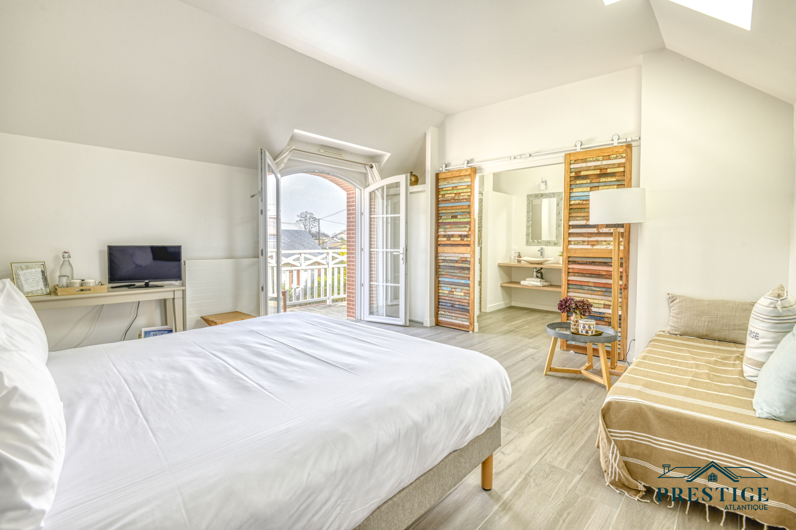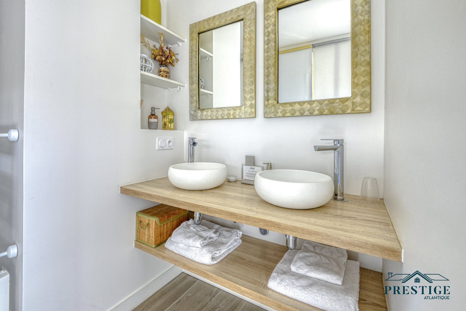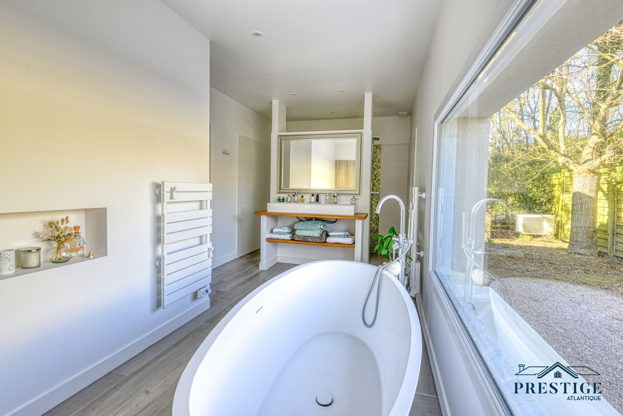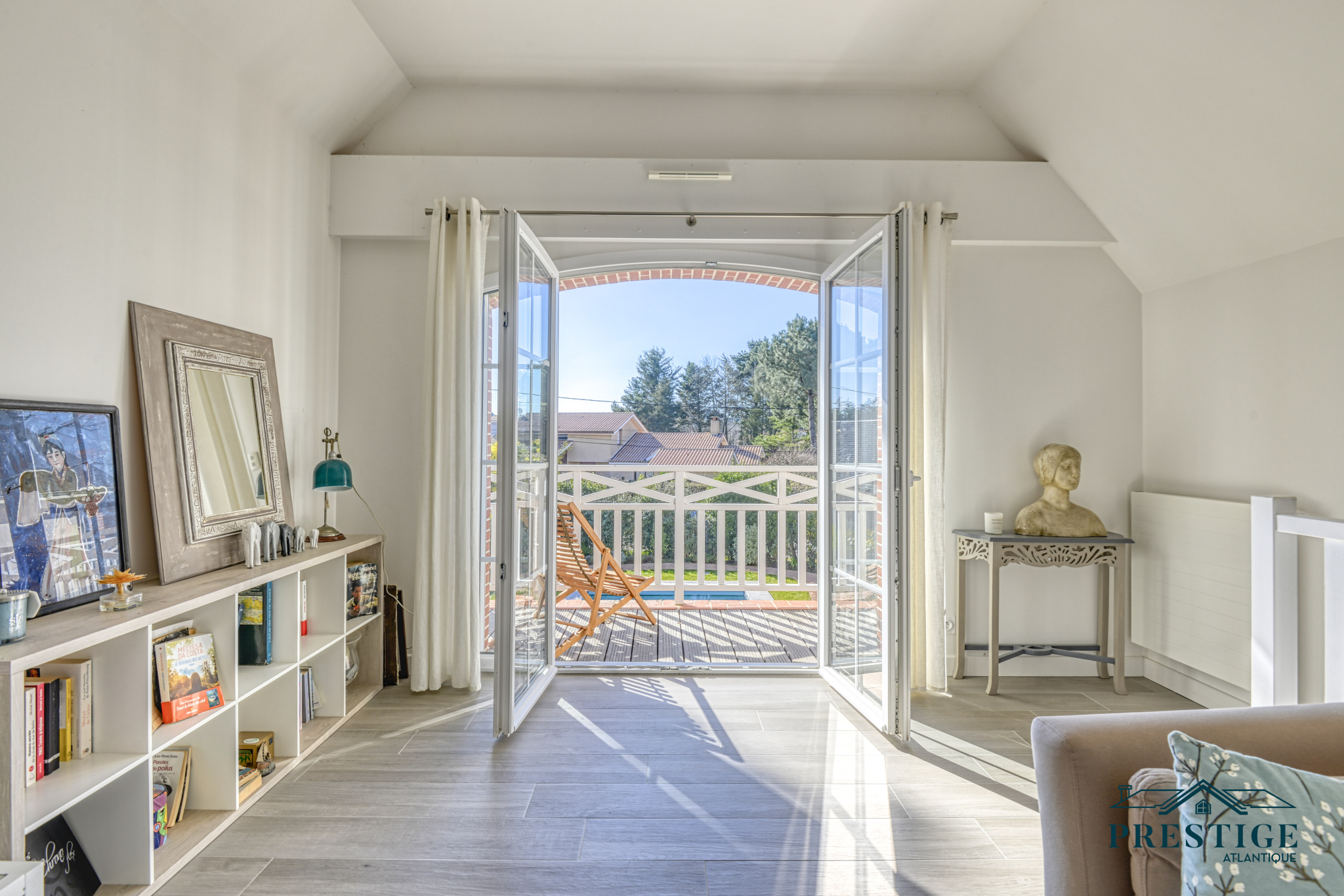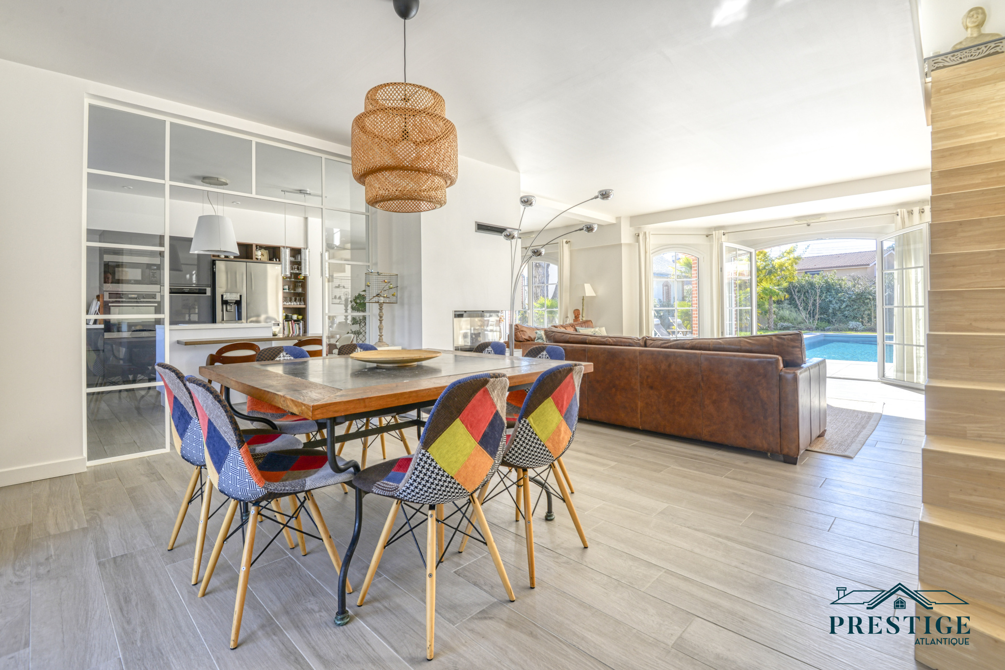 VENDU PAR PRESTIGE ATLANTIQUE. Sur les hauts de la Noëveillard non loin du golf et au calme absolu de son impasse cette Villa d'un constructeur renommé de 2018 sublimée de ses codes Pornicais combinés à la modernité d’aujourd’hui dispose d’une superficie de 356m2. Prestations très abouties offrant un confort des plus luxueux et raffiné. L’entrée donne sur grande pièce de vie en open space sur sa cuisine parfaitement intégrée aménagée équipée dotée d’une cheminée centrale, d’un escalier sur-mesure et l’ensemble bénéficiant d’une vue imprenable rythmée au mouvement de l’eau de cette somptueuse piscine Mosaïque aux milles reflets. Un bureau joliment cloisonné avec une verrière complété par plusieurs placards avec des portes fantômes et une buanderie en accès direct sur l’extérieur viennent parfaire la distribution de cette villa. L’émerveillement continue pour l’espace nuit composé de 7 suites agrémentées de salle de bains et de placards/dressings privatifs, une attention toute particulière pour l’une d’entre elles profitant d’une surface de plus de 44m2. Cette villa offre une conception de vie effaçant les limites entre l’extérieur et l’intérieur et à l’exposition solaire idéale.Edifiée sur une parcelle close à l’abri des regards de 1029m2, un garage équipé d’une mezzanine implanté à la perfection au sein d’un élégant jardin paysager protégeant l’intimité des généreuses terrasses donnent une touche finale à ce bien de PRESTIGE. Proximité à pieds des plages et du marché par un sentier classé, une adresse confidentielle, immobilier de LUXE, ne font que confirmer une qualité de vie des plus idéales. “Les informations sur les risques auxquels ce bien est exposé sont disponibles sur le site Géorisqueshttp://www.georisques.gouv.fr”. Pour plus de renseignements ou pour organiser une visite privée, contactez-nous sans plus attendre, PRESTIGE ATLANTIQUE 02.40.21.91.13. Prix de vente 2 250 000€ FAI dont 5 % d'honoraires agence à la charge de l'acquéreur soit un prix net vendeur de 2 142 857€ (RCS. Saint- Nazaire 897 587 946).
