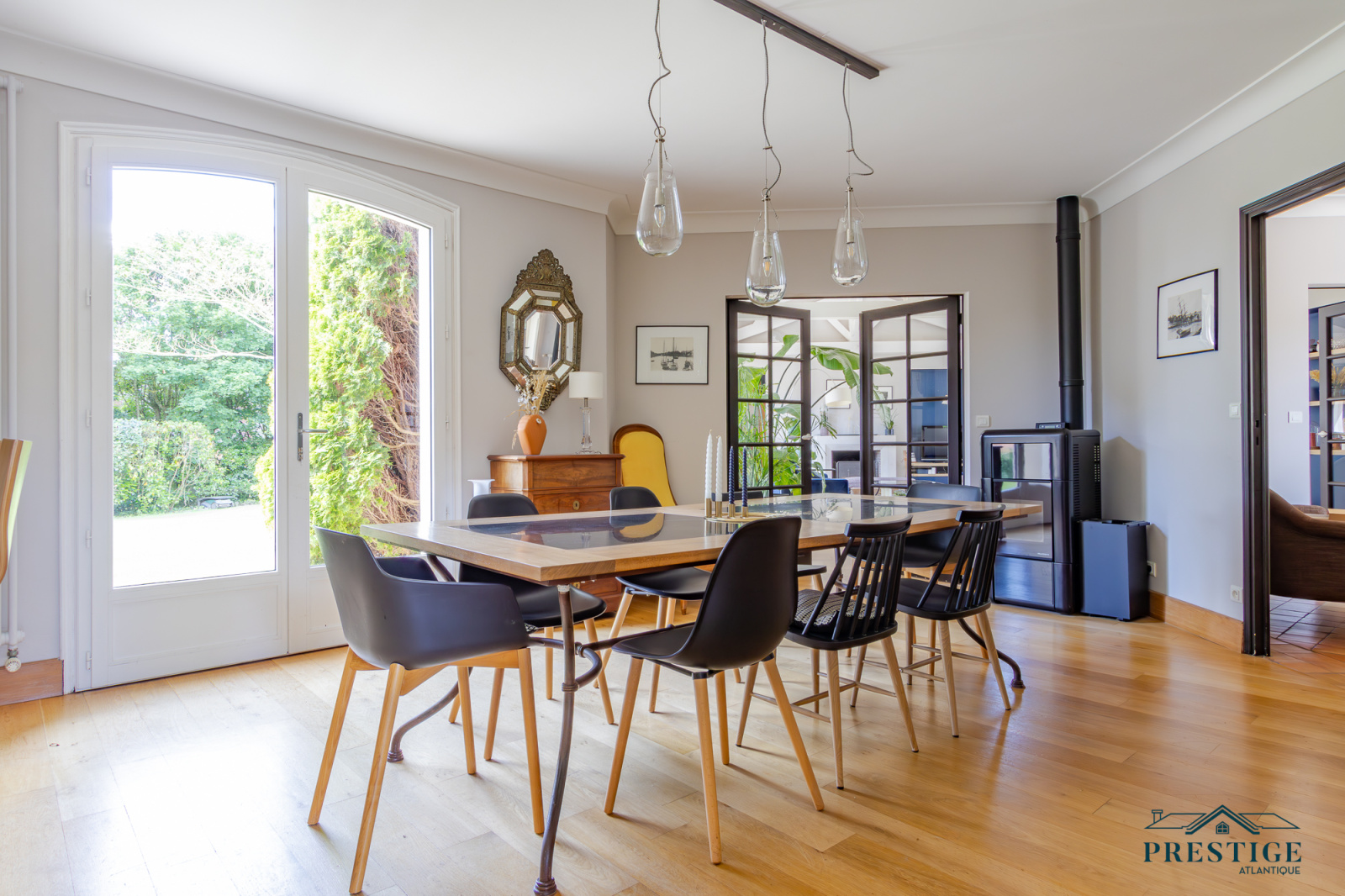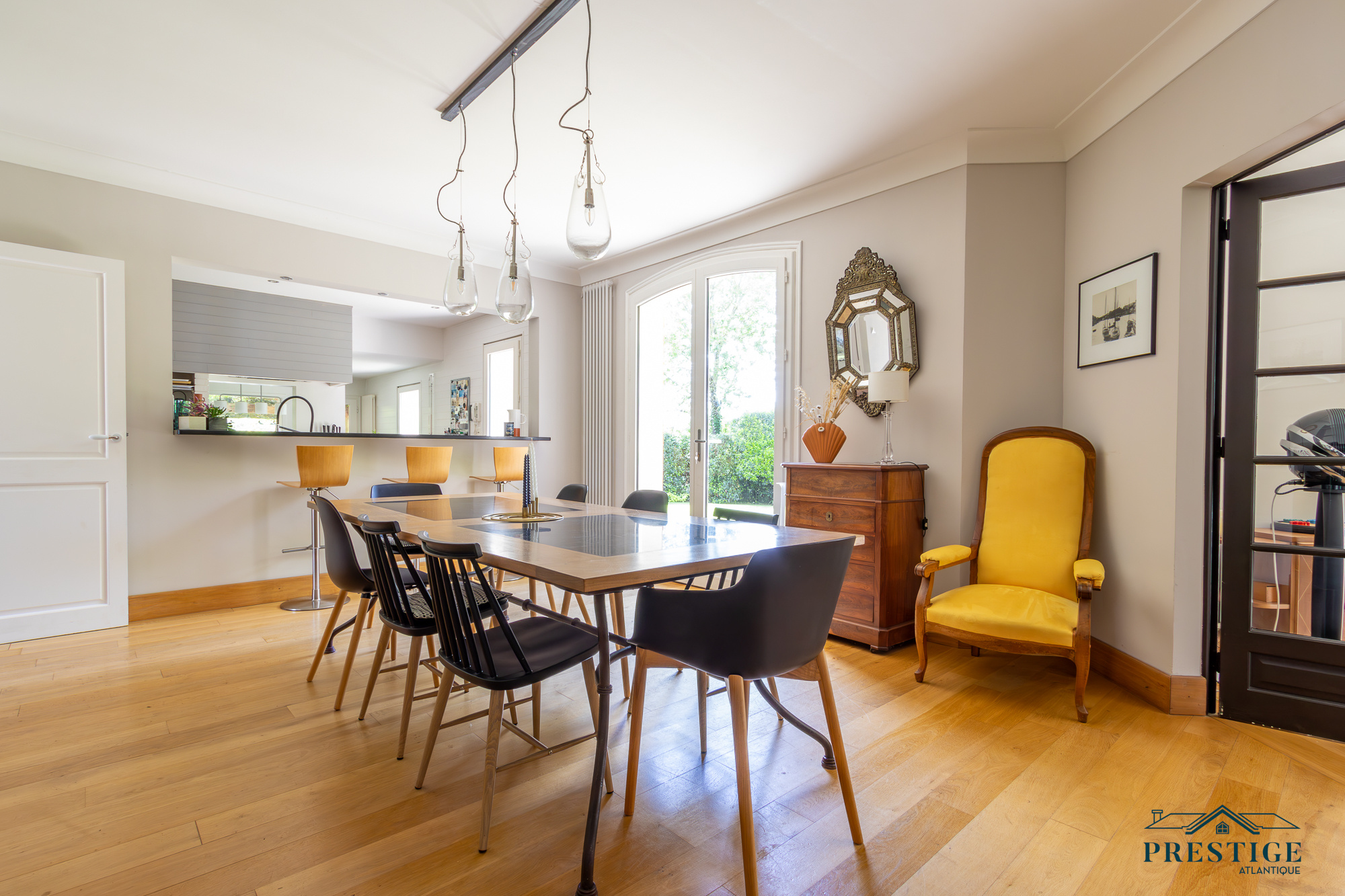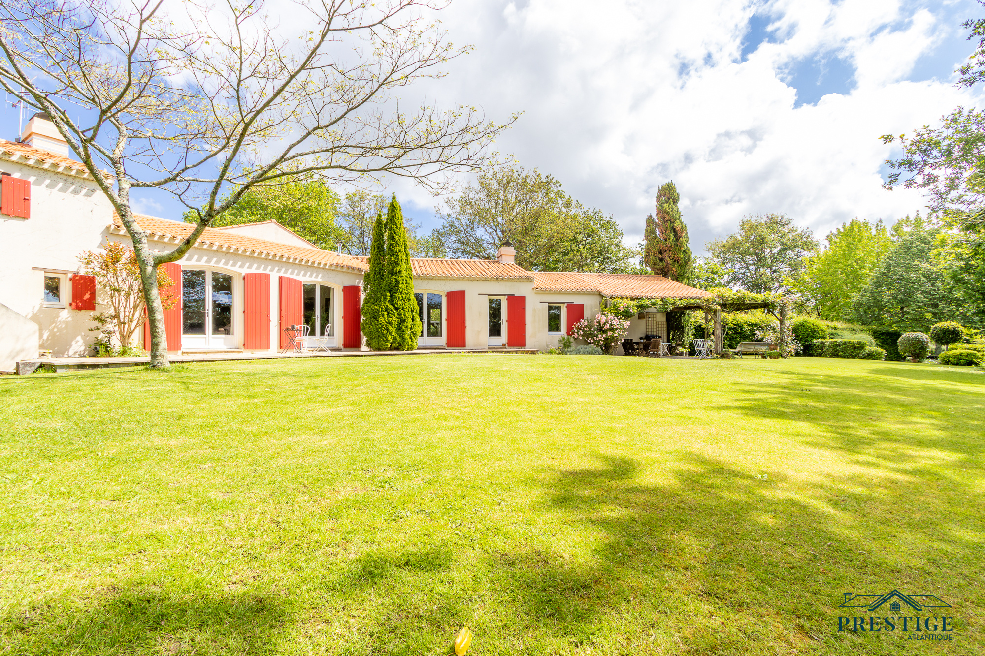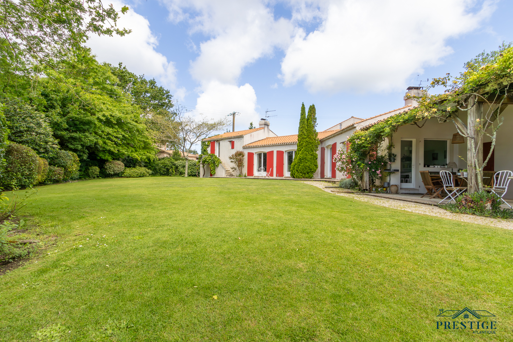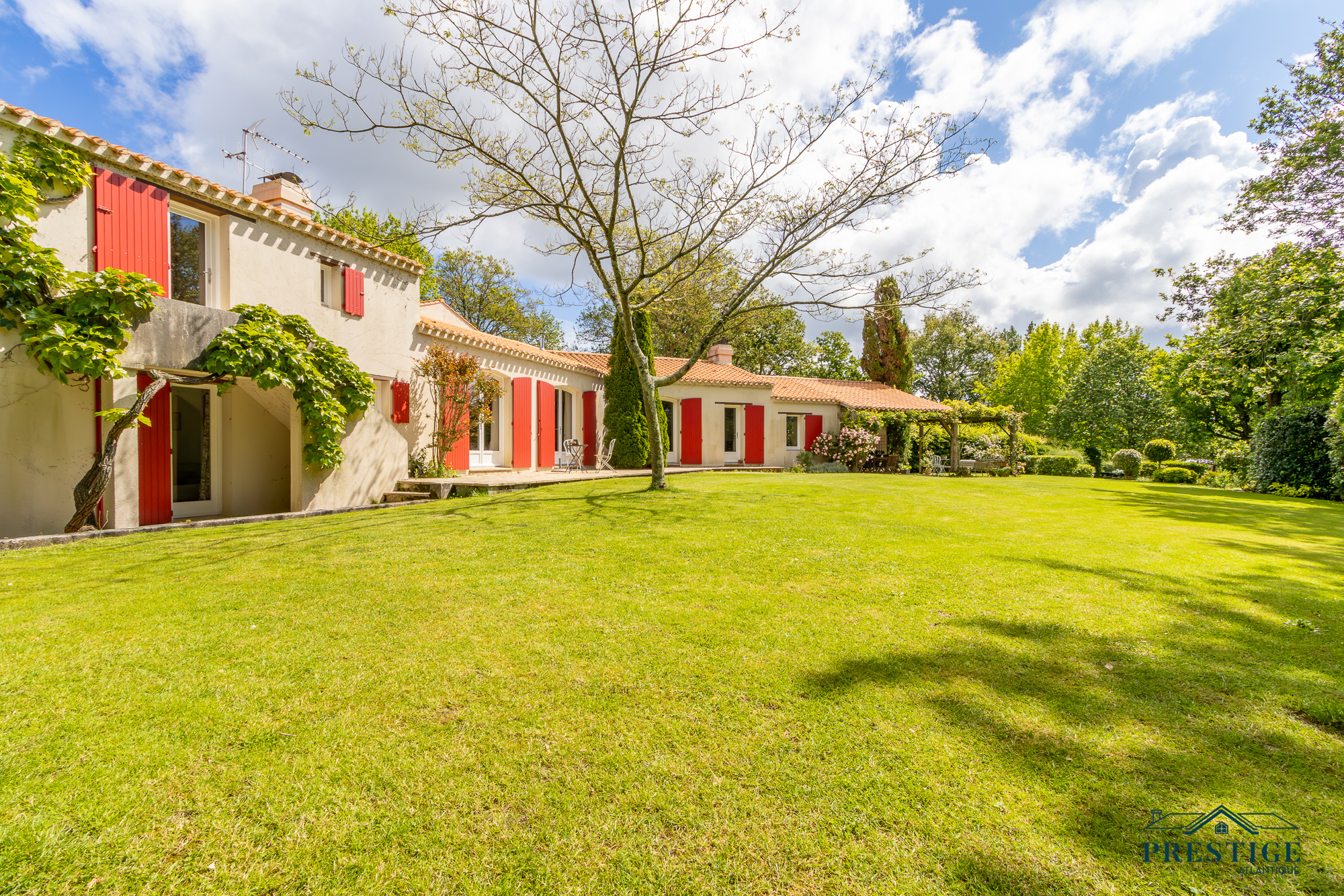 VENDU PAR PRESTIGE ATLANTIQUE. Nichée dans un environnement verdoyant et au calme absolu, cette villa d’architecte sur deux niveaux alliant le charme de l’ancien et une touche de modernité dispose d'une superficie habitable de 272m². Une entrée s’ouvre sur une vaste pièce de vie jouissant d'une belle hauteur sous-plafond, prolongée d’une salle à manger et de sa cuisine aménagée équipée, le tout baigné de lumière et du panorama du jardin de par ses nombreuses ouvertures donnant accès à une terrasse à l’exposition solaire idéale. L’espace nuit se compose d’une suite ( dressing, salle de bains et accès privatif indépendant ), de deux chambres, d’une salle de bains et d'une salle de jeux. En sus, une mezzanine avec bureau ainsi qu'une chambre avec une salle de bains privative viennent compléter la distribution. L’étage offre deux chambres et une salle de bains. Edifiée au sein d’un parc luxuriant de 4 093m², un garage, un carport et de multiples dépendances donnent une touche finale à ce bien. Véritable havre paix à l'abri des regards. “Les informations sur les risques auxquels ce bien est exposé sont disponibles sur le site Géorisques http://www.georisques.gouv.fr”. Pour plus de renseignements ou pour organiser une visite privée, contactez-nous sans plus attendre, PRESTIGE ATLANTIQUE 02.40.21.91.13. Prix de vente 1 155 000€ FAI dont 5 % d'honoraires agence à la charge de l'acquéreur soit un prix net vendeur de 1 100 000€ (RCS. Saint- Nazaire 897 587 946).