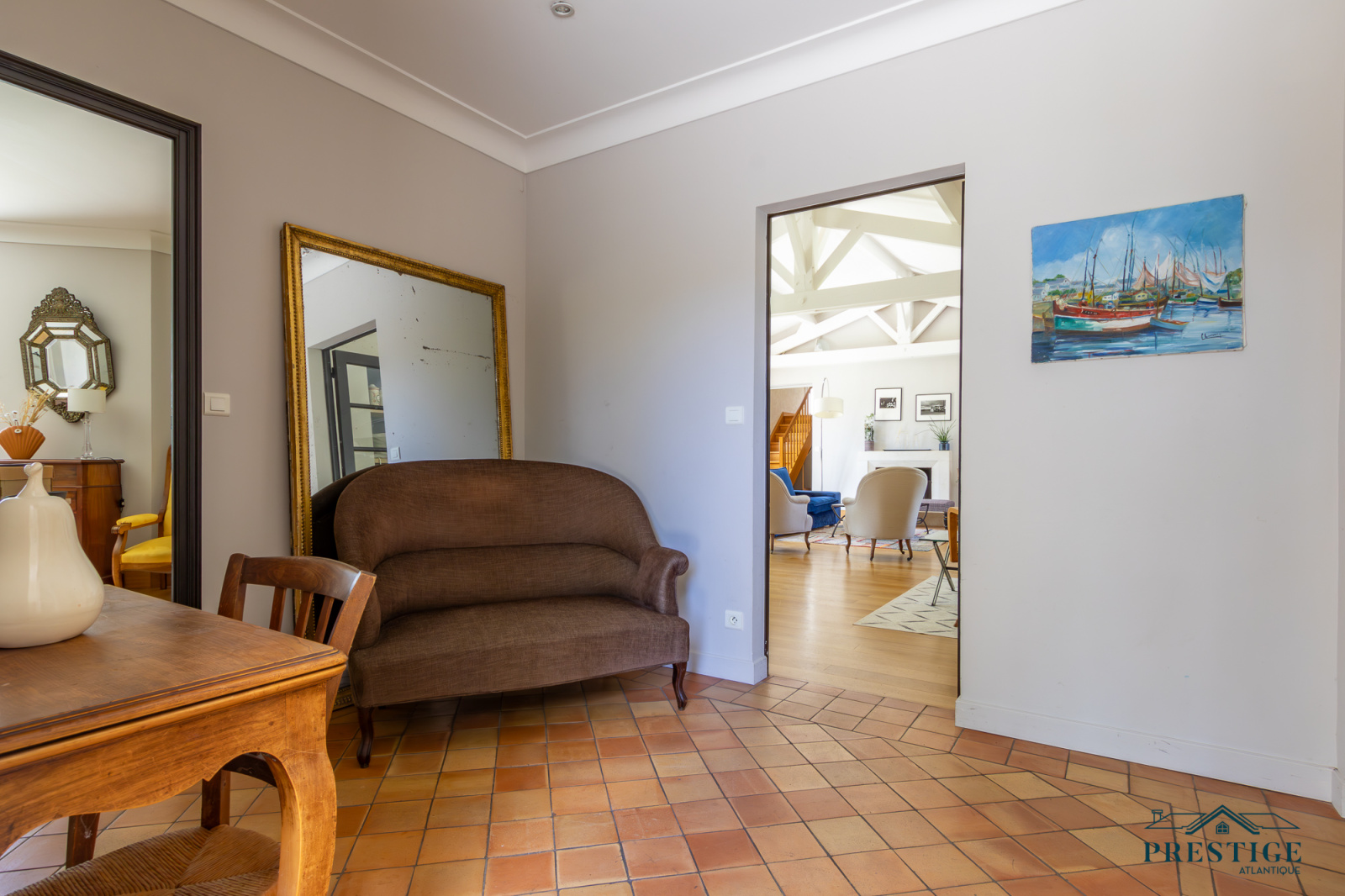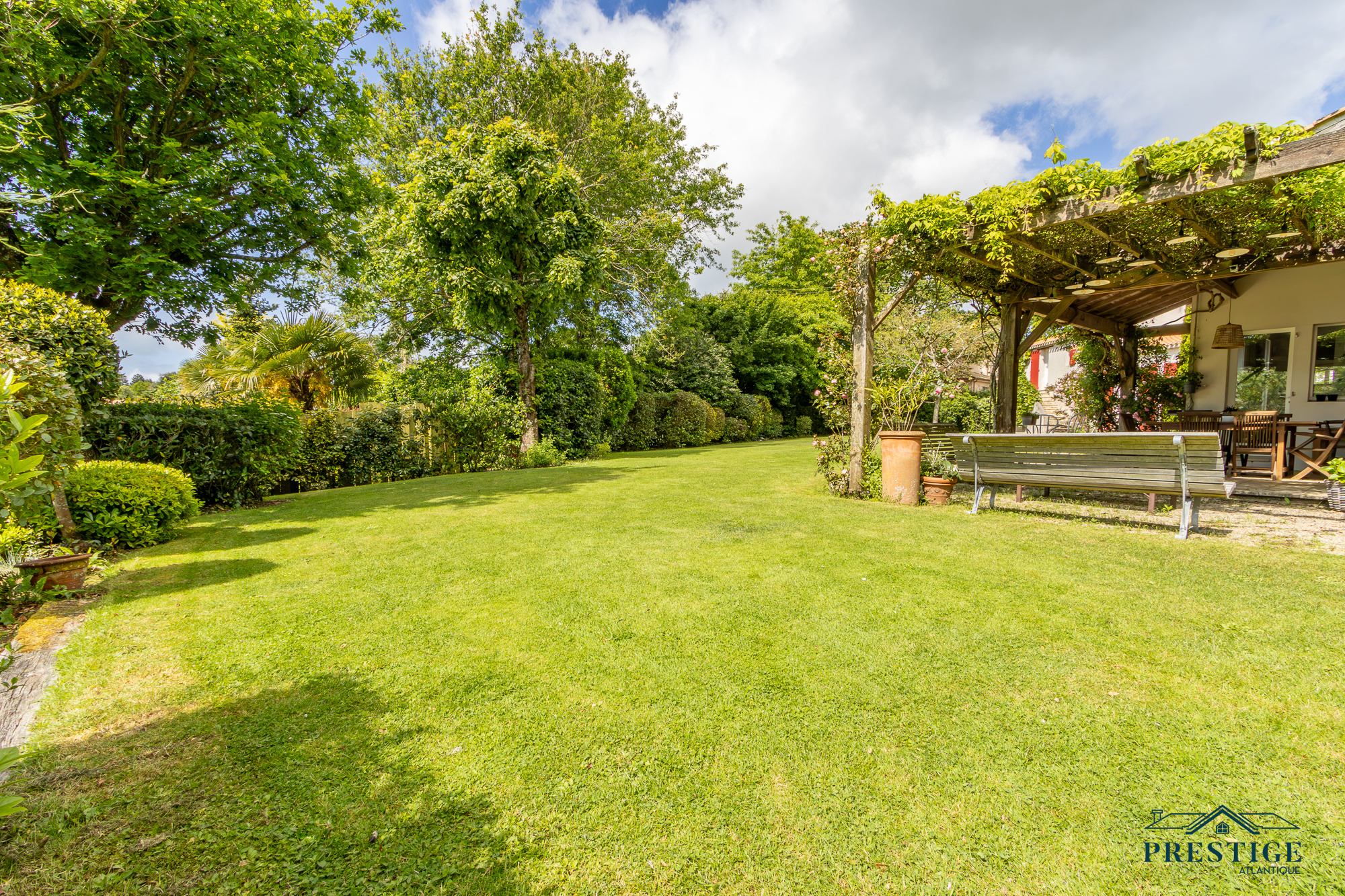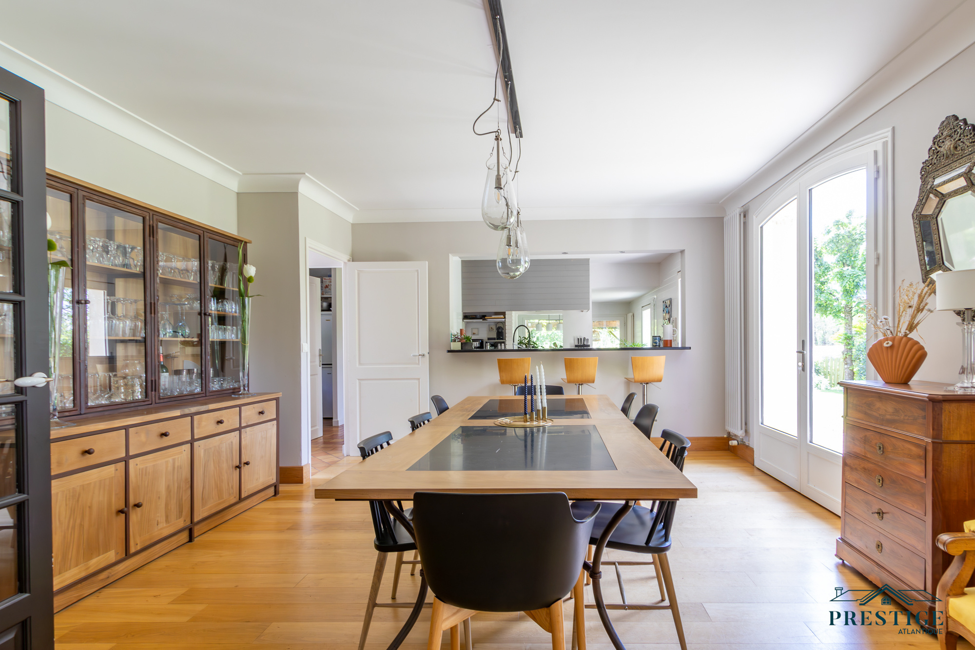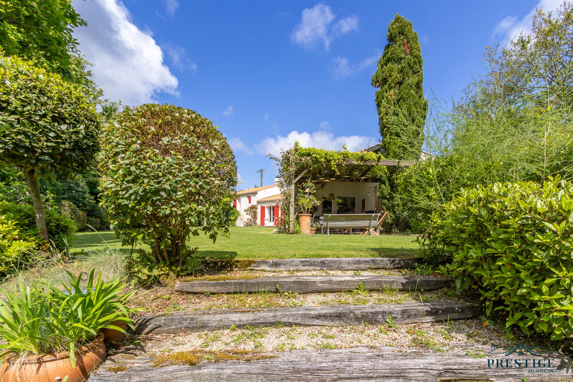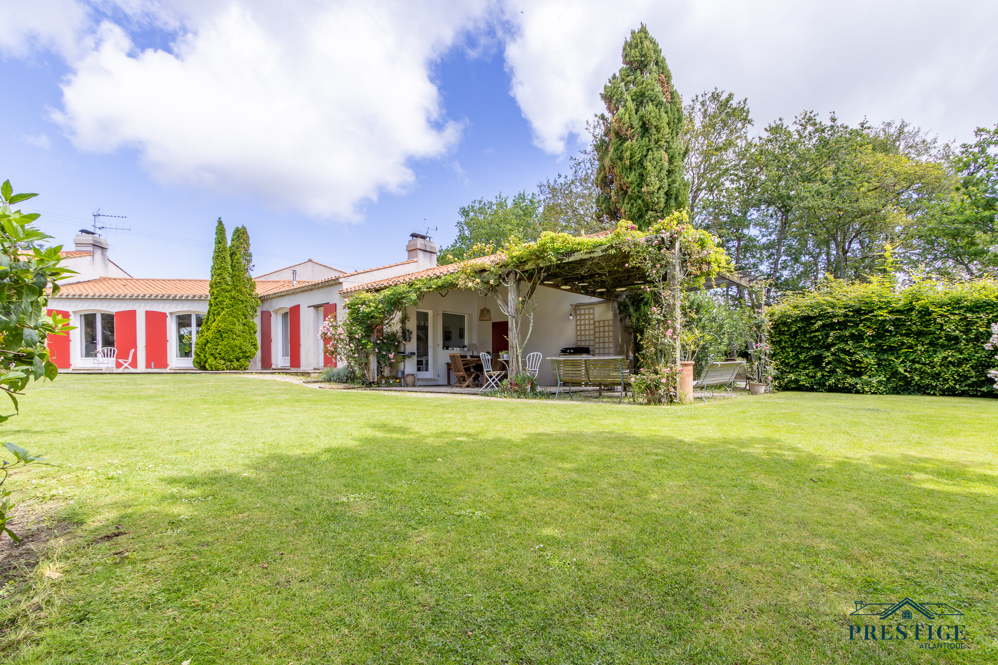 VENDU PAR PRESTIGE ATLANTIQUE. Nichée dans un environnement verdoyant et au calme absolu, cette villa d’architecte sur deux niveaux alliant le charme de l’ancien et une touche de modernité dispose d'une superficie habitable de 272m². Une entrée s’ouvre sur une vaste pièce de vie jouissant d'une belle hauteur sous-plafond, prolongée d’une salle à manger et de sa cuisine aménagée équipée, le tout baigné de lumière et du panorama du jardin de par ses nombreuses ouvertures donnant accès à une terrasse à l’exposition solaire idéale. L’espace nuit se compose d’une suite ( dressing, salle de bains et accès privatif indépendant ), de deux chambres, d’une salle de bains et d'une salle de jeux. En sus, une mezzanine avec bureau ainsi qu'une chambre avec une salle de bains privative viennent compléter la distribution. L’étage offre deux chambres et une salle de bains. Edifiée au sein d’un parc luxuriant de 4 093m², un garage, un carport et de multiples dépendances donnent une touche finale à ce bien. Véritable havre paix à l'abri des regards. “Les informations sur les risques auxquels ce bien est exposé sont disponibles sur le site Géorisques http://www.georisques.gouv.fr”. Pour plus de renseignements ou pour organiser une visite privée, contactez-nous sans plus attendre, PRESTIGE ATLANTIQUE 02.40.21.91.13. Prix de vente 1 155 000€ FAI dont 5 % d'honoraires agence à la charge de l'acquéreur soit un prix net vendeur de 1 100 000€ (RCS. Saint- Nazaire 897 587 946).