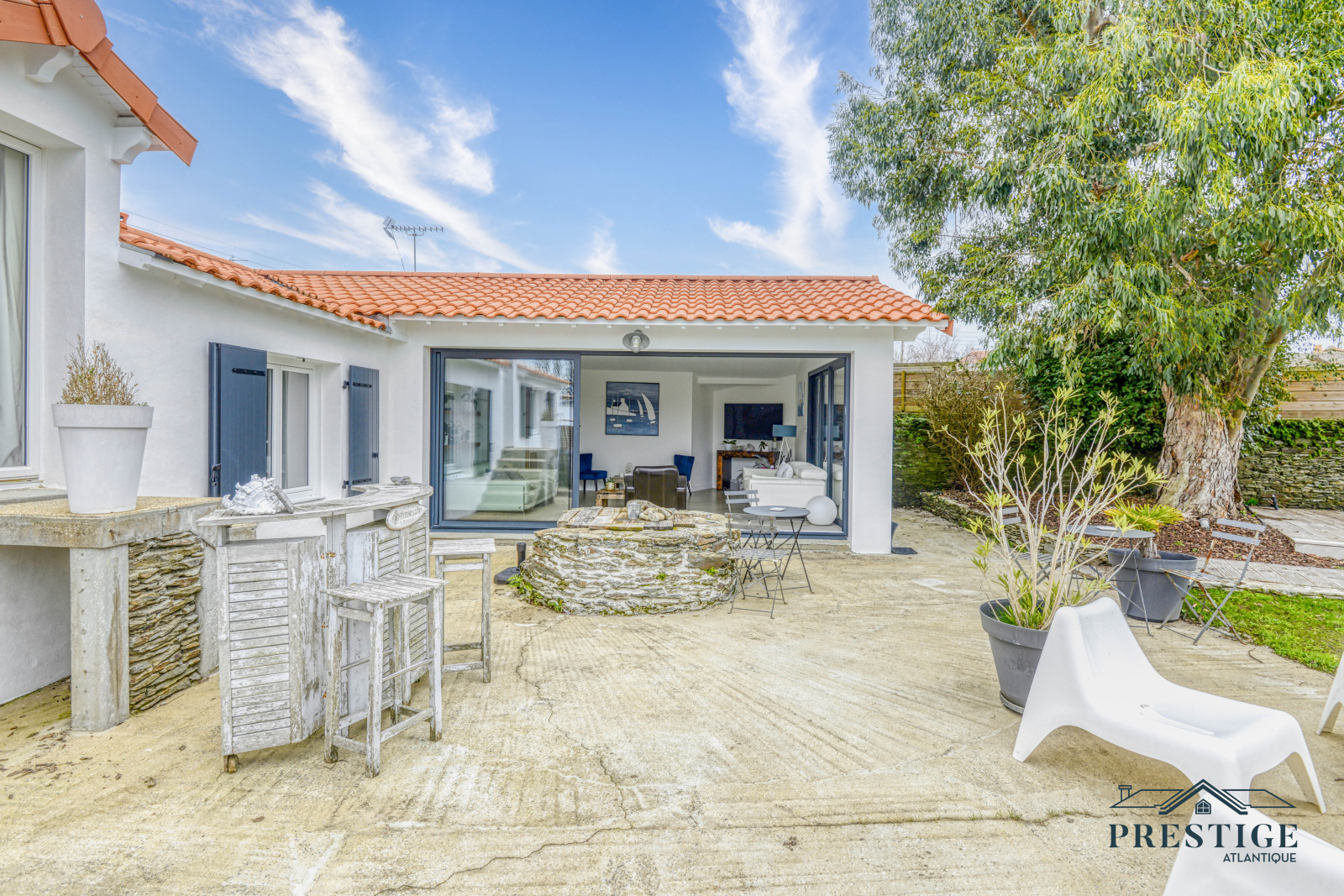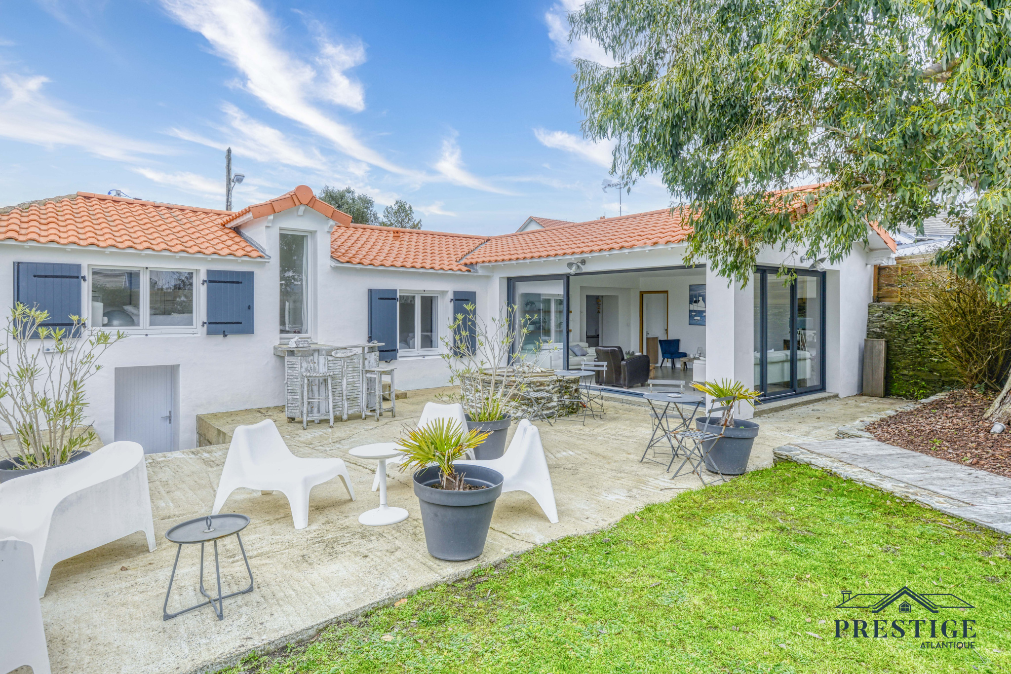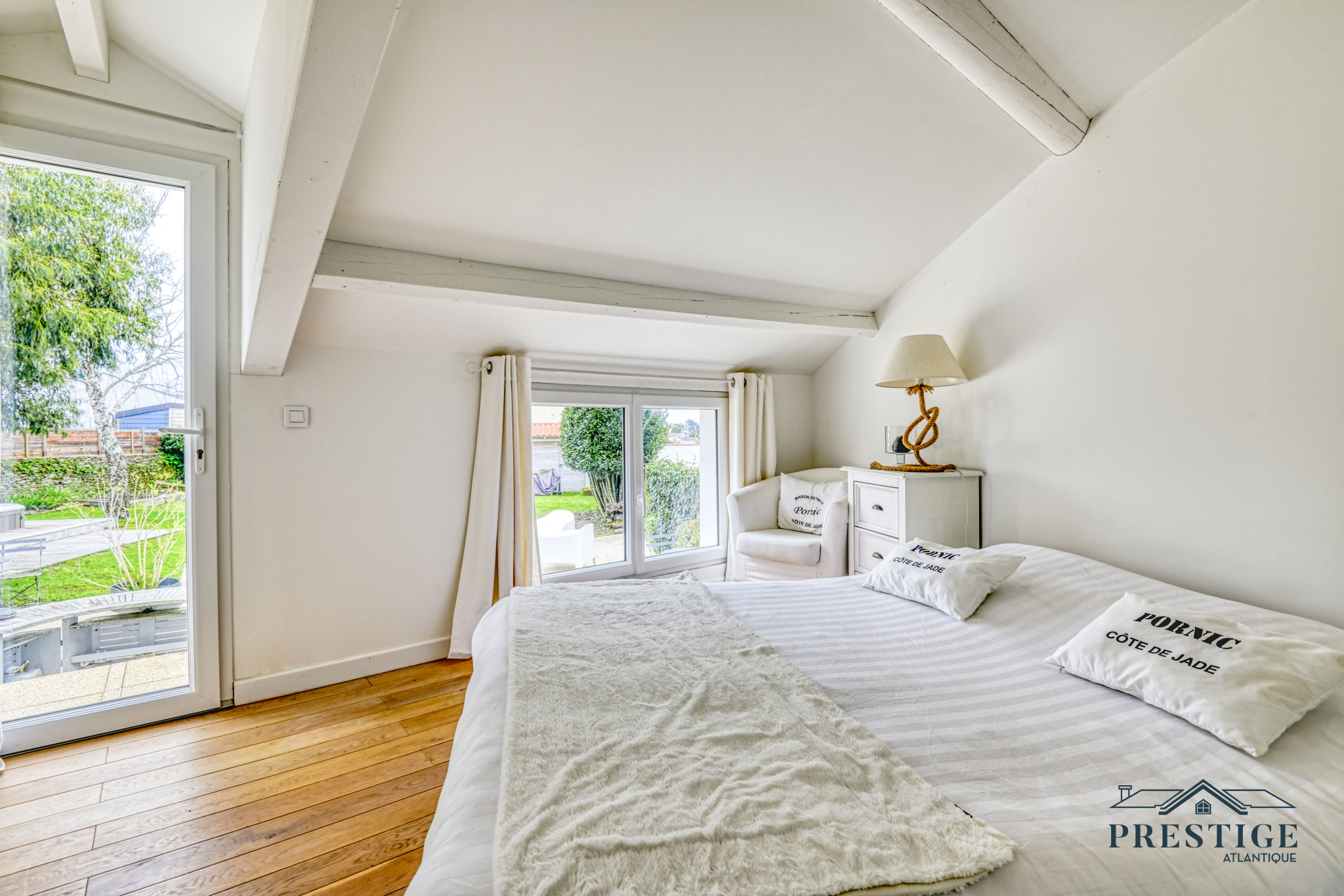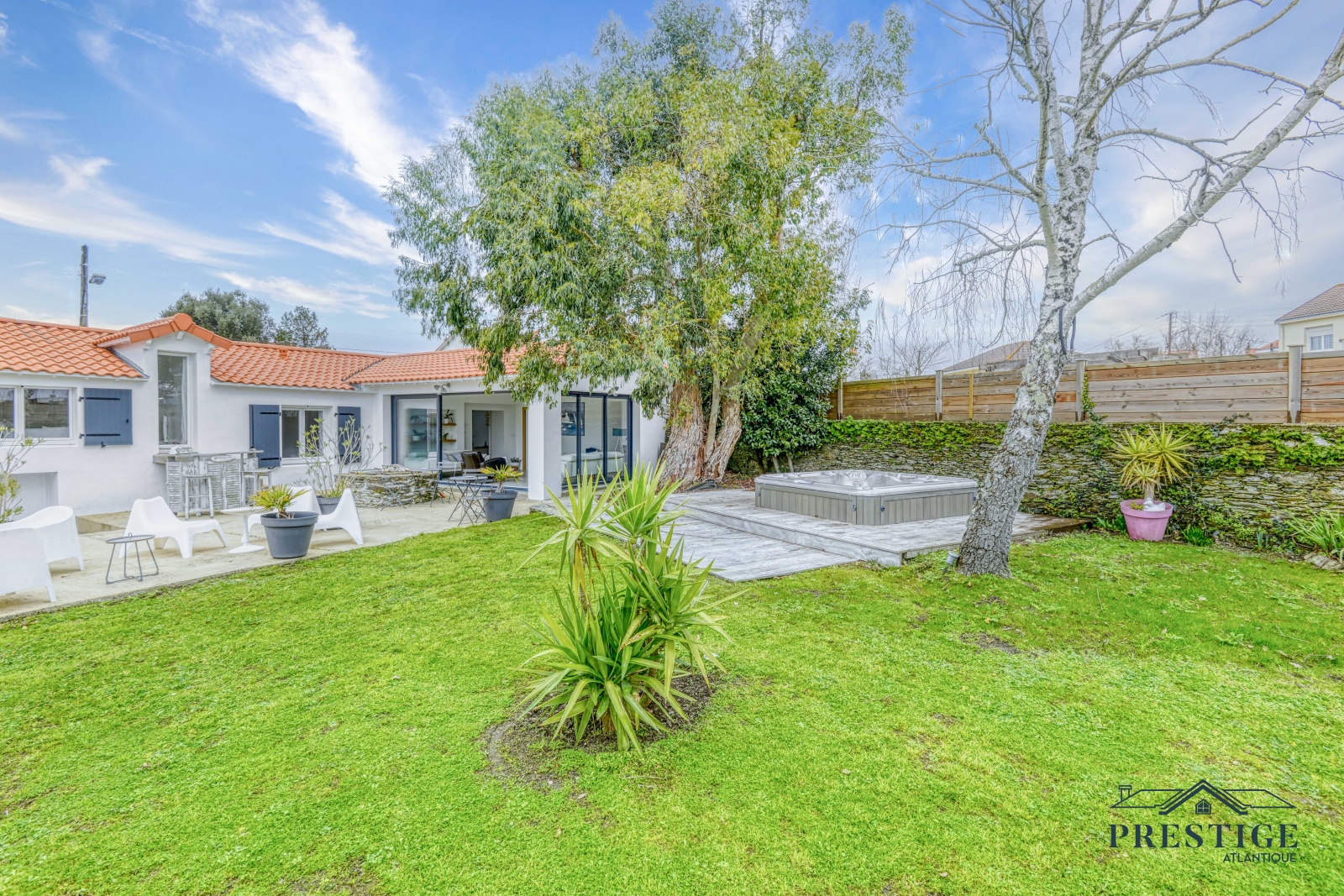 VENDU PAR PRESTIGE ATLANTIQUE. À proximité du Château et de la très convoitée plage de la Noëveillard, cette charmante maison ayant bénéficié d’une rénovation de qualité et aux prestations abouties dispose d’une superficie de 109 m2. L’entrée s’ouvre sur un véritable lieu de réception agrémenté d’une cuisine sur-mesure aménagée équipée premium et prolongé d’un vaste salon au panaroma du jardin de par ses grandes baies vitrées qui effacent les limites entre l’intérieur et l’extérieur, le tout appuyé d'une exposition solaire idéale. Une attention toute particulière à l’abri des regards pour le jardin et le spa sublimé d’une terrasse en bois et d’un eucalyptus faisant office de parasol naturel. Le caractère marié au charme pour ce joli bien jouissant d'une qualité de vie à chaque saison. L’espace nuit offre deux chambres sur parquet massif dont une avec dressing ainsi qu’une salle d’eau. Attenante et indépendante une chambre avec bureau vient parfaire la distribution. Édifée sur une parcelle entièrement close de mur en pierre de 490 m2, de nombreuses dépendances et une buanderie donnent une touche finale à ce bien d’exception dans un secteur très recherché. “Les informations sur les risques auxquels ce bien est exposé sont disponibles sur le site Géorisqueshttp://www.georisques.gouv.fr”. Pour plus de renseignements ou pour organiser une visite privée, contactez-nous sans plus attendre, PRESTIGE ATLANTIQUE 02.40.21.91.13. Prix de vente 603 750€ FAI dont 4 % d'honoraires agence à la charge de l'acquéreur soit un prix net vendeur de 575 000€ (RCS. Saint- Nazaire 897 587 946).