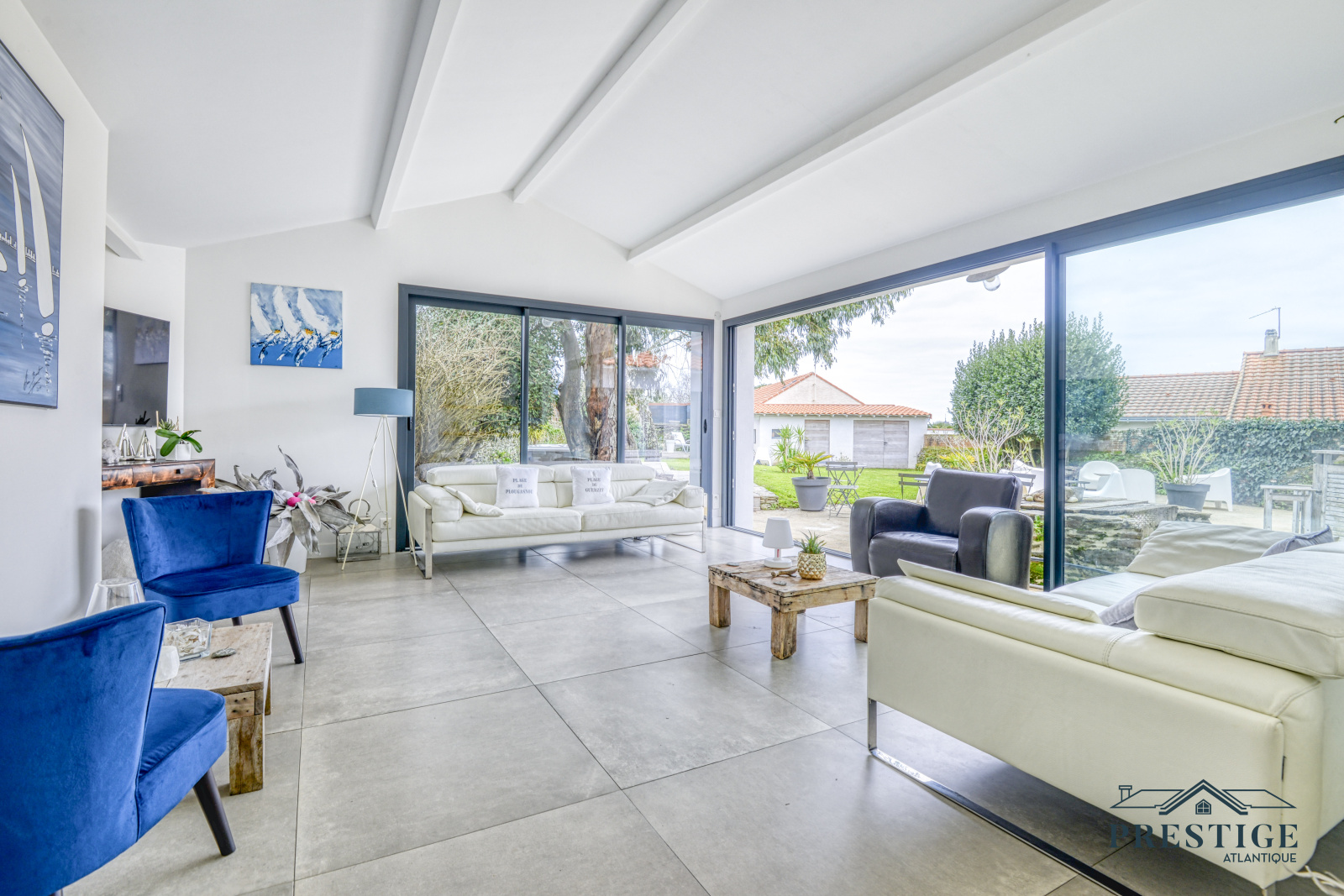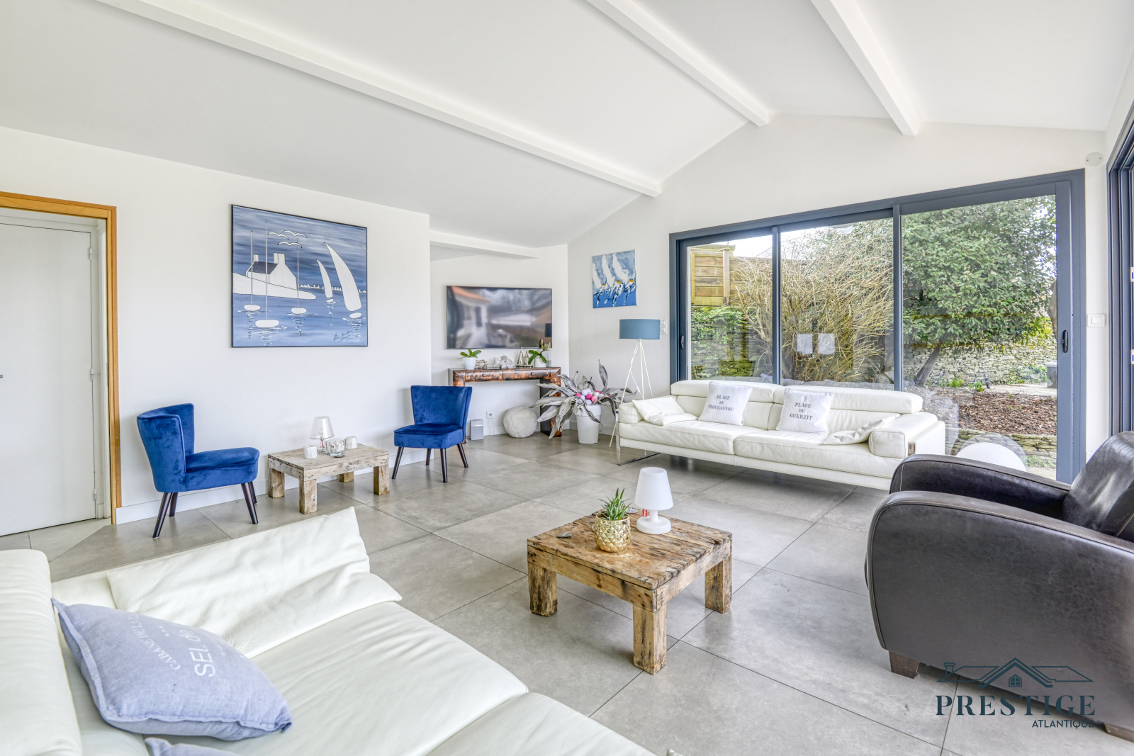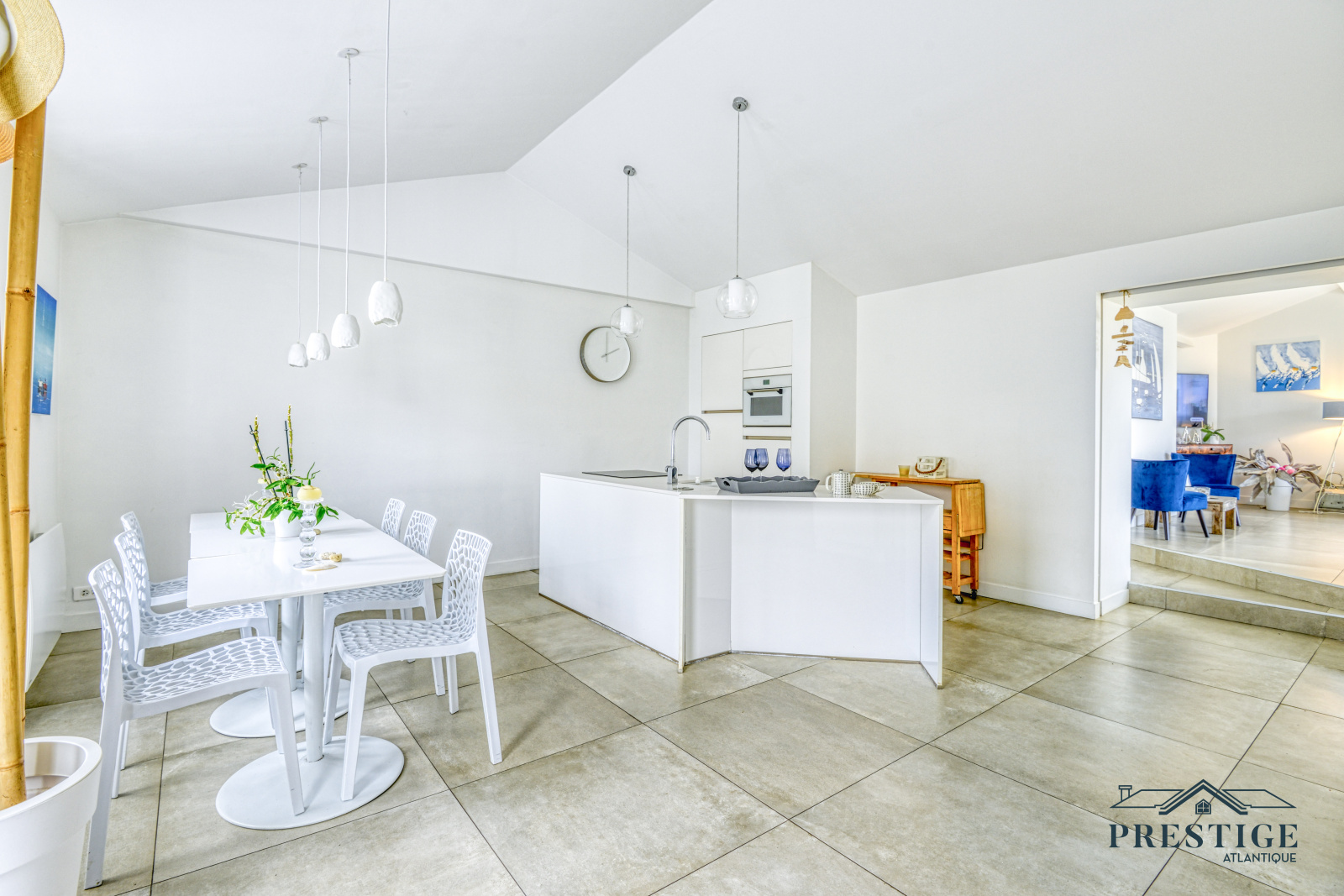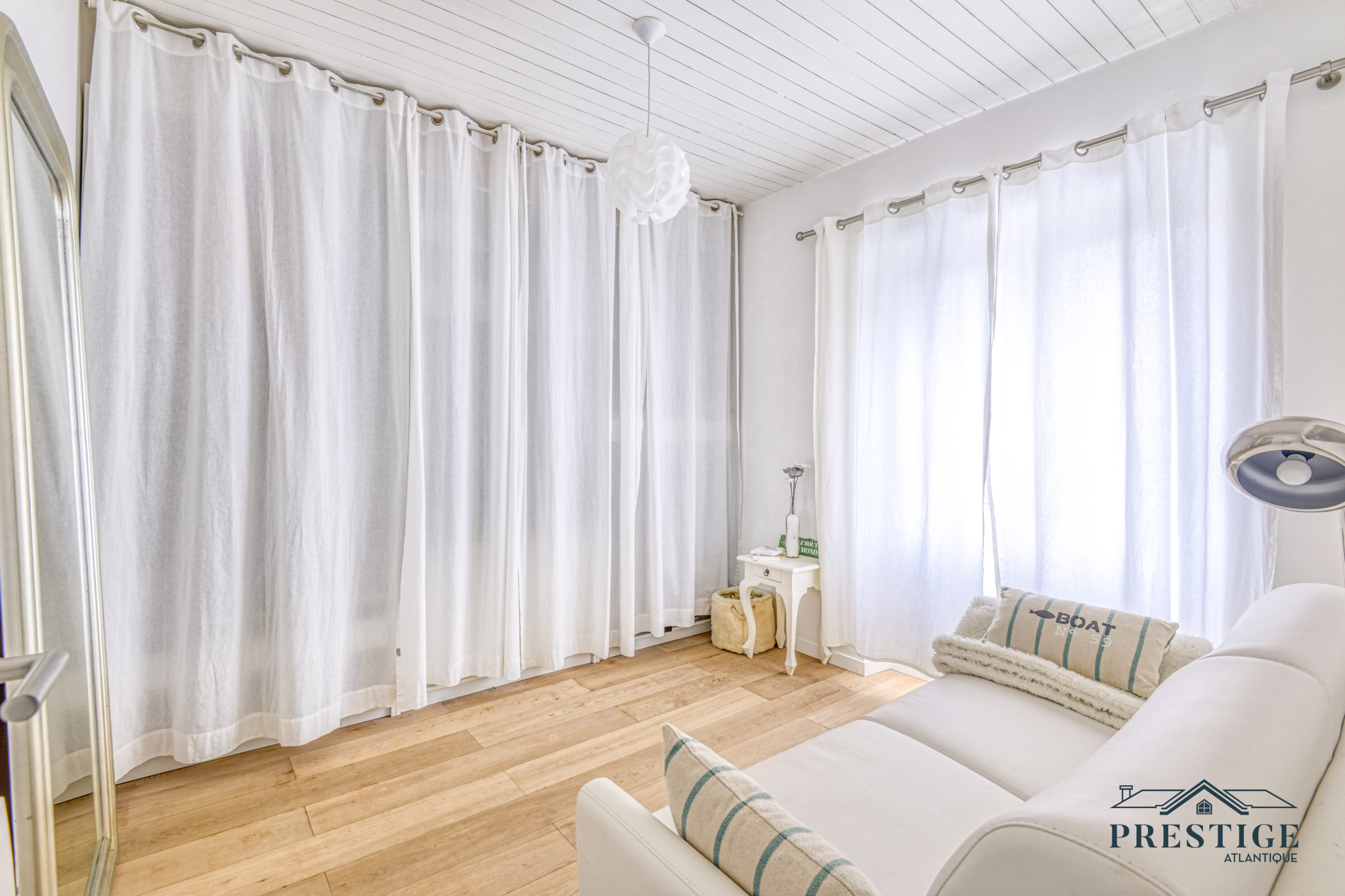 VENDU PAR PRESTIGE ATLANTIQUE. À proximité du Château et de la très convoitée plage de la Noëveillard, cette charmante maison ayant bénéficié d’une rénovation de qualité et aux prestations abouties dispose d’une superficie de 109 m2. L’entrée s’ouvre sur un véritable lieu de réception agrémenté d’une cuisine sur-mesure aménagée équipée premium et prolongé d’un vaste salon au panaroma du jardin de par ses grandes baies vitrées qui effacent les limites entre l’intérieur et l’extérieur, le tout appuyé d'une exposition solaire idéale. Une attention toute particulière à l’abri des regards pour le jardin et le spa sublimé d’une terrasse en bois et d’un eucalyptus faisant office de parasol naturel. Le caractère marié au charme pour ce joli bien jouissant d'une qualité de vie à chaque saison. L’espace nuit offre deux chambres sur parquet massif dont une avec dressing ainsi qu’une salle d’eau. Attenante et indépendante une chambre avec bureau vient parfaire la distribution. Édifée sur une parcelle entièrement close de mur en pierre de 490 m2, de nombreuses dépendances et une buanderie donnent une touche finale à ce bien d’exception dans un secteur très recherché. “Les informations sur les risques auxquels ce bien est exposé sont disponibles sur le site Géorisqueshttp://www.georisques.gouv.fr”. Pour plus de renseignements ou pour organiser une visite privée, contactez-nous sans plus attendre, PRESTIGE ATLANTIQUE 02.40.21.91.13. Prix de vente 603 750€ FAI dont 4 % d'honoraires agence à la charge de l'acquéreur soit un prix net vendeur de 575 000€ (RCS. Saint- Nazaire 897 587 946).