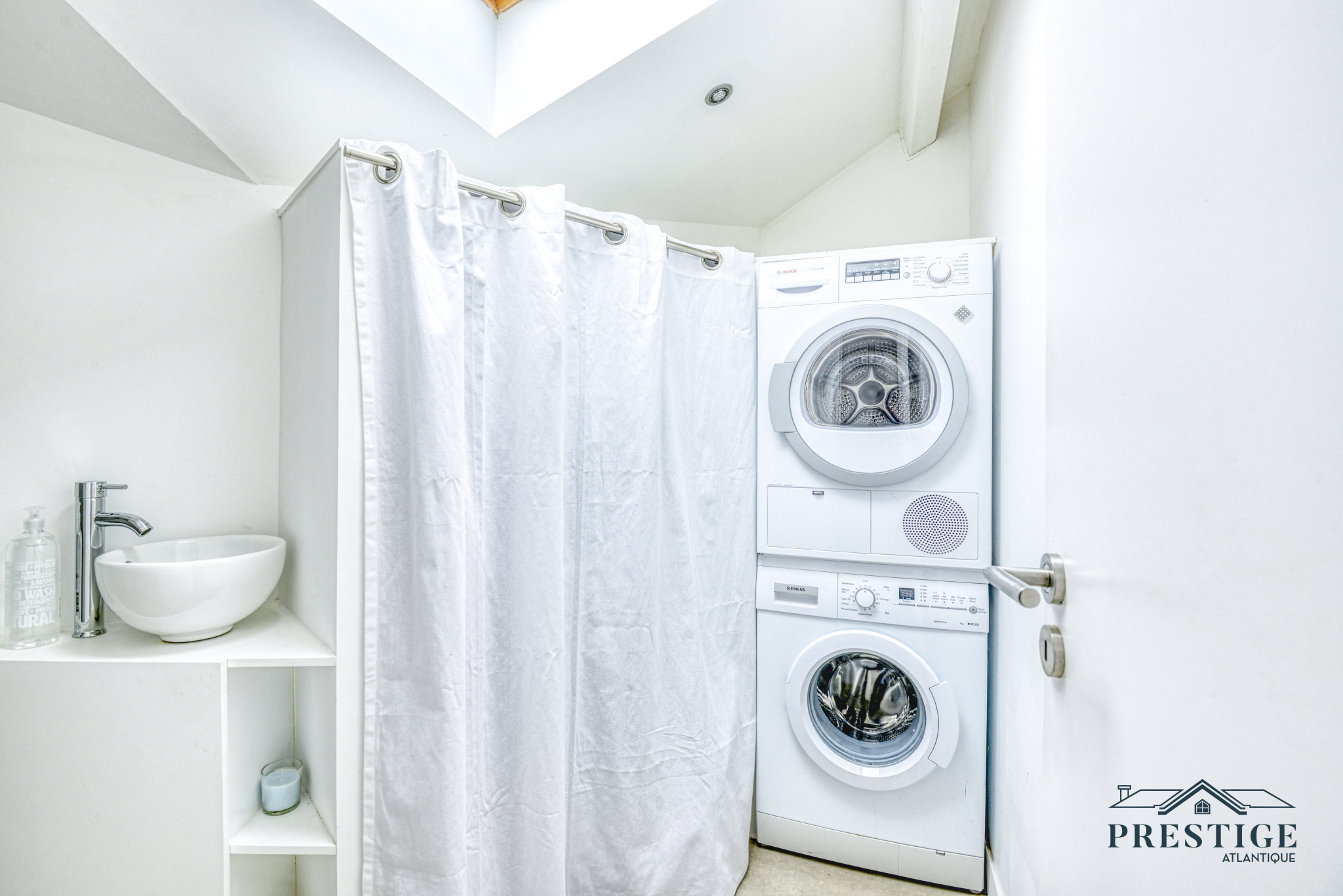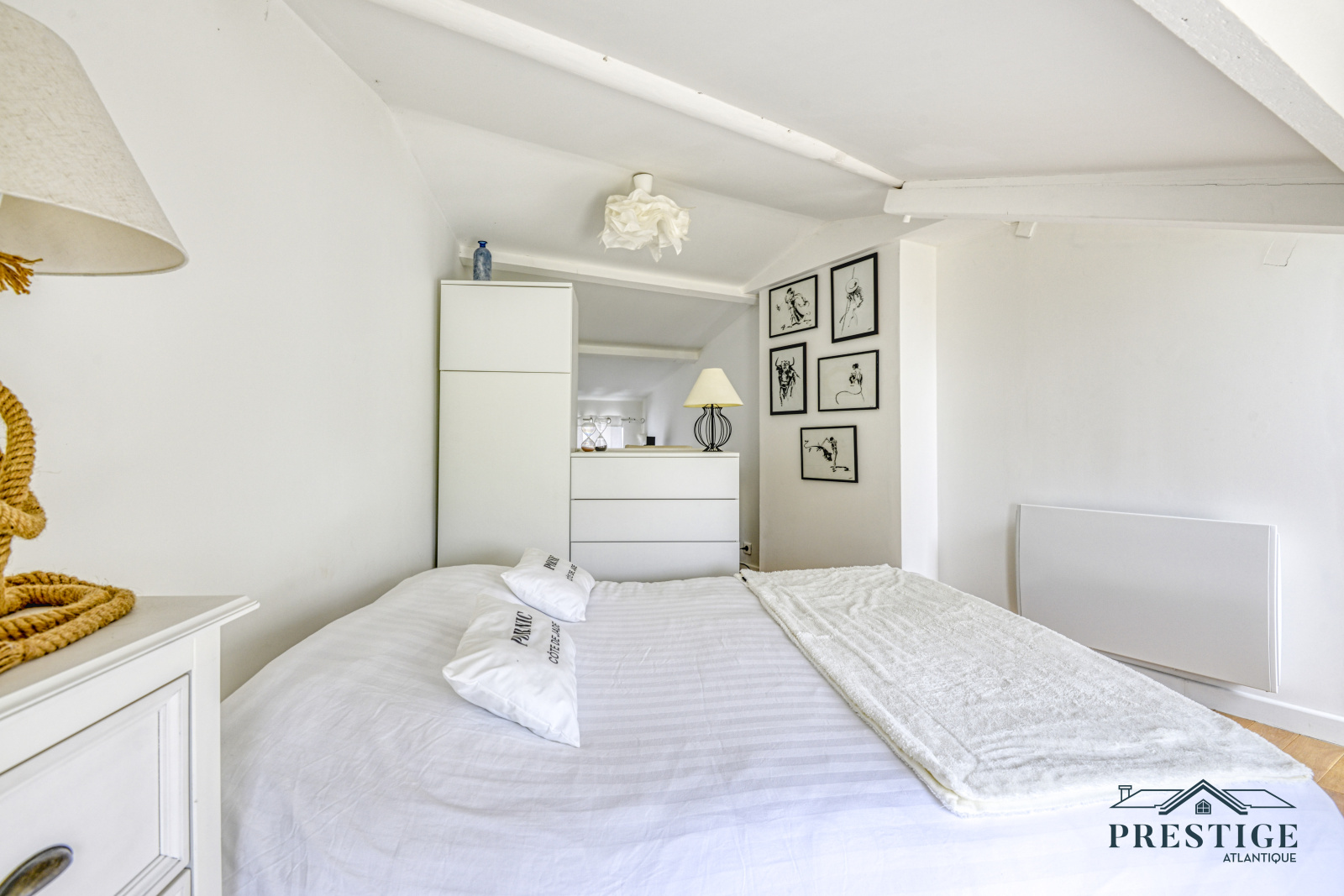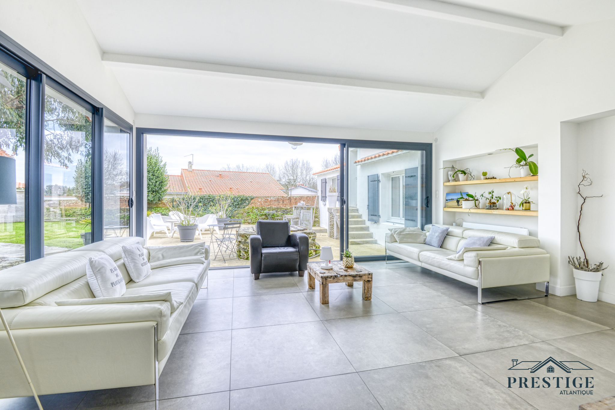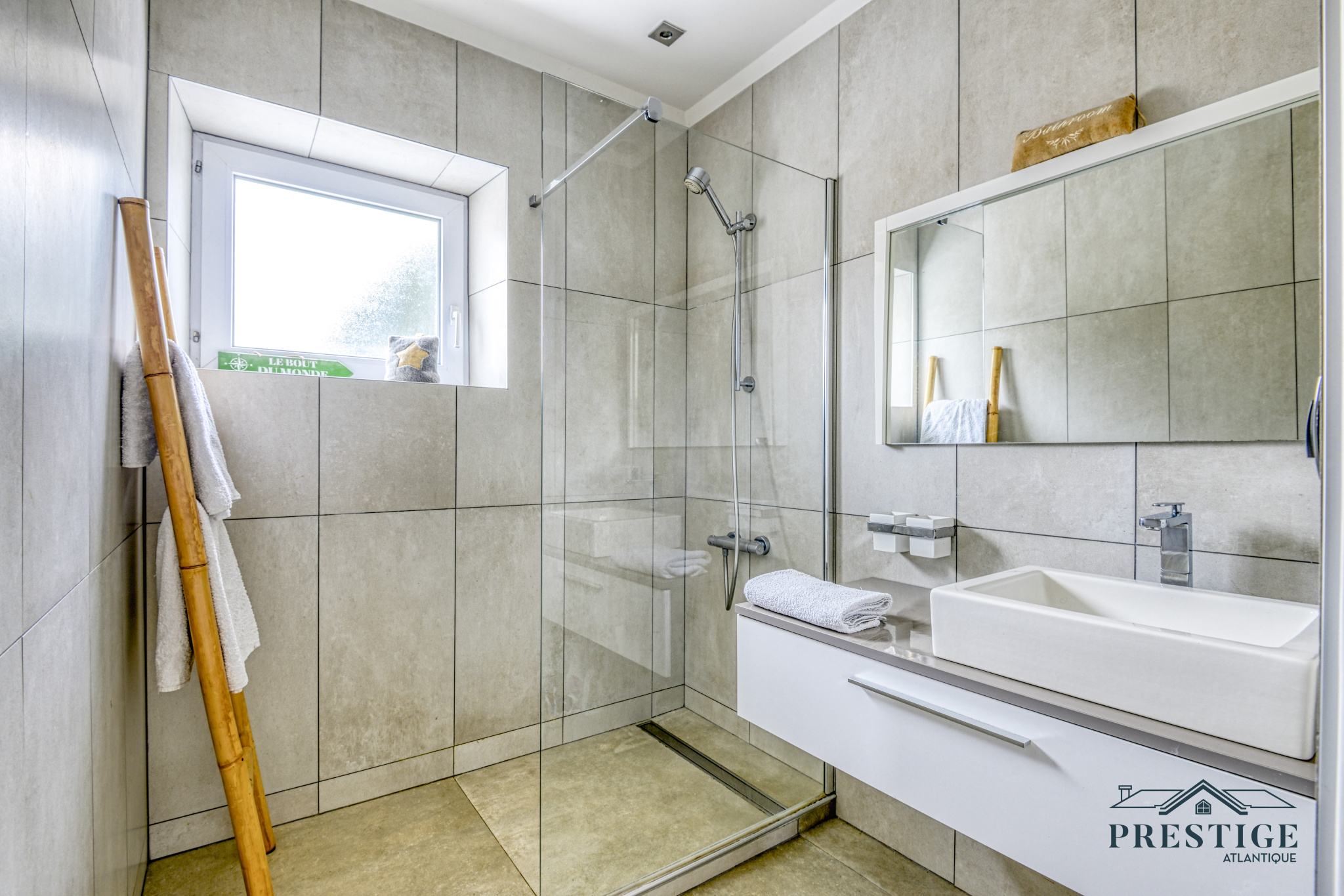 VENDU PAR PRESTIGE ATLANTIQUE. À proximité du Château et de la très convoitée plage de la Noëveillard, cette charmante maison ayant bénéficié d’une rénovation de qualité et aux prestations abouties dispose d’une superficie de 109 m2. L’entrée s’ouvre sur un véritable lieu de réception agrémenté d’une cuisine sur-mesure aménagée équipée premium et prolongé d’un vaste salon au panaroma du jardin de par ses grandes baies vitrées qui effacent les limites entre l’intérieur et l’extérieur, le tout appuyé d'une exposition solaire idéale. Une attention toute particulière à l’abri des regards pour le jardin et le spa sublimé d’une terrasse en bois et d’un eucalyptus faisant office de parasol naturel. Le caractère marié au charme pour ce joli bien jouissant d'une qualité de vie à chaque saison. L’espace nuit offre deux chambres sur parquet massif dont une avec dressing ainsi qu’une salle d’eau. Attenante et indépendante une chambre avec bureau vient parfaire la distribution. Édifée sur une parcelle entièrement close de mur en pierre de 490 m2, de nombreuses dépendances et une buanderie donnent une touche finale à ce bien d’exception dans un secteur très recherché. “Les informations sur les risques auxquels ce bien est exposé sont disponibles sur le site Géorisqueshttp://www.georisques.gouv.fr”. Pour plus de renseignements ou pour organiser une visite privée, contactez-nous sans plus attendre, PRESTIGE ATLANTIQUE 02.40.21.91.13. Prix de vente 603 750€ FAI dont 4 % d'honoraires agence à la charge de l'acquéreur soit un prix net vendeur de 575 000€ (RCS. Saint- Nazaire 897 587 946).