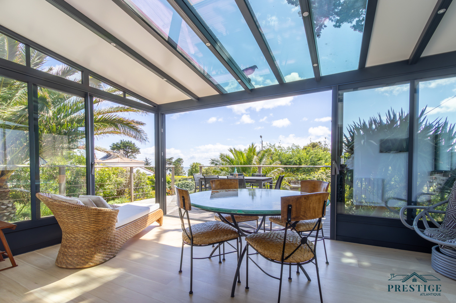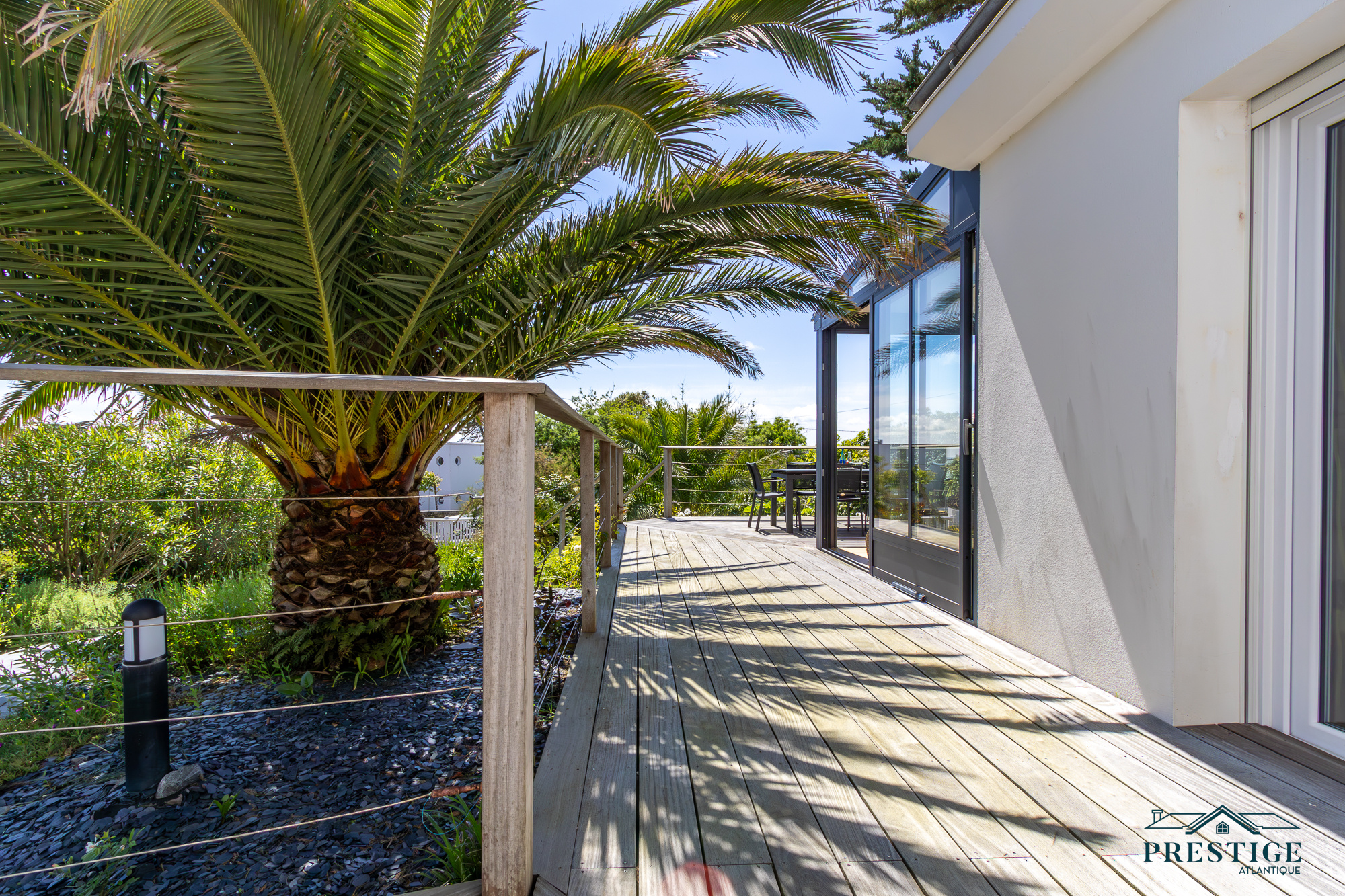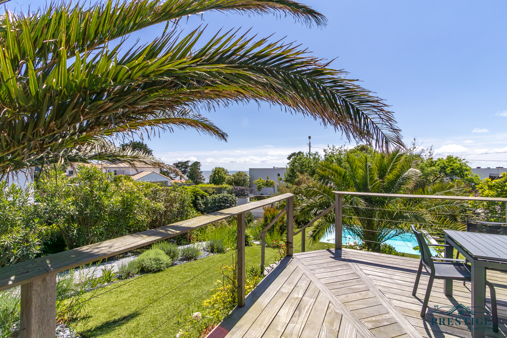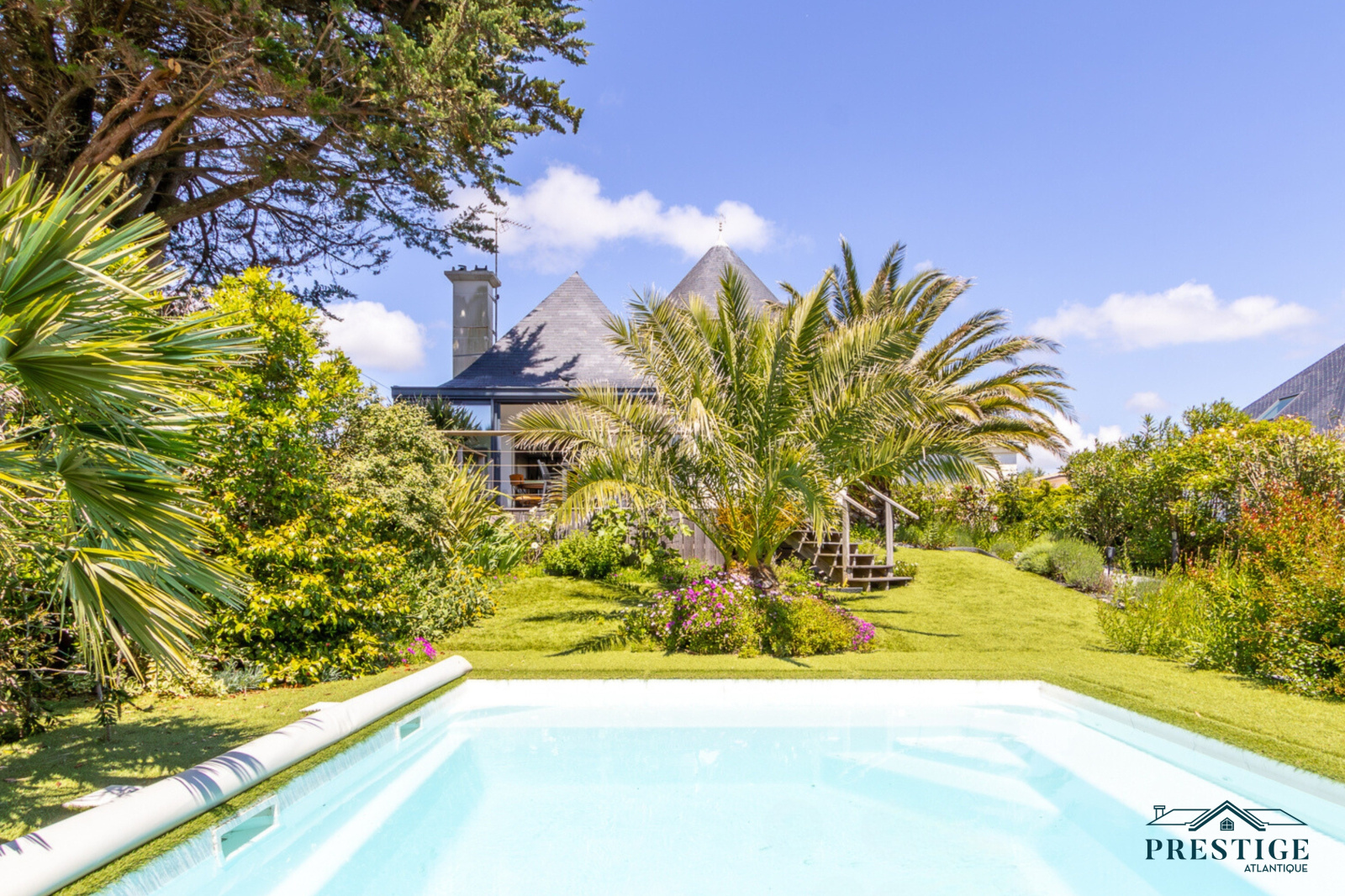 VENDU PAR PRESTIGE ATLANTIQUE. EMPLACEMENT EXCEPTIONNEL VUE MER. Dans le très prisé quartier de Gourmalon, à proximité immédiate du chemin douanier et de la plage de la source, cette charmante villa balnéaire à l’architecture unique dispose d’une superficie habitable de 147m². Elle s’ouvre sur un magnifique hall d’entrée à la hauteur cathédrale qui vient desservir une pièce de vie traversante de lumière agrémentée d’une cuisine aménagée équipée premium, le tout donnant sur une véranda prolongée d’une terrasse à l’ensoleillement idéal et jouissant d’une jolie vue sur l’océan ainsi que sur son jardin joliment arboré sublimé de sa piscine chauffée. Une master room avec dressing, salle de bains et son accès privatif à la terrasse sublimée d’une vue mer ne fait que confirmer cette vie de plain-pied en rez-de-jardin. Au niveau supérieur, un palier dessert trois chambres avec placard et une salle de bains vient complèter l’espace nuit. Édifiée sur une parcelle close et paysager de 1157m², un sous-sol d’environ 100m² incluant un vaste garage donne une touche finale à ce bien rare et recherché. “Les informations sur les risques auxquels ce bien est exposé sont disponibles sur le site Géorisques http://www.georisques.gouv.fr”. Pour plus de renseignements ou pour organiser une visite privée, contactez-nous sans plus attendre, PRESTIGE ATLANTIQUE 02.40.21.91.13. Prix de vente 1 290 000€ FAI dont 5 % d'honoraires agence à la charge de l'acquéreur soit un prix net vendeur de 1 228 571€ (RCS. Saint- Nazaire 897 587 946).