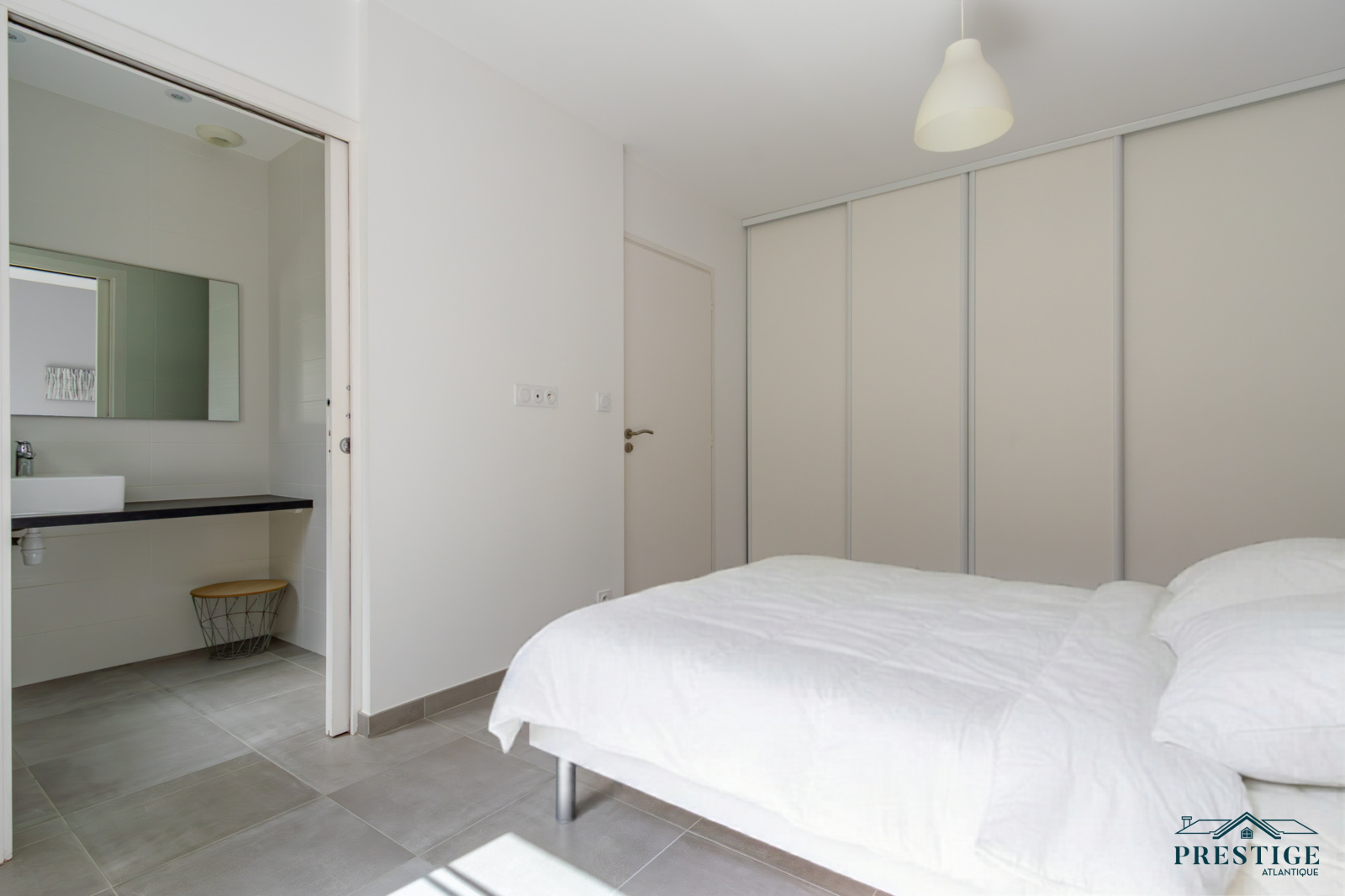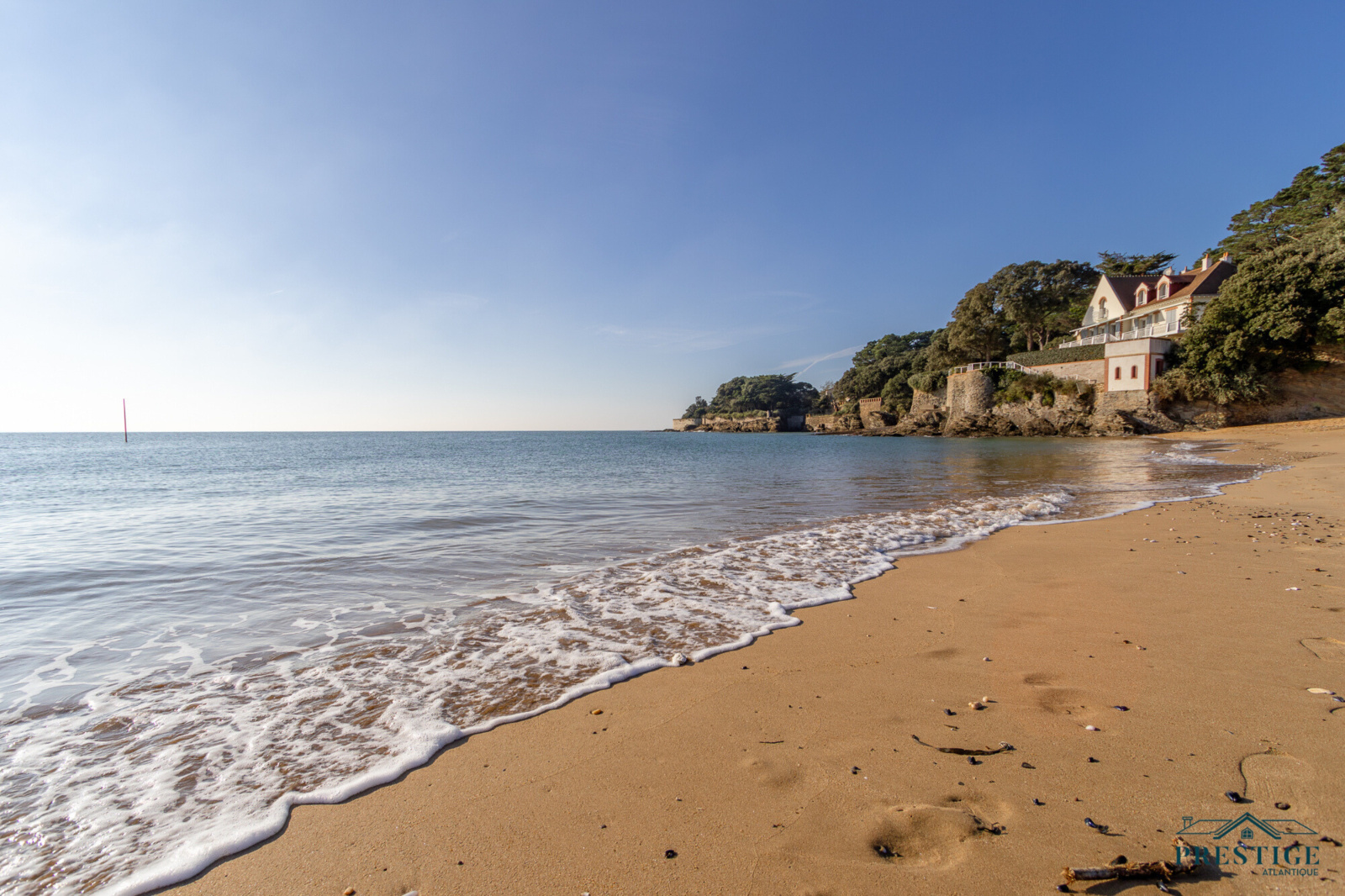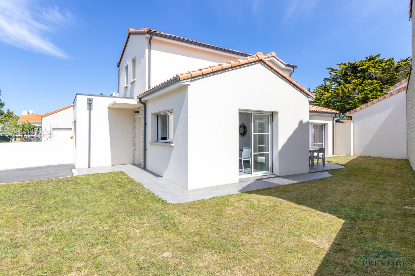 EXCLUSIVITÉ - PRESTIGE ATLANTIQUE. Logement économe (DPE A), aucun travaux nécessaires. Au sein du quartier très recherché de la Noëveillard, cette maison très bien entretenue et de qualité sur deux niveaux dispose de 116m2 utiles. L’entrée s’ouvre sur un salon baigné de lumière agrémenté d’une cuisine sur-mesure aménagée équipée premium, le tout à la vue de son jardin de par ses grandes baies vitrées venant effacer les limites entre l’intérieur et l’extérieur. Une suite avec sa salle d’eau en accès direct à la terrasse confirme la vie de plain pied. L’étage se compose d’une salle de bain et de deux chambres avec pour l’une d’entre elles un dressing. Édifiée sur une parcelle de 245m2 close à la situation géographique idéale et à l'immédiateté des plus belles plages de Pornic. Une allée enrobée avec une place de stationnement et un garage ainsi qu’une buanderie donnent une touche finale à ce bien rare sur le marché. “Les informations sur les risques auxquels ce bien est exposé sont disponibles sur le site Géorisques http://www.georisques.gouv.fr”. Pour plus de renseignements ou pour organiser une visite privée, contactez-nous sans plus attendre, PRESTIGE ATLANTIQUE 02.40.21.91.13. Prix de vente 669 000€ FAI les honoraires agence sont à la charge du vendeur. (RCS. Saint- Nazaire 897 587 946).
