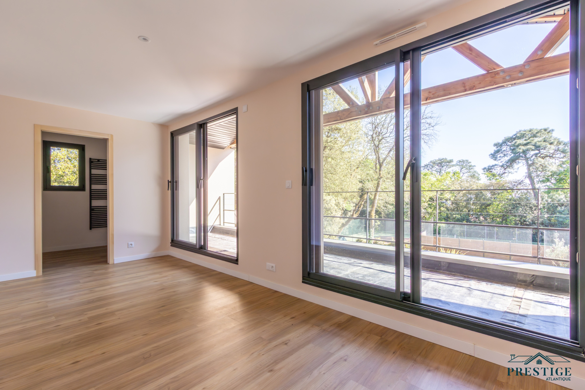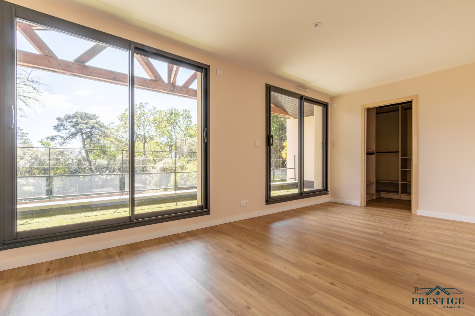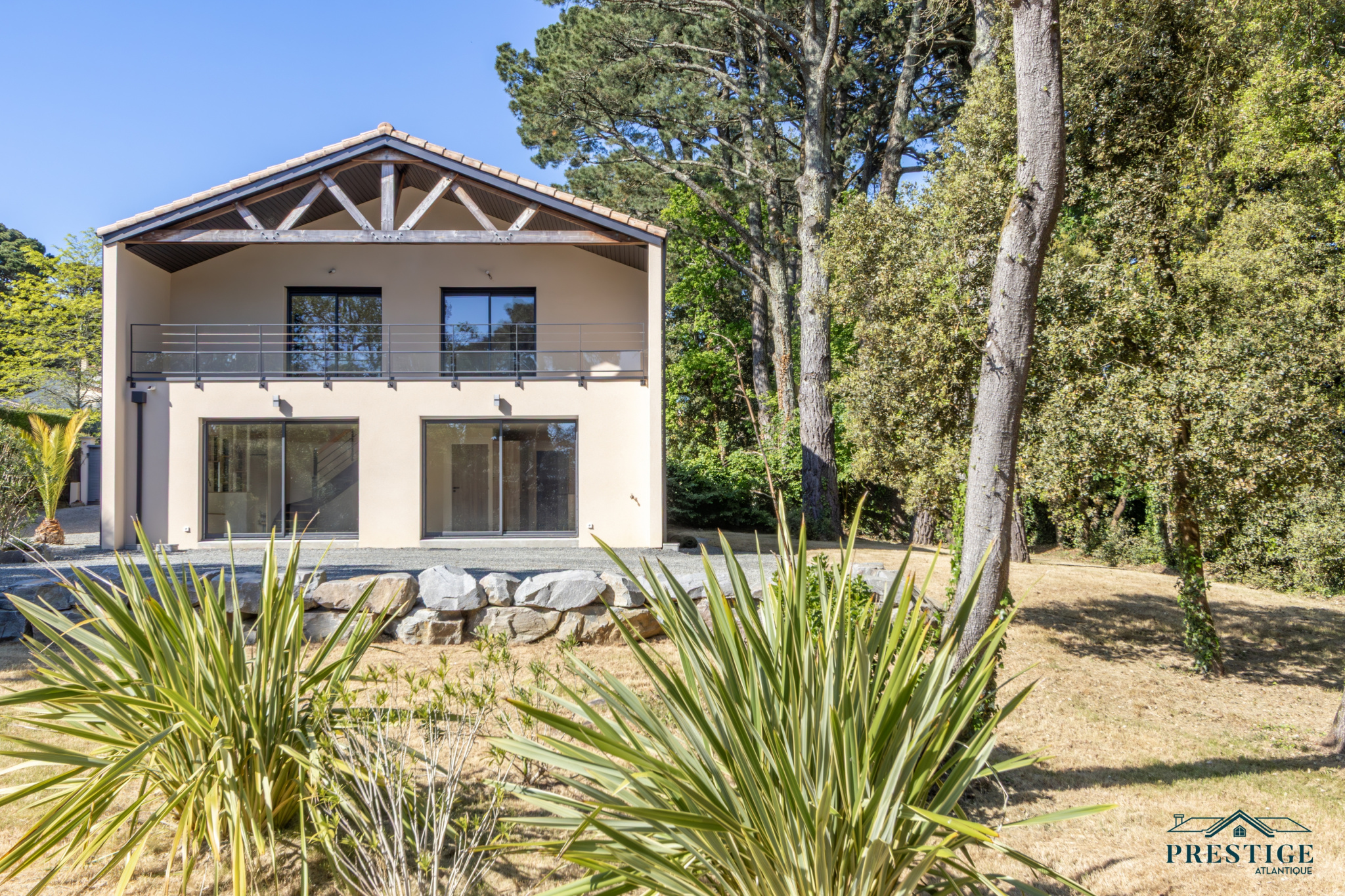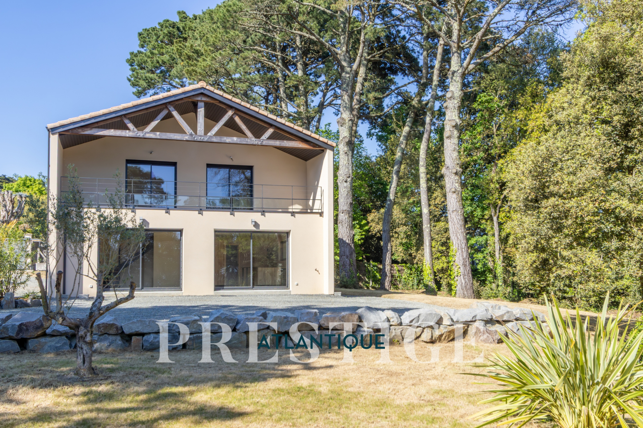 EXCLUSIVITÉ - PRESTIGE ATLANTIQUE. Élégance contemporaine au cœur du prestigieux quartier de la Noëveillard. Idéalement située dans l’une des adresses les plus prisées de Pornic, à quelques pas du Golf, des plages et du port de plaisance de la Noëveillard, cette villa neuve de 2024 dispose d’une superficie de 135m2 utiles. Dès l’entrée, une vaste pièce de vie baignée de lumière sublimée par de larges baies vitrées offrant une ouverture privilégiée sur un écrin de verdure préservé. La cuisine contemporaine entièrement aménagée et équipée s’intègre harmonieusement à cet espace convivial, tandis qu’une arrière-cuisine optimise la fonctionnalité du lieu. À l’étage, trois chambres élégantes dont une somptueuse Master Bedroom avec salle de bain privative, dressing sur mesure et accès à un balcon-terrasse bénéficiant d'une vue imprenable sur le parc arboré. Une salle d’eau supplémentaire complète ce niveau pensé pour un confort absolu. Édifiée sur une parcelle paysagée de 1 394 m² entièrement close et à l’abri des regards, un garage privatif vient parfaire ce bien d’exception. Cette villa offre un cadre de vie privilégié où chaque détail a été pensé pour un confort absolu. Une adresse d’exception au cœur du très recherché quartier de la Noëveillard où la rareté d’un tel bien en fait une opportunité unique sur le marché. “Les informations sur les risques auxquels ce bien est exposé sont disponibles sur le site Géorisques http://www.georisques.gouv.fr”. Pour plus de renseignements ou pour organiser une visite privée, contactez-nous sans plus attendre, PRESTIGE ATLANTIQUE 02.40.21.91.13. Prix de vente 1 470 000€ FAI dont 5 % d'honoraires agence à la charge de l'acquéreur soit un prix net vendeur de 1 400 000€ (RCS. Saint- Nazaire 897 587 946).