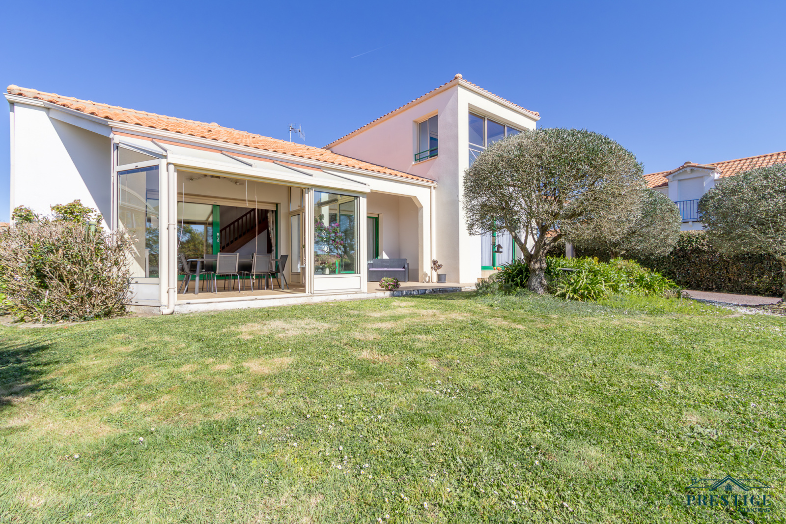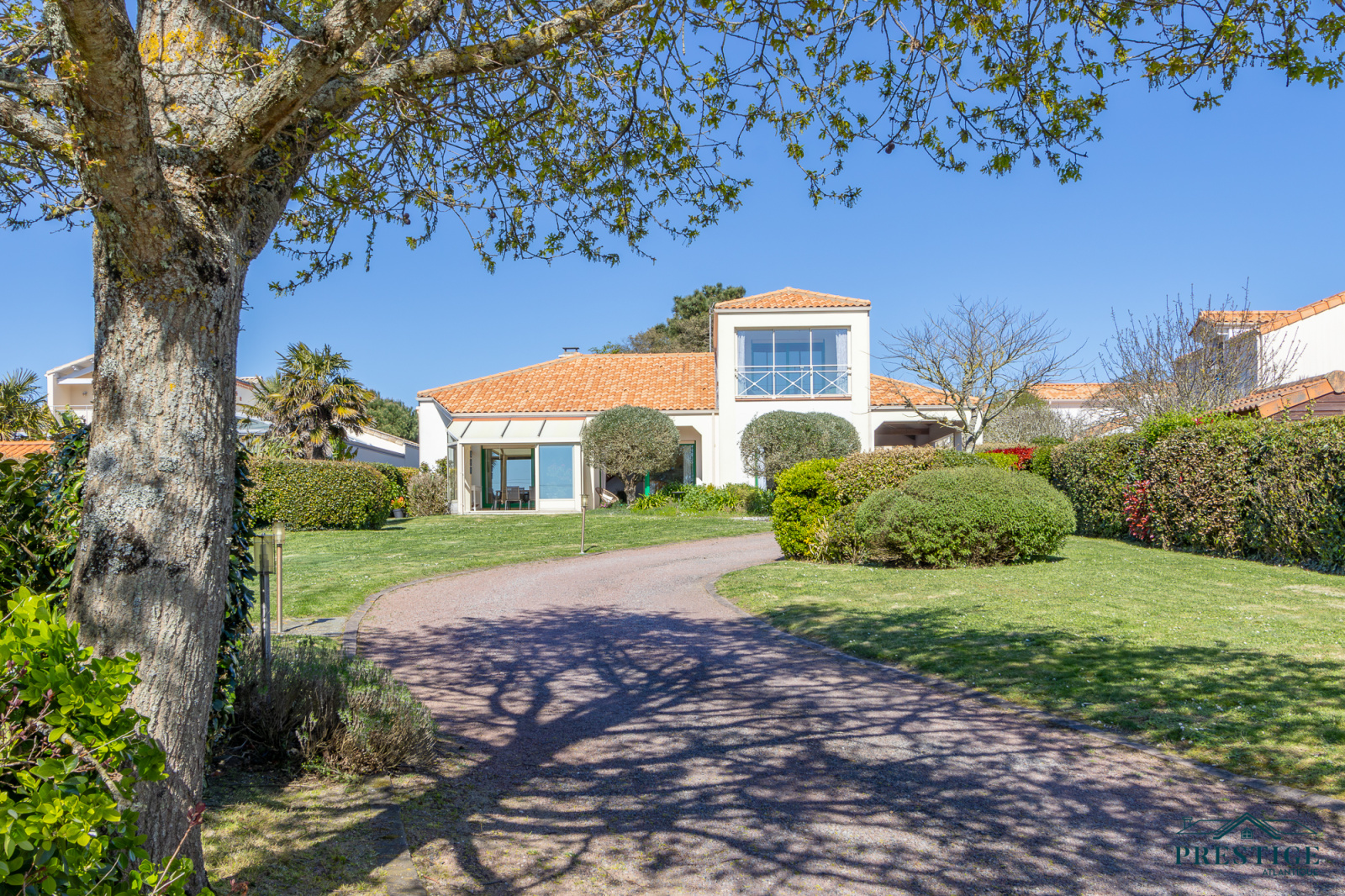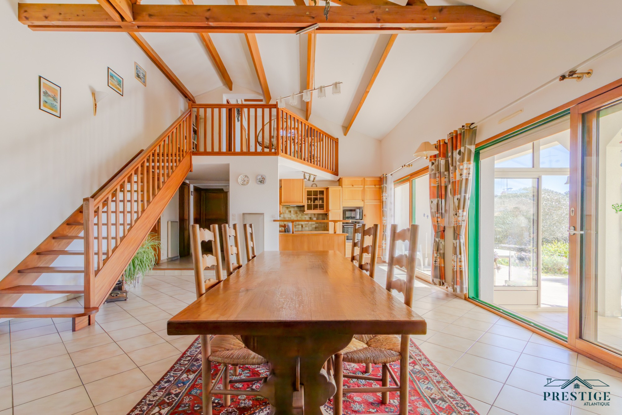 VENDU PAR PRESTIGE ATLANTIQUE. EMPLACEMENT EXCEPTIONNEL VUE MER. Située dans le quartier recherché de La Joselière à quelques pas de la plage, cette charmante maison offre de beaux volumes et développe 180 m² habitables sur deux niveaux. Une entrée dessert une spacieuse pièce de vie baignée de lumière agrémentée d'une cuisine aménagée équipée, le tout s'ouvrant sur une véranda offrant une vue dégagée sur le jardin arboré et l’océan. Deux chambres dont une suite parentale avec salle d’eau privative ne font que confirmer la vie de plain-pied. À l’étage, une mezzanine surplombe le séjour et dessert une vaste salle de jeux prolongée par une loggia offrant un panorama apaisant sur la mer. Une chambre supplémentaire vient parfaire cet espace. Édifiée sur une parcelle close et paysager de 2 088 m², cette propriété dispose d’un double garage et d’un carport, alliant praticité et confort. Un cadre de vie privilégié à deux pas de l’océan. “Les informations sur les risques auxquels ce bien est exposé sont disponibles sur le site Géorisques http://www.georisques.gouv.fr”. Pour plus de renseignements ou pour organiser une visite privée, contactez-nous sans plus attendre, PRESTIGE ATLANTIQUE 02.40.21.91.13. Prix de vente 892 500€ FAI dont 5 % d'honoraires agence à la charge de l'acquéreur soit un prix net vendeur de 850 000€ (RCS. Saint- Nazaire 897 587 946).