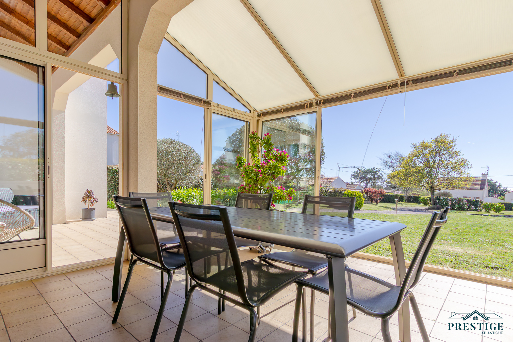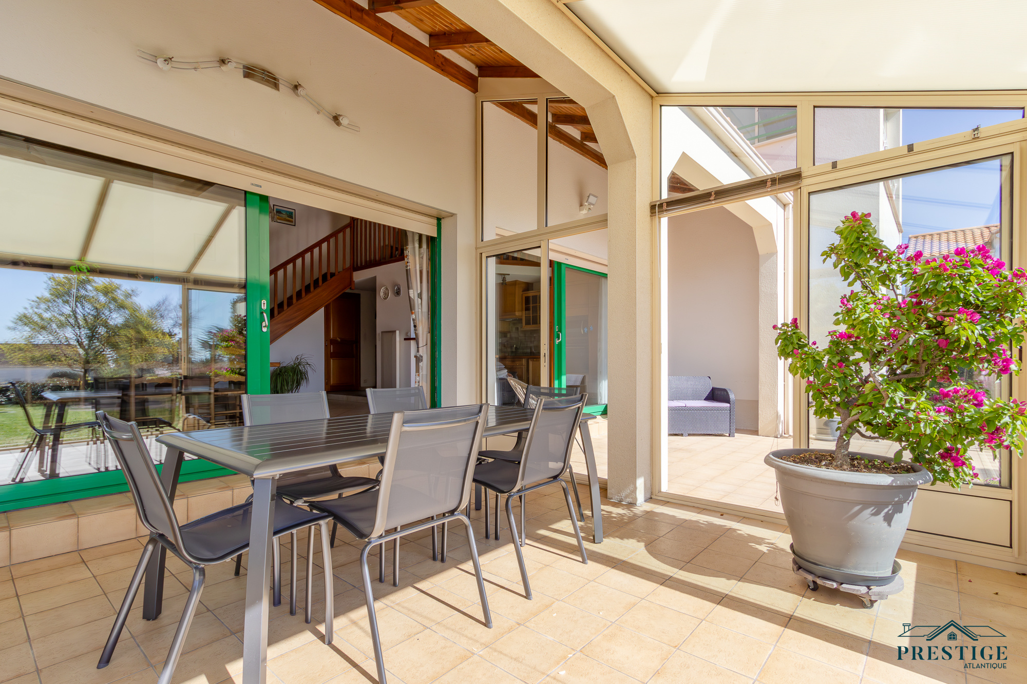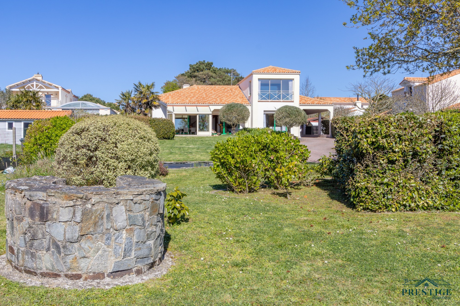 VENDU PAR PRESTIGE ATLANTIQUE. EMPLACEMENT EXCEPTIONNEL VUE MER. Située dans le quartier recherché de La Joselière à quelques pas de la plage, cette charmante maison offre de beaux volumes et développe 180 m² habitables sur deux niveaux. Une entrée dessert une spacieuse pièce de vie baignée de lumière agrémentée d'une cuisine aménagée équipée, le tout s'ouvrant sur une véranda offrant une vue dégagée sur le jardin arboré et l’océan. Deux chambres dont une suite parentale avec salle d’eau privative ne font que confirmer la vie de plain-pied. À l’étage, une mezzanine surplombe le séjour et dessert une vaste salle de jeux prolongée par une loggia offrant un panorama apaisant sur la mer. Une chambre supplémentaire vient parfaire cet espace. Édifiée sur une parcelle close et paysager de 2 088 m², cette propriété dispose d’un double garage et d’un carport, alliant praticité et confort. Un cadre de vie privilégié à deux pas de l’océan. “Les informations sur les risques auxquels ce bien est exposé sont disponibles sur le site Géorisques http://www.georisques.gouv.fr”. Pour plus de renseignements ou pour organiser une visite privée, contactez-nous sans plus attendre, PRESTIGE ATLANTIQUE 02.40.21.91.13. Prix de vente 892 500€ FAI dont 5 % d'honoraires agence à la charge de l'acquéreur soit un prix net vendeur de 850 000€ (RCS. Saint- Nazaire 897 587 946).