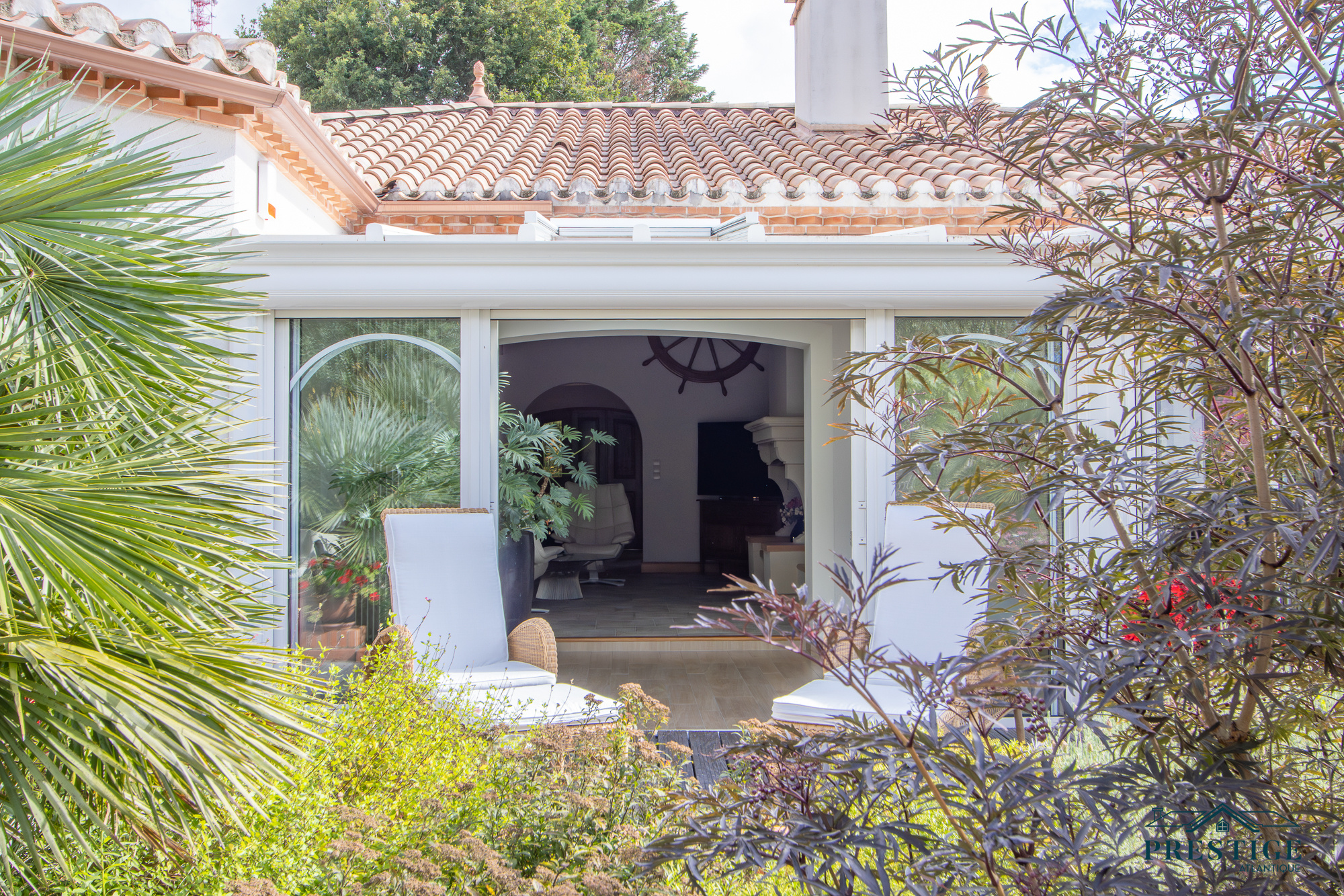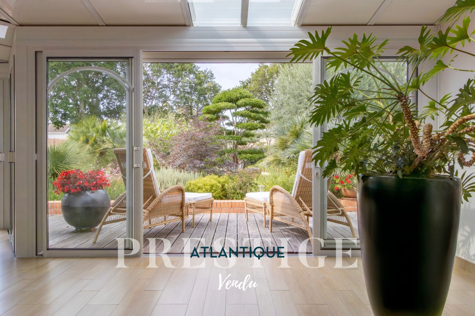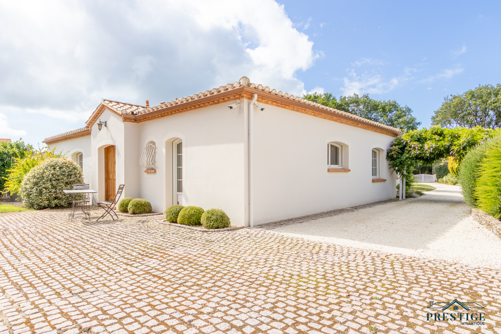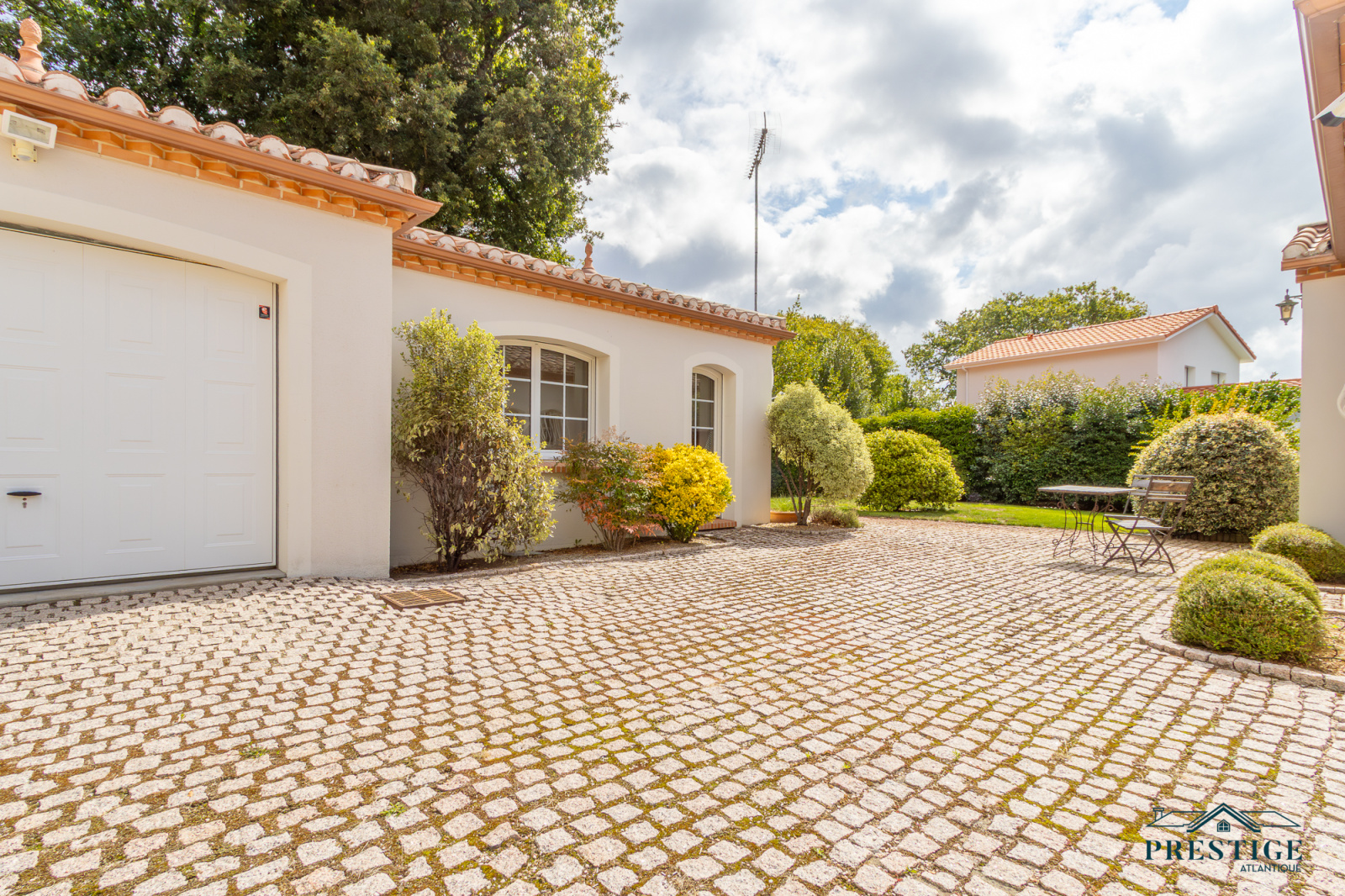 VENDU PAR PRESTIGE ATLANTIQUE. Située dans le quartier très recherché des Hauts de la Noëveillard, à proximité immédiate des plages et des commerces, cette élégante villa de plain-pied aux prestations soignées développe une surface habitable de 220 m². Un hall d’entrée avec vestibule dessert une belle pièce de vie dotée d’une grande hauteur sous plafond prolongée d’une véranda baignée de lumière, l’ensemble s’ouvrant sur une terrasse idéalement exposée avec vue sur le jardin joliment paysager. Une cuisine aménagée et équipée, accompagnée de son arrière-cuisine/buanderie vient compléter harmonieusement ce lieu de vie. L’espace nuit se compose de quatre chambres et de deux salles d’eau. Édifiée sur une parcelle close et arborée de 1 946 m², cette villa se distingue également par son sous-sol total, comprenant salle de jeux, cave, chaufferie, et un garage triple. Véritable atout supplémentaire : une chambre d’amis indépendante et un second garage apportent une touche finale à ce bien d’exception. “Les informations sur les risques auxquels ce bien est exposé sont disponibles sur le site Géorisques http://www.georisques.gouv.fr”. Pour plus de renseignements ou pour organiser une visite privée, contactez-nous sans plus attendre, PRESTIGE ATLANTIQUE 02.40.21.91.13. Prix de vente 1 199 000€ FAI dont 5 % d'honoraires agence à la charge de l'acquéreur soit un prix net vendeur de 1 141 904€ (RCS. Saint- Nazaire 897 587 946).