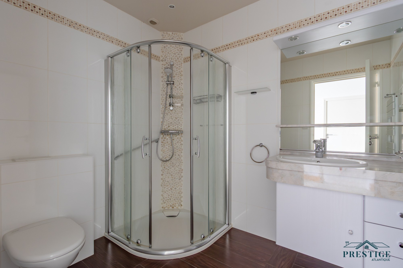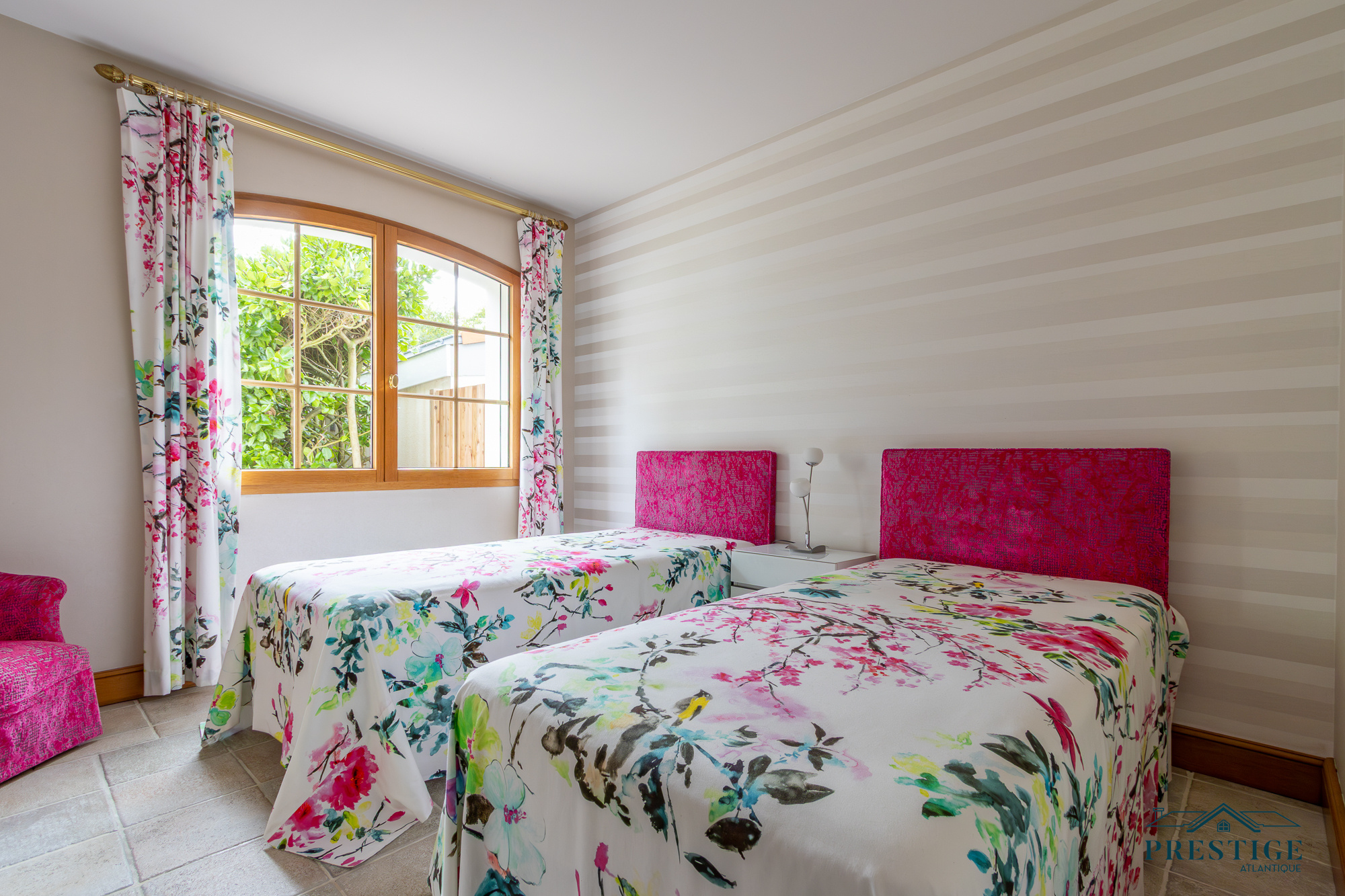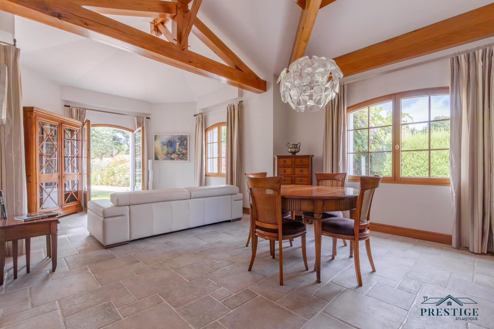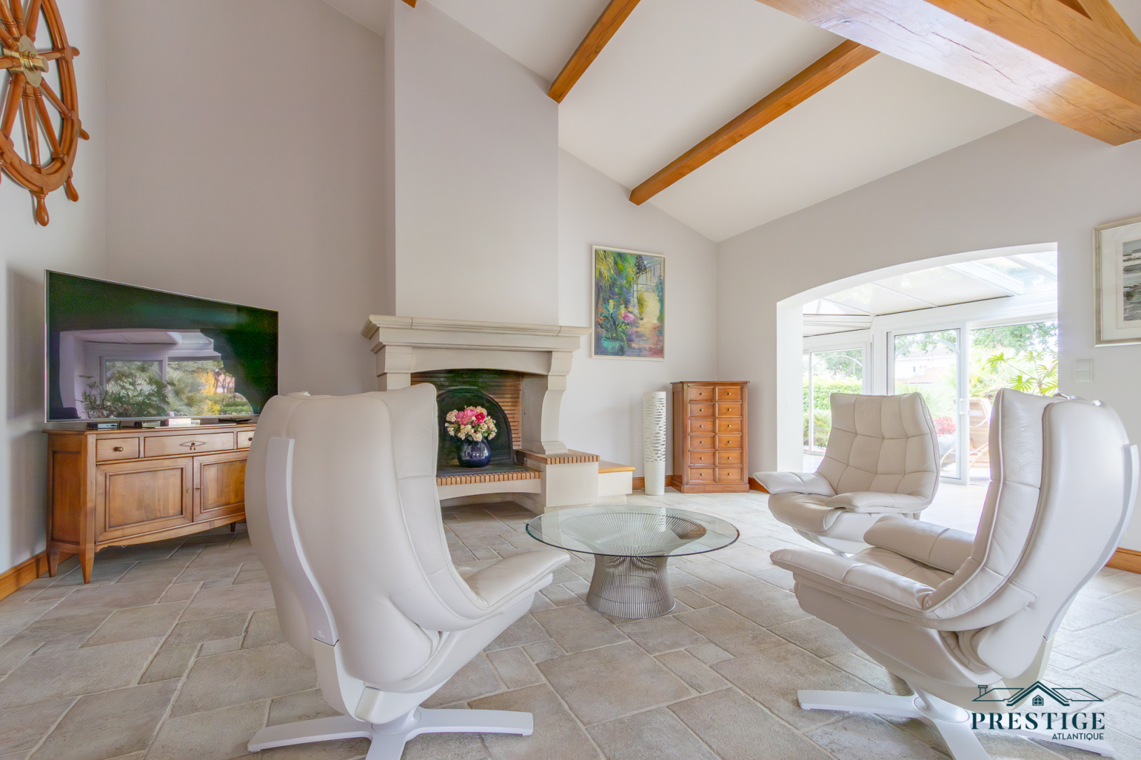 VENDU PAR PRESTIGE ATLANTIQUE. Située dans le quartier très recherché des Hauts de la Noëveillard, à proximité immédiate des plages et des commerces, cette élégante villa de plain-pied aux prestations soignées développe une surface habitable de 220 m². Un hall d’entrée avec vestibule dessert une belle pièce de vie dotée d’une grande hauteur sous plafond prolongée d’une véranda baignée de lumière, l’ensemble s’ouvrant sur une terrasse idéalement exposée avec vue sur le jardin joliment paysager. Une cuisine aménagée et équipée, accompagnée de son arrière-cuisine/buanderie vient compléter harmonieusement ce lieu de vie. L’espace nuit se compose de quatre chambres et de deux salles d’eau. Édifiée sur une parcelle close et arborée de 1 946 m², cette villa se distingue également par son sous-sol total, comprenant salle de jeux, cave, chaufferie, et un garage triple. Véritable atout supplémentaire : une chambre d’amis indépendante et un second garage apportent une touche finale à ce bien d’exception. “Les informations sur les risques auxquels ce bien est exposé sont disponibles sur le site Géorisques http://www.georisques.gouv.fr”. Pour plus de renseignements ou pour organiser une visite privée, contactez-nous sans plus attendre, PRESTIGE ATLANTIQUE 02.40.21.91.13. Prix de vente 1 199 000€ FAI dont 5 % d'honoraires agence à la charge de l'acquéreur soit un prix net vendeur de 1 141 904€ (RCS. Saint- Nazaire 897 587 946).