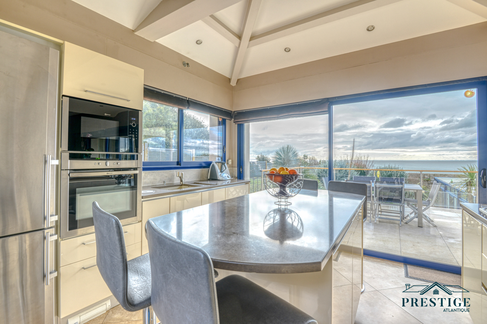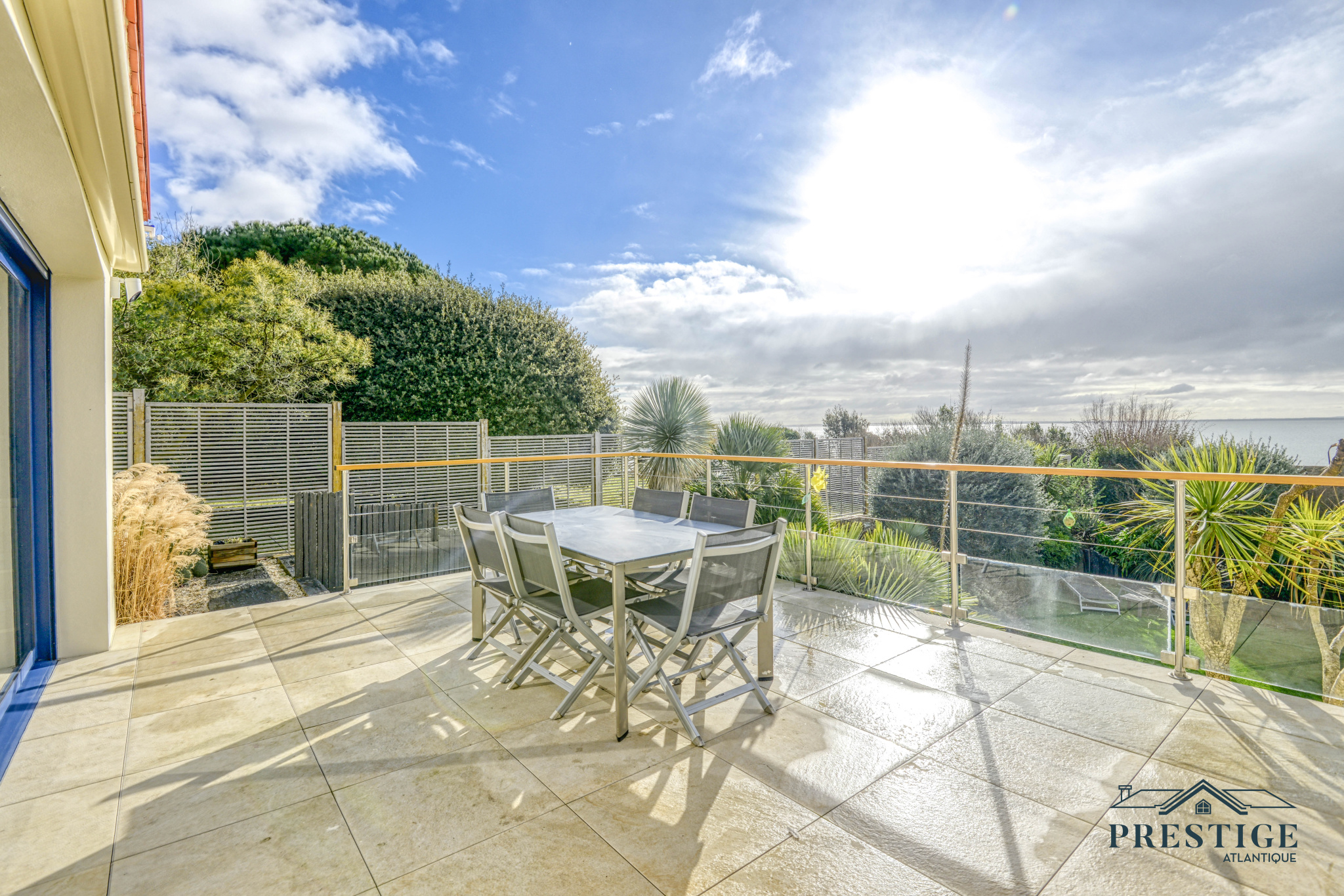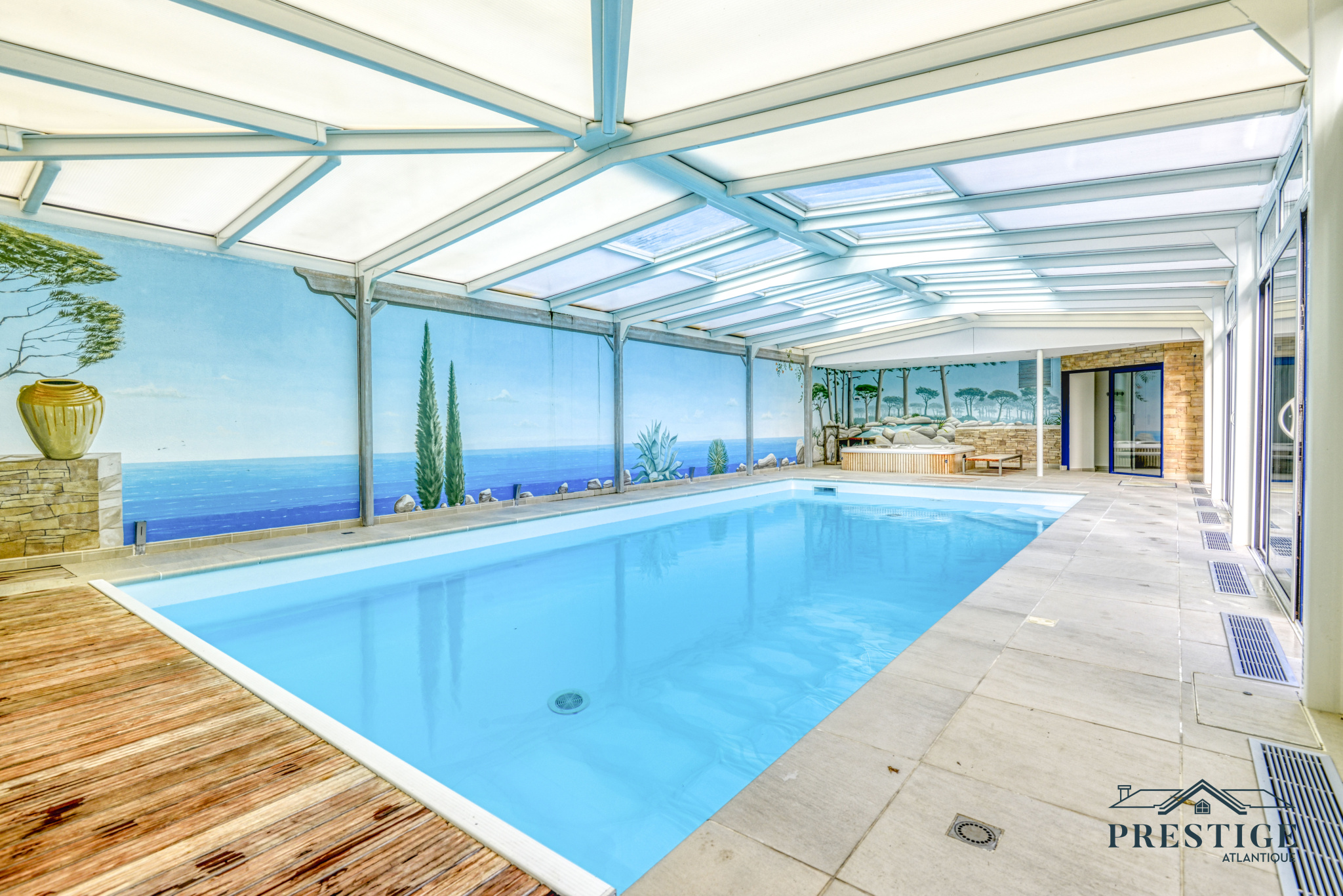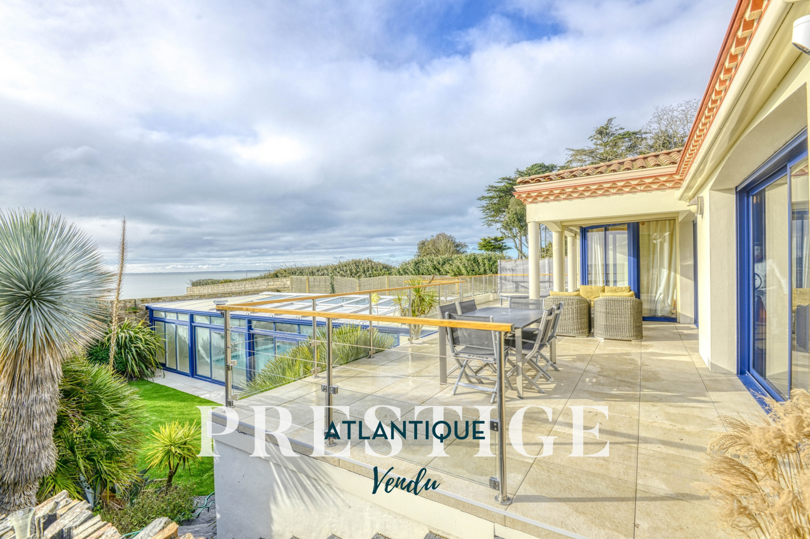 VENDU PAR PRESTIGE ATLANTIQUE - RARISSIME. À l'abri des regards, cette improbable villa d’architecte jouissant d’une position prédominante de la cote sur deux niveaux dispose d’une superficie utile de 363m2. Elle offre une agréable pièce de vie lumineuse de plus de 80m2 proposant un salon agrémenté de sa cheminée en suspension, un séjour aux multiples vues sur l’ocean, une cuisine équipée aménagée premium en accès direct sur le jardin d’hiver, le tout donnant sur une vaste terrasse devant l’ocean atlantique et surplombant son espace piscine intérieur conçue pour se baigner toute l’année. L’espace nuit se compose de trois suites ( salle d’eau / Placard ) et d’une master room ( salle de bains / dressing / terrasse ) bénéficiant d’une vue exceptionnelle de la mer et d’un accès direct à la terrasse. Le niveau inférieur comprend une piscine 4/9m avec spa et une salle d’eau, l’ensemble vitré permettant d’effacer les limites entre l’extérieur et l’intérieur. Édifiée sur une parcelle joliment paysager close et sans vis à vis de 1154m2 avec allée privée et accès privatif aux chemins côtiers. Garage motorisé et un double carport donnent une touche finale à ce bien très complet. Cette villa de prestige, rare sur le marché, unique dans la conception et magnifique pour ses vues vous offrira un cadre de vie idyllique. “Les informations sur les risques auxquels ce bien est exposé sont disponibles sur le site Géorisques http://www.georisques.gouv.fr”. Pour plus de renseignements ou pour organiser une visite privée, contactez-nous sans plus attendre, PRESTIGE ATLANTIQUE 02.40.21.91.13. Prix de vente 2 572 500€ FAI dont 5% d'honoraires agence à la charge de l'acquéreur soit un prix net vendeur de 2 450 000€ (RCS. Saint- Nazaire 897 587 946).