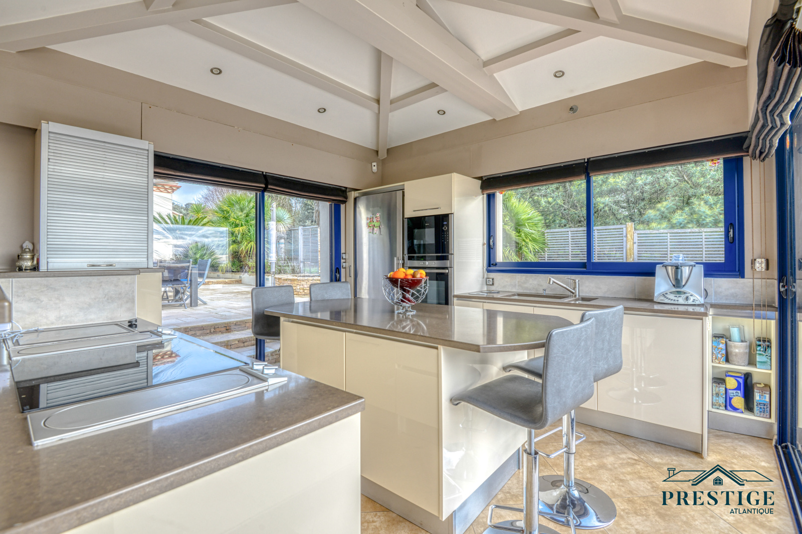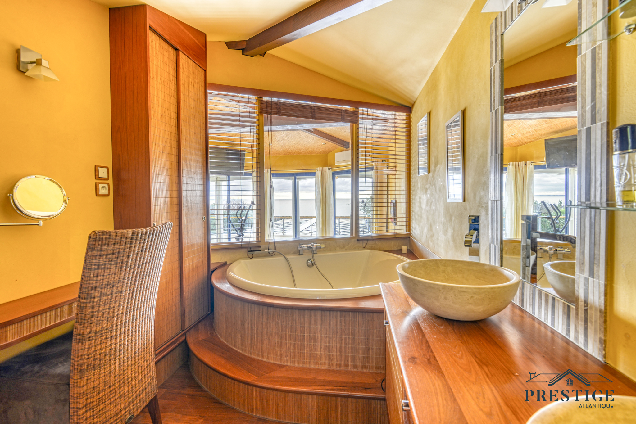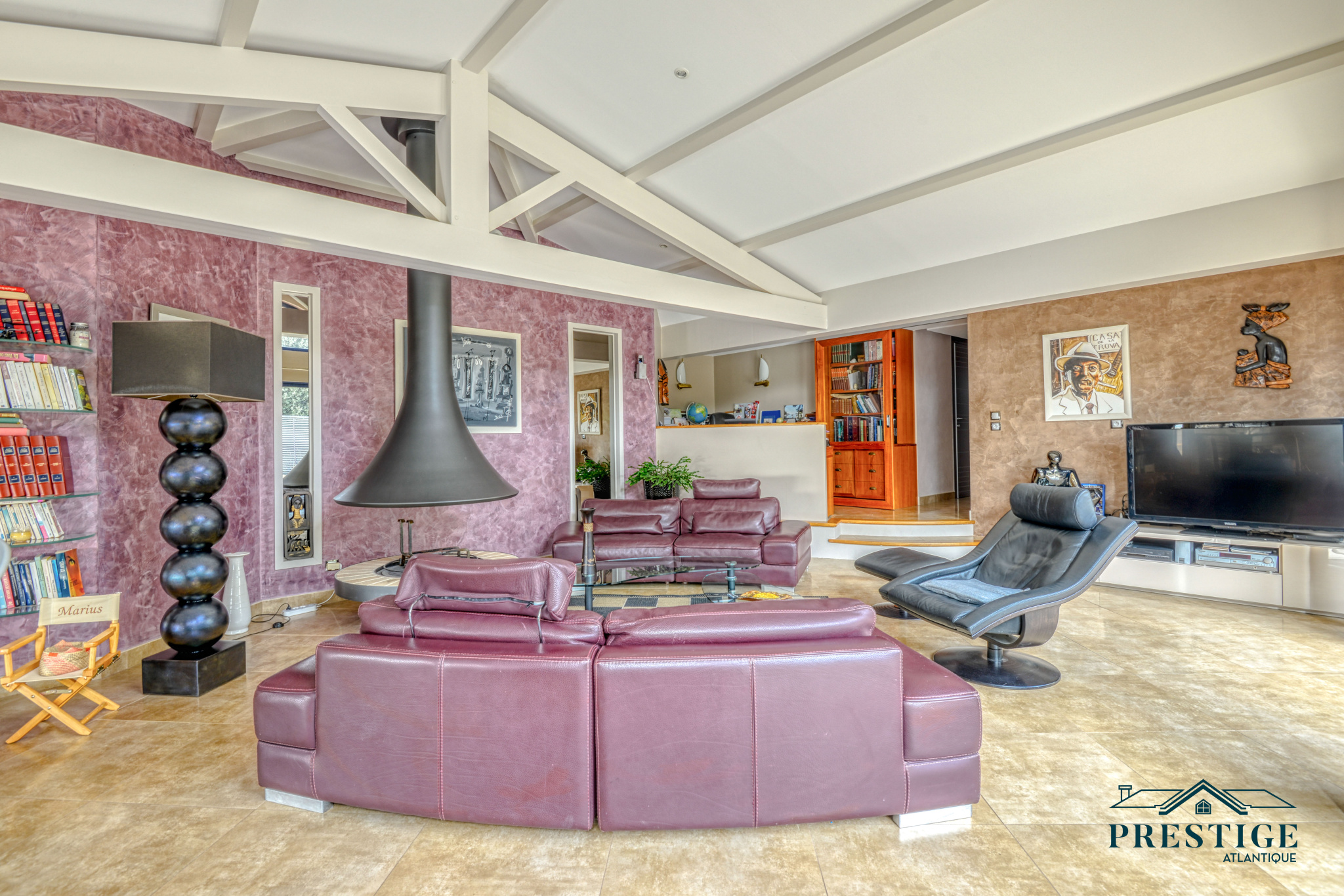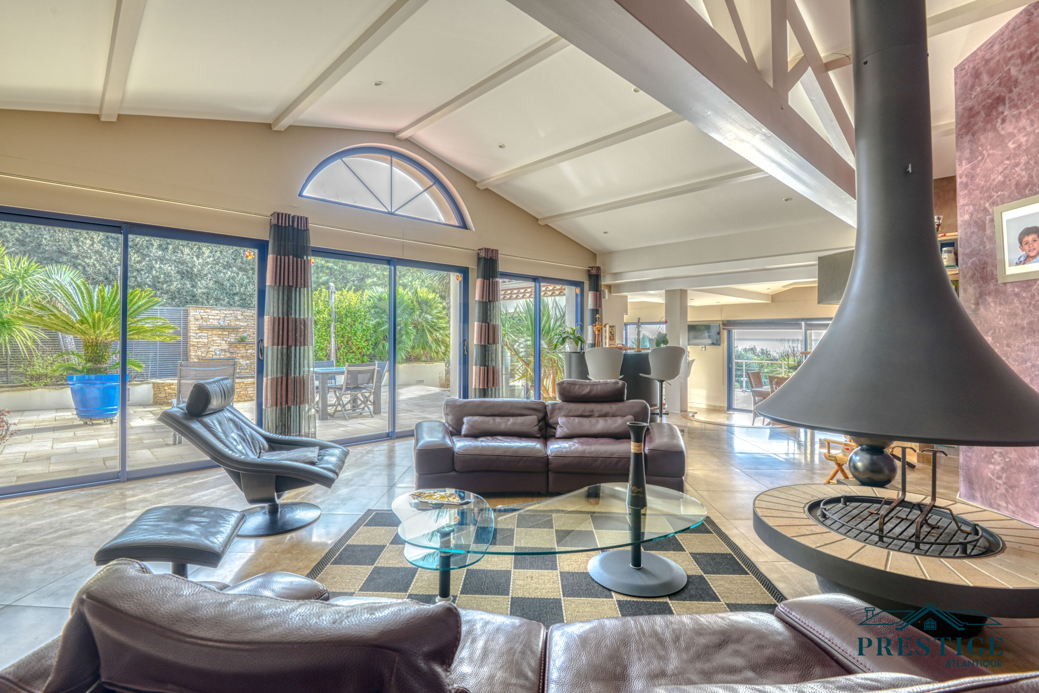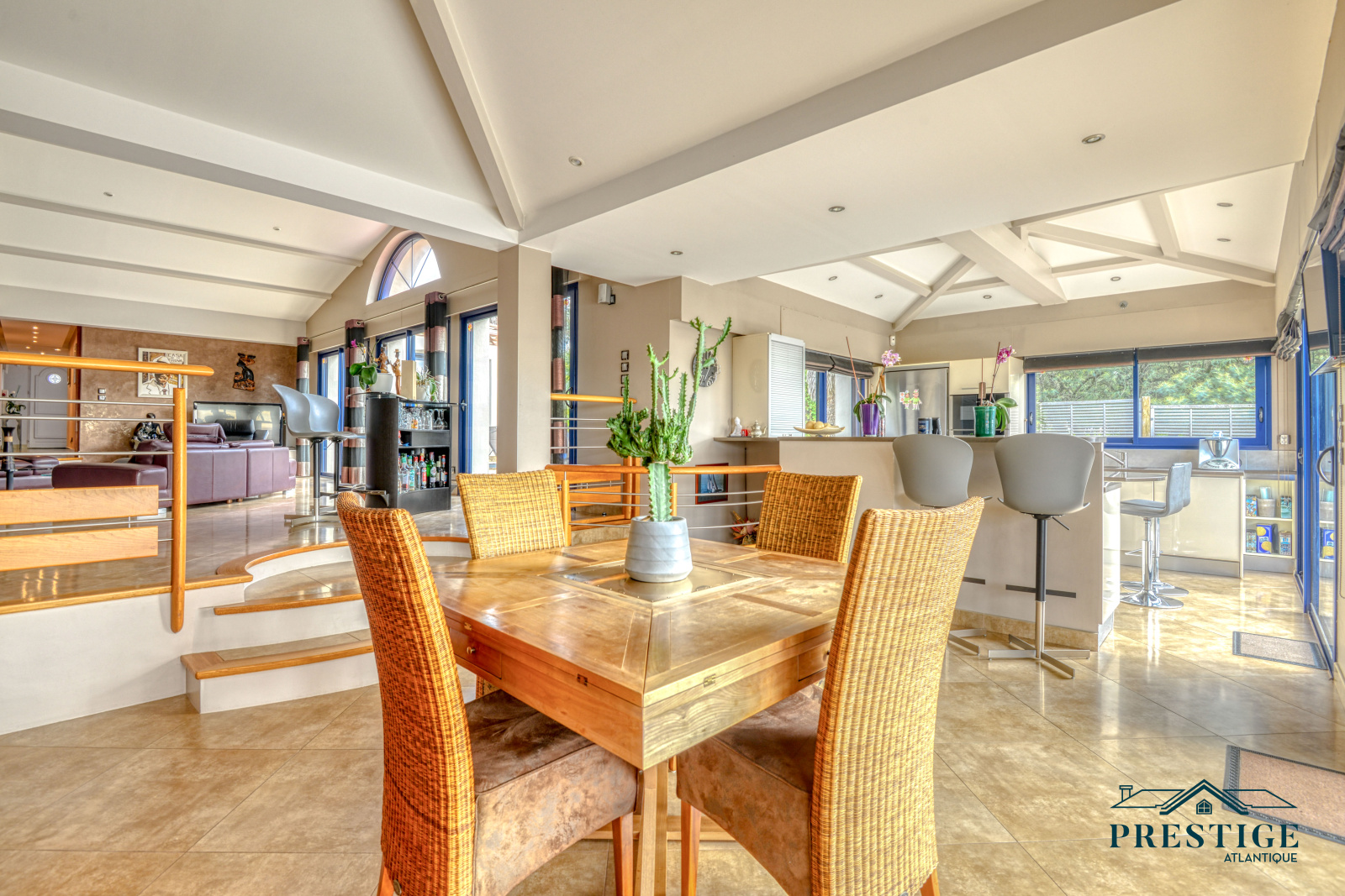 VENDU PAR PRESTIGE ATLANTIQUE - RARISSIME. À l'abri des regards, cette improbable villa d’architecte jouissant d’une position prédominante de la cote sur deux niveaux dispose d’une superficie utile de 363m2. Elle offre une agréable pièce de vie lumineuse de plus de 80m2 proposant un salon agrémenté de sa cheminée en suspension, un séjour aux multiples vues sur l’ocean, une cuisine équipée aménagée premium en accès direct sur le jardin d’hiver, le tout donnant sur une vaste terrasse devant l’ocean atlantique et surplombant son espace piscine intérieur conçue pour se baigner toute l’année. L’espace nuit se compose de trois suites ( salle d’eau / Placard ) et d’une master room ( salle de bains / dressing / terrasse ) bénéficiant d’une vue exceptionnelle de la mer et d’un accès direct à la terrasse. Le niveau inférieur comprend une piscine 4/9m avec spa et une salle d’eau, l’ensemble vitré permettant d’effacer les limites entre l’extérieur et l’intérieur. Édifiée sur une parcelle joliment paysager close et sans vis à vis de 1154m2 avec allée privée et accès privatif aux chemins côtiers. Garage motorisé et un double carport donnent une touche finale à ce bien très complet. Cette villa de prestige, rare sur le marché, unique dans la conception et magnifique pour ses vues vous offrira un cadre de vie idyllique. “Les informations sur les risques auxquels ce bien est exposé sont disponibles sur le site Géorisques http://www.georisques.gouv.fr”. Pour plus de renseignements ou pour organiser une visite privée, contactez-nous sans plus attendre, PRESTIGE ATLANTIQUE 02.40.21.91.13. Prix de vente 2 572 500€ FAI dont 5% d'honoraires agence à la charge de l'acquéreur soit un prix net vendeur de 2 450 000€ (RCS. Saint- Nazaire 897 587 946).