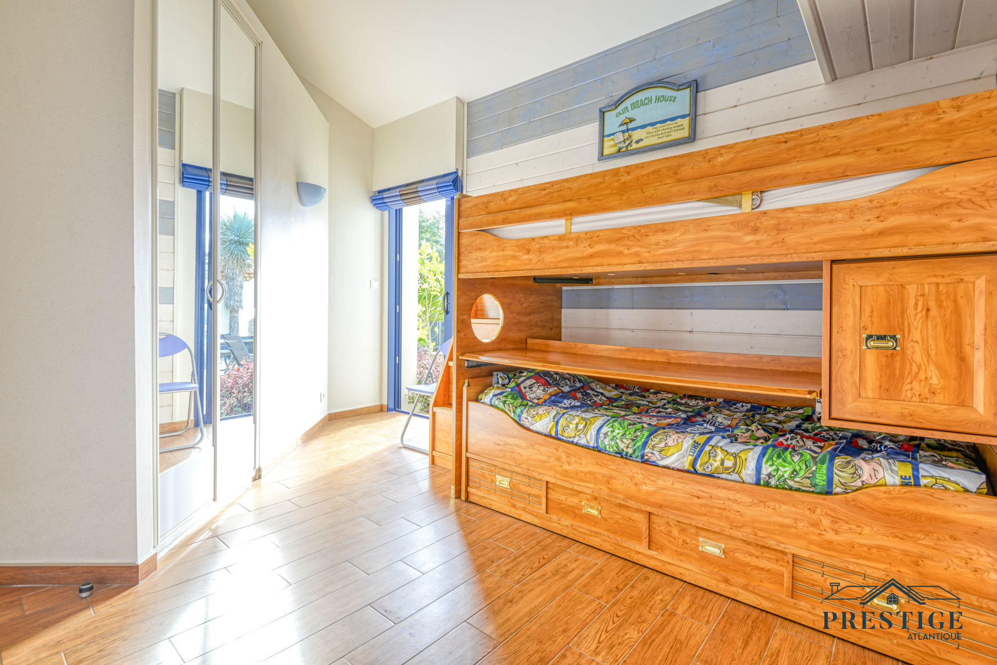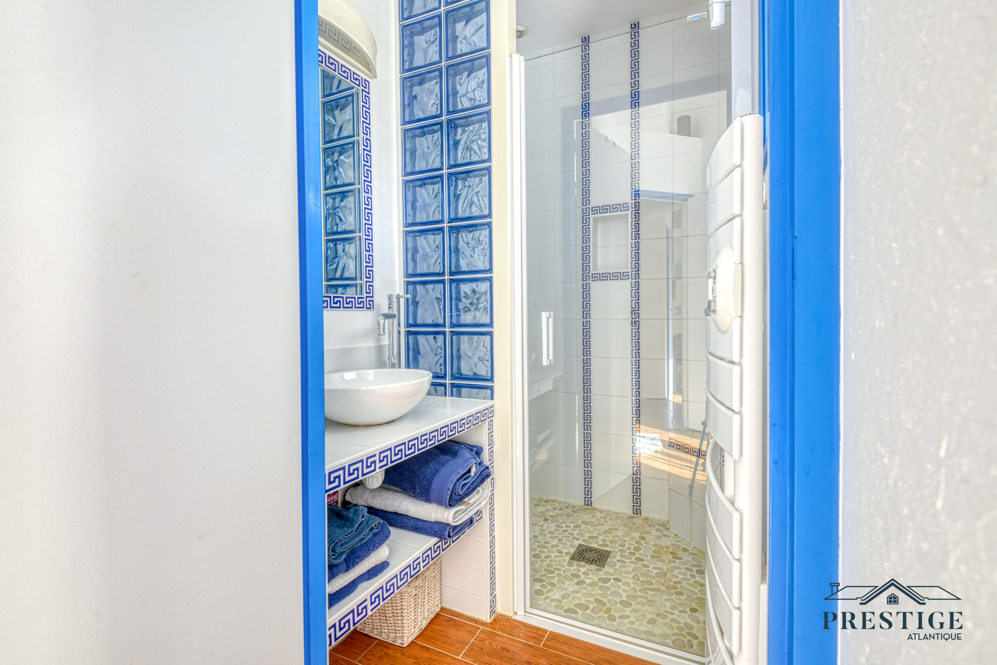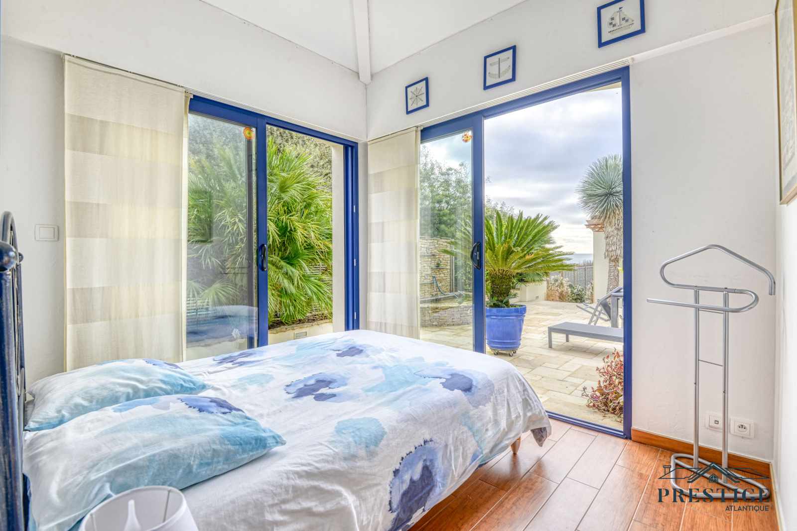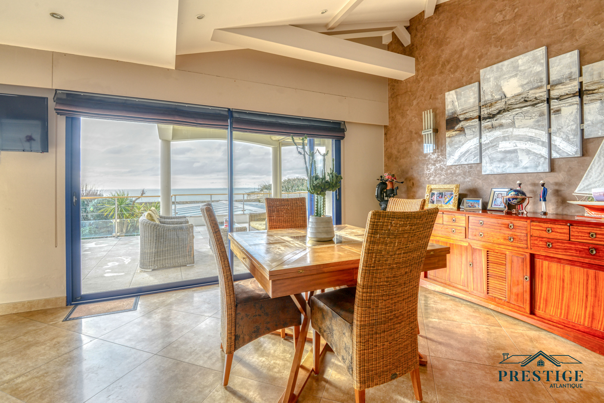 VENDU PAR PRESTIGE ATLANTIQUE - RARISSIME. À l'abri des regards, cette improbable villa d’architecte jouissant d’une position prédominante de la cote sur deux niveaux dispose d’une superficie utile de 363m2. Elle offre une agréable pièce de vie lumineuse de plus de 80m2 proposant un salon agrémenté de sa cheminée en suspension, un séjour aux multiples vues sur l’ocean, une cuisine équipée aménagée premium en accès direct sur le jardin d’hiver, le tout donnant sur une vaste terrasse devant l’ocean atlantique et surplombant son espace piscine intérieur conçue pour se baigner toute l’année. L’espace nuit se compose de trois suites ( salle d’eau / Placard ) et d’une master room ( salle de bains / dressing / terrasse ) bénéficiant d’une vue exceptionnelle de la mer et d’un accès direct à la terrasse. Le niveau inférieur comprend une piscine 4/9m avec spa et une salle d’eau, l’ensemble vitré permettant d’effacer les limites entre l’extérieur et l’intérieur. Édifiée sur une parcelle joliment paysager close et sans vis à vis de 1154m2 avec allée privée et accès privatif aux chemins côtiers. Garage motorisé et un double carport donnent une touche finale à ce bien très complet. Cette villa de prestige, rare sur le marché, unique dans la conception et magnifique pour ses vues vous offrira un cadre de vie idyllique. “Les informations sur les risques auxquels ce bien est exposé sont disponibles sur le site Géorisques http://www.georisques.gouv.fr”. Pour plus de renseignements ou pour organiser une visite privée, contactez-nous sans plus attendre, PRESTIGE ATLANTIQUE 02.40.21.91.13. Prix de vente 2 572 500€ FAI dont 5% d'honoraires agence à la charge de l'acquéreur soit un prix net vendeur de 2 450 000€ (RCS. Saint- Nazaire 897 587 946).