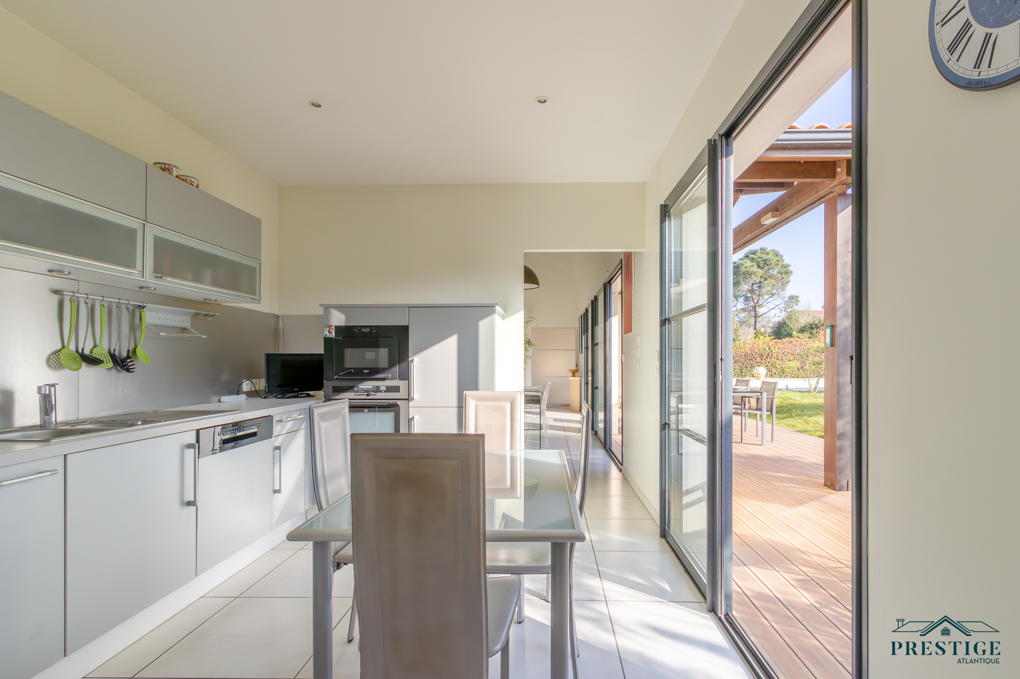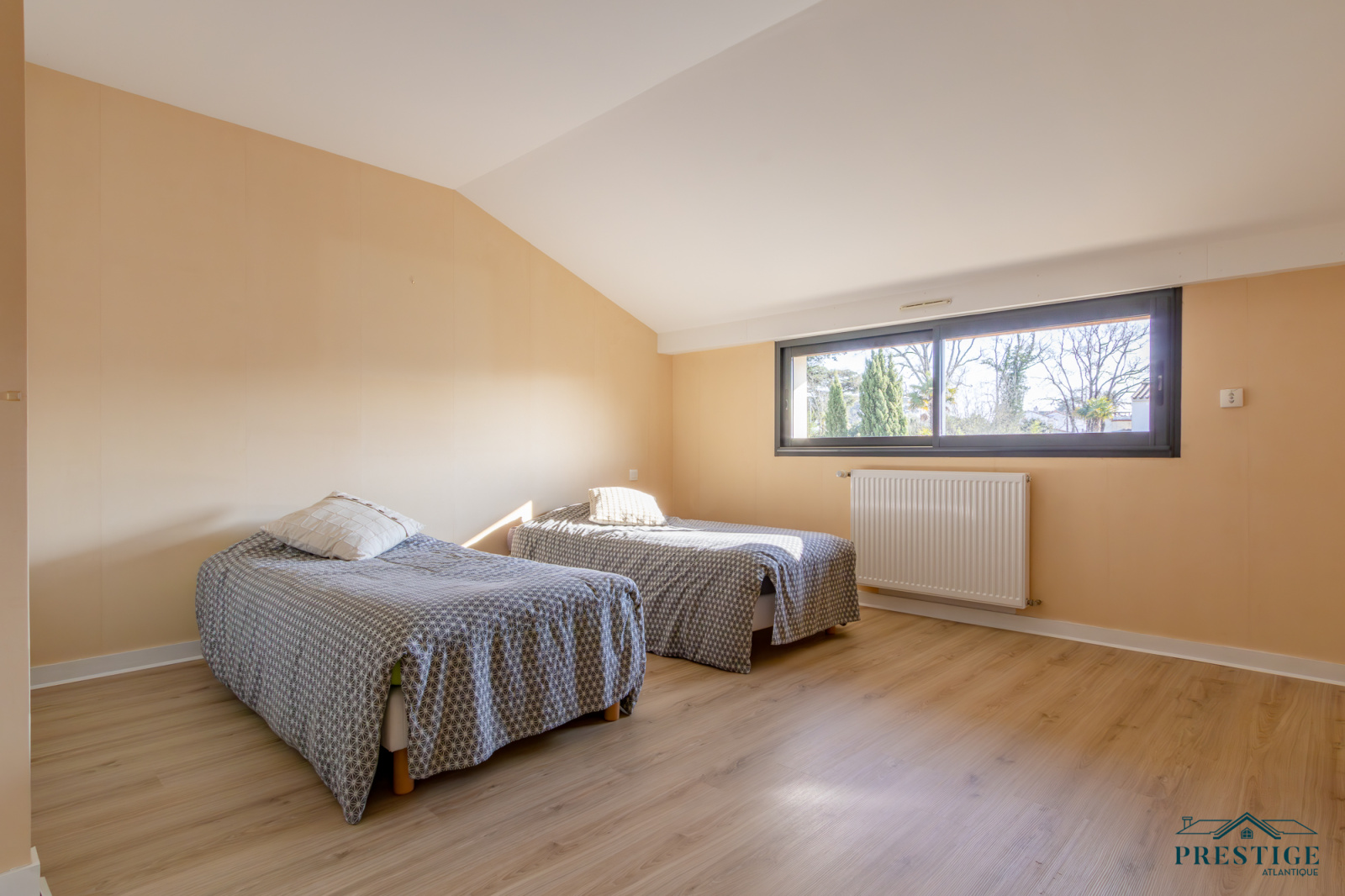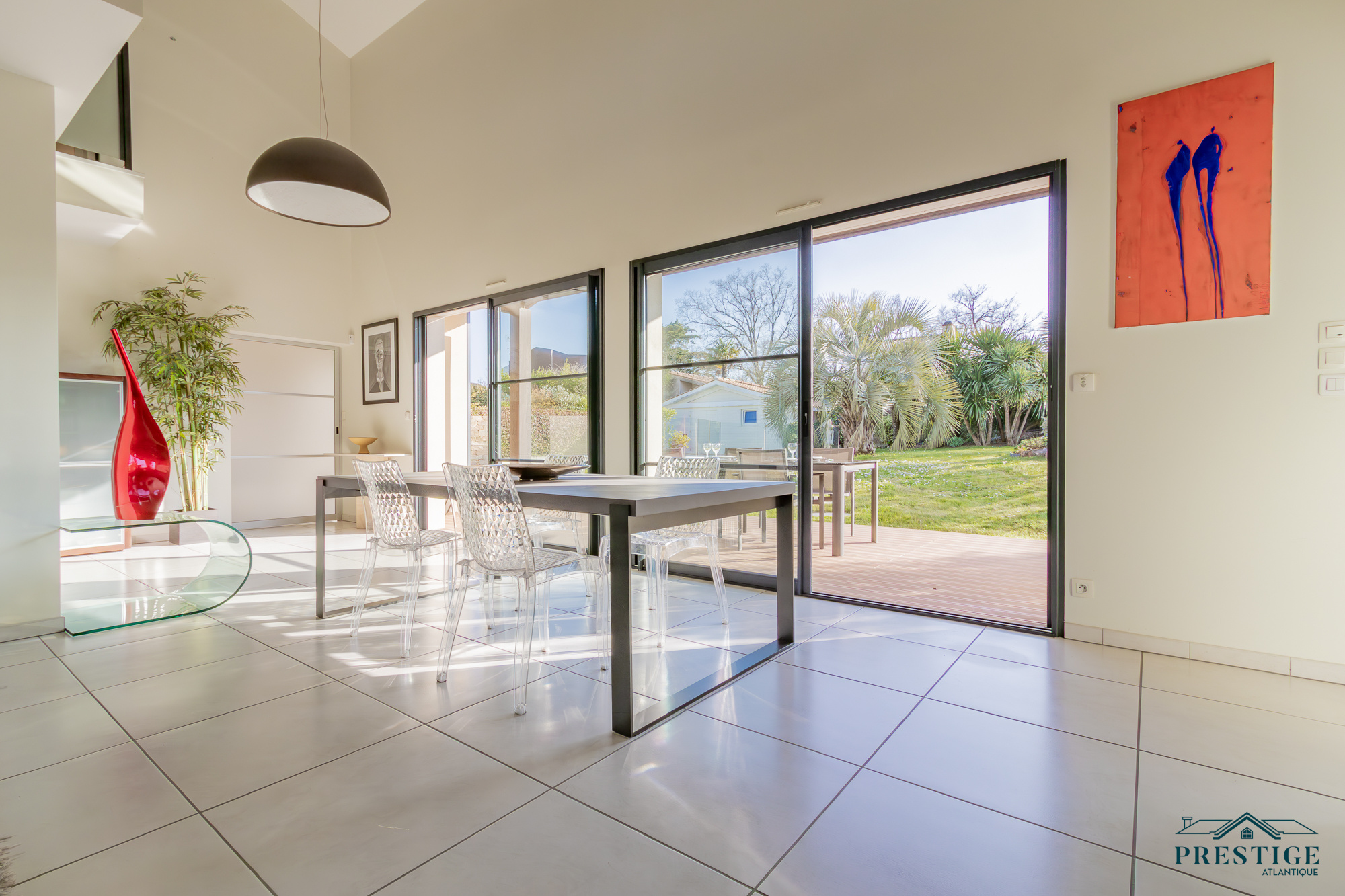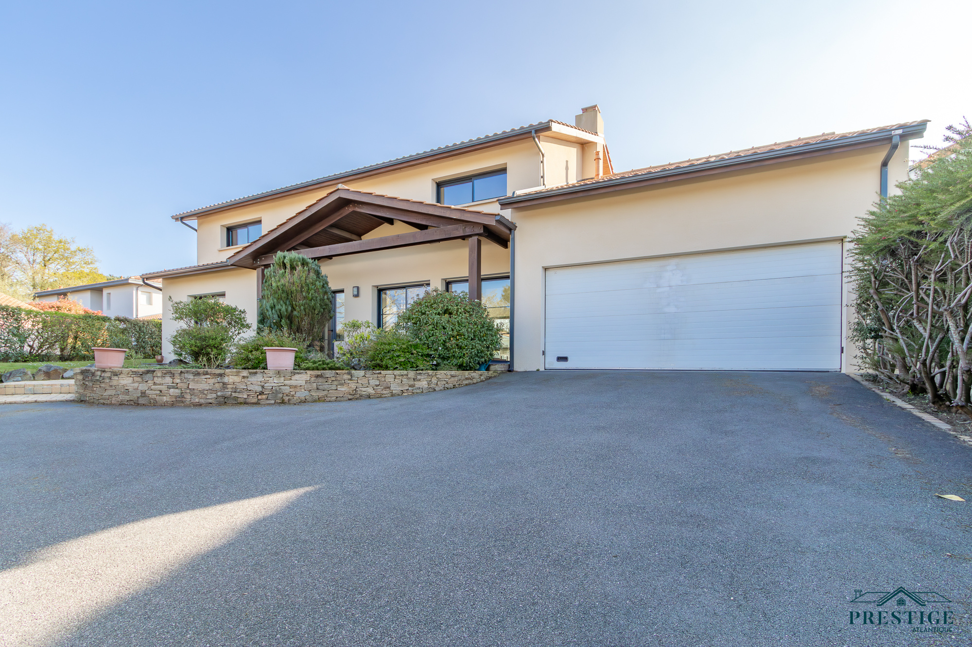 VENDU PAR PAR PRESTIGE ATLANTIQUE. Nichée dans une rue très prisée des hauts de la Noëveillard, à proximité des plages, des commerces et non loin du golf, cette villa d’exception sur deux niveaux agencée avec goût et aux prestations abouties dispose d’une superficie de 200m² habitables. Dès l’entrée, le ton est donné : une spacieuse pièce de vie baignée de lumière sublimée par une belle hauteur sous plafond prolongée d’une salle à manger et d’une cuisine aménagée équipée, l'ensemble offrant une magnifique perspective sur sa terrasse à la vue imprenable de sa piscine sécurisée et de son jardin apaisant aux essences méditerranéenne. Côté nuit, la vie de plain-pied est assurée par une suite parentale en accès direct sur l’extérieur avec salle d’eau/dressing, ainsi qu’une seconde chambre avec placard. Au niveau supérieur, un grand palier lumineux avec son espace bureau vient distribuer deux chambres avec placard et une salle d’eau communicante. Edifiée sur une parcelle close de 1067m2 joliment paysager et arboré, un spacieux pool house et un double garage donnent un point final à ce bien. Unique et rare, elle offre un cadre de vie idyllique aux portes de l’Océan. "Les informations sur les risques auxquels ce bien est exposé sont disponibles sur le site Géorisque http://www.georisques.gouv.fr”. Pour plus de renseignements ou pour organiser une visite privée, contactez-nous sans plus attendre, PRESTIGE ATLANTIQUE 02.40.21.91.13. Prix de vente 1 260 000€ FAI dont 5 % d'honoraires agence à la charge de l'acquéreur soit un prix net vendeur de 1 200 000€ (RCS. Saint- Nazaire 897 587 946).