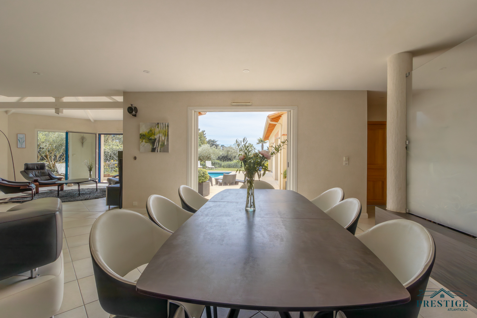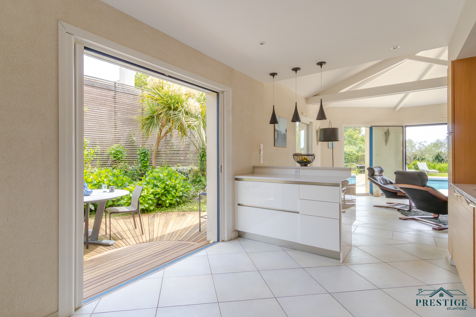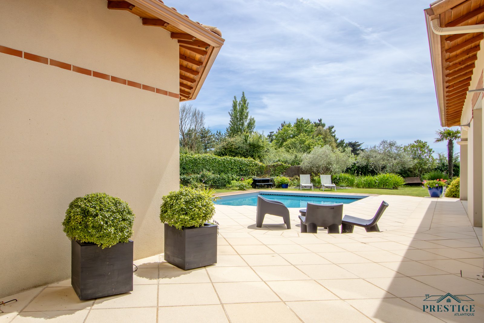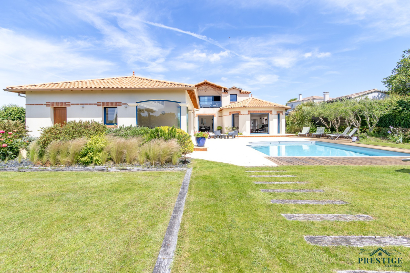 VENDU PAR PRESTIGE ATLANTIQUE. Située dans une résidence privée de standing à l’abri des regards et en parfaite quiétude, cette somptueuse villa de style Pornicais développe 240 m² habitables sur deux niveaux au sein d’un environnement privilégié. Dès le hall d’entrée, le ton est donné : une élégante triple réception (salon, séjour, cuisine) baignée de lumière s’ouvre généreusement sur un jardin paysager, véritable tableau vivant avec vue imprenable sur une piscine chauffée bordée de terrasses en bois biseauté issues du mythique Queen Mary 2. Dans le prolongement un vaste pool house avec mezzanine vient parfaire l’art de vivre en extérieur venant offrir un espace supplémentaire idéal pour recevoir. La villa offre également le confort d’une vie de plain-pied avec un espace nuit indépendant comprenant deux chambres et une salle de bains contemporaine équipée d’une douche à l’italienne. À l’étage sur parquet, le raffinement se poursuit avec une magnifique suite parentale : chambre avec dressing, salle de bains, et accès direct à une terrasse privative en bois avec vue imprenable sur l’océan. Un bureau et une chambre viennent compléter la distribution de ce niveau. Édifiée sur une parcelle close et joliment paysager de 1 210 m², un double garage, une cave à vin climatisée et une buanderie donnent une touche finale à cette Villa de Prestige. Cette villa est une invitation unique à vivre la mer au quotidien dans un cadre aussi préservé que prestigieux.“Les informations sur les risques auxquels ce bien est exposé sont disponibles sur le site Géorisques http://www.georisques.gouv.fr”. Pour plus de renseignements ou pour organiser une visite privée, contactez-nous sans plus attendre, PRESTIGE ATLANTIQUE 02.40.21.91.13. Prix de vente 1 995 000€ FAI dont 5 % d'honoraires agence à la charge de l'acquéreur soit un prix net vendeur de 1 900 000€ (RCS. Saint- Nazaire 897 587 946).