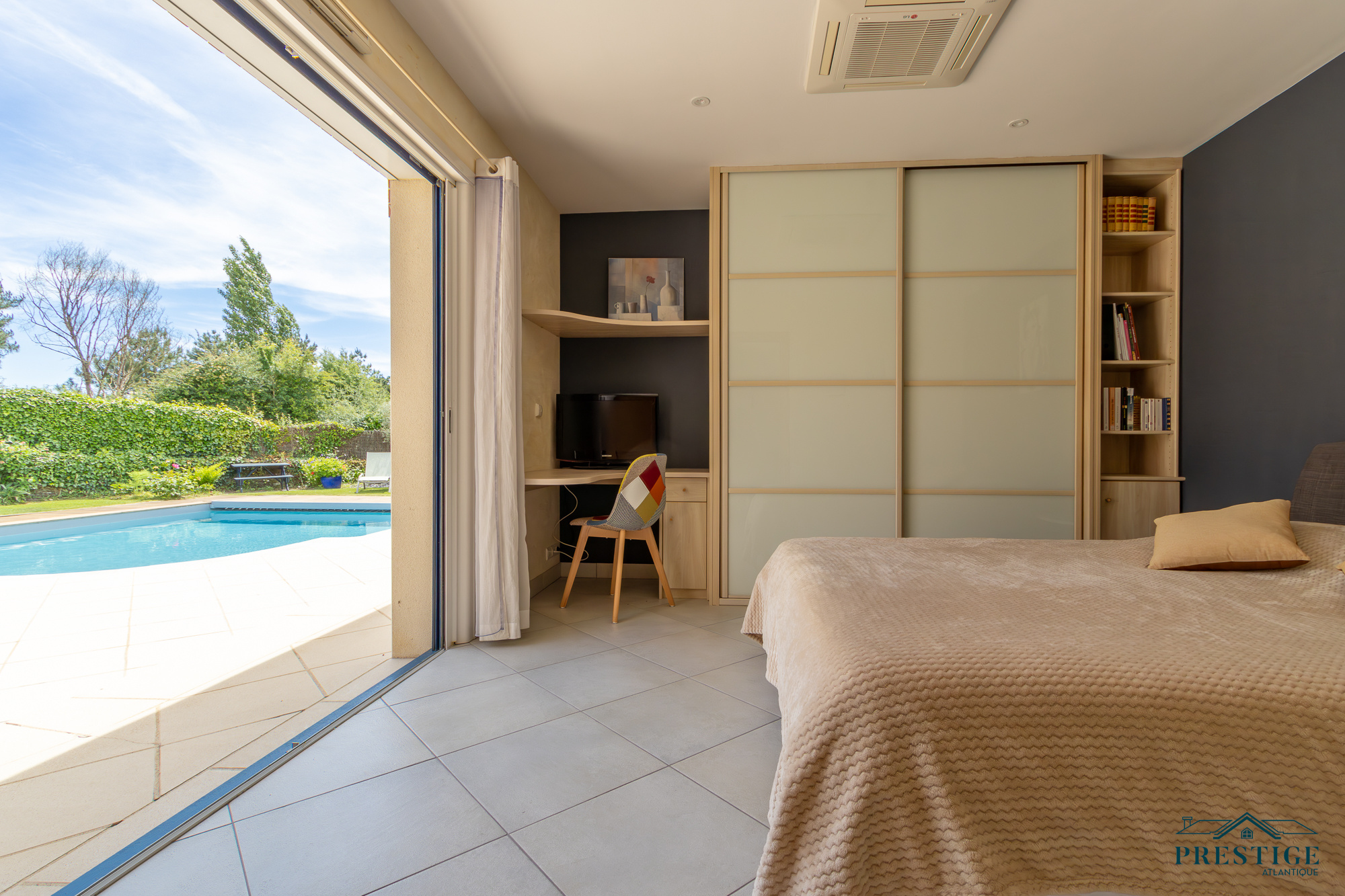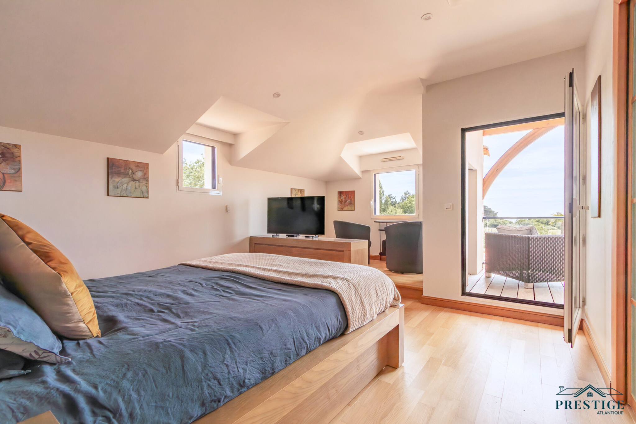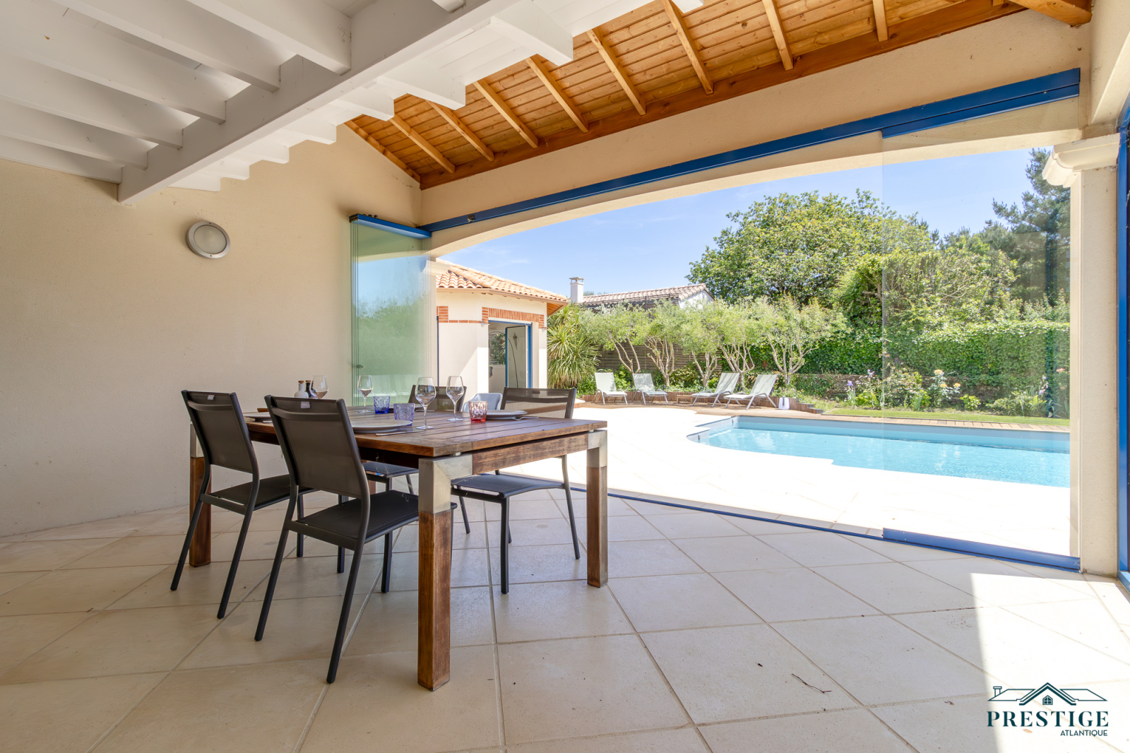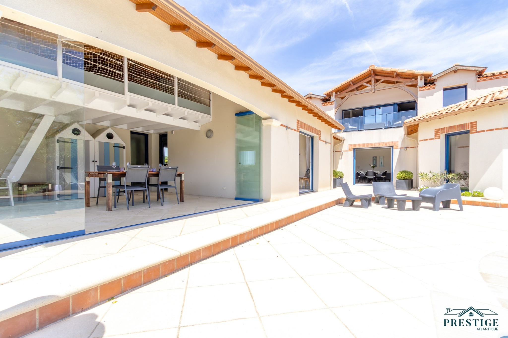 VENDU PAR PRESTIGE ATLANTIQUE. Située dans une résidence privée de standing à l’abri des regards et en parfaite quiétude, cette somptueuse villa de style Pornicais développe 240 m² habitables sur deux niveaux au sein d’un environnement privilégié. Dès le hall d’entrée, le ton est donné : une élégante triple réception (salon, séjour, cuisine) baignée de lumière s’ouvre généreusement sur un jardin paysager, véritable tableau vivant avec vue imprenable sur une piscine chauffée bordée de terrasses en bois biseauté issues du mythique Queen Mary 2. Dans le prolongement un vaste pool house avec mezzanine vient parfaire l’art de vivre en extérieur venant offrir un espace supplémentaire idéal pour recevoir. La villa offre également le confort d’une vie de plain-pied avec un espace nuit indépendant comprenant deux chambres et une salle de bains contemporaine équipée d’une douche à l’italienne. À l’étage sur parquet, le raffinement se poursuit avec une magnifique suite parentale : chambre avec dressing, salle de bains, et accès direct à une terrasse privative en bois avec vue imprenable sur l’océan. Un bureau et une chambre viennent compléter la distribution de ce niveau. Édifiée sur une parcelle close et joliment paysager de 1 210 m², un double garage, une cave à vin climatisée et une buanderie donnent une touche finale à cette Villa de Prestige. Cette villa est une invitation unique à vivre la mer au quotidien dans un cadre aussi préservé que prestigieux.“Les informations sur les risques auxquels ce bien est exposé sont disponibles sur le site Géorisques http://www.georisques.gouv.fr”. Pour plus de renseignements ou pour organiser une visite privée, contactez-nous sans plus attendre, PRESTIGE ATLANTIQUE 02.40.21.91.13. Prix de vente 1 995 000€ FAI dont 5 % d'honoraires agence à la charge de l'acquéreur soit un prix net vendeur de 1 900 000€ (RCS. Saint- Nazaire 897 587 946).