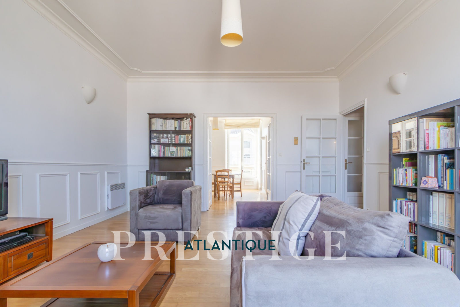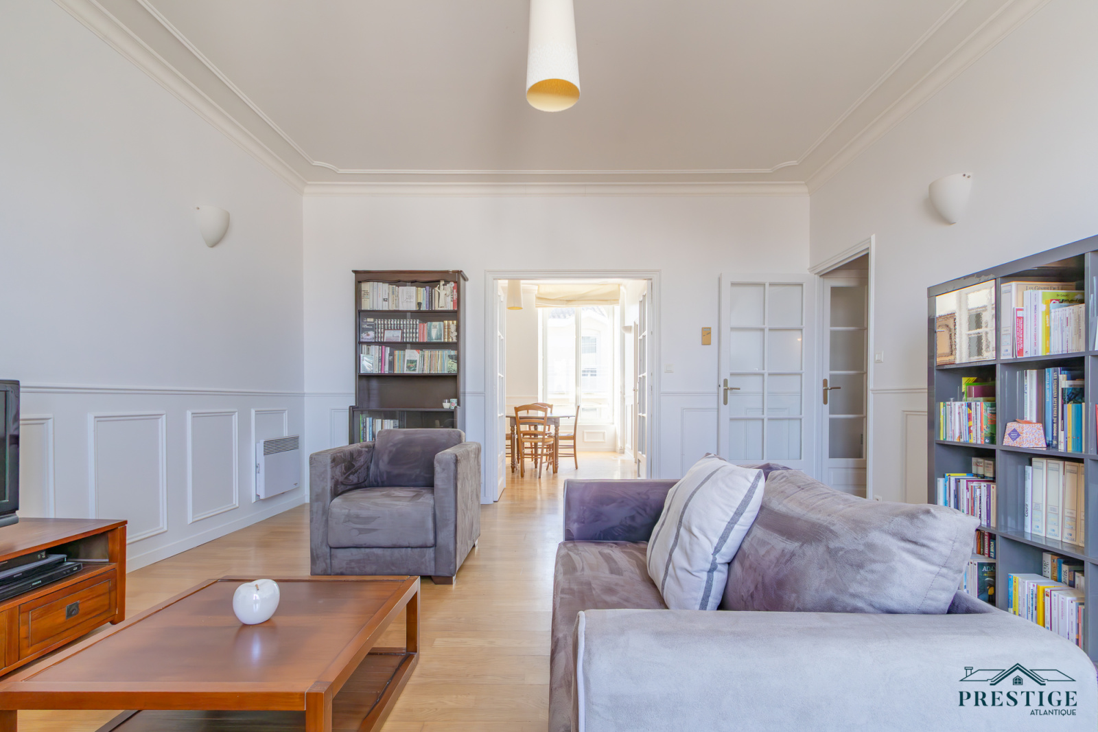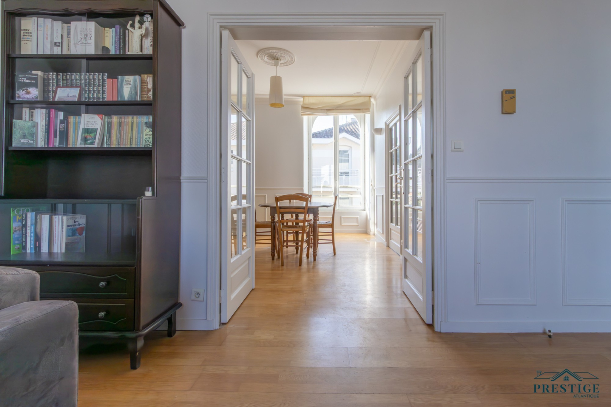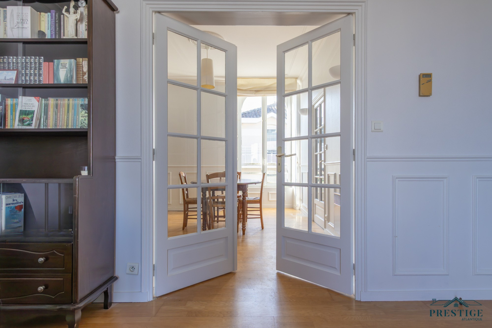 EXCLUSIVITÉ - PRESTIGE ATLANTIQUE. Niché au cœur de Pornic, dans un environnement recherché et à quelques pas du vieux port, cet appartement rare allie charme, caractère et dispose d’une superficie de 98 m², il se situe au premier étage d’une copropriété de standing, sécurisée et préservée des regards. Un véritable coup de cœur magnifié par la préservation de ses éléments architecturaux d’époque qui lui confèrent une authenticité : façade en pierre, escalier en bois, parquet ancien, généreuse hauteur sous plafond, moulures raffinées et larges ouvertures verticales. Dès l’entrée avec placard, la distribution s’ouvre sur une vaste double pièce de vie baignée de lumière grâce à sa configuration traversante offrant une agréable vue sur les toits pornicais et prolongée par une cuisine aménagée et équipée. L’espace nuit se compose de trois chambres confortables, toutes pourvues de placards intégrés, une salle de bain et une salle d’eau complètent harmonieusement cet ensemble. Accessible depuis deux rues, la copropriété offre un cadre de vie à la fois pratique et discret, une place de stationnement en parking sécurisé et deux caves donnent une touche finale à ce bien de Prestige. Bien en copropriété, nombre de lots principaux : 40 et pas de procédures en cours. Charges annuelles : 1604€. “Les informations sur les risques auxquels ce bien est exposé sont disponibles sur le site Géorisques http://www.georisques.gouv.fr”. Pour plus de renseignements ou pour organiser une visite privée, contactez-nous sans plus attendre, PRESTIGE ATLANTIQUE 02.40.21.91.13. Prix de vente 450 000€ FAI dont 5 % d'honoraires agence à la charge de l'acquéreur soit un prix net vendeur de 428 571€ (RCS. Saint- Nazaire 897 587 946).