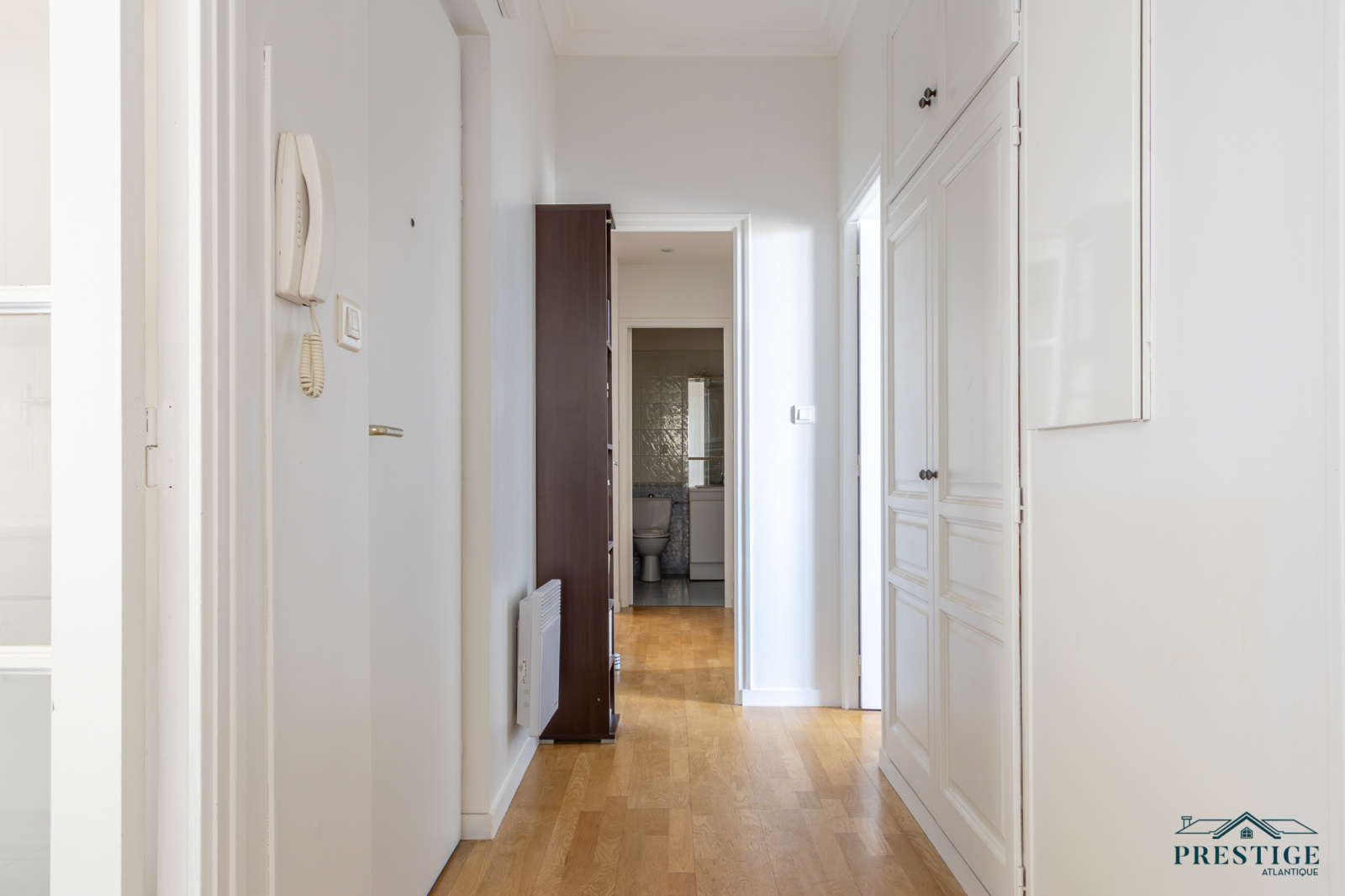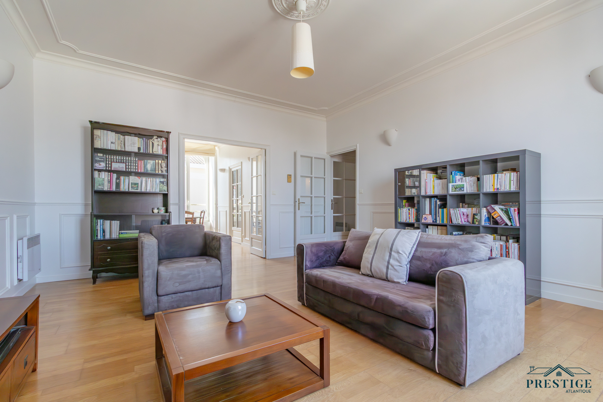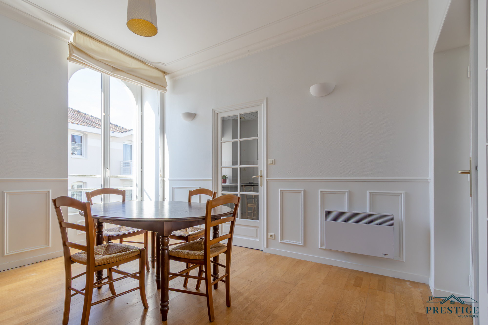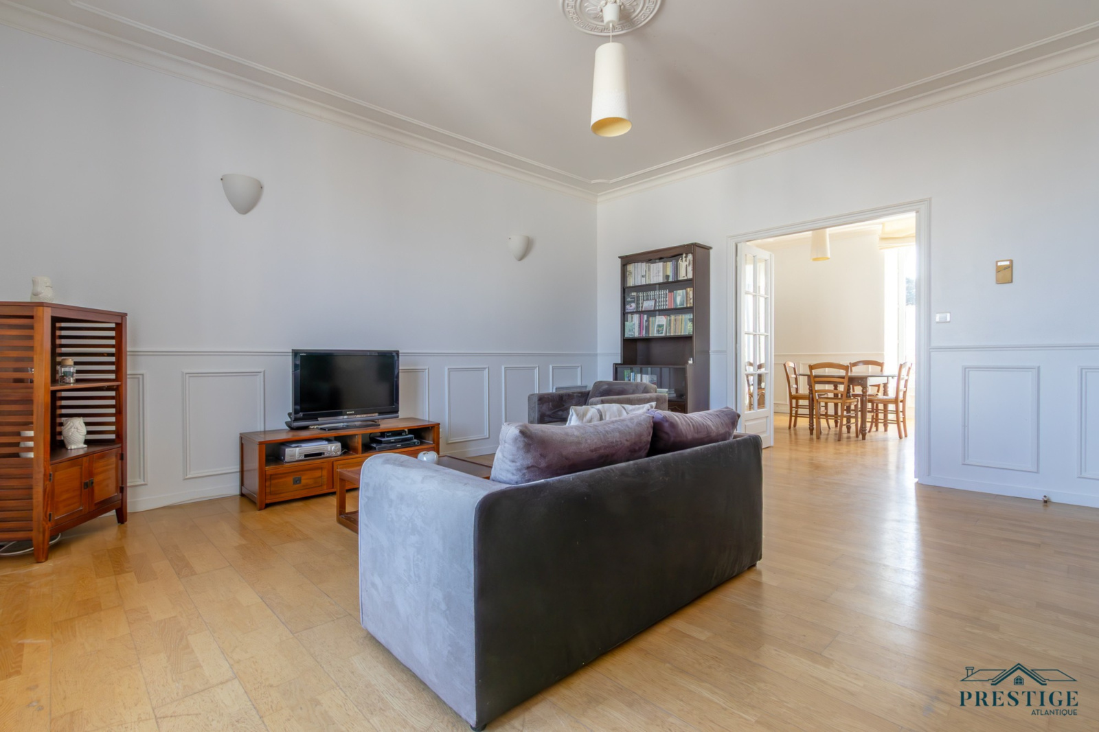 EXCLUSIVITÉ - PRESTIGE ATLANTIQUE. Niché au cœur de Pornic, dans un environnement recherché et à quelques pas du vieux port, cet appartement rare allie charme, caractère et dispose d’une superficie de 98 m², il se situe au premier étage d’une copropriété de standing, sécurisée et préservée des regards. Un véritable coup de cœur magnifié par la préservation de ses éléments architecturaux d’époque qui lui confèrent une authenticité : façade en pierre, escalier en bois, parquet ancien, généreuse hauteur sous plafond, moulures raffinées et larges ouvertures verticales. Dès l’entrée avec placard, la distribution s’ouvre sur une vaste double pièce de vie baignée de lumière grâce à sa configuration traversante offrant une agréable vue sur les toits pornicais et prolongée par une cuisine aménagée et équipée. L’espace nuit se compose de trois chambres confortables, toutes pourvues de placards intégrés, une salle de bain et une salle d’eau complètent harmonieusement cet ensemble. Accessible depuis deux rues, la copropriété offre un cadre de vie à la fois pratique et discret, une place de stationnement en parking sécurisé et deux caves donnent une touche finale à ce bien de Prestige. Bien en copropriété, nombre de lots principaux : 40 et pas de procédures en cours. Charges annuelles : 1604€. “Les informations sur les risques auxquels ce bien est exposé sont disponibles sur le site Géorisques http://www.georisques.gouv.fr”. Pour plus de renseignements ou pour organiser une visite privée, contactez-nous sans plus attendre, PRESTIGE ATLANTIQUE 02.40.21.91.13. Prix de vente 450 000€ FAI dont 5 % d'honoraires agence à la charge de l'acquéreur soit un prix net vendeur de 428 571€ (RCS. Saint- Nazaire 897 587 946).