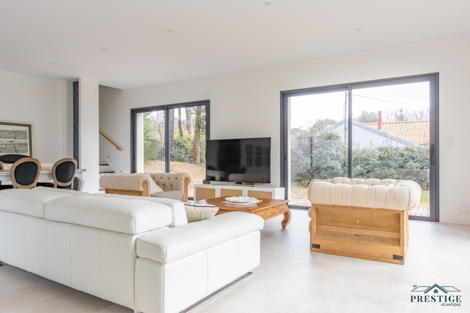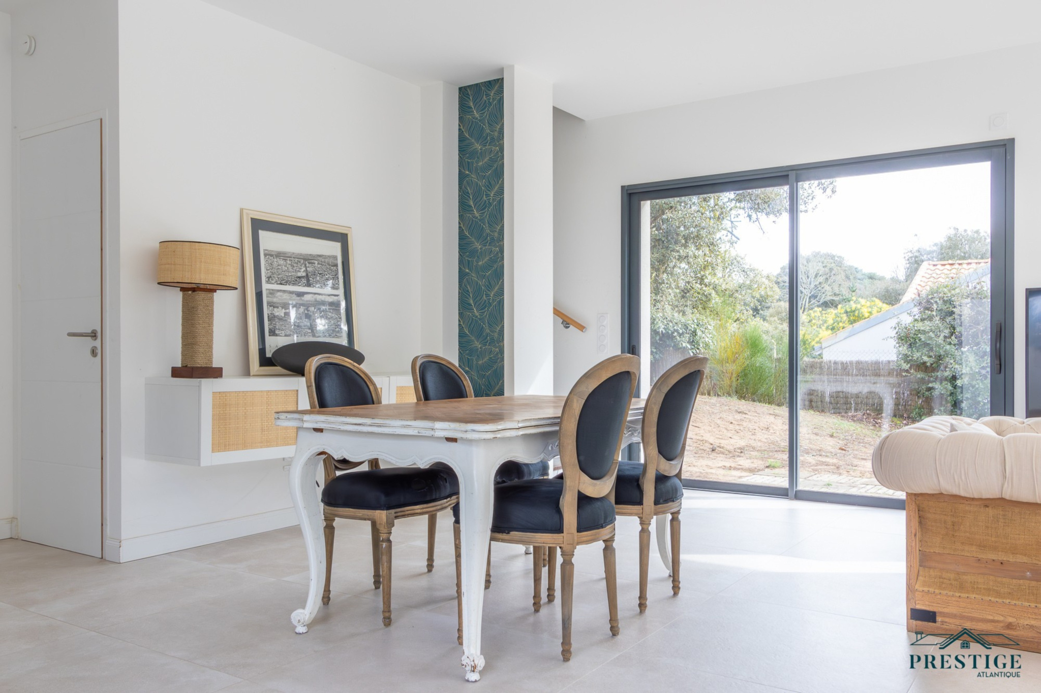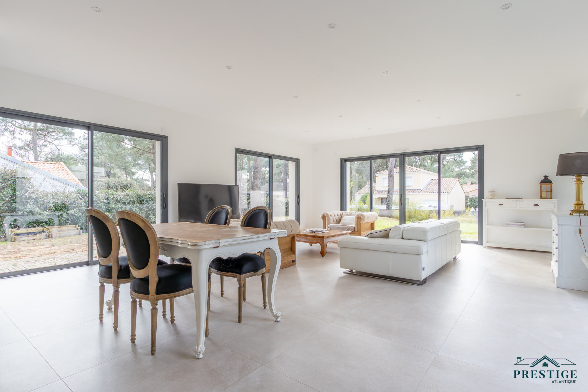 EXCLUSIVITÉ - PRESTIGE ATLANTIQUE. Nichée au cœur des pins maritimes et à quelques pas de la mer, dans un environnement privilégié, cette villa contemporaine neuve sur deux niveaux développe 140 m² habitables et se démarque par ses prestations abouties et de grande qualité, offrant un confort optimal et une excellente performance énergétique avec un diagnostic classé A. L’entrée agrémentée d’un placard distribue une vaste pièce de vie baignée de lumière de par ses nombreuses baies vitrées prolongée sur une cuisine aménagée et équipée, le tout donnant sur un patio venant apporter un espace supplémentaire. Une buanderie complète la distribution. Une suite parentale avec salle d’eau et accès au jardin confirme une vie de plain-pied. L’étage se compose de trois chambres dont une faisant office de deuxième suite avec un espace salle d’eau, ainsi qu’une salle de bain. Édifiée sur une parcelle close de 693m² joliment arborée, un portail motorisé donne une touche finale à ce bien. Une villa les pieds dans le sable proposant un cadre de vie rare à proximité des grandes plages de Saint-Brevin. Une opportunité exclusive signée PRESTIGE ATLANTIQUE pour les amateurs de biens uniques.“Les informations sur les risques auxquels ce bien est exposé sont disponibles sur le site Géorisqueshttp://www.georisques.gouv.fr”. Pour plus de renseignements ou pour organiser une visite privée, contactez-nous sans plus attendre, PRESTIGE ATLANTIQUE 02.40.21.91.13. Prix de vente 695 000€ FAI dont 5 % d'honoraires agence à la charge de l'acquéreur soit un prix net vendeur de 661 905€ (RCS. Saint- Nazaire 897 587 946).