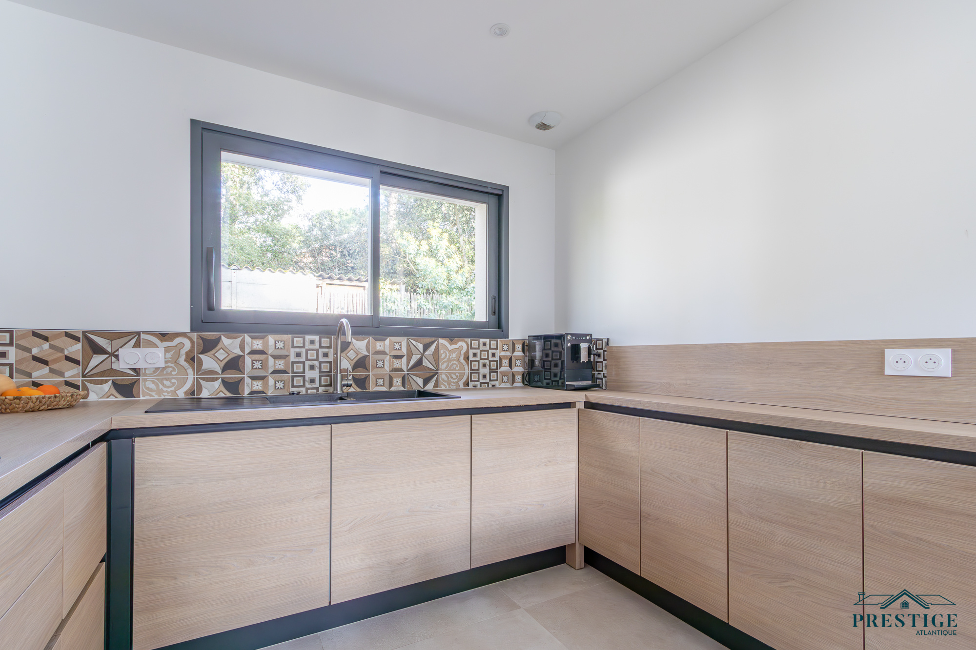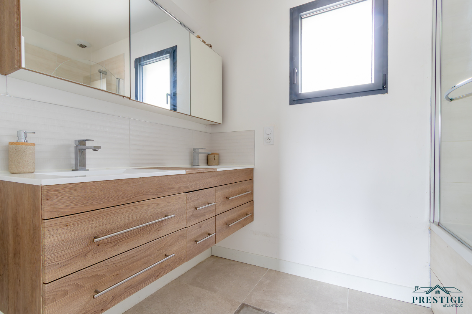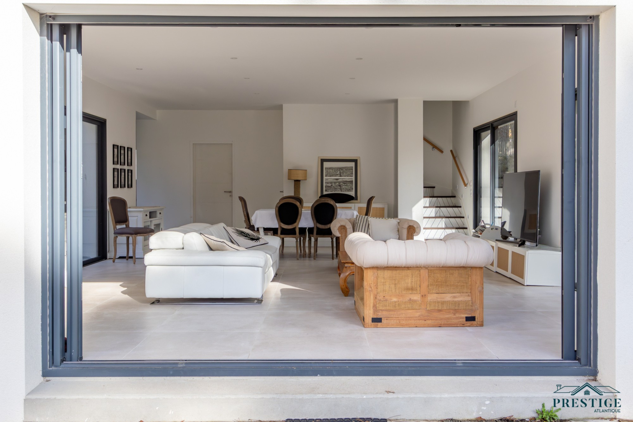 EXCLUSIVITÉ - PRESTIGE ATLANTIQUE. Nichée au cœur des pins maritimes et à quelques pas de la mer, dans un environnement privilégié, cette villa contemporaine neuve sur deux niveaux développe 140 m² habitables et se démarque par ses prestations abouties et de grande qualité, offrant un confort optimal et une excellente performance énergétique avec un diagnostic classé A. L’entrée agrémentée d’un placard distribue une vaste pièce de vie baignée de lumière de par ses nombreuses baies vitrées prolongée sur une cuisine aménagée et équipée, le tout donnant sur un patio venant apporter un espace supplémentaire. Une buanderie complète la distribution. Une suite parentale avec salle d’eau et accès au jardin confirme une vie de plain-pied. L’étage se compose de trois chambres dont une faisant office de deuxième suite avec un espace salle d’eau, ainsi qu’une salle de bain. Édifiée sur une parcelle close de 693m² joliment arborée, un portail motorisé donne une touche finale à ce bien. Une villa les pieds dans le sable proposant un cadre de vie rare à proximité des grandes plages de Saint-Brevin. Une opportunité exclusive signée PRESTIGE ATLANTIQUE pour les amateurs de biens uniques.“Les informations sur les risques auxquels ce bien est exposé sont disponibles sur le site Géorisqueshttp://www.georisques.gouv.fr”. Pour plus de renseignements ou pour organiser une visite privée, contactez-nous sans plus attendre, PRESTIGE ATLANTIQUE 02.40.21.91.13. Prix de vente 695 000€ FAI dont 5 % d'honoraires agence à la charge de l'acquéreur soit un prix net vendeur de 661 905€ (RCS. Saint- Nazaire 897 587 946).