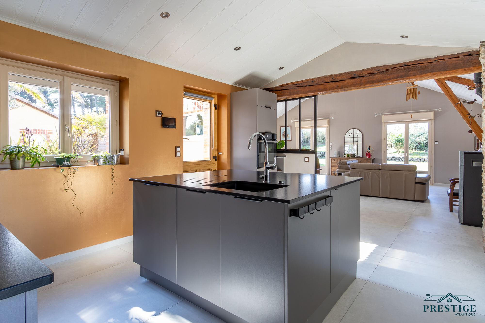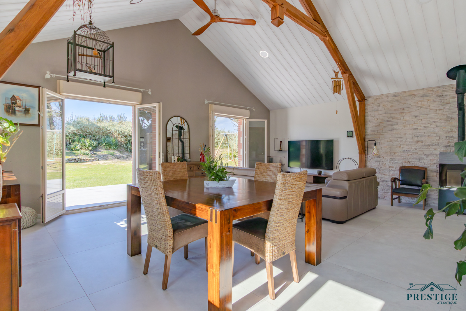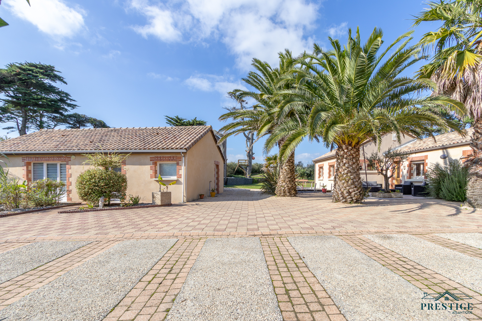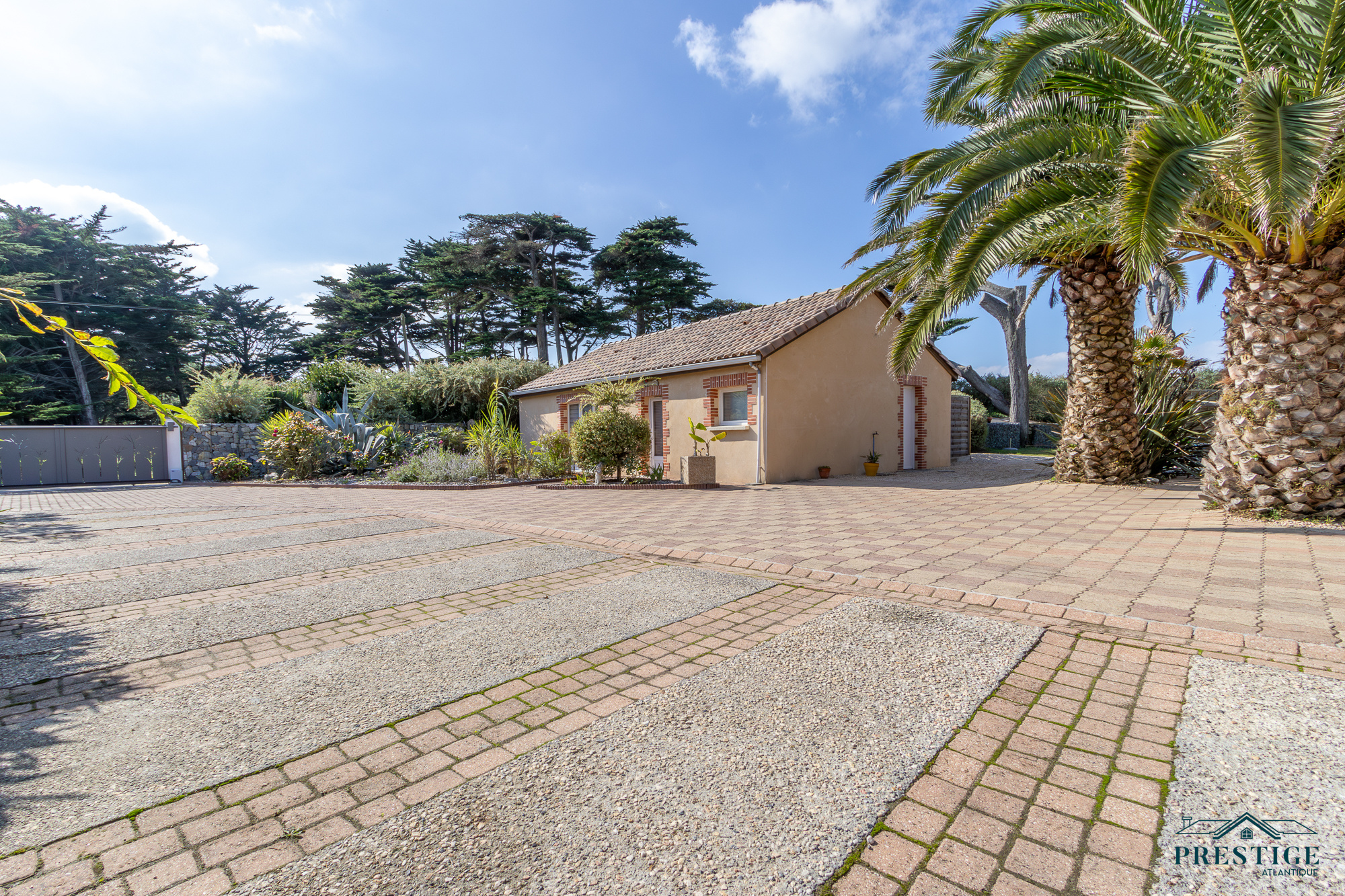 VENDU PAR PRESTIGE ATLANTIQUE. Emplacement d'exception en première ligne face à la mer, protégée par une dune naturelle avec accès direct à la plage, cette magnifique maison de plain-pied au style balnéaire offre une superficie habitable de 110 m². Elle dispose d’un espace de vie lumineux bénéficiant d’un plafond cathédrale agrémentée d’une cuisine parfaitement aménagée, le tout donnant sur une terrasse à l’exposition solaire idéale. L’espace nuit se compose de deux chambres avec placard et d’une salle de bains. De plus, un logement indépendant de 58m² disposant d’une pièce de vie agrémentée d’une cuisine équipée aménagée, deux chambres et une salle de bains viennent parfaire ce lieu de vie. Édifiée sur une parcelle d’environ 2340m² joliment arborée et paysager, un abri de jardin et deux puits donnent une touche finale à ce bien situé dans un environnement exceptionnel. “Les informations sur les risques auxquels ce bien est exposé sont disponibles sur le site Géorisques http://www.georisques.gouv.fr”. Pour plus de renseignements ou pour organiser une visite privée, contactez-nous sans plus attendre, PRESTIGE ATLANTIQUE 02.40.21.91.13. Prix de vente 735 000€ FAI dont 5 % d'honoraires agence à la charge de l'acquéreur soit un prix net vendeur de 700 000€ (RCS. Saint- Nazaire 897 587 946).