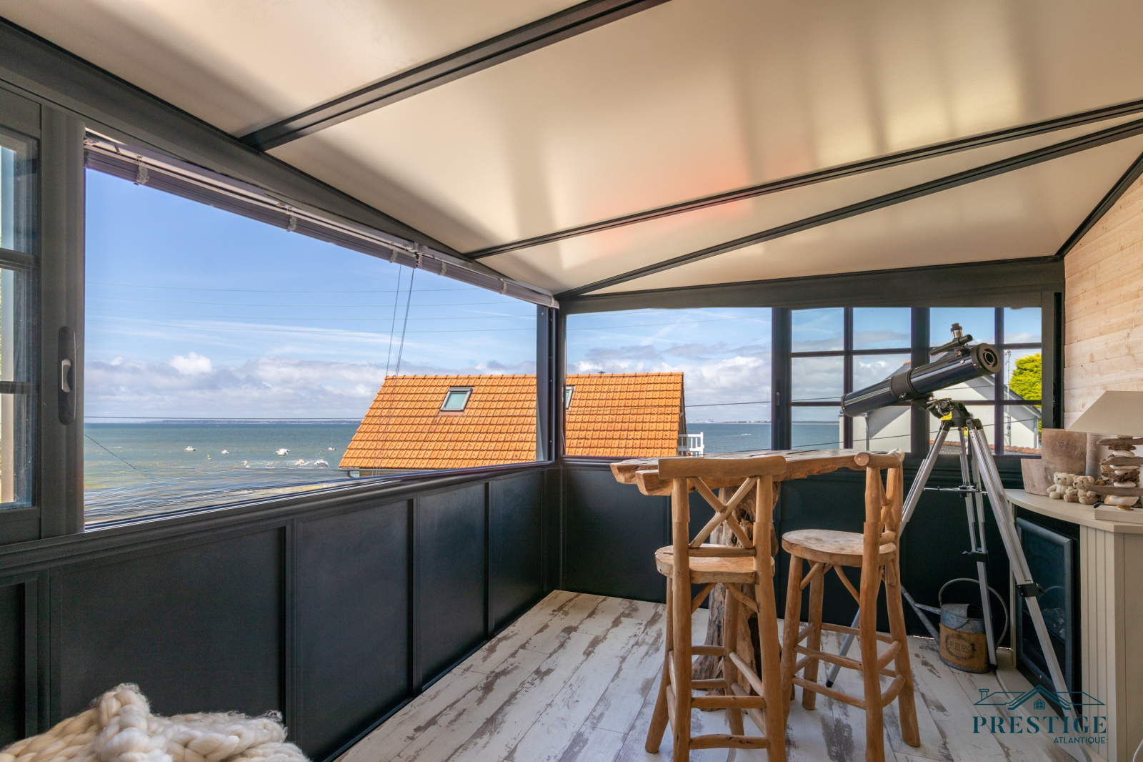 VENDU PAR PRESTIGE ATLANTIQUE. Dans un environnement balnéaire privilégié, cette villa sublimée par une véranda contemporaine bénéficiant d'une vue imprenable sur l’océan dispose d'une superficie habitable de 120 m². Elle propose une pièce de vie avec une belle hauteur sous plafond ouverte sur une cuisine aménagée et équipée, le tout prolongé par une terrasse abritée. Une arrière-cuisine, une salle d’eau ainsi qu’un dressing viennent compléter ce rez-de-jardin. À l’étage une véranda avec vue panoramique sur la mer, une suite parentale avec balcon privatif au panorama de l'océan et une chambre en enfilade donnent une touche finale à ce niveau. Edifiée sur une parcelle close sans vis-à-vis de 408 m², un jardin paysager et un garage complètent ce bien d’exception offrant un cadre de vie rare sur la côte atlantique. “Les informations sur les risques auxquels ce bien est exposé sont disponibles sur le site Géorisques http://www.georisques.gouv.fr”. Pour plus de renseignements ou pour organiser une visite privée, contactez-nous sans plus attendre, PRESTIGE ATLANTIQUE 02.40.21.91.13. Prix de vente 599 550€ FAI dont 5 % d'honoraires agence à la charge de l'acquéreur soit un prix net vendeur de 571 00€ (RCS. Saint- Nazaire 897 587 946).