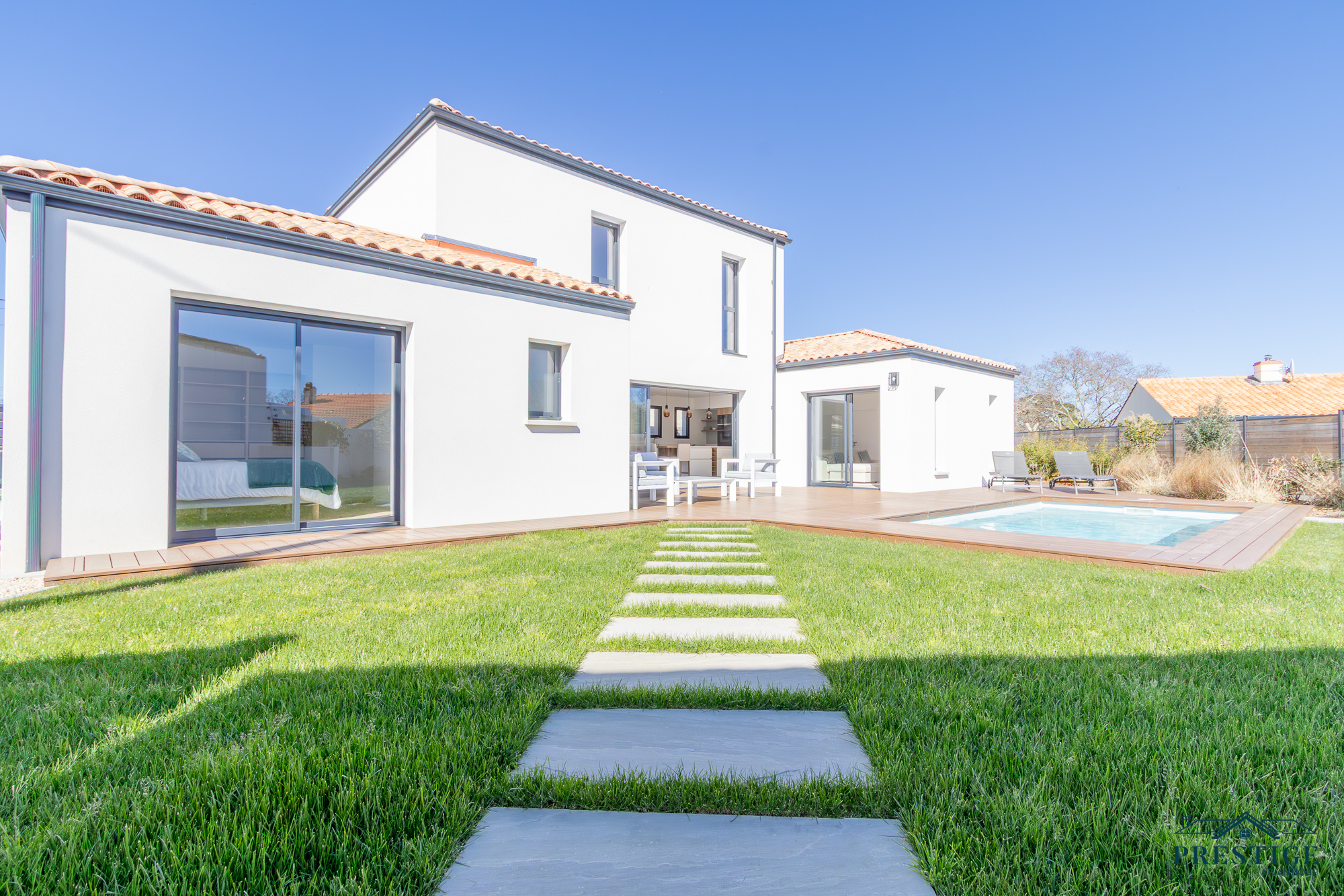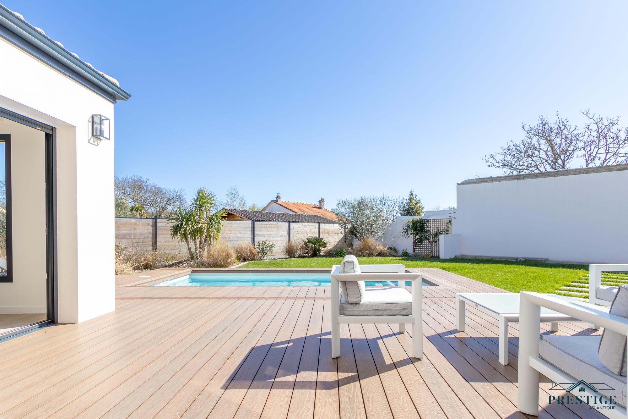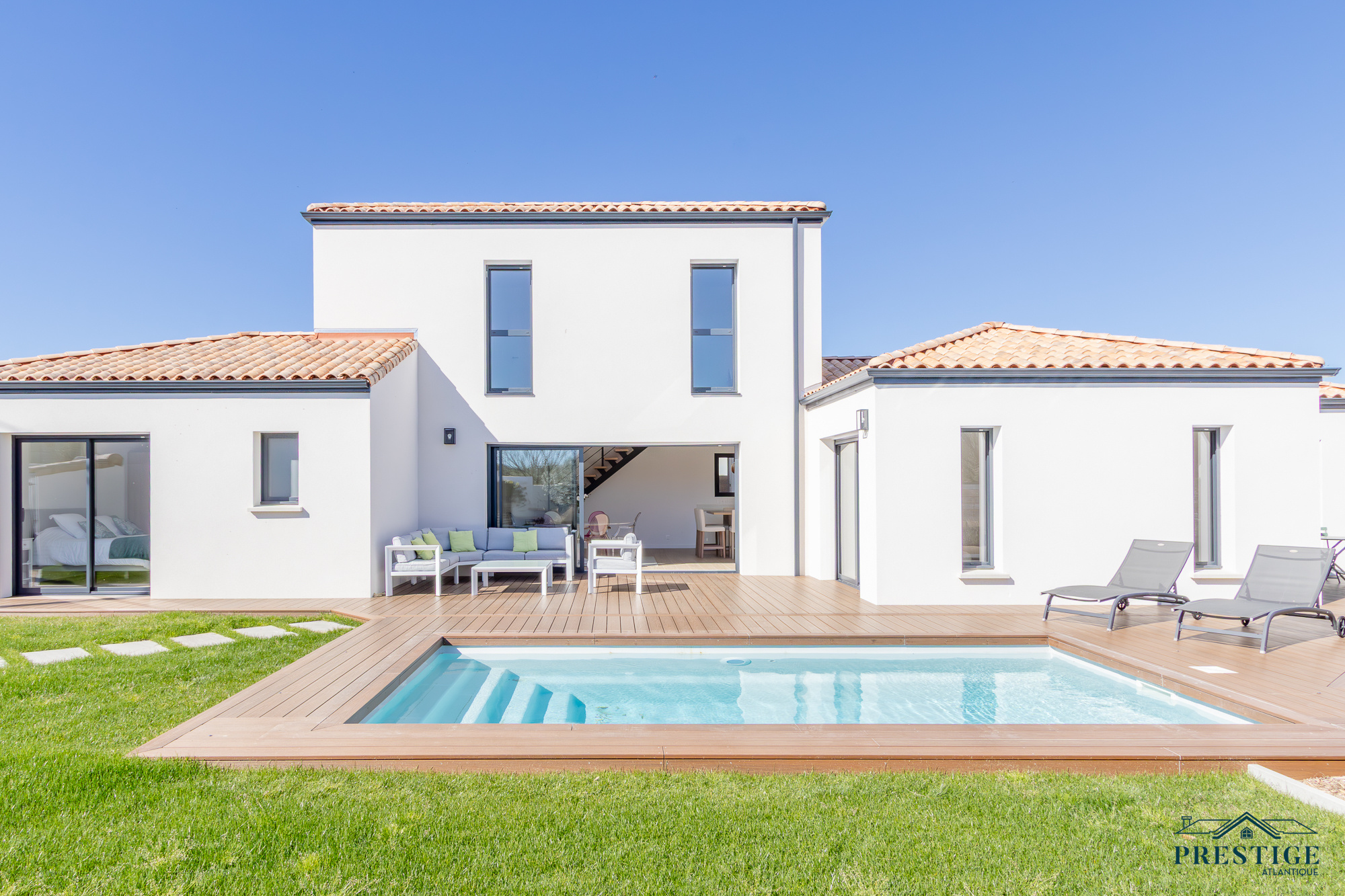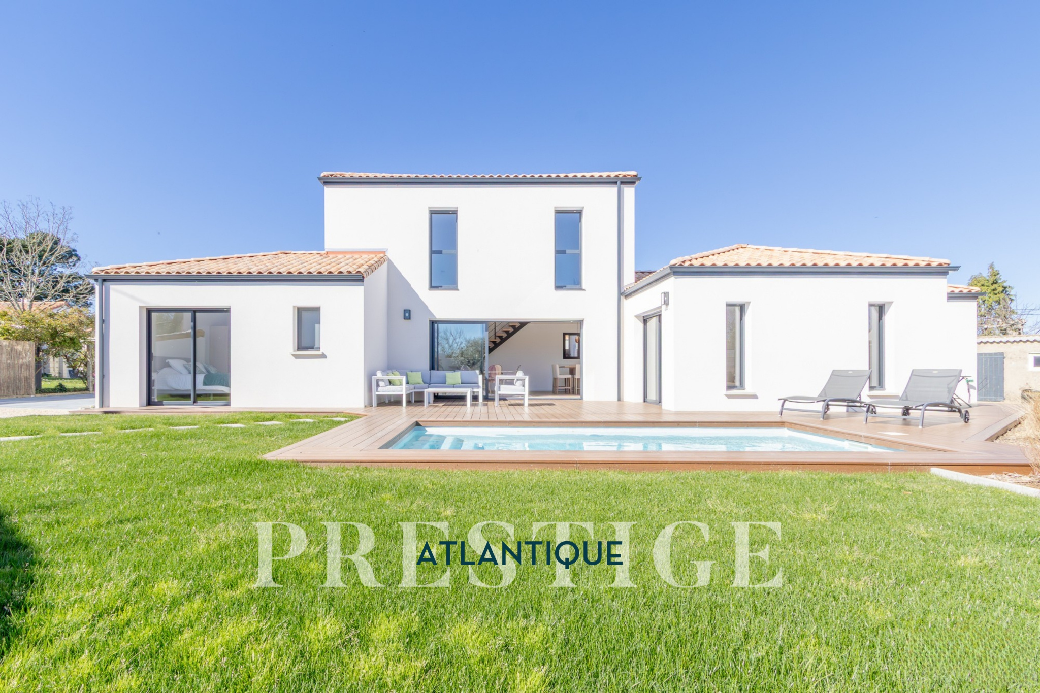 EXCLUSIVITÉ – PRESTIGE ATLANTIQUE. Dans un secteur privilégié LE CORMIER à proximité immédiate des plages, cette villa de 2025 - RE 2020, conforme aux dernières normes énergétiques et économiques développe 150 m² habitables sur deux niveaux, prestations abouties et confort moderne pour un bien clé en main où il ne reste plus qu’à poser ses valises. L’entrée s’ouvre sur une vaste pièce de vie agrémentée d’une cuisine haut de gamme entièrement aménagée, équipée et sublimée par un îlot central habillé d’un plan de travail en céramique, le tout généreusement baigné de lumière grâce à de larges et multiples baies vitrées prolongé naturellement vers une terrasse offrant une vue imprenable sur le jardin paysager et sa piscine chauffée, effaçant harmonieusement les frontières entre intérieur et extérieur. Deux suites avec leur propre salle d’eau privative complètent la vie de plain pied avec pour l’une d’entre elles une attention toute particulière avec un accès indépendant et une terrasse privative, offrant un espace de réception intimiste pour recevoir famille et amis. L’étage se compose de deux chambres avec placard ainsi que d'une salle de bains. Édifiée sur une parcelle close de 650 m² joliment paysager, une dépendance ainsi que d’un carport donnent une touche finale à ce bien très complet. Une villa idéalement située qui réunit confort, modernité et qualité de vie à quelques pas de l’océan, une opportunité rare sur le secteur prisé du Cormier. Les informations sur les risques auxquels ce bien est exposé sont disponibles sur le site Géorisques http://www.georisques.gouv.fr. Prix de vente 699 300€ HAI dont 5 % d'honoraires agence à la charge de l'acquéreur soit un prix net vendeur de 666 000€. Prestige-Atlantique. (RCS. Saint-Nazaire 897 587 945 - CPI 44022021000000013) contactez l'agence au 02.40.21.91.13