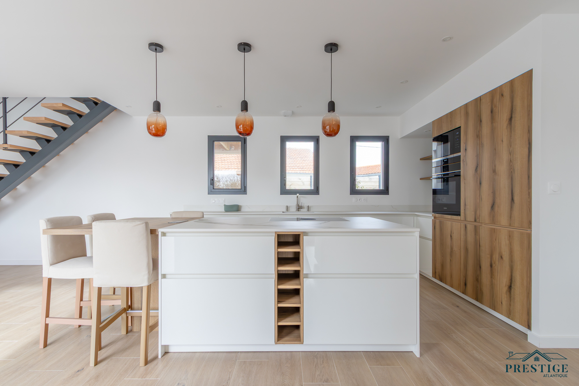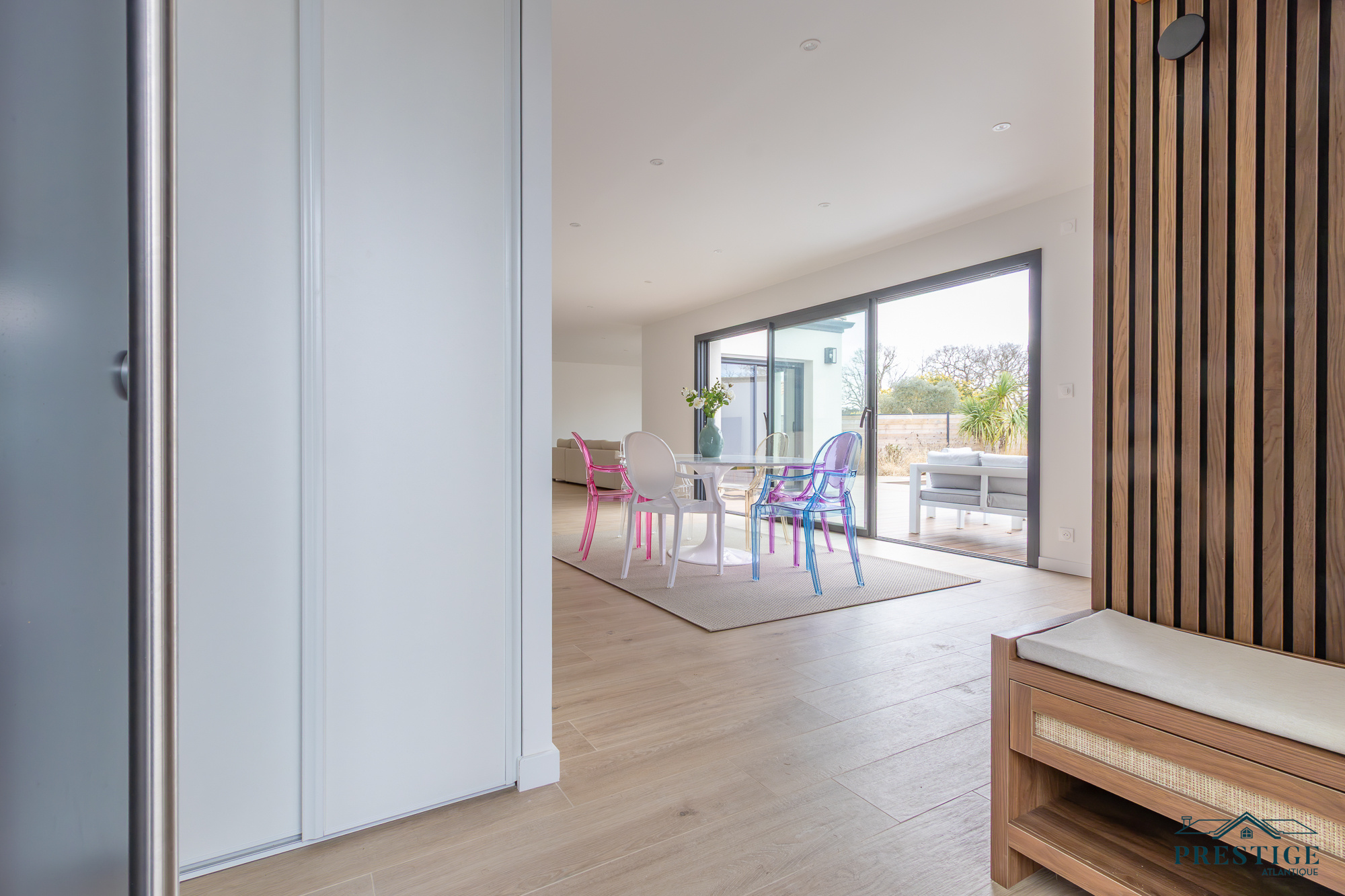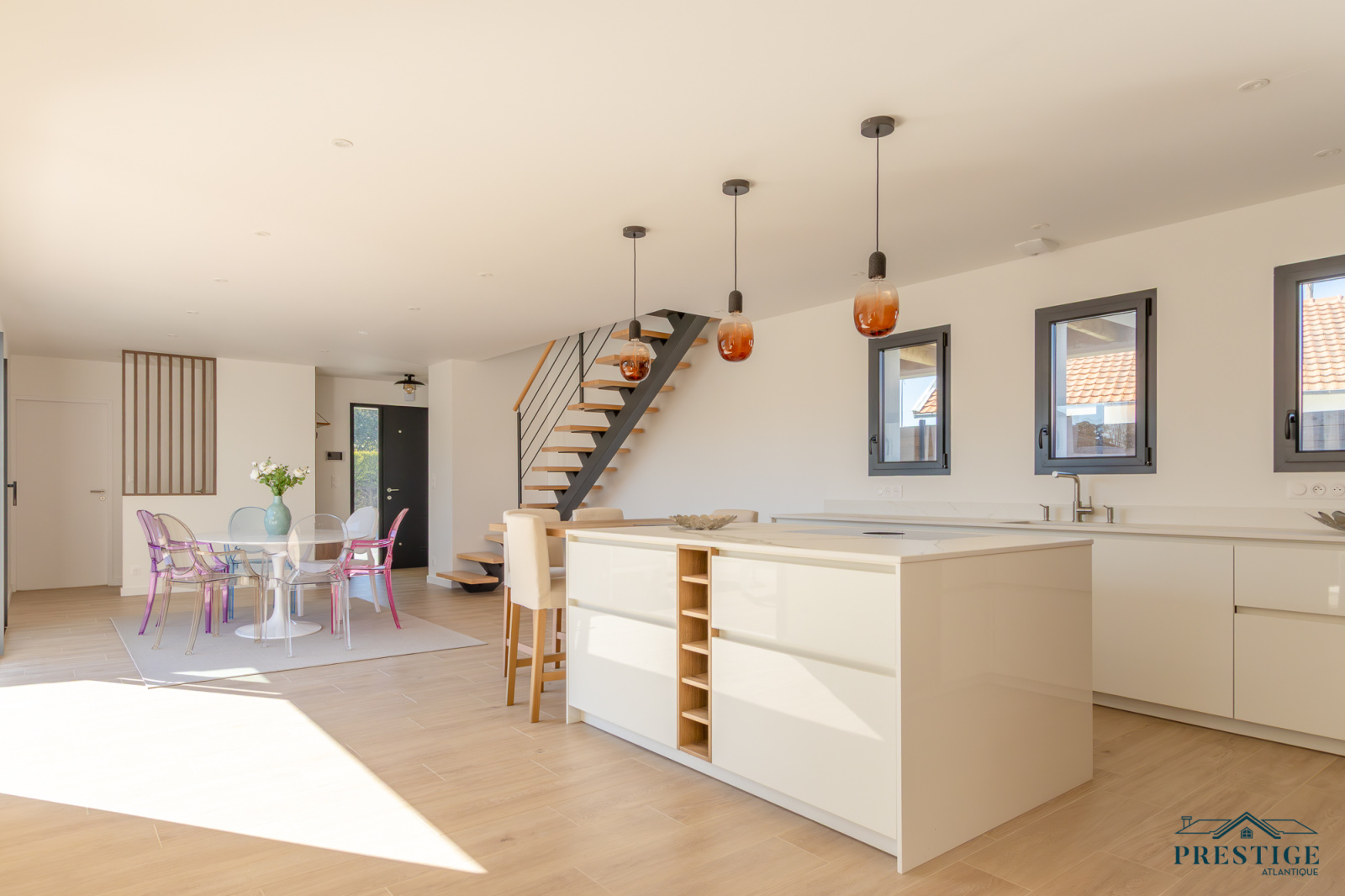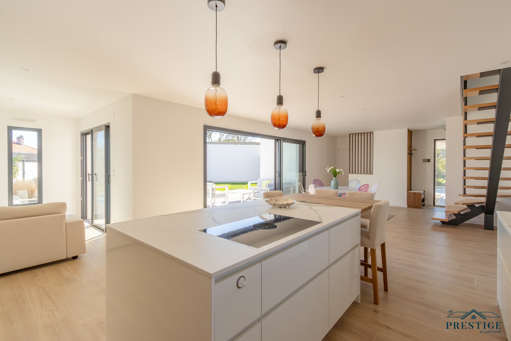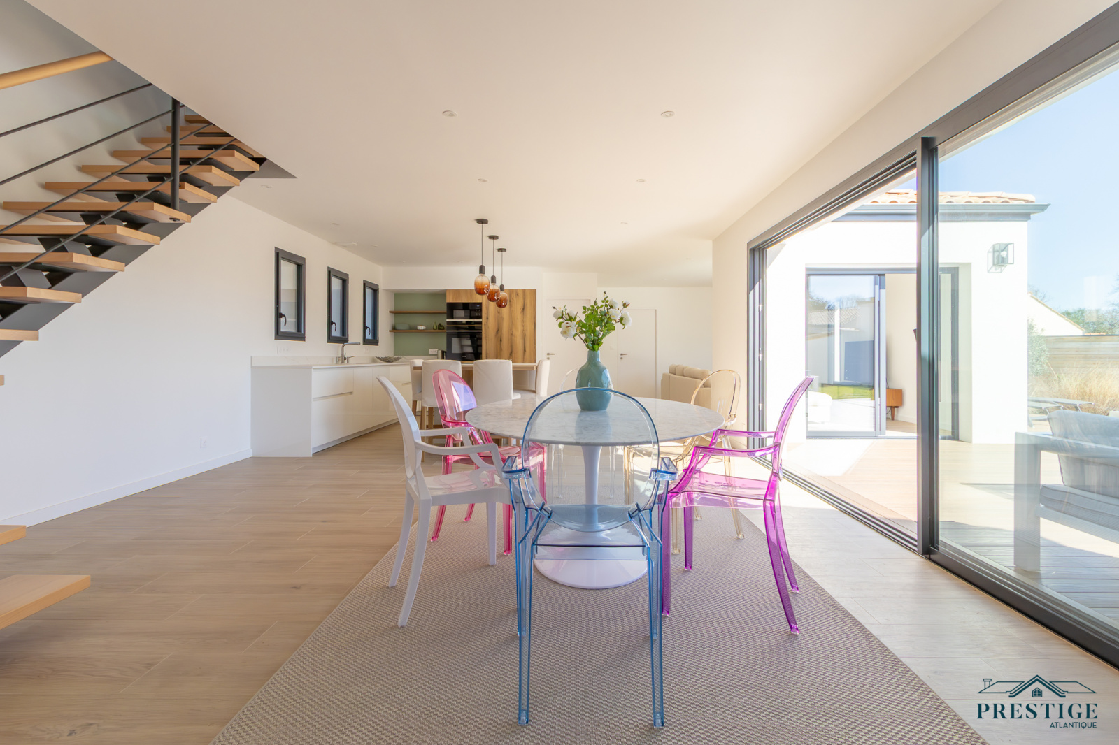 EXCLUSIVITÉ – PRESTIGE ATLANTIQUE. Dans un secteur privilégié LE CORMIER à proximité immédiate des plages, cette villa de 2025 - RE 2020, conforme aux dernières normes énergétiques et économiques développe 150 m² habitables sur deux niveaux, prestations abouties et confort moderne pour un bien clé en main où il ne reste plus qu’à poser ses valises. L’entrée s’ouvre sur une vaste pièce de vie agrémentée d’une cuisine haut de gamme entièrement aménagée, équipée et sublimée par un îlot central habillé d’un plan de travail en céramique, le tout généreusement baigné de lumière grâce à de larges et multiples baies vitrées prolongé naturellement vers une terrasse offrant une vue imprenable sur le jardin paysager et sa piscine chauffée, effaçant harmonieusement les frontières entre intérieur et extérieur. Deux suites avec leur propre salle d’eau privative complètent la vie de plain pied avec pour l’une d’entre elles une attention toute particulière avec un accès indépendant et une terrasse privative, offrant un espace de réception intimiste pour recevoir famille et amis. L’étage se compose de deux chambres avec placard ainsi que d'une salle de bains. Édifiée sur une parcelle close de 650 m² joliment paysager, une dépendance ainsi que d’un carport donnent une touche finale à ce bien très complet. Une villa idéalement située qui réunit confort, modernité et qualité de vie à quelques pas de l’océan, une opportunité rare sur le secteur prisé du Cormier. Les informations sur les risques auxquels ce bien est exposé sont disponibles sur le site Géorisques http://www.georisques.gouv.fr. Prix de vente 699 300€ HAI dont 5 % d'honoraires agence à la charge de l'acquéreur soit un prix net vendeur de 666 000€. Prestige-Atlantique. (RCS. Saint-Nazaire 897 587 945 - CPI 44022021000000013) contactez l'agence au 02.40.21.91.13