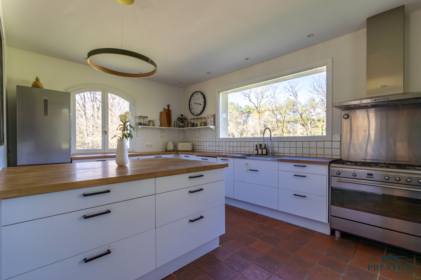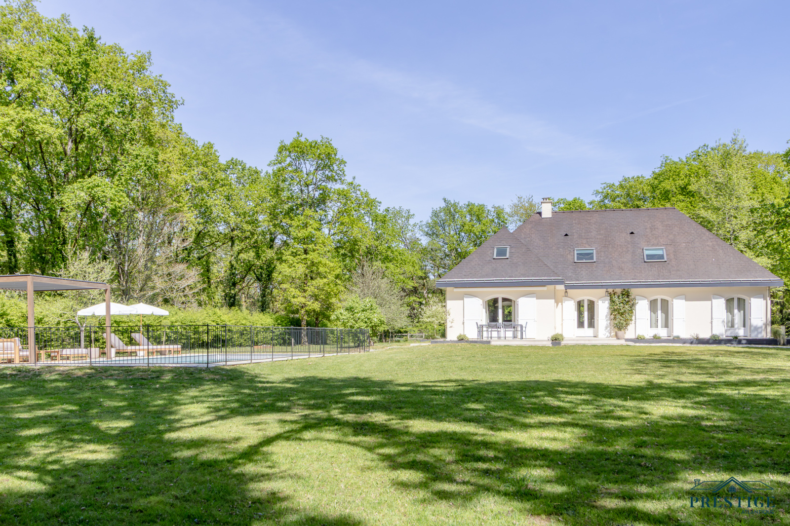 EXCLUSIVITÉ – PRESTIGE ATLANTIQUE. UNIQUE SUR LE MARCHÉ. Aux portes de Nantes et à l'immédiateté du bourg de La Chapelle sur Erdre, au cœur d’un écrin de verdure préservé, cette propriété d’exception, entièrement repensée et rénovée avec des matériaux de grande qualité, offre 300 m² utiles de raffinement sur un parc paysager d'un hectare (1 ha). Édifiée sur trois niveaux, elle s’ouvre au rez-de-chaussée sur une entrée dévoilant une vaste pièce de vie baignée de lumière, sublimée par une belle hauteur sous plafond et d’une cheminée chaleureuse. Dans la continuité, une cuisine aménagée et équipée vient parfaire ce lieu de vie. L’ensemble donne sur une grande terrasse et sa piscine chauffée, profitant d’une vue imprenable sur le parc arboré. L’espace nuit dessert trois chambres, dont deux d’entre elles avec accès direct à la terrasse et une avec dressing. Une salle d’eau élégante donne une touche finale à ce niveau. À l’étage, un spacieux palier distribue trois chambres, un bureau ainsi qu’une seconde salle d’eau, offrant un confort parfait pour accueillir. Le niveau inférieur propose un vaste sous-sol de 100m2 comprenant un grand garage, une salle de jeux, une cave ainsi qu’une buanderie. Un abri de jardin et des écuries complètent idéalement les prestations de ce bien rare. Une maison unique où charme, volumes et caractère se conjuguent dans un environnement d’exception. Les informations sur les risques auxquels ce bien est exposé sont disponibles sur le site Géorisques http://www.georisques.gouv.fr. Prix de vente 892 500€ HAI dont 5 % d'honoraires agence à la charge de l'acquéreur soit un prix net vendeur de 850 000€. Prestige-Atlantique. (RCS. Saint-Nazaire 897 587 945 - CPI 44022021000000013) contactez l'agence au 02.40.21.91.13
