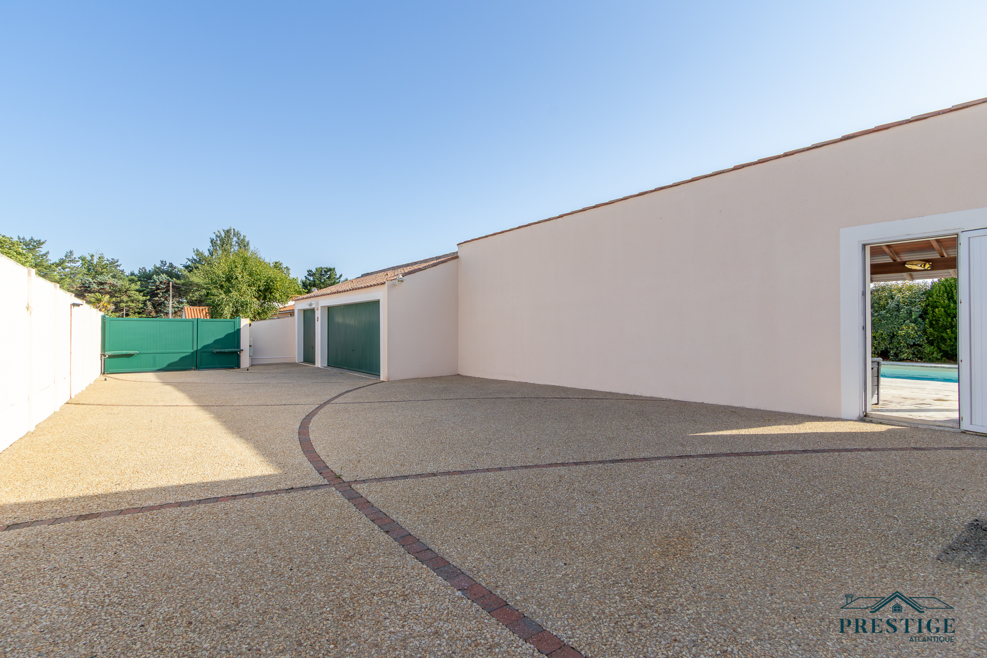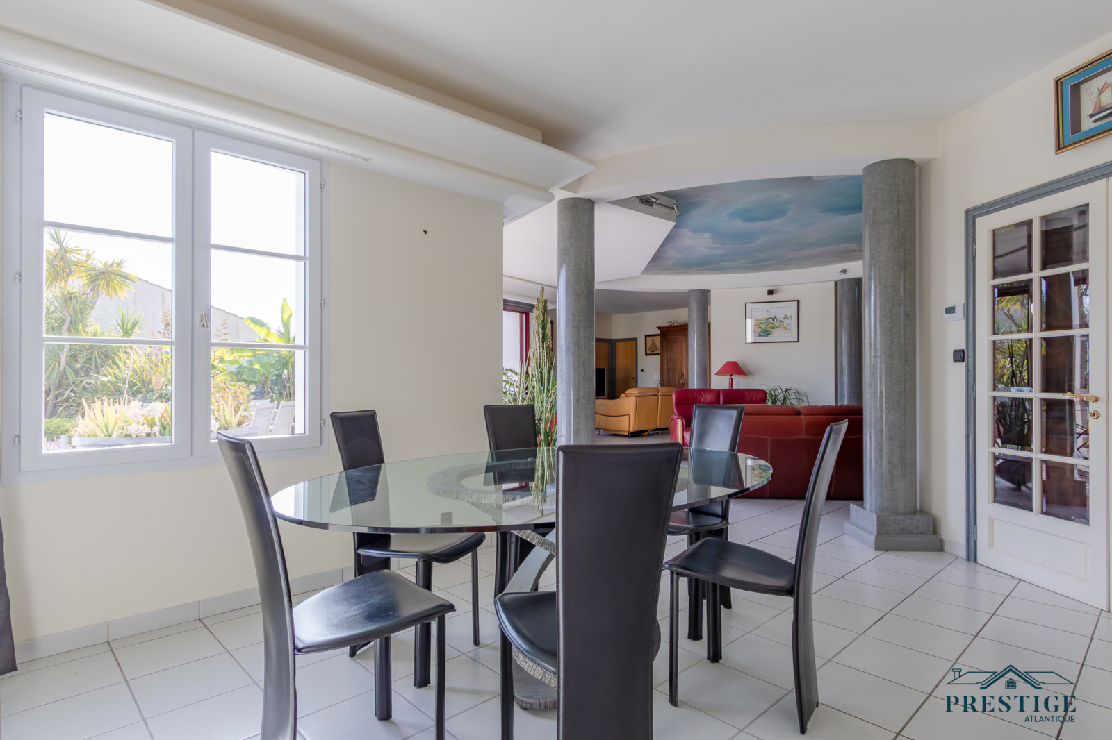 VENDU PAR PRESTIGE ATLANTIQUE. Nichée à l’abri des regards, dans un environnement résidentiel prisé à quelques pas des commerces et des plages, cette élégante villa déploie 252 m² habitables sur deux niveaux. Dès l’entrée, une majestueuse pièce de vie de 80 m² aux volumes généreux s’articule autour d’une triple réception baignée de lumière ouverte sur l’extérieur grâce à de larges baies vitrées offrant une vue imprenable sur la piscine chauffée, bordée de vastes terrasses et d’un pool house. Les limites s’effacent subtilement, laissant l’extérieur prolonger naturellement l’art de vivre intérieur. Une arrière-cuisine avec accès à une cave en sous-sol, une buanderie et un bureau viennent parfaire la distribution. Une suite parentale avec grand dressing, salle d’eau et sauna privé assure un confort de plain-pied. À l’étage, quatre chambres lumineuses dont une avec salle d’eau privative, ainsi qu’une seconde salle d’eau. Édifiée sur une parcelle close et joliment paysager de 1 151 m², la villa bénéficie également d’un double garage, d’un atelier, d’un vaste potager soigneusement entretenu agrémenté d’une verrière apportant la touche finale à ce bien d’exception aux prestations très complètes. Un bien rare, idéalement situé, où tout se fait à pied. “Les informations sur les risques auxquels ce bien est exposé sont disponibles sur le site Géorisques http://www.georisques.gouv.fr”. Pour plus de renseignements ou pour organiser une visite privée, contactez-nous sans plus attendre, PRESTIGE ATLANTIQUE 02.40.21.91.13. Prix de vente 966 000€ FAI dont 5 % d'honoraires agence à la charge de l'acquéreur soit un prix net vendeur de 920 000€ (RCS. Saint- Nazaire 897 587 946).