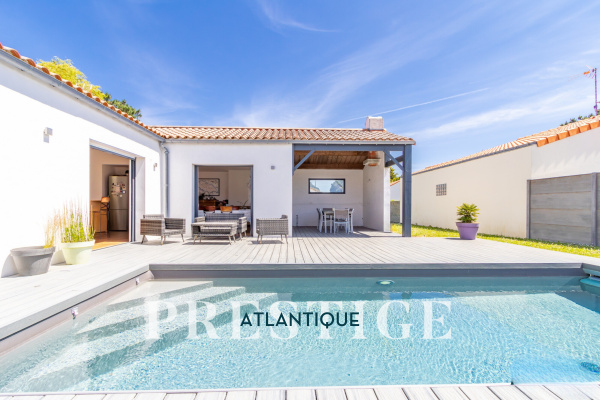 VENDU PAR PRESTIGE ATLANTIQUE. EMPLACEMENT EXCEPTIONNEL VUE MER. Située dans le quartier recherché de La Joselière à quelques pas de la plage, cette charmante maison offre de beaux volumes et développe 180 m² habitables sur deux niveaux. Une entrée dessert une spacieuse pièce de vie baignée de lumière agrémentée d'une cuisine aménagée équipée, le tout s'ouvrant sur une véranda offrant une vue dégagée sur le jardin arboré et l’océan. Deux chambres dont une suite parentale avec salle d’eau privative ne font que confirmer la vie de plain-pied. À l’étage, une mezzanine surplombe le séjour et dessert une vaste salle de jeux prolongée par une loggia offrant un panorama apaisant sur la mer. Une chambre supplémentaire vient parfaire cet espace. Édifiée sur une parcelle close et paysager de 2 088 m², cette propriété dispose d’un double garage et d’un carport, alliant praticité et confort. Un cadre de vie privilégié à deux pas de l’océan. “Les informations sur les risques auxquels ce bien est exposé sont disponibles sur le site Géorisques http://www.georisques.gouv.fr ”. Pour plus de renseignements ou pour organiser une visite privée, contactez-nous sans plus attendre, PRESTIGE ATLANTIQUE 02.40.21.91.13. Prix de vente 892 500€ FAI dont 5 % d'honoraires agence à la charge de l'acquéreur soit un prix net vendeur de 850 000€ (RCS. Saint- Nazaire 897 587 946).