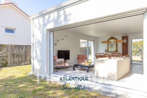 SOUS PROMESSE DE VENTE PAR PRESTIGE ATLANTIQUE. Dans un environnement privilégié et verdoyant au fond de son impasse, cette maison contemporaine de 2012 bénéficiant de beaux volumes et de prestations abouties dispose d'une superficie habitable de 190 m² sur deux niveaux. Elle propose au rez-de-jardin une pièce de vie en double réception agrémentée d'une cuisine aménagée et équipée, le tout donnant sur une terrasse sublimée de sa piscine chauffée et couverte à l’exposition solaire idéale. Un espace couvert complète la vie d’extérieur. L’espace nuit se compose de deux chambres et d’une salle d’eau dont une attention toute particulière pour l’une d’entre elles faisant office de master room (salle d’eau / dressing / salle de sport). À l'étage un palier dessert deux chambres avec placards, une salle d’eau ainsi qu’une suite avec sa propre salle d’eau. Edifiée sur une parcelle close joliment arborée de 1 497 m², deux garages donnent une touche finale à ce bien d’exception. Une maison récente disposant d'une magnifique vie d’extérieur dans un calme absolu. “Les informations sur les risques auxquels ce bien est exposé sont disponibles sur le site Géorisques http://www.georisques.gouv.fr ”. Pour plus de renseignements ou pour organiser une visite privée, contactez-nous sans plus attendre, PRESTIGE ATLANTIQUE 02.40.21.91.13. Prix de vente 699 825€ FAI dont 5 % d'honoraires agence à la charge de l'acquéreur soit un prix net vendeur de 666 500€ (RCS. Saint- Nazaire 897 587 946).